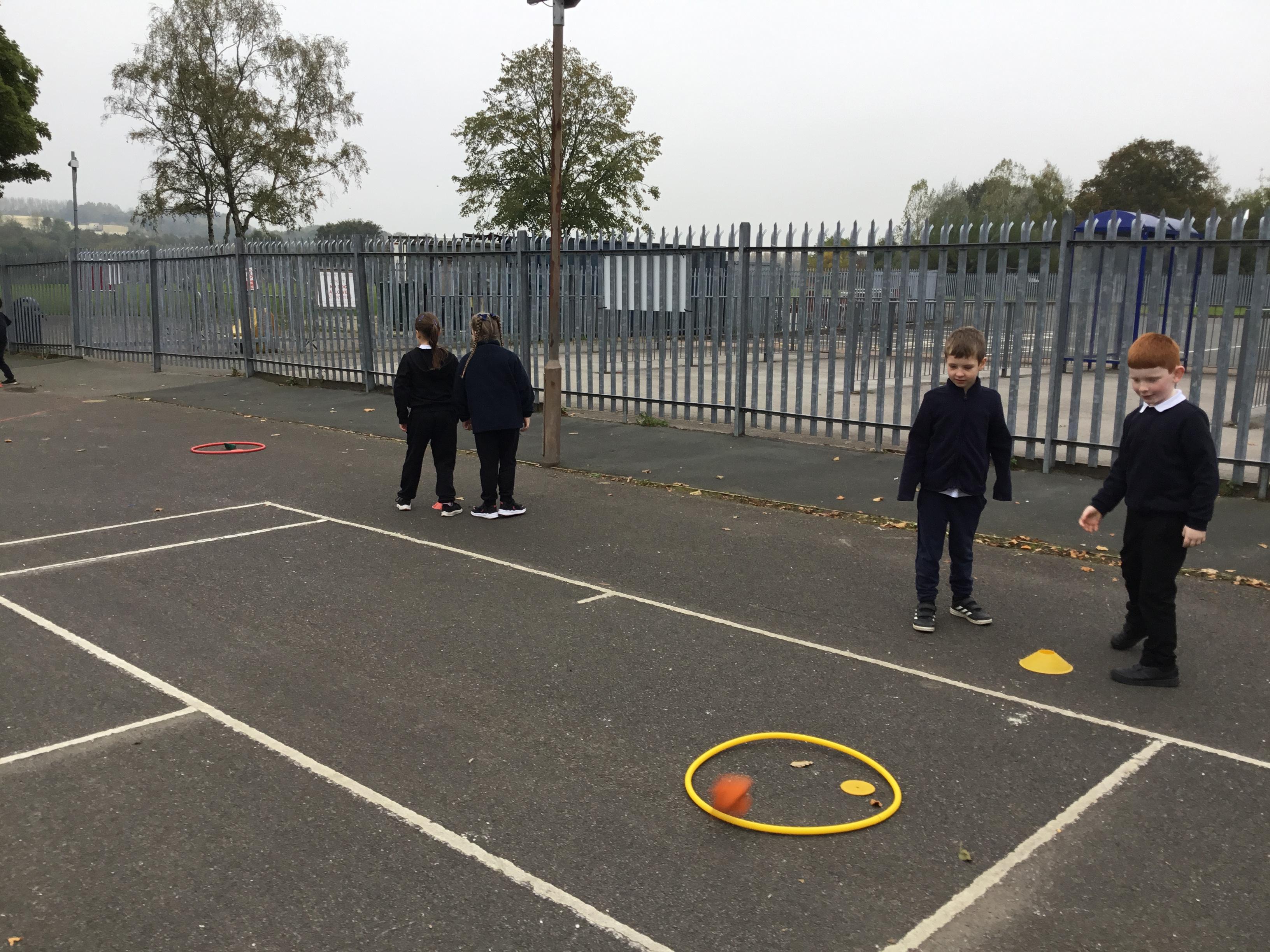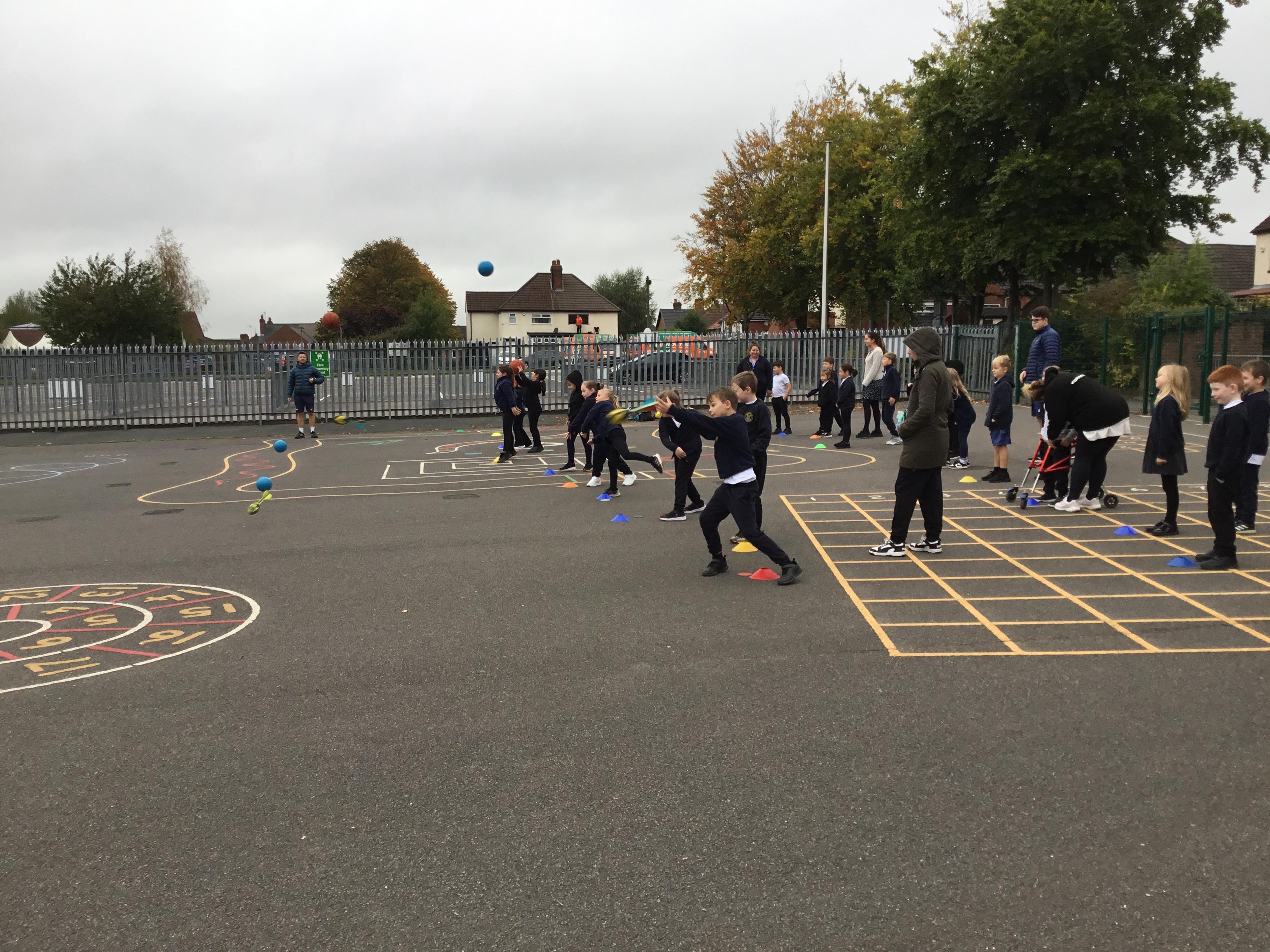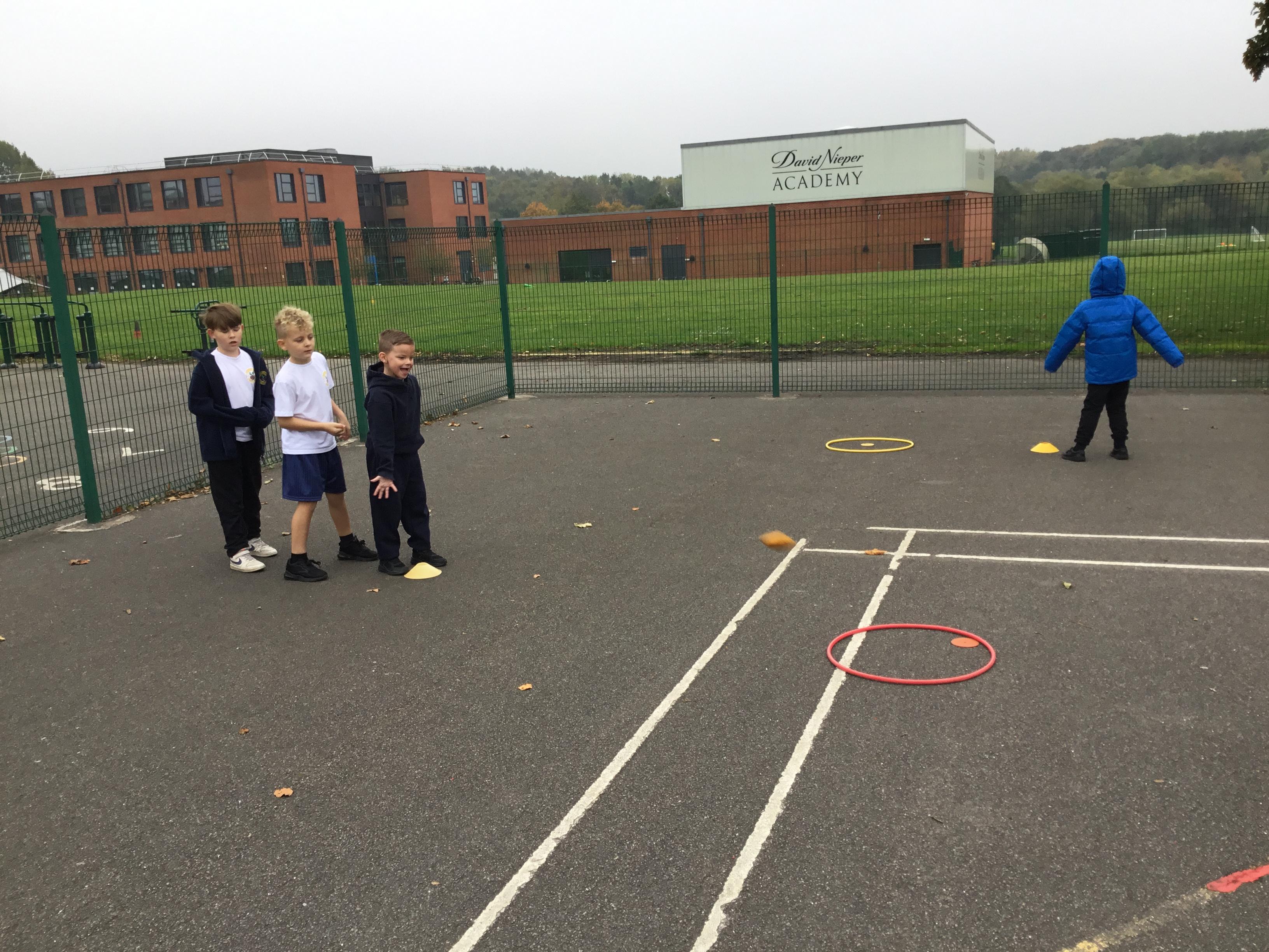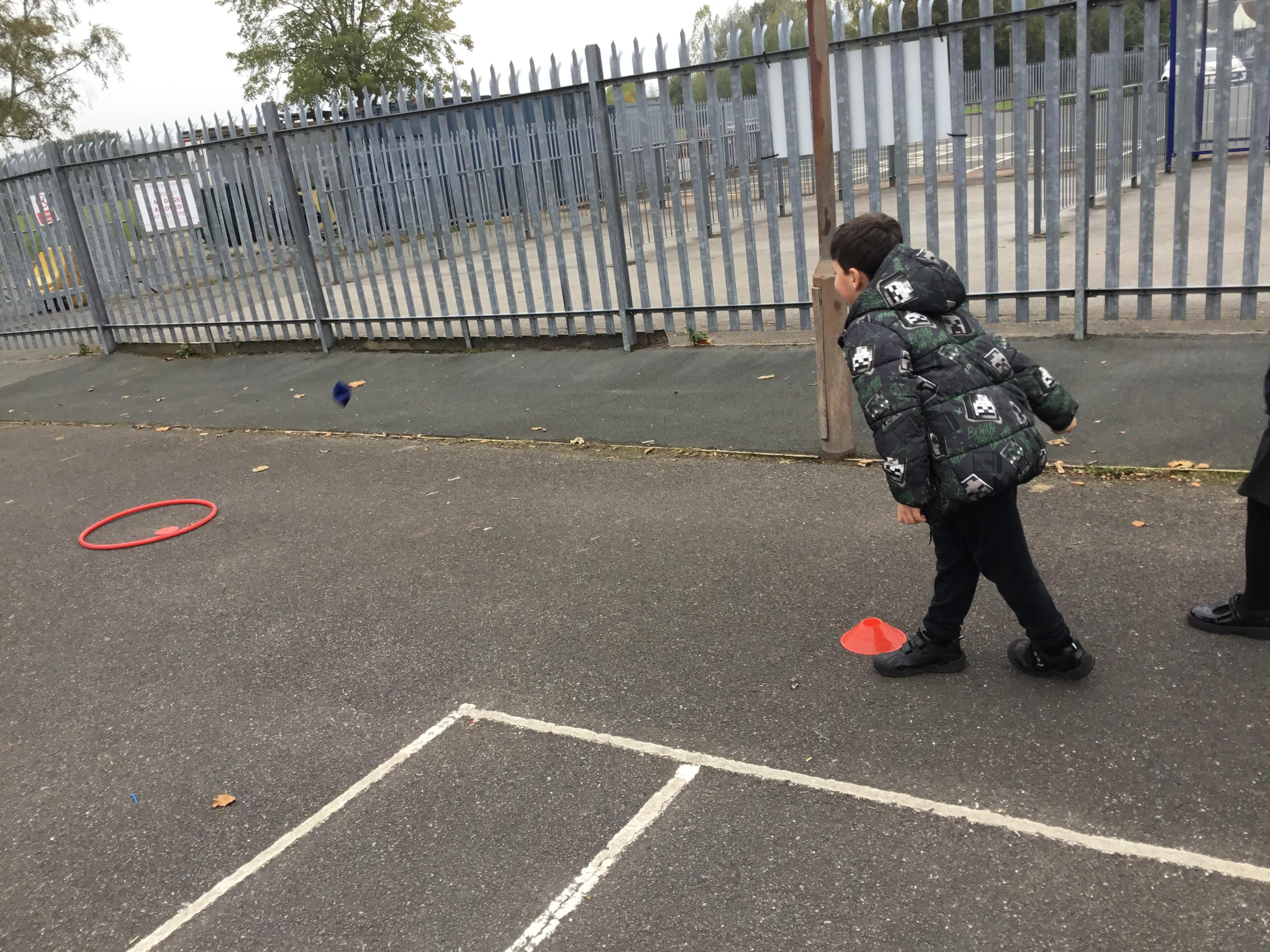 In P.E, we practiced throwing at a target, as we continued athletics.