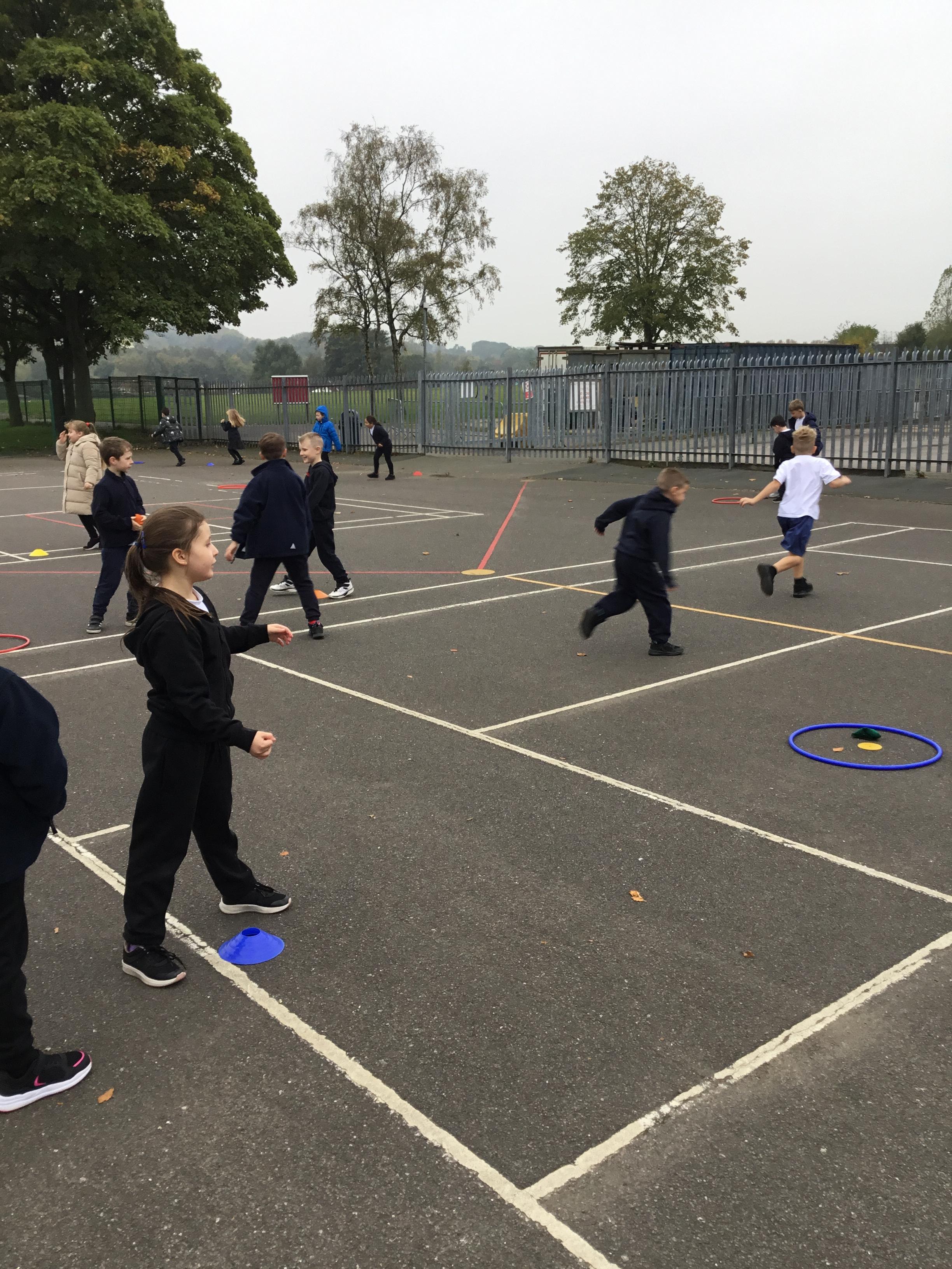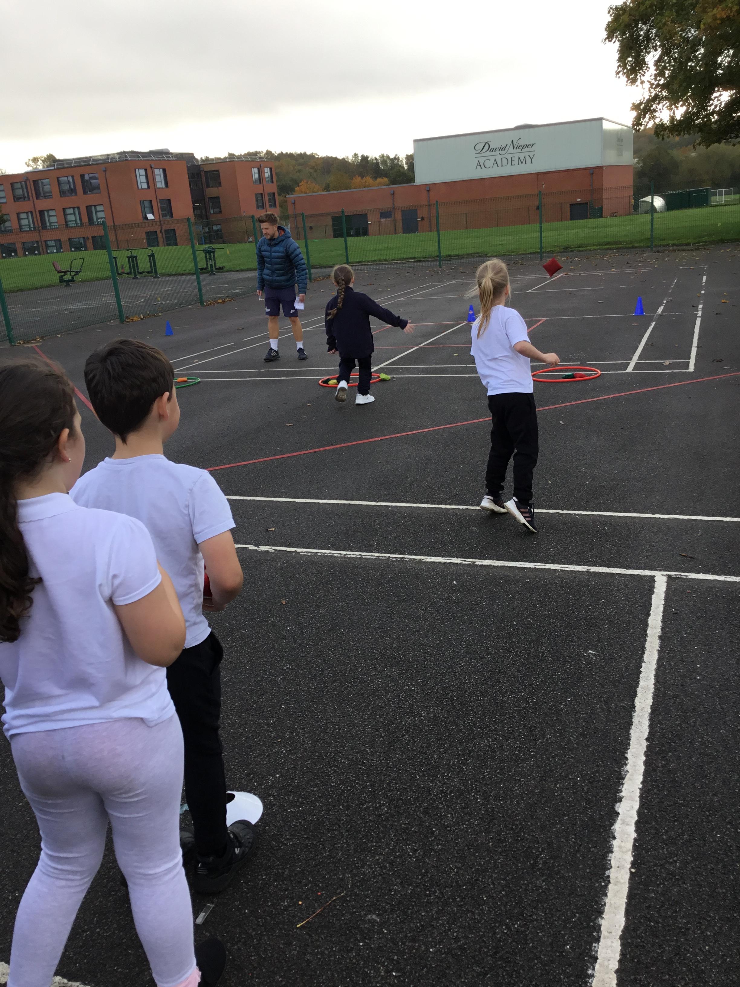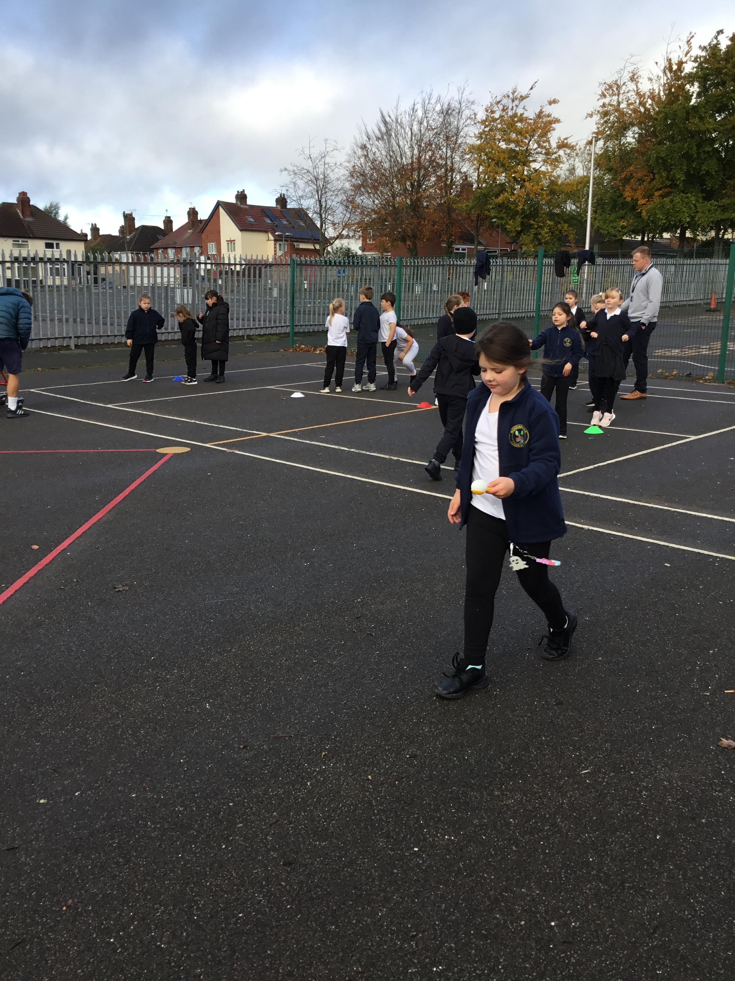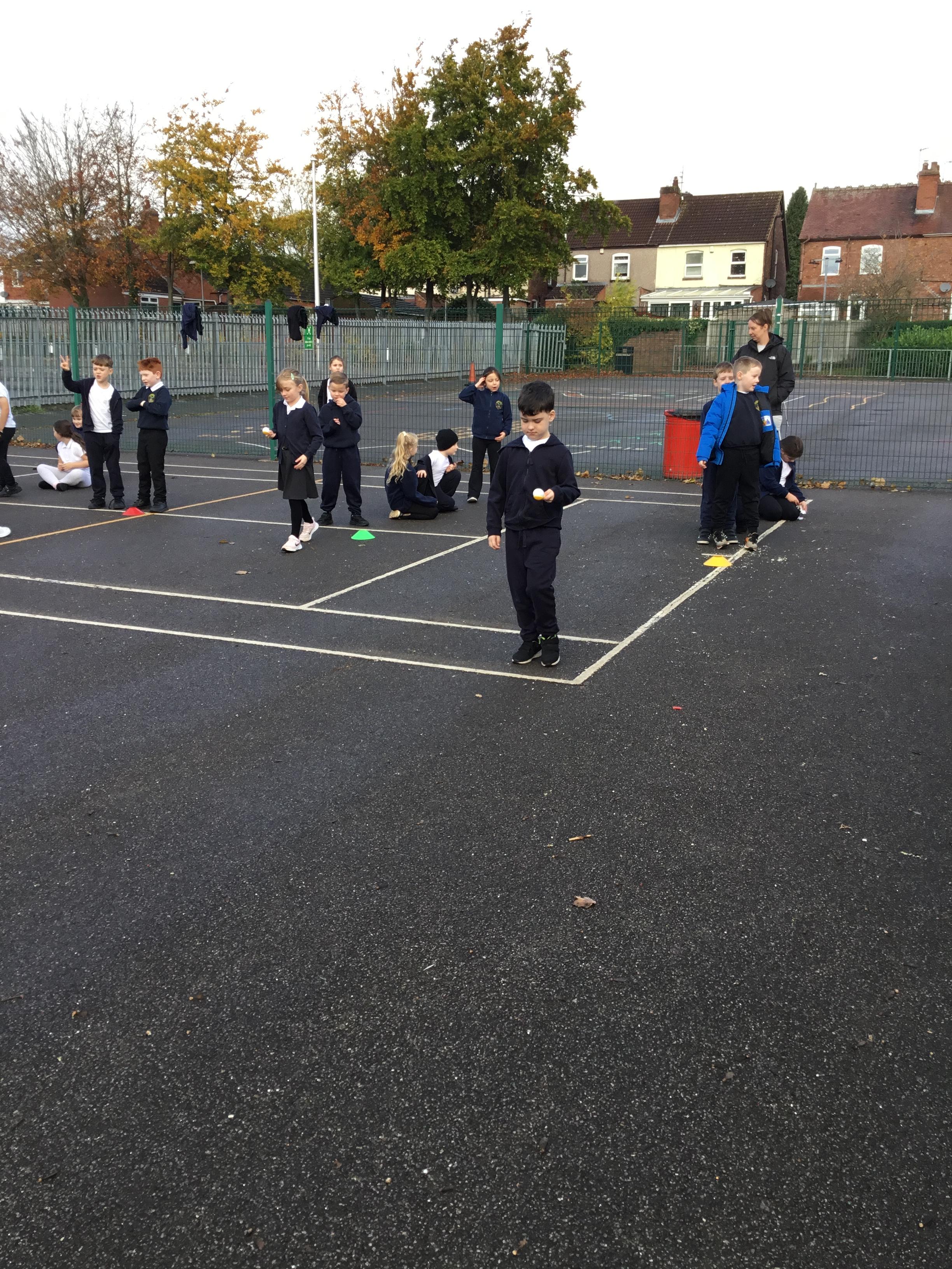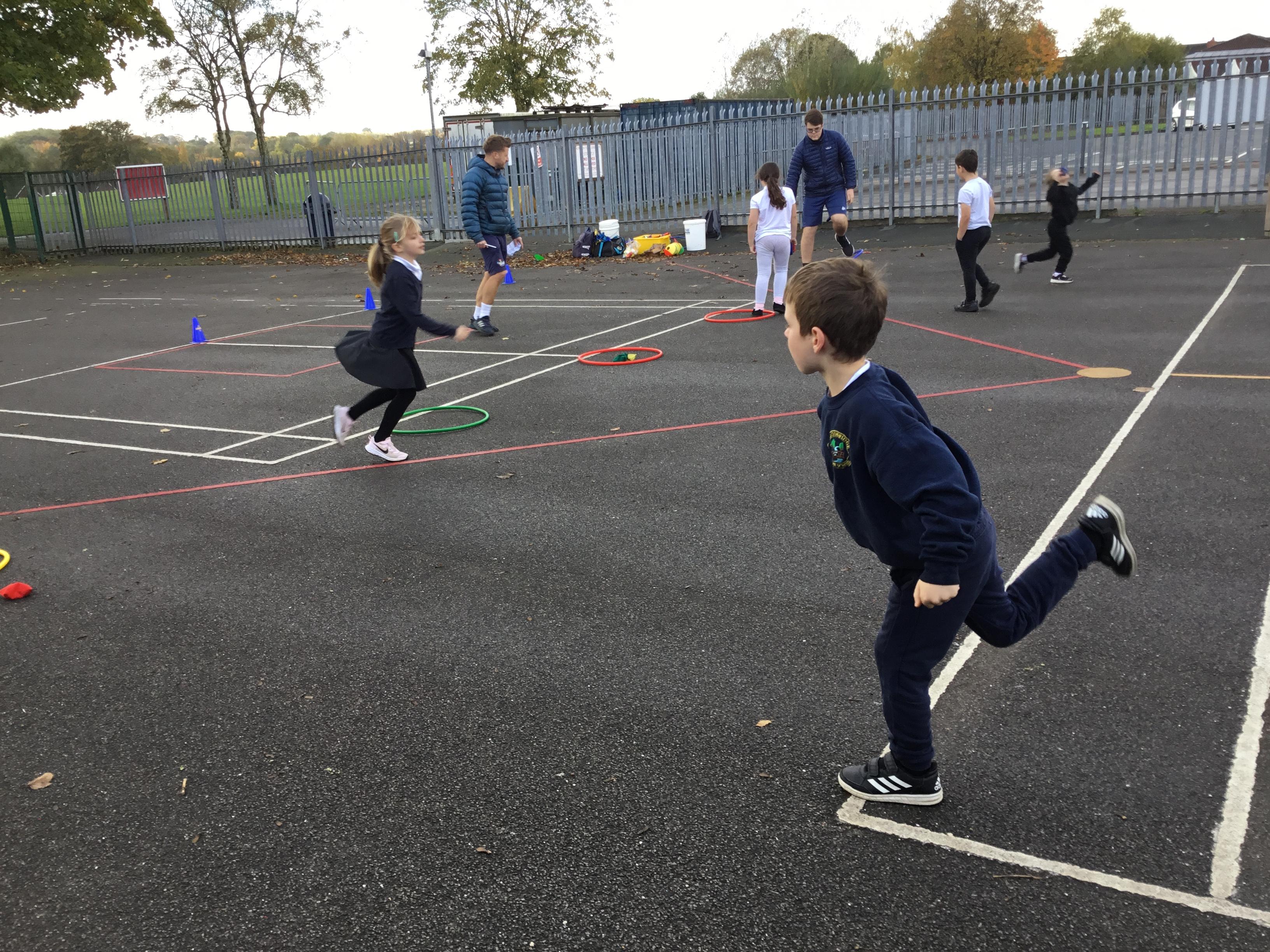 In P.E, we practiced throwing at a target, as we continued athletics.
