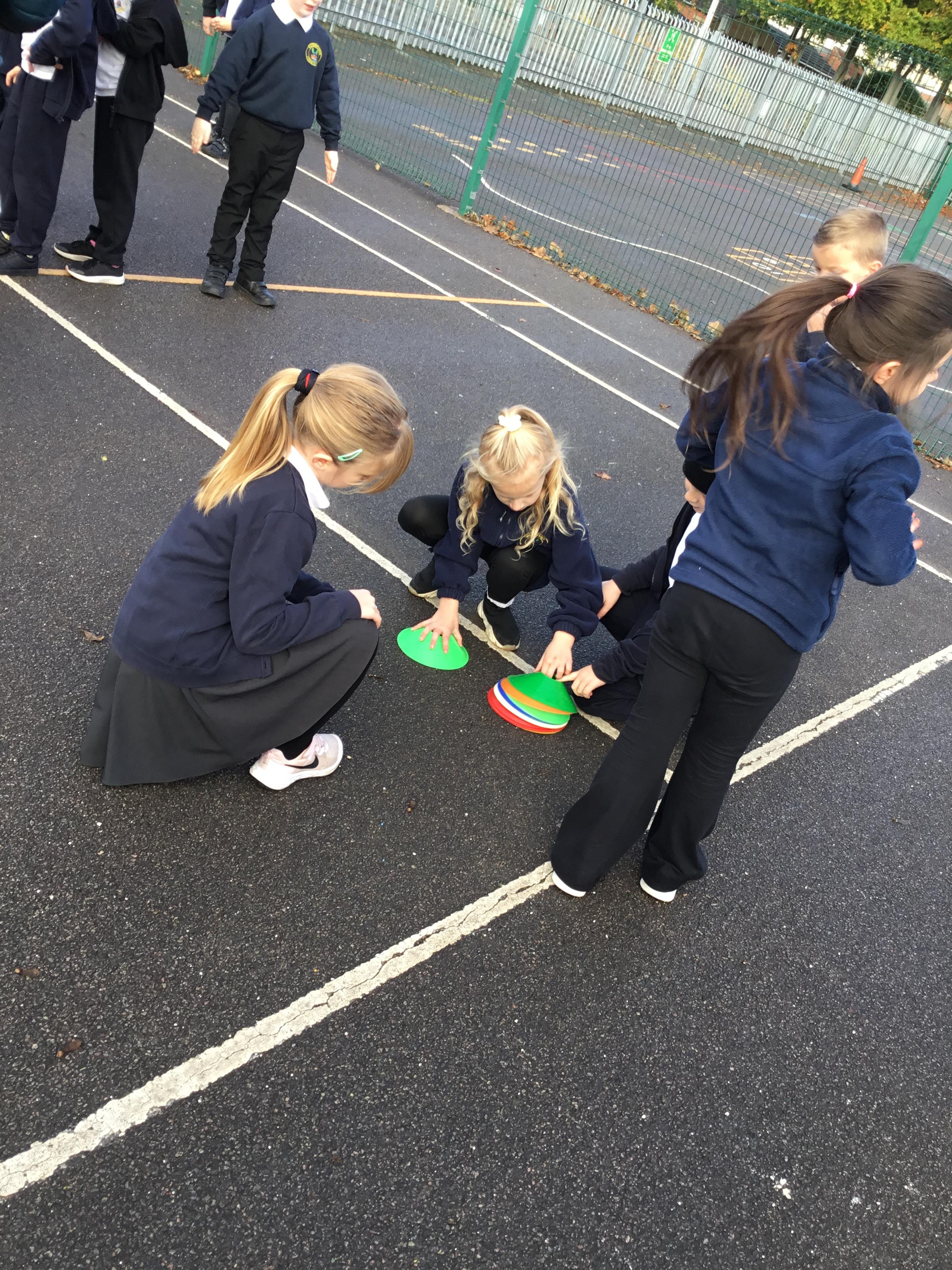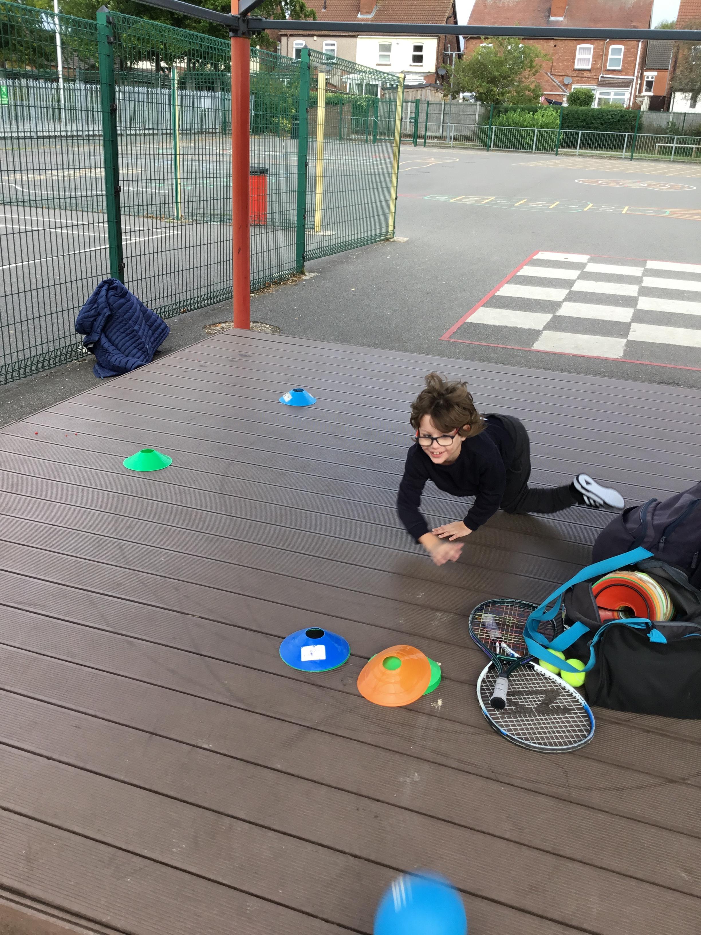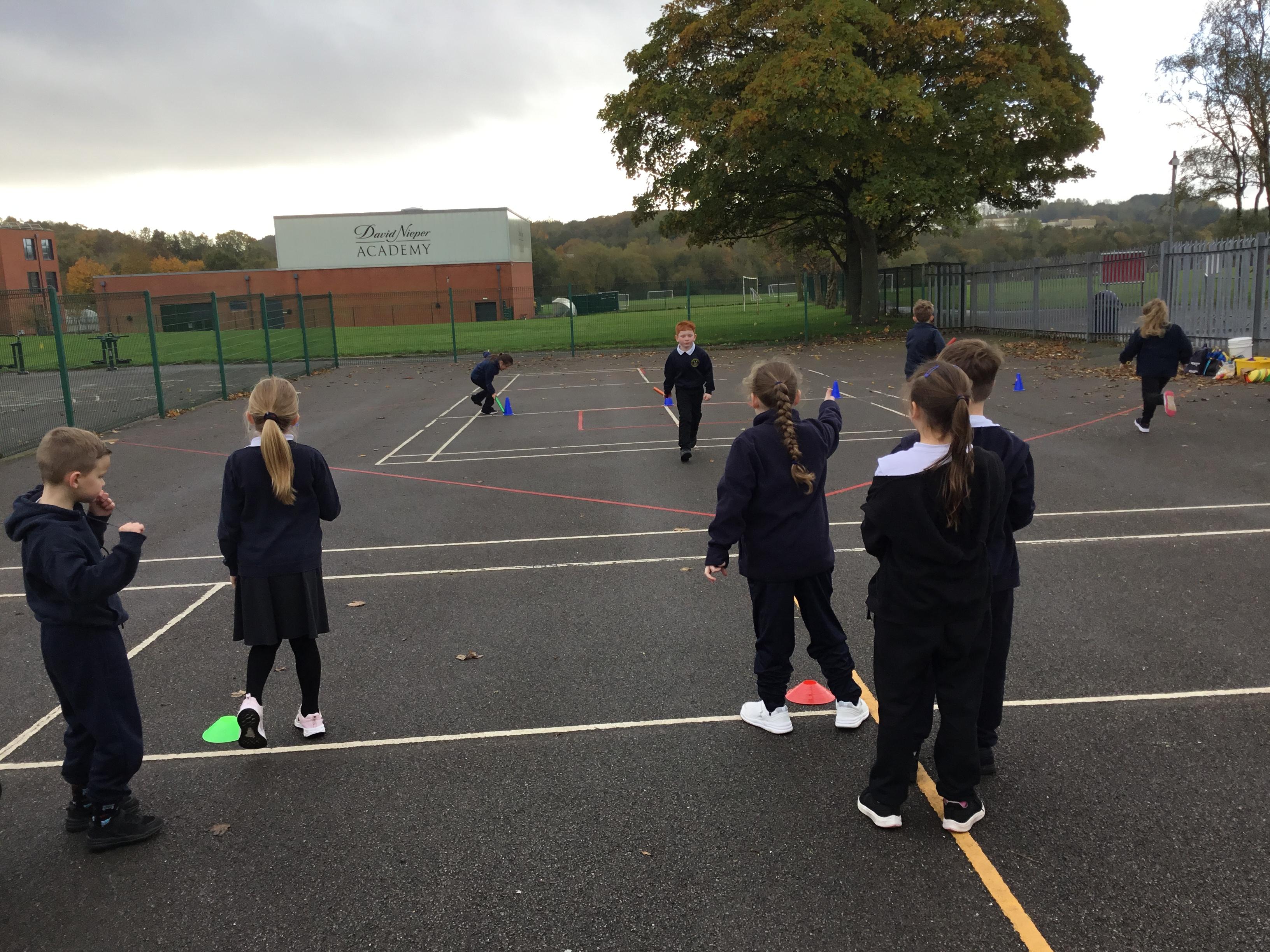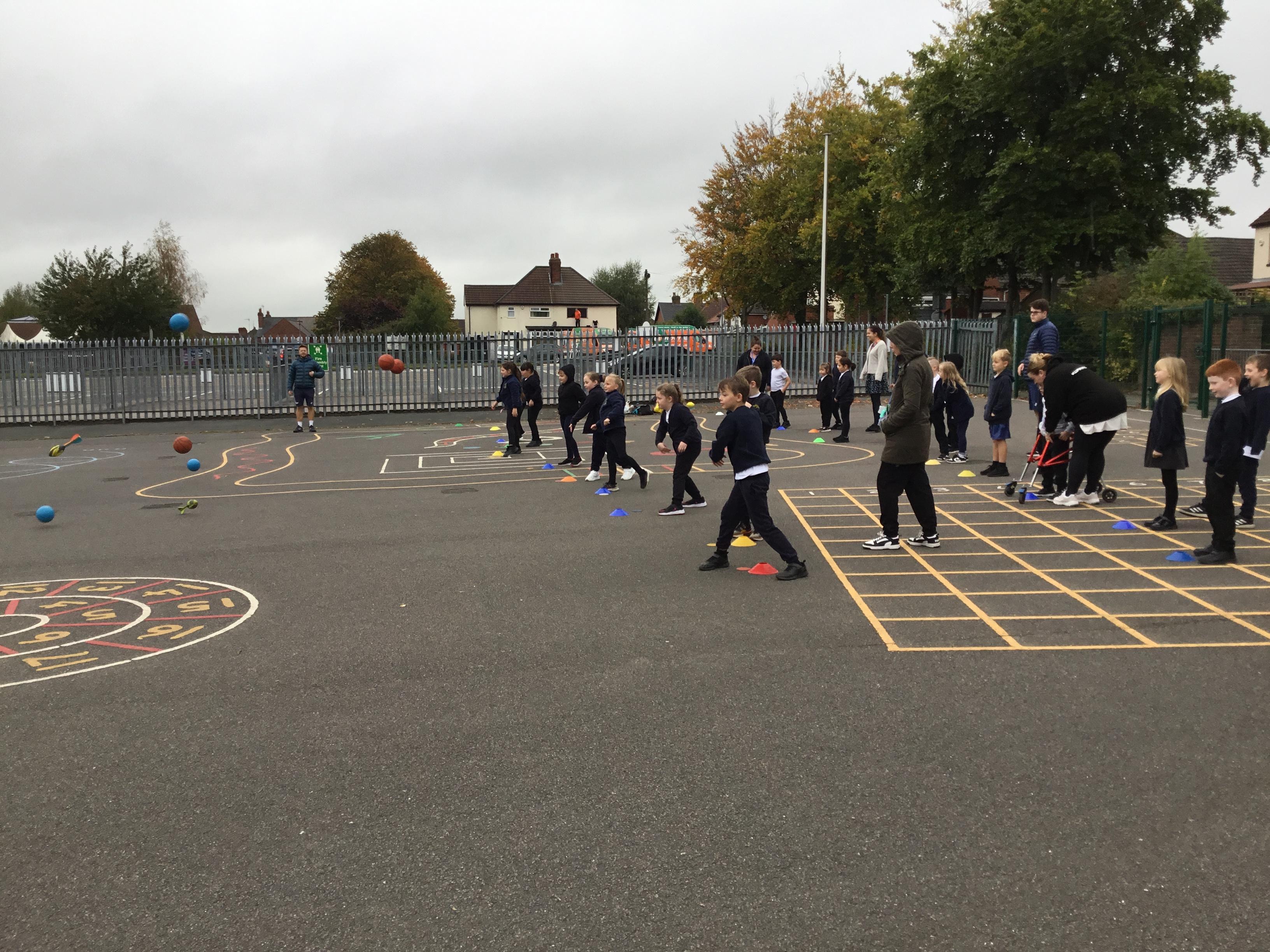 In P.E, we practiced throwing at a target, as we continued athletics.