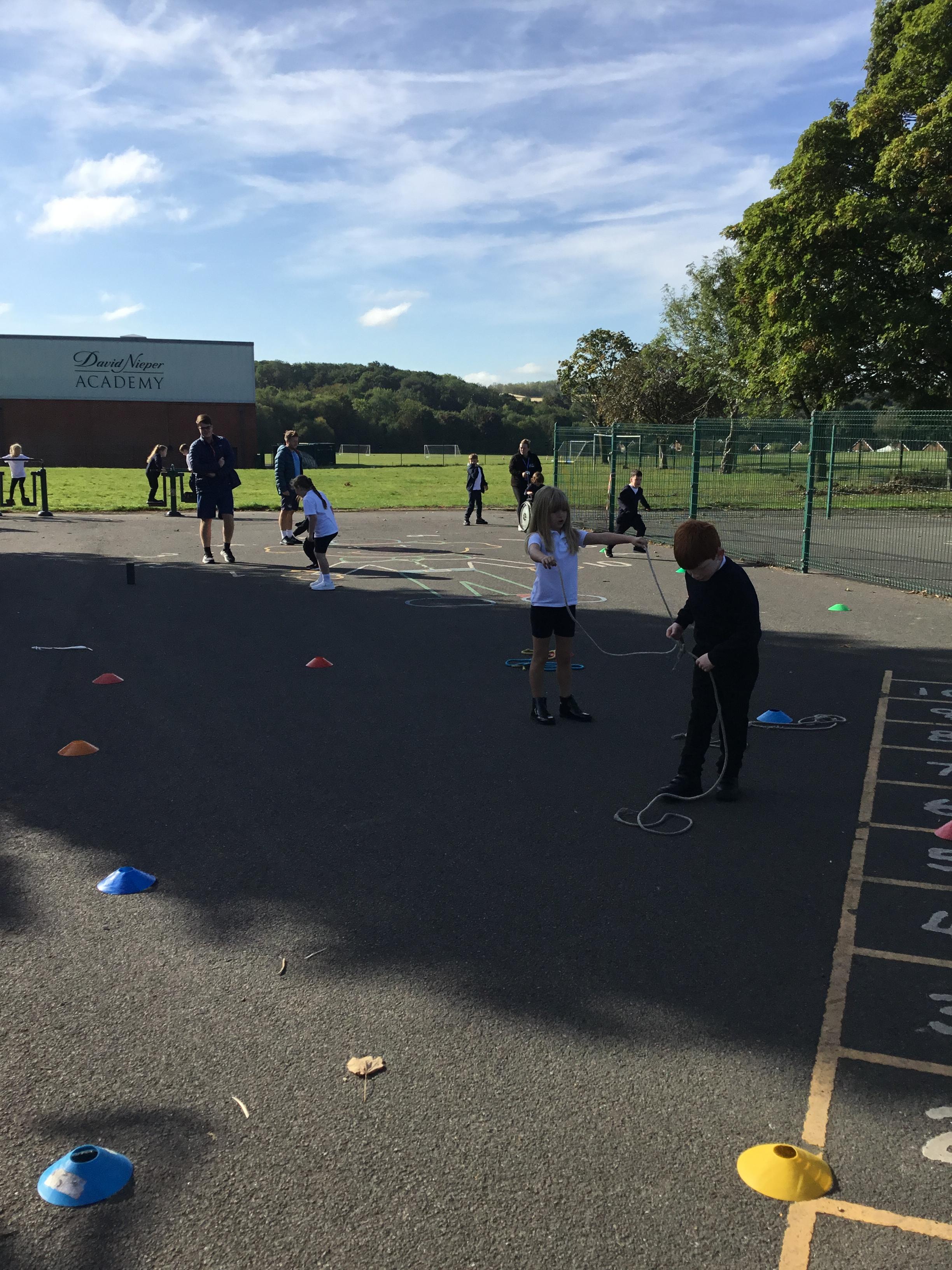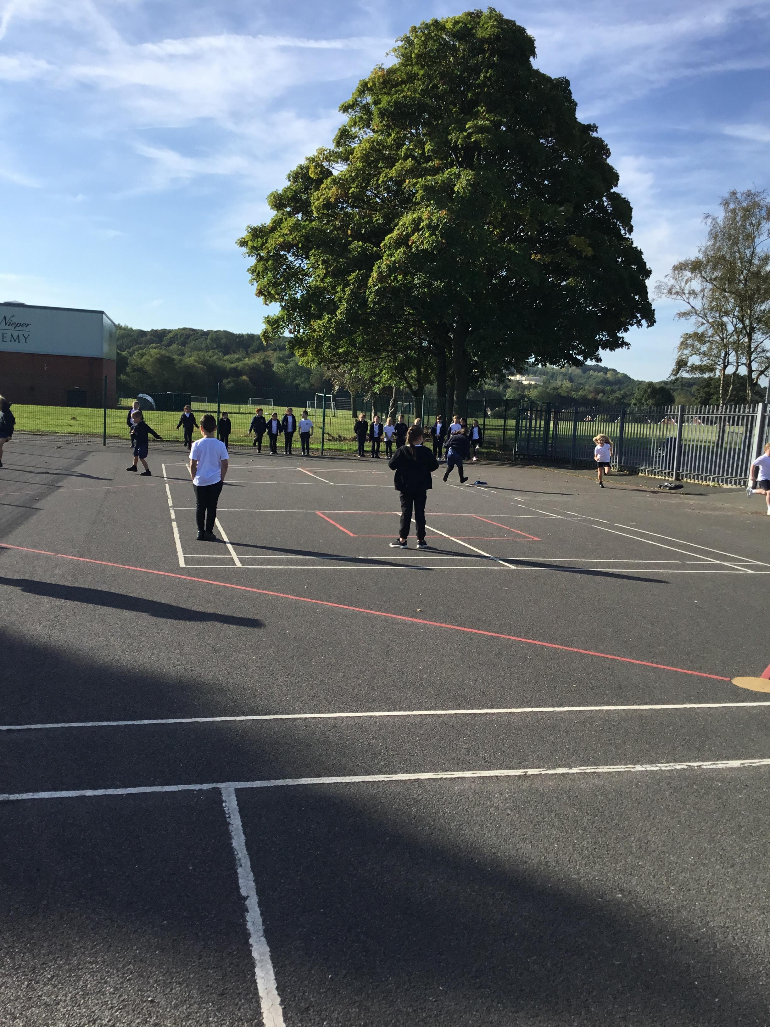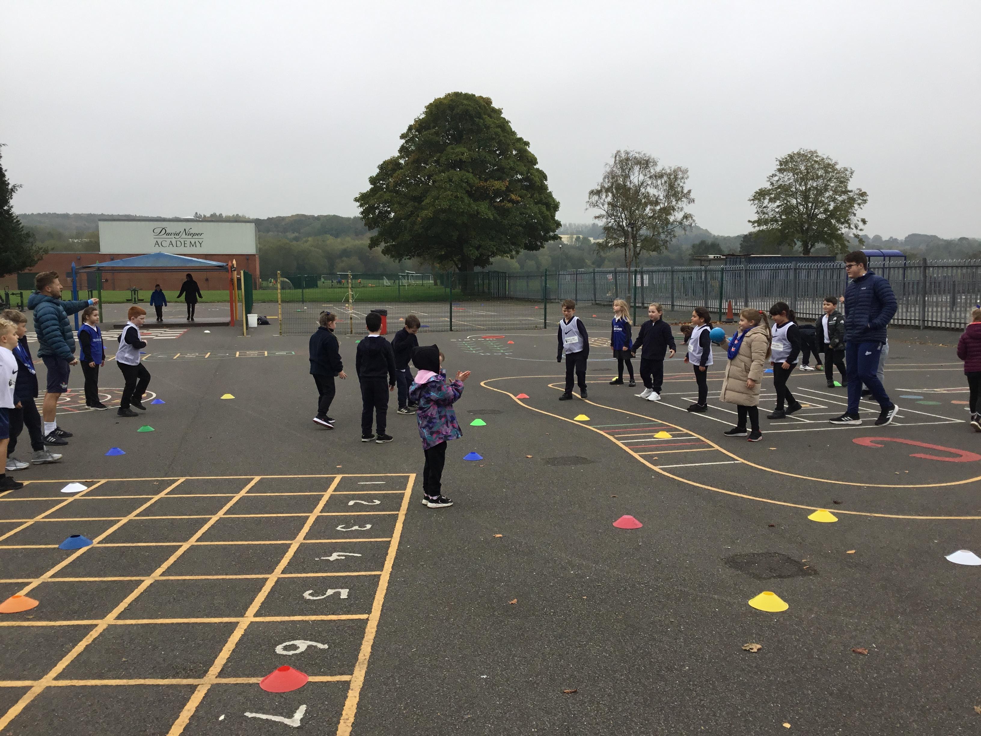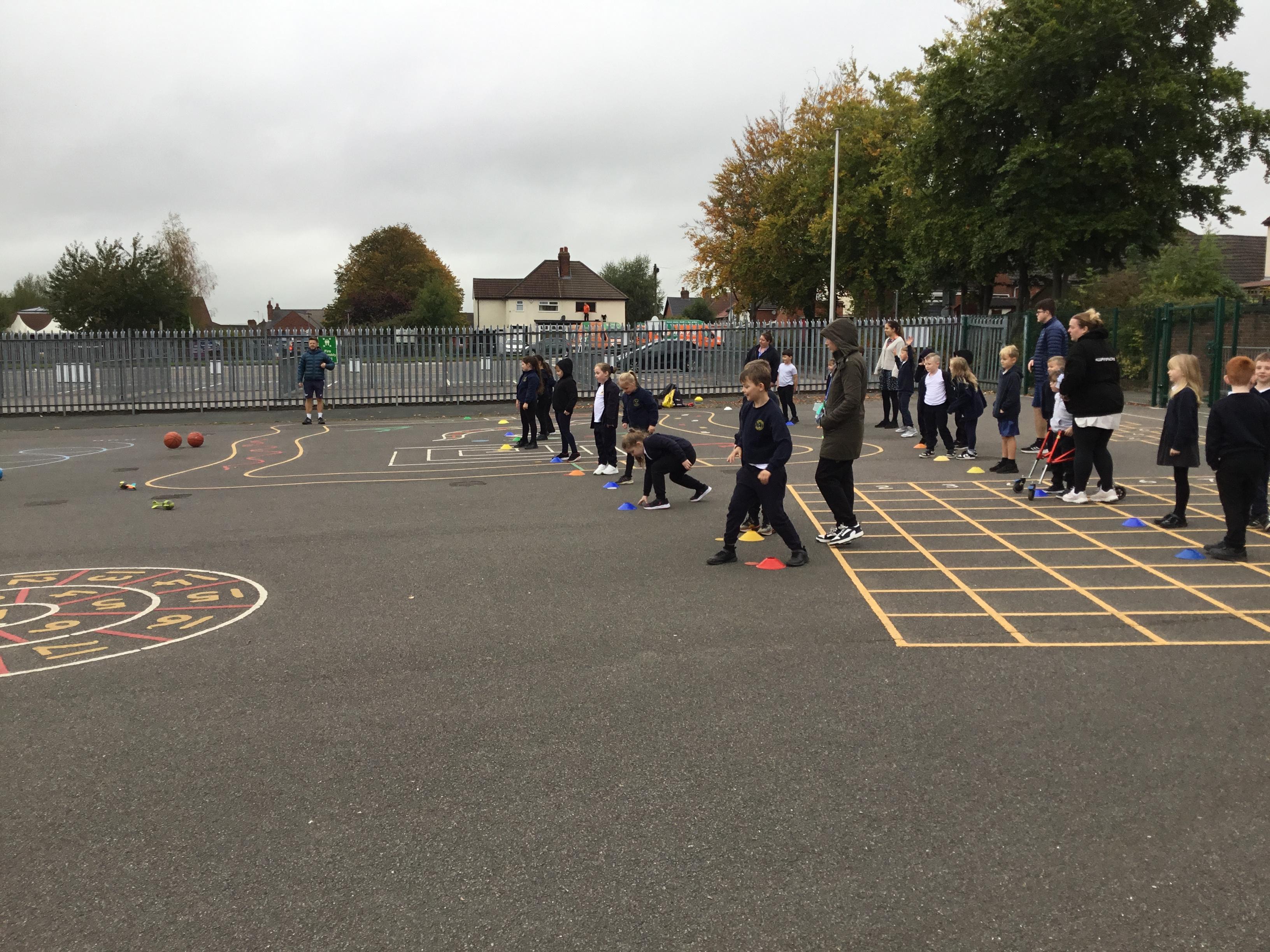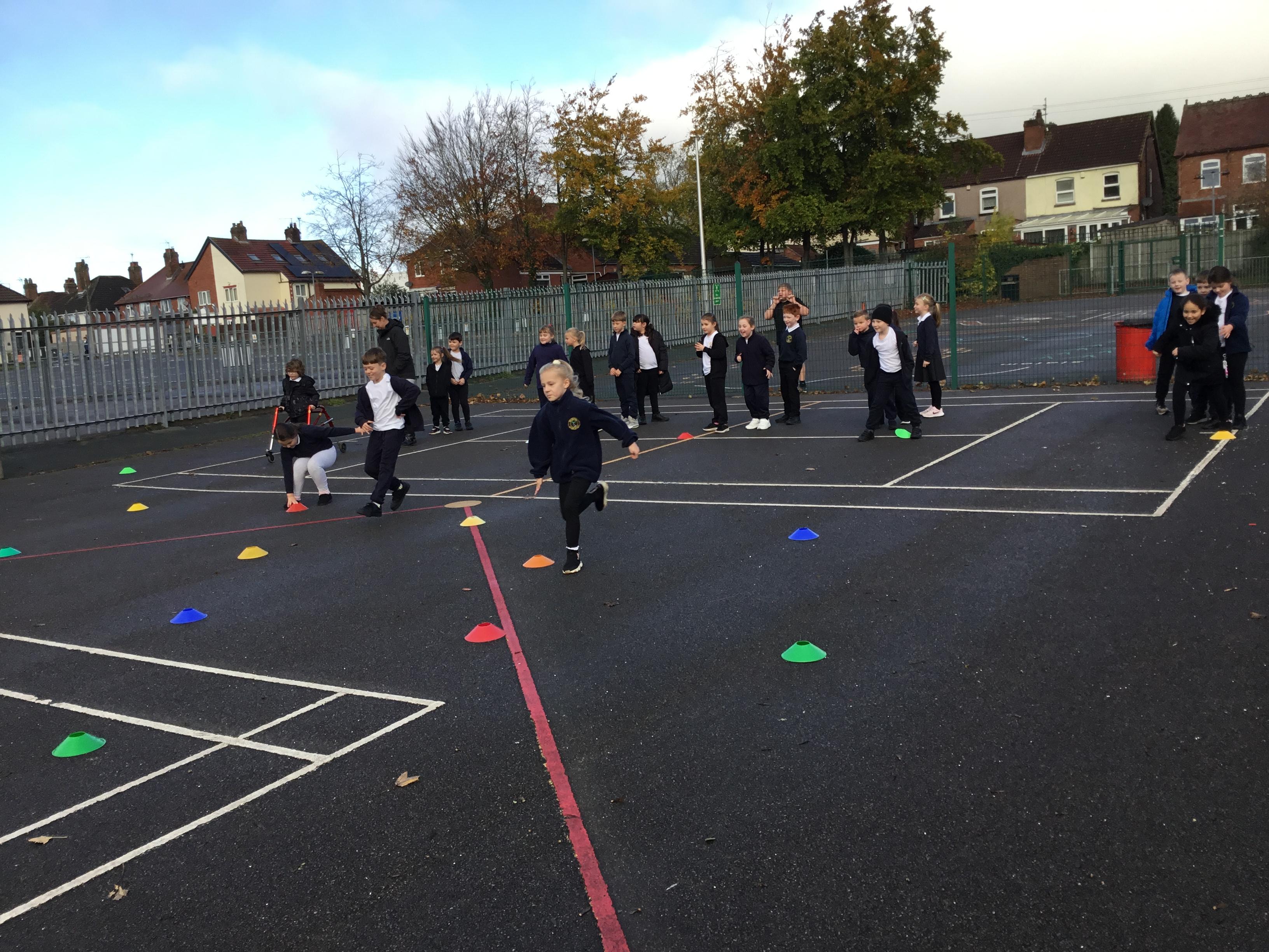 In P.E, we practiced throwing at a target, as we continued athletics.