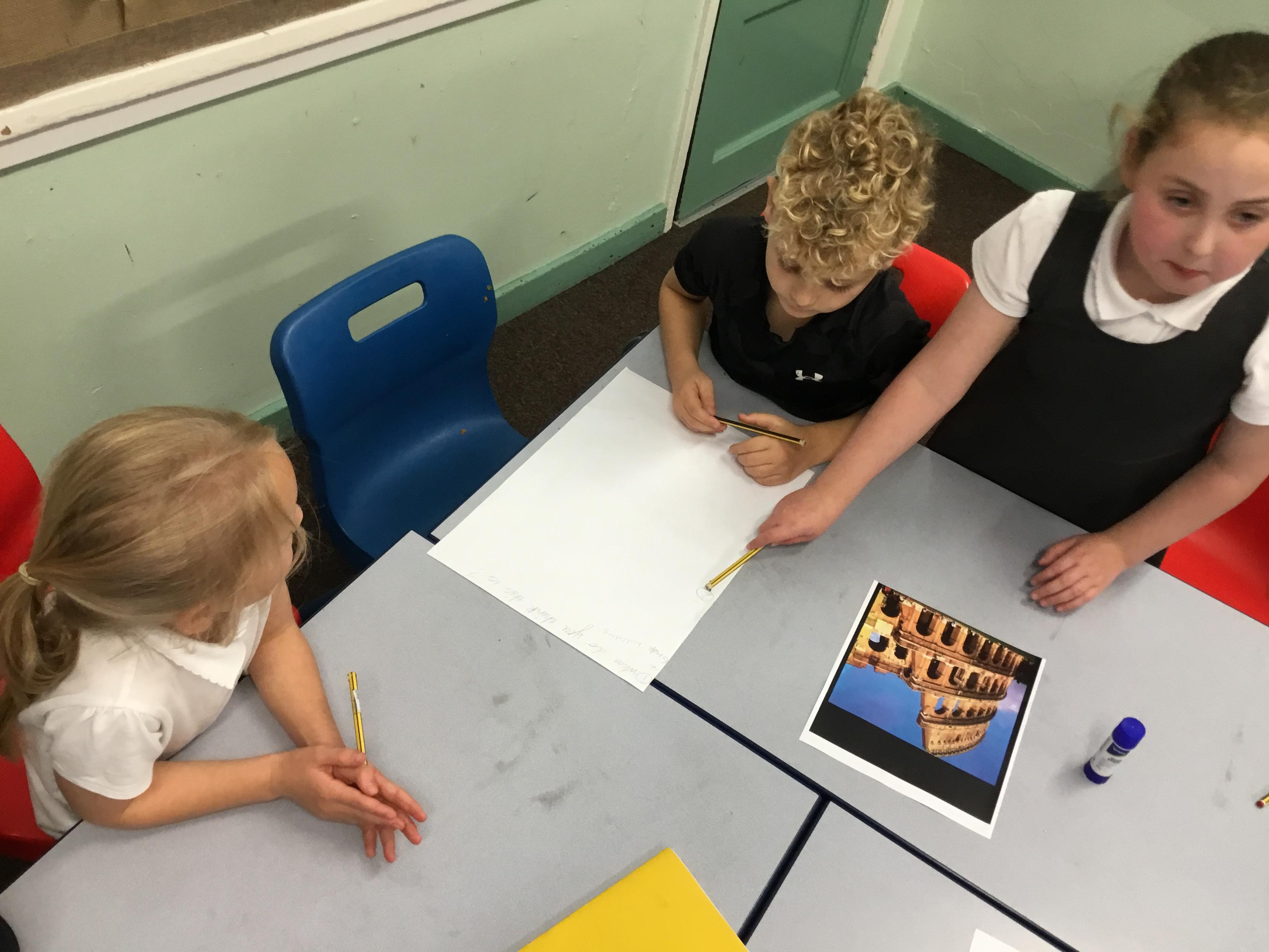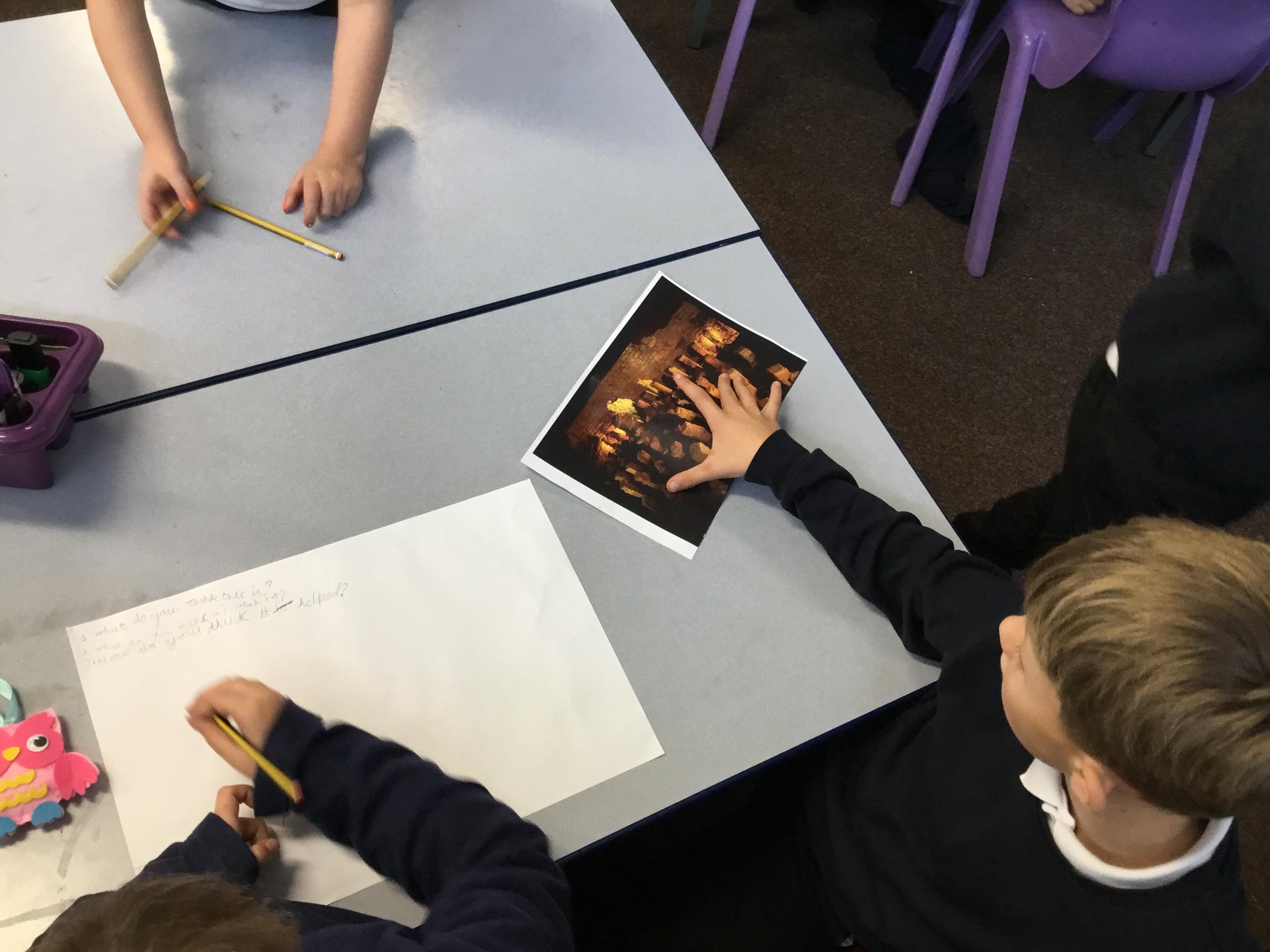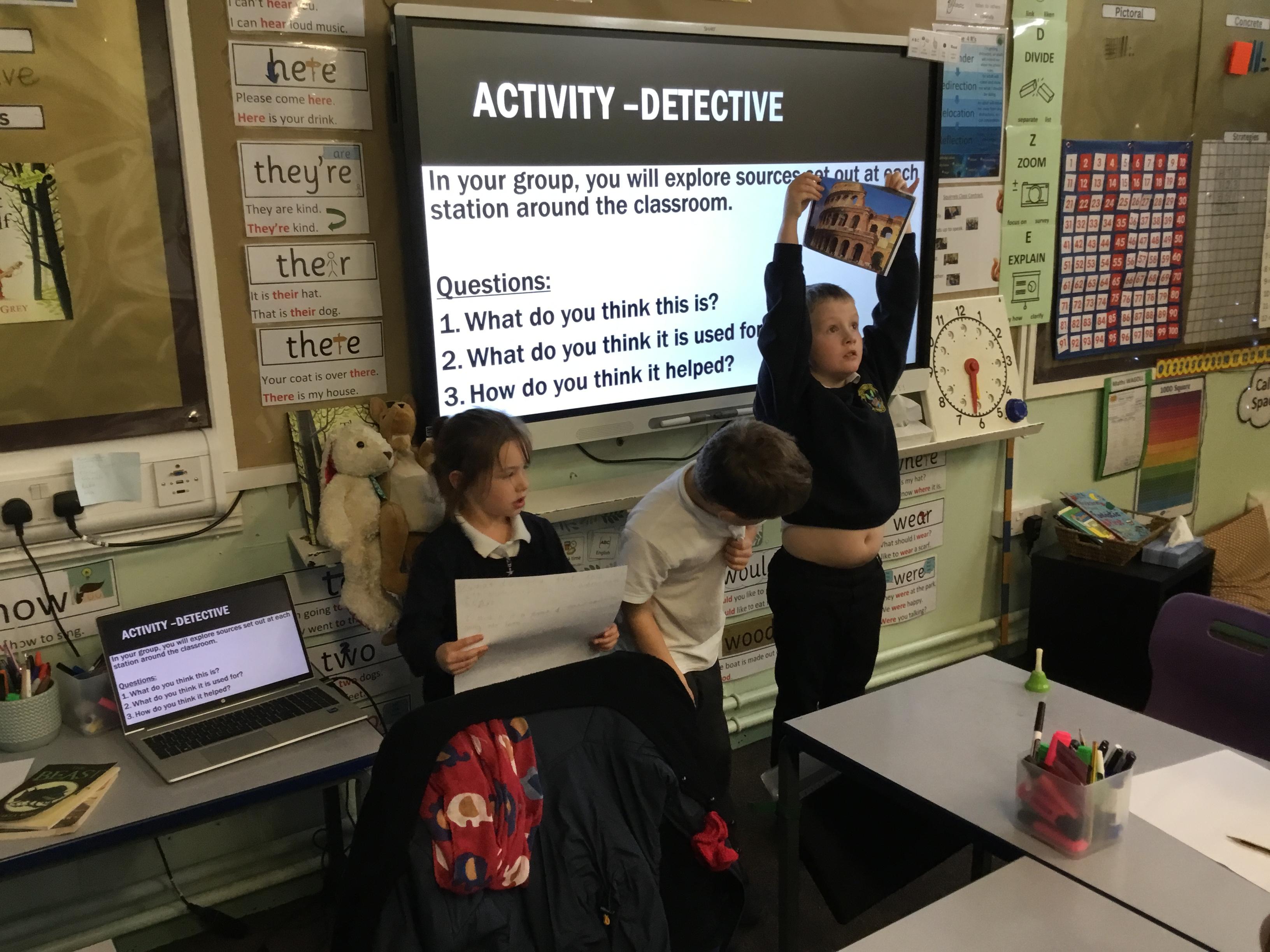In History, we looked at a variety of photographs and discussed what they could be, where they might be from and what they could be used for. We made a connection that they all were linked to the Romans.