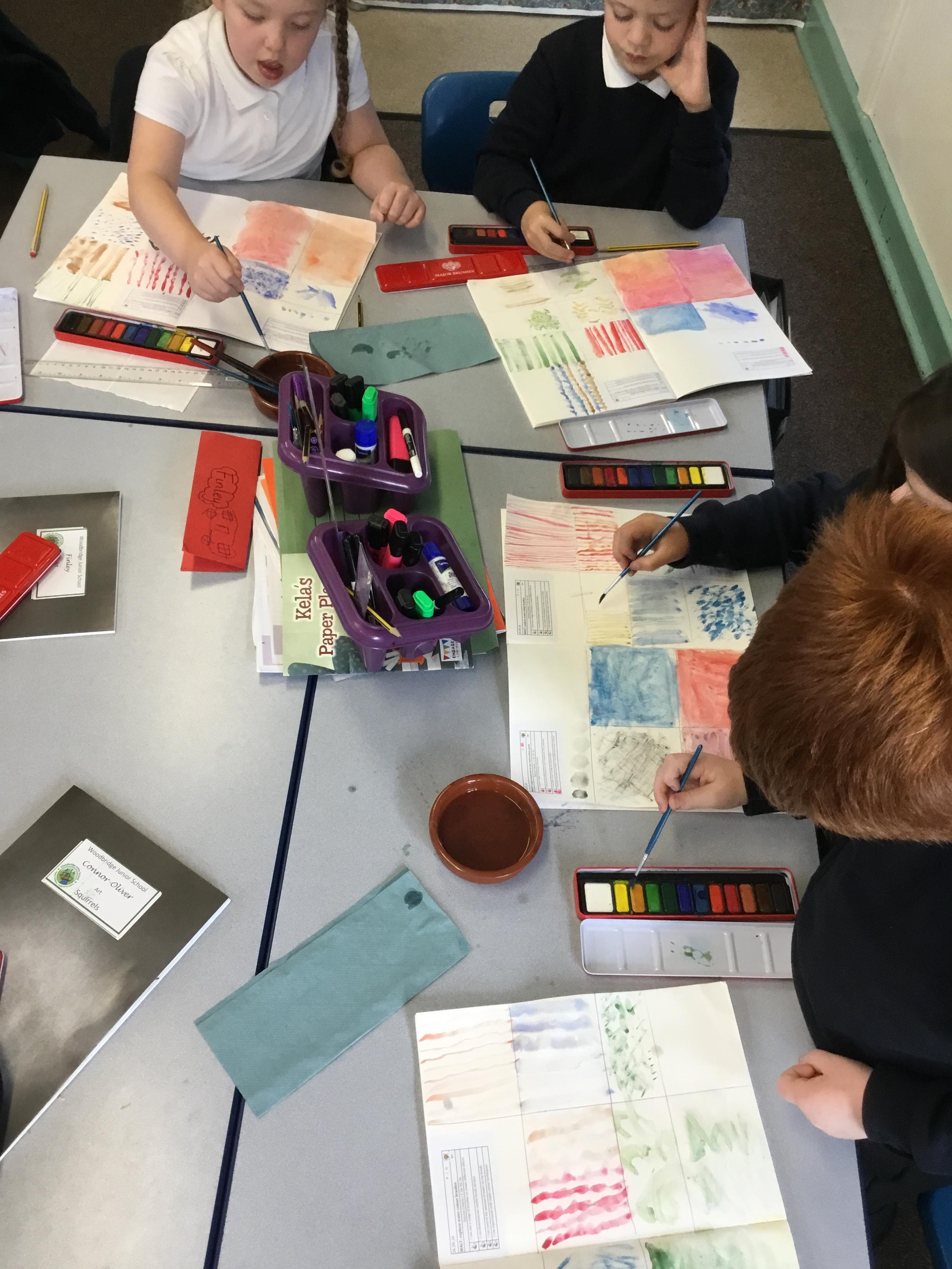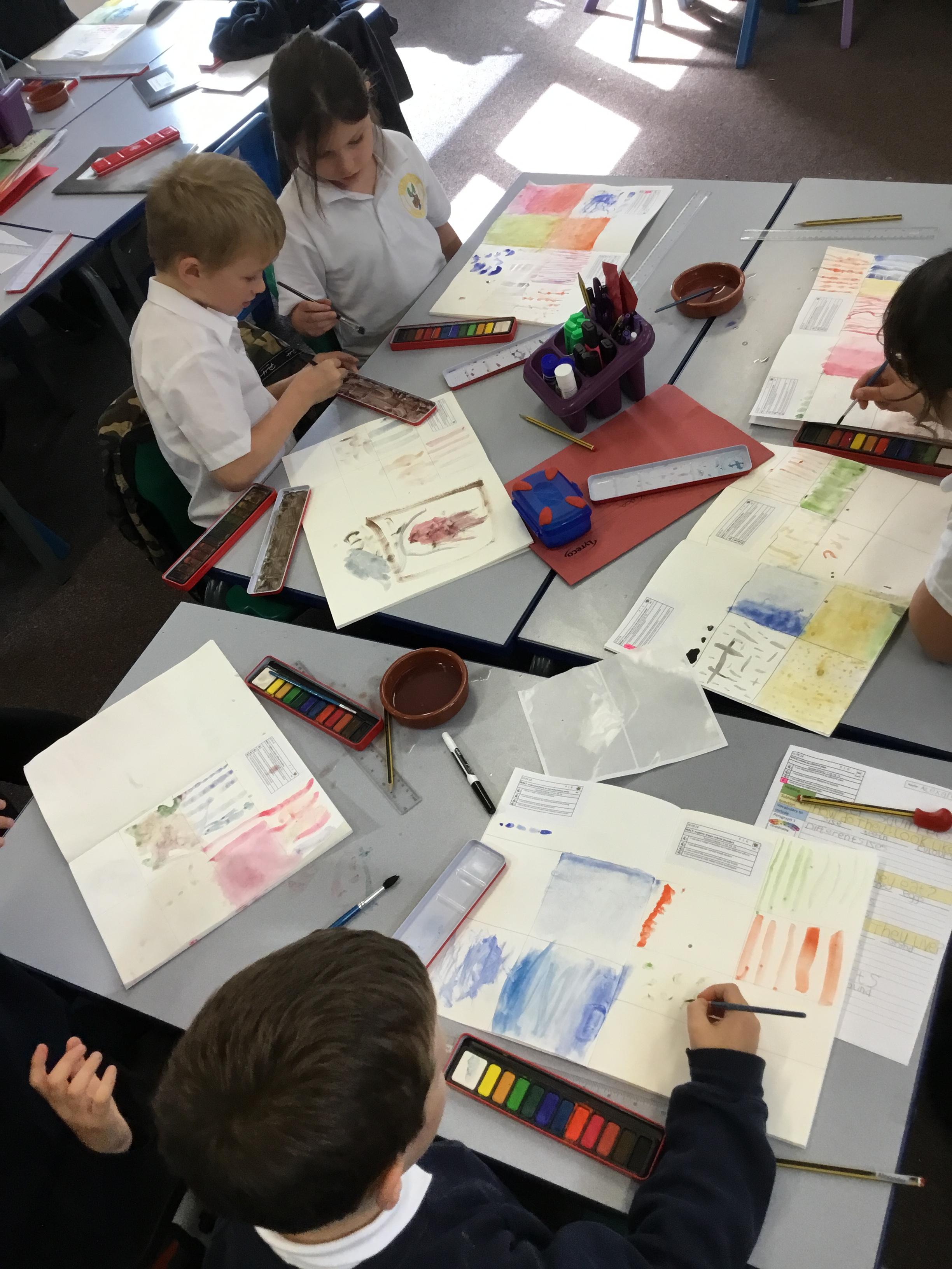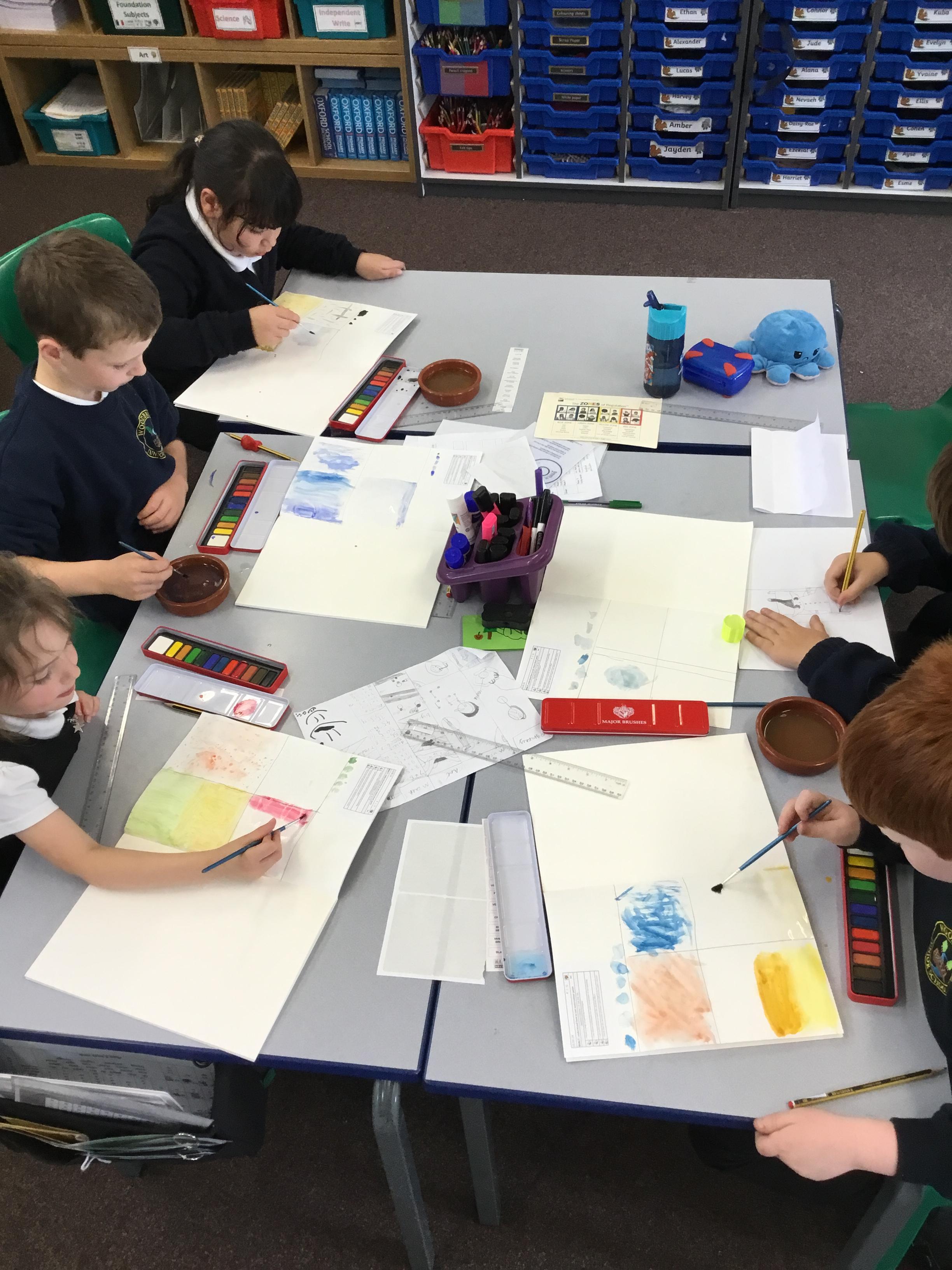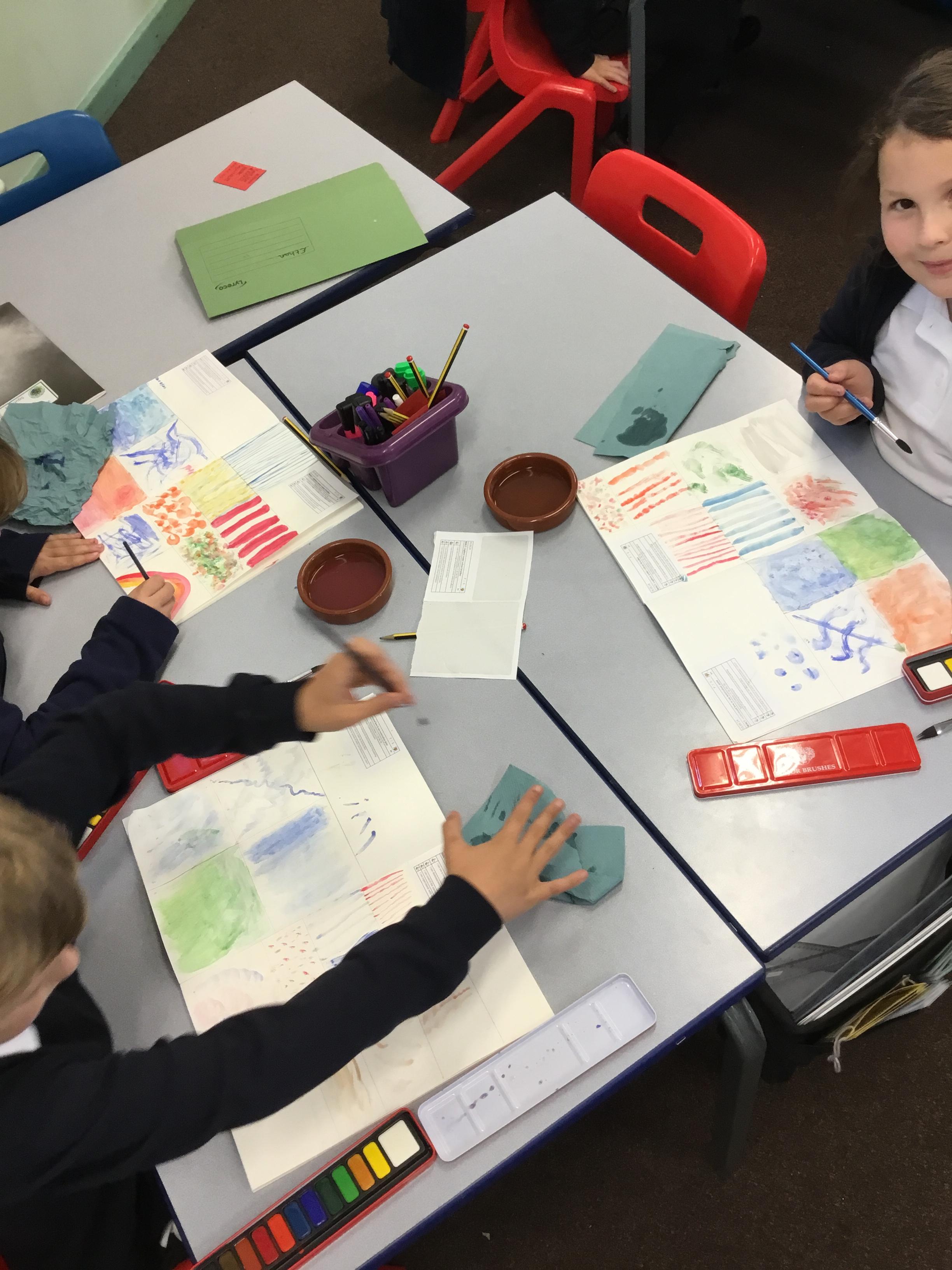 Art this week involved exploring the effects of water on water colour paints. We also experimented with different colour washes.