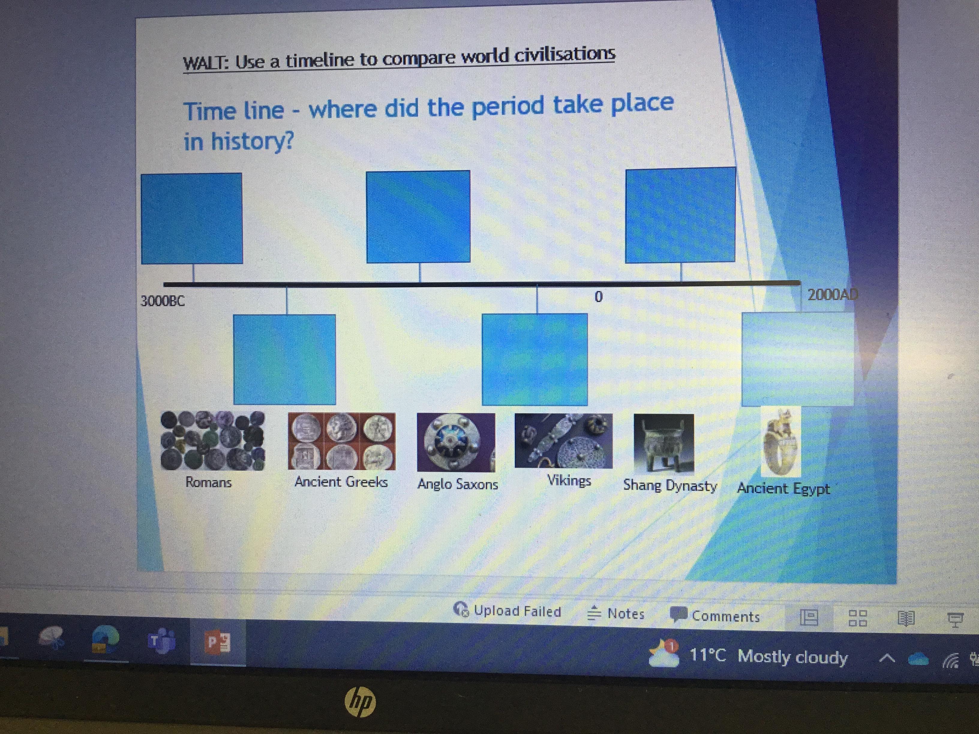 Tuesday 5th Nov - The challenge: To place these six civilisations in the correct chronological order. These children got 6/6. Impressive!