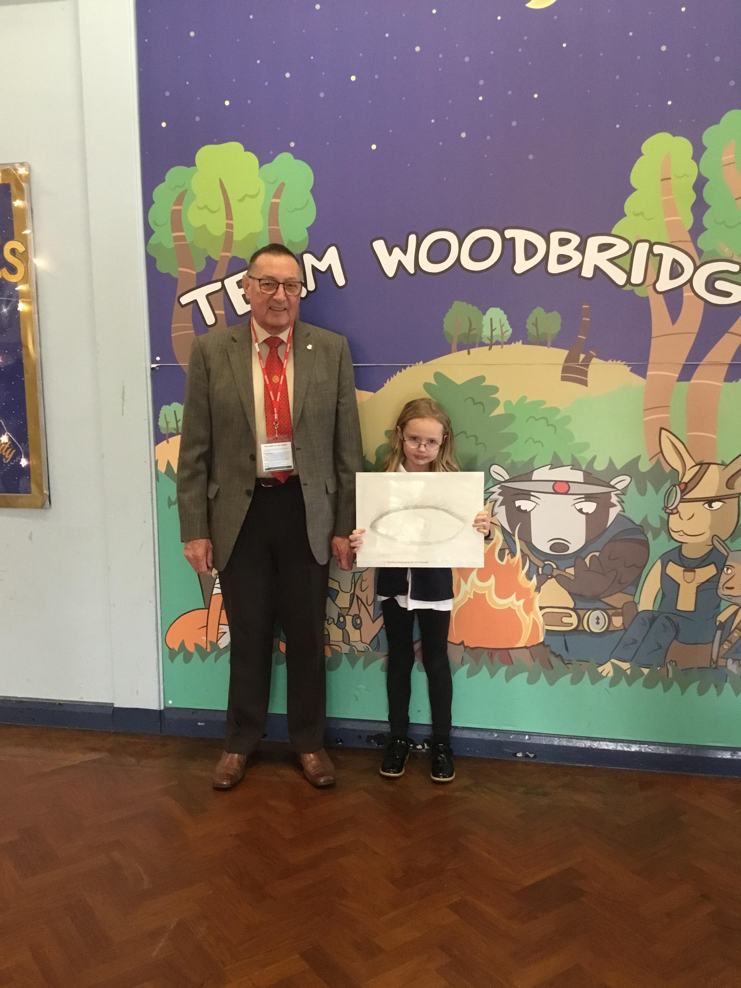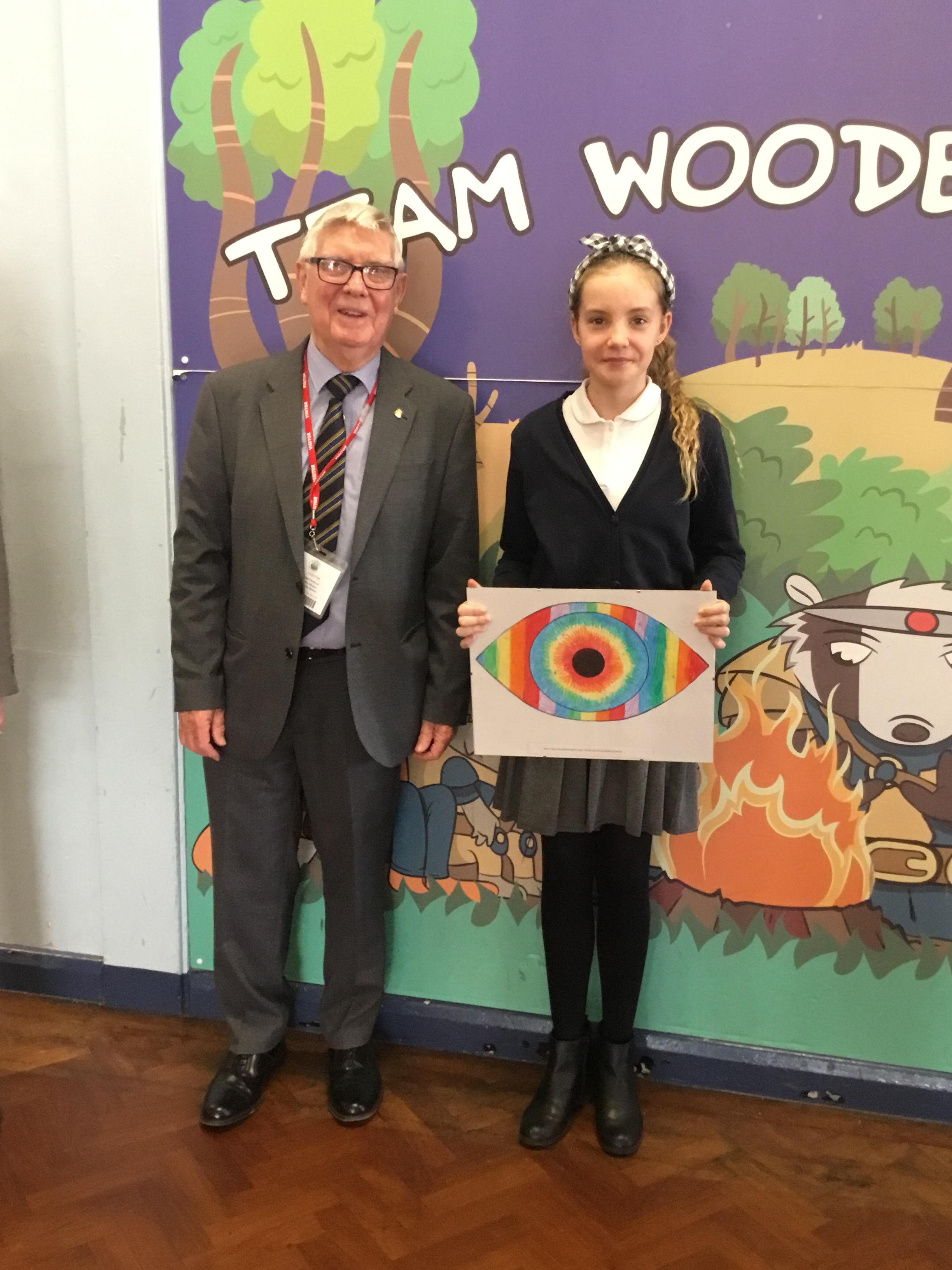 Young Artist Competition winner with Norma Gent Artist and judge and Mandy Oldknow, Roger Holdroyd and Roger Stevenson from Alfreton Rotary Club