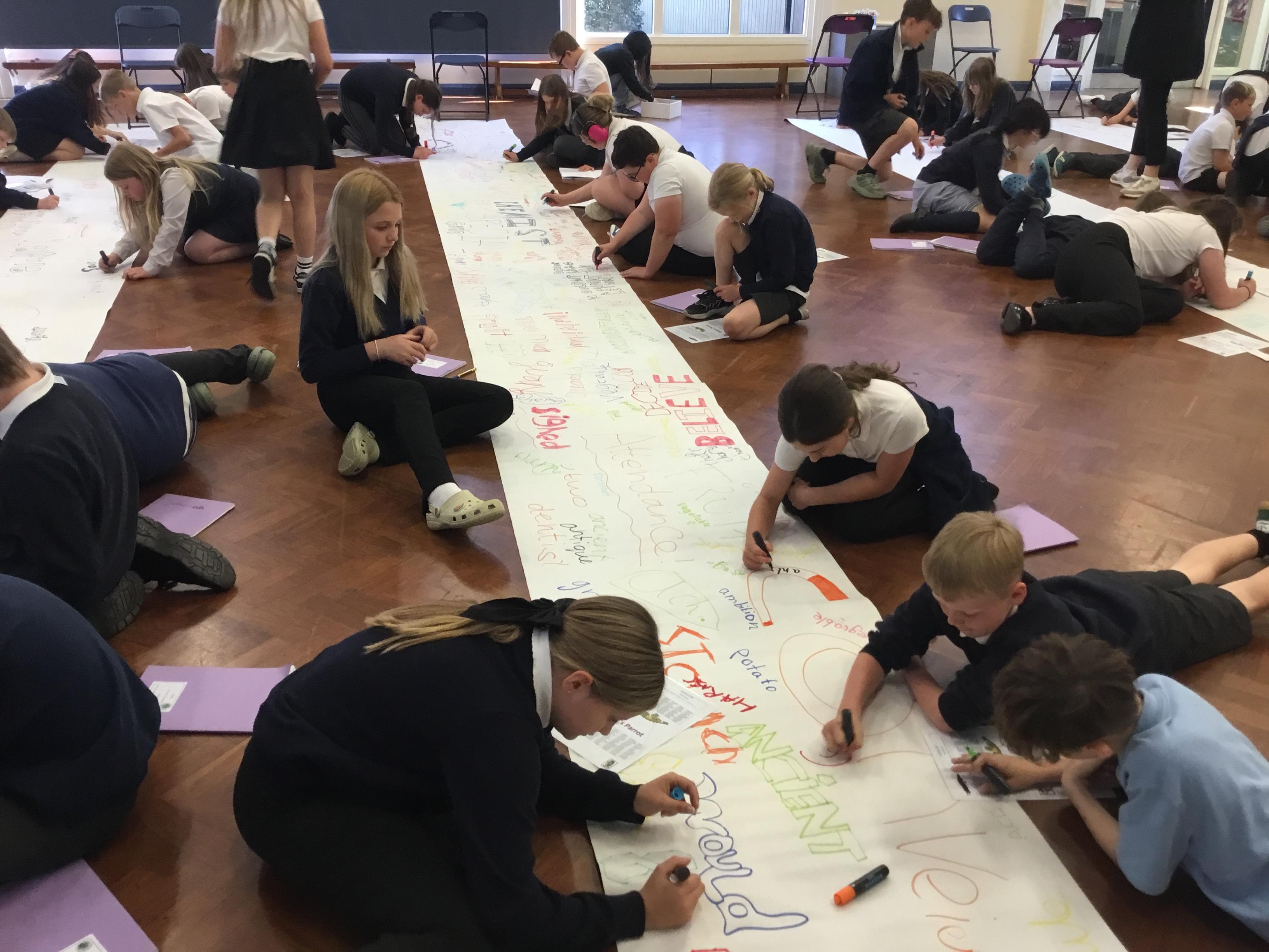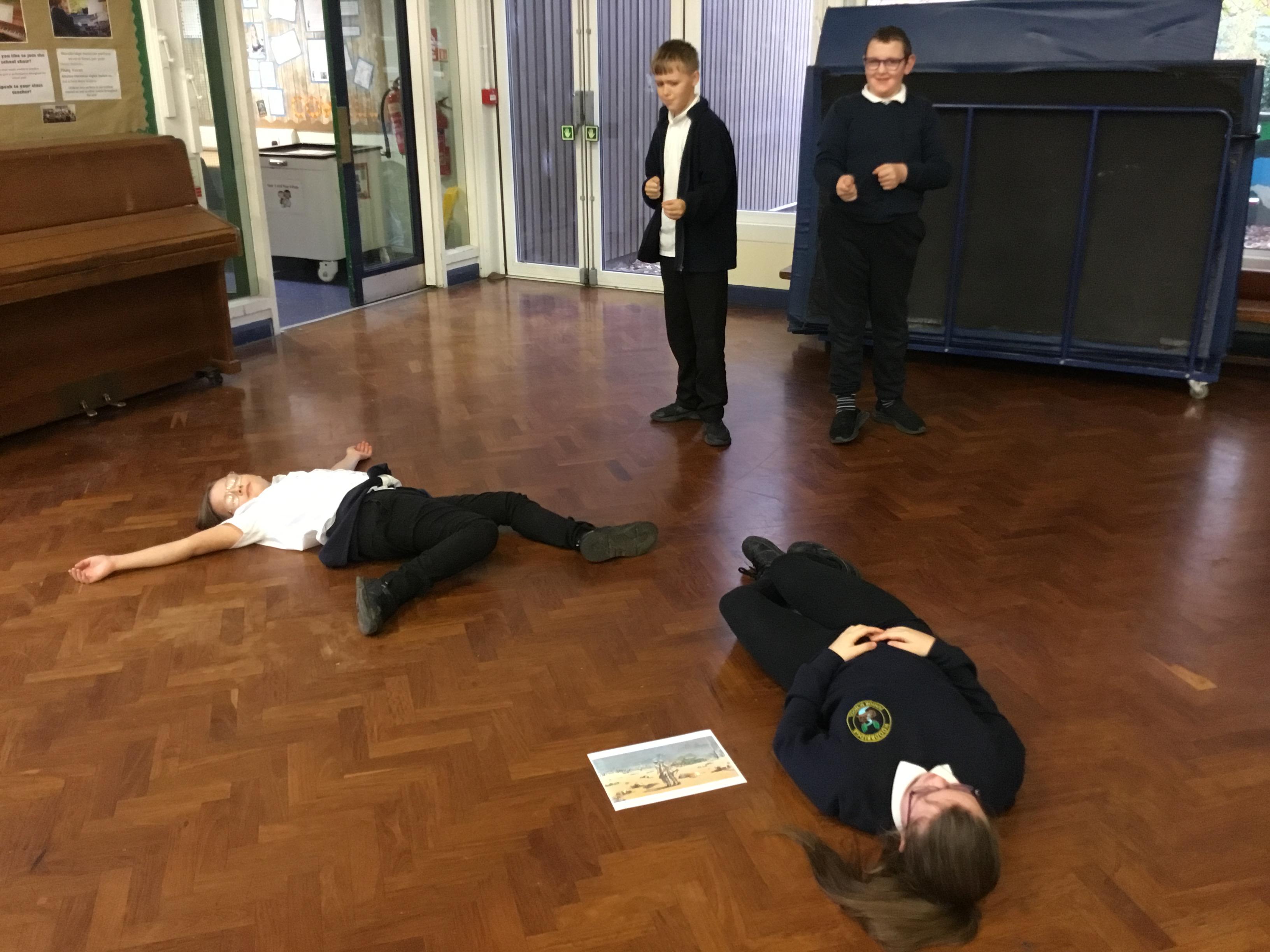 Year 6 - Owls enjoying a drama session depicting the life of Nelson Mandela.