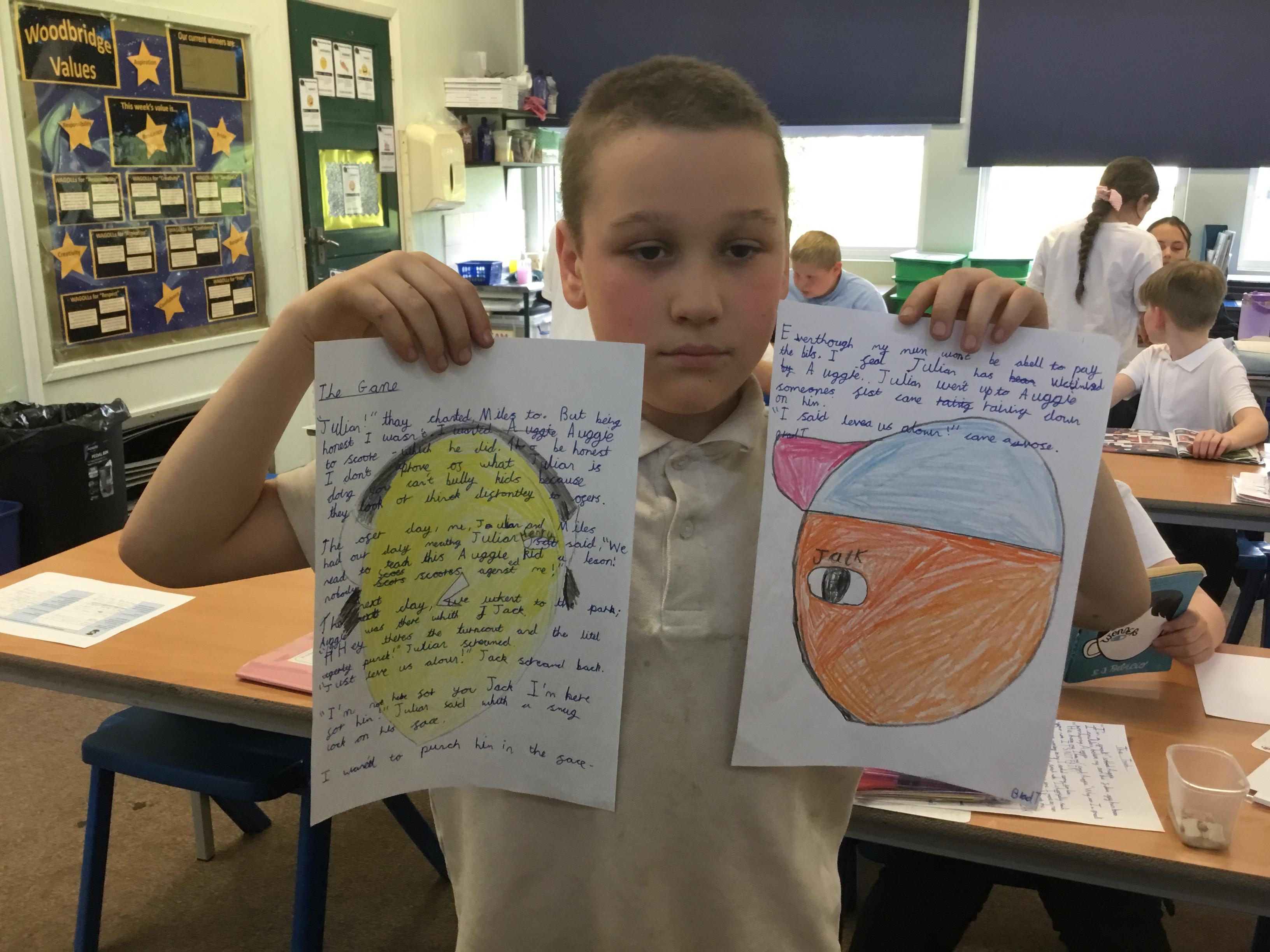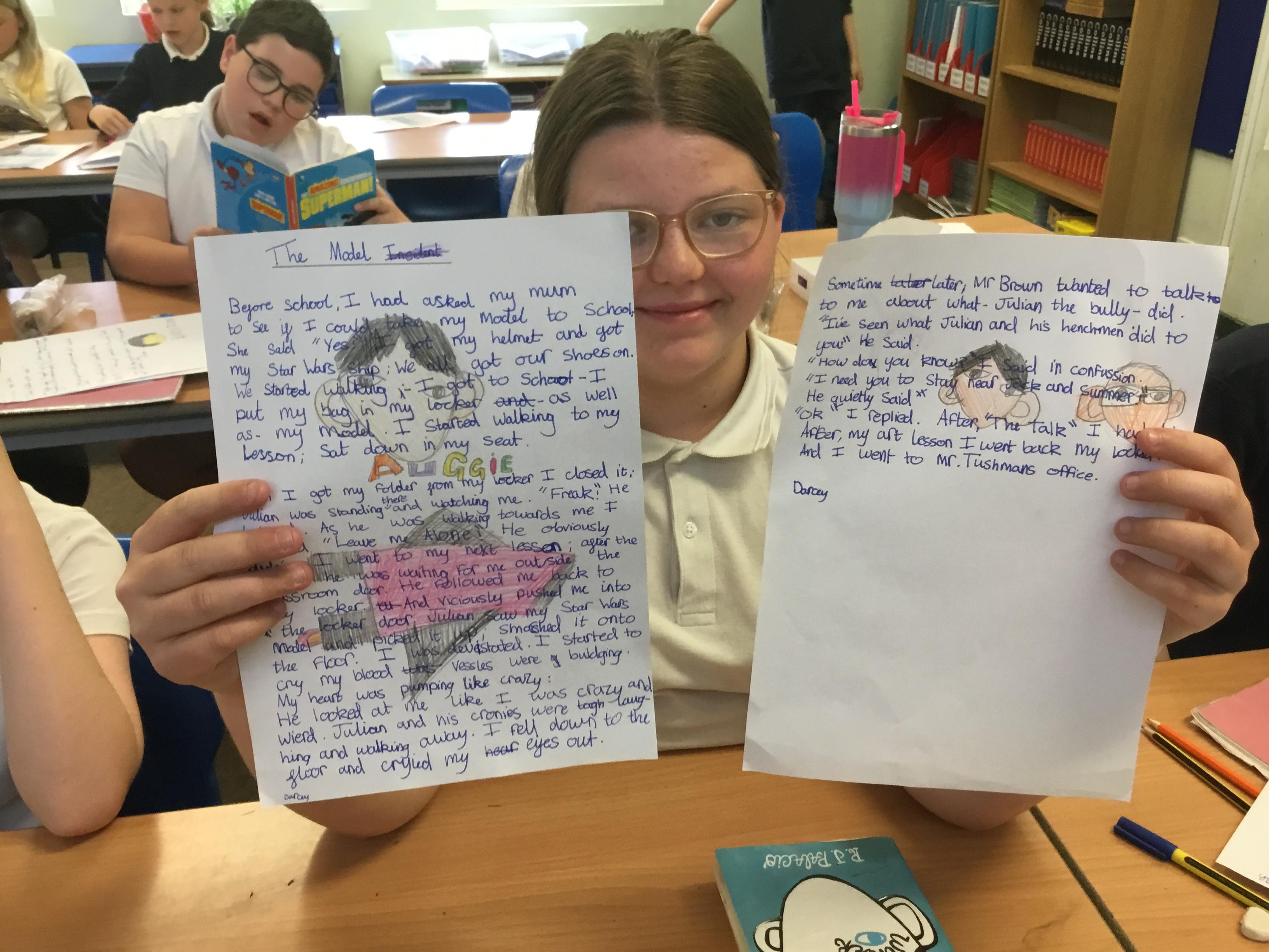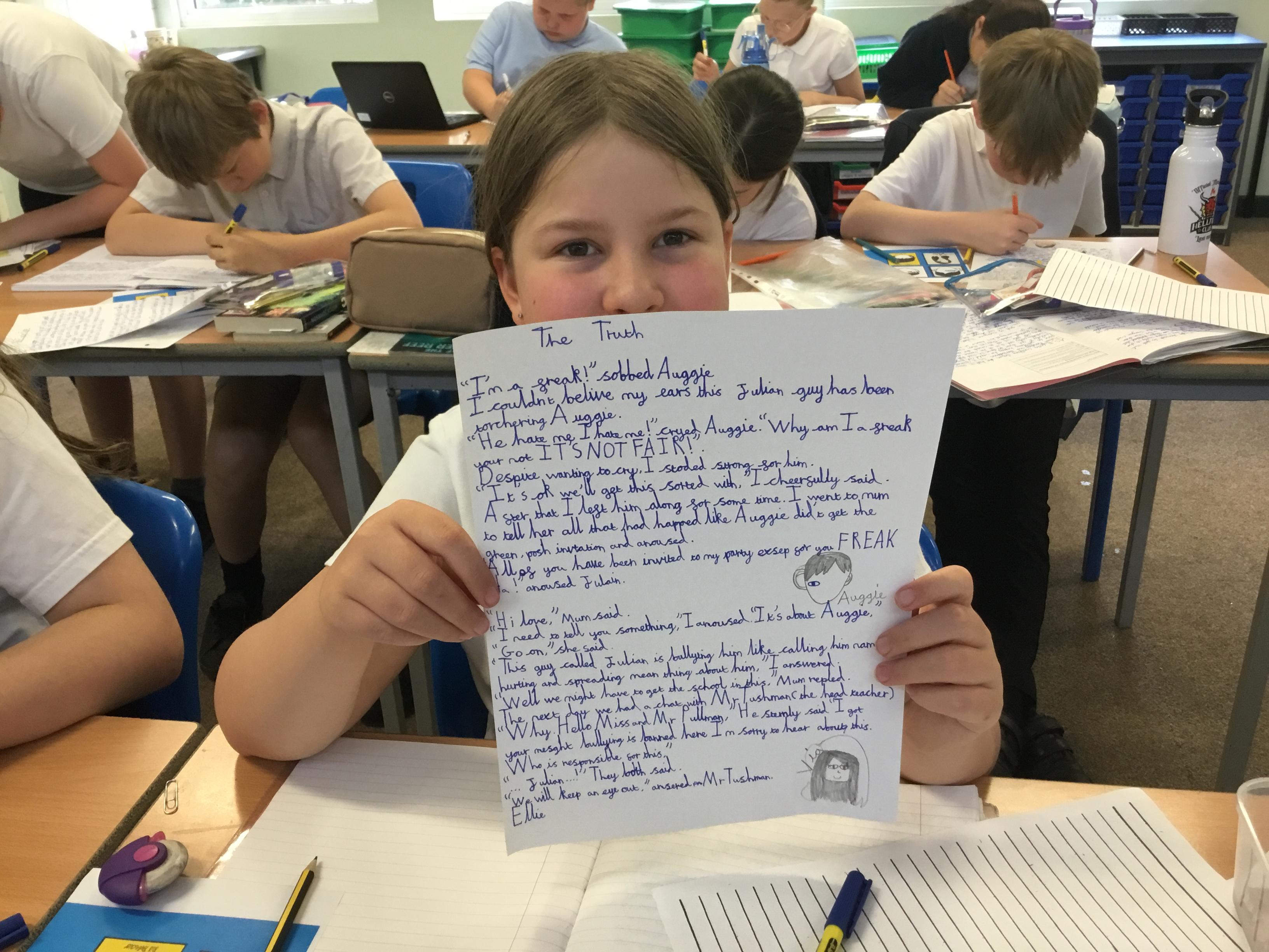 Eagles writing their draft version of their recount from the perspective of one of the characters in Wonder.