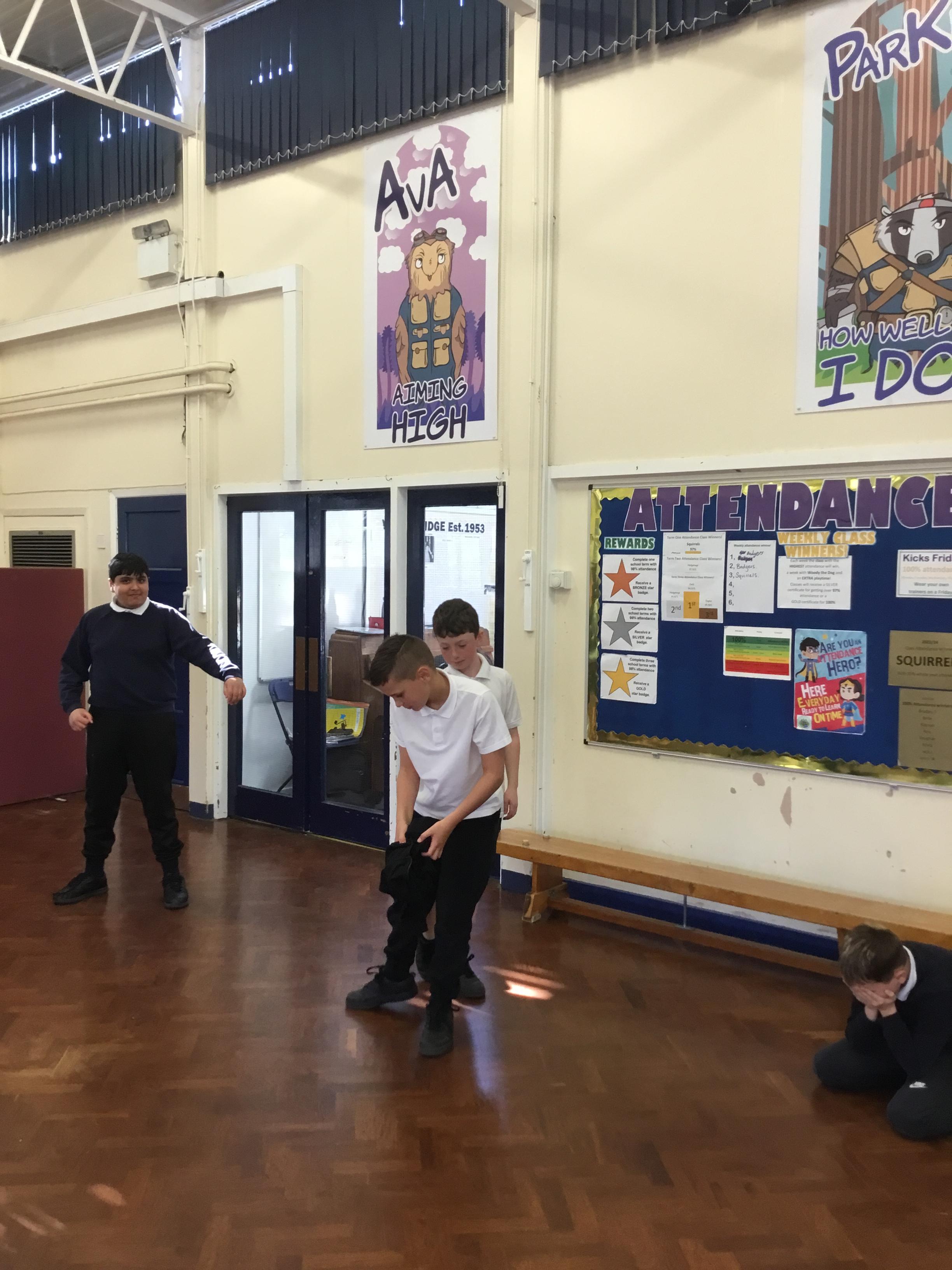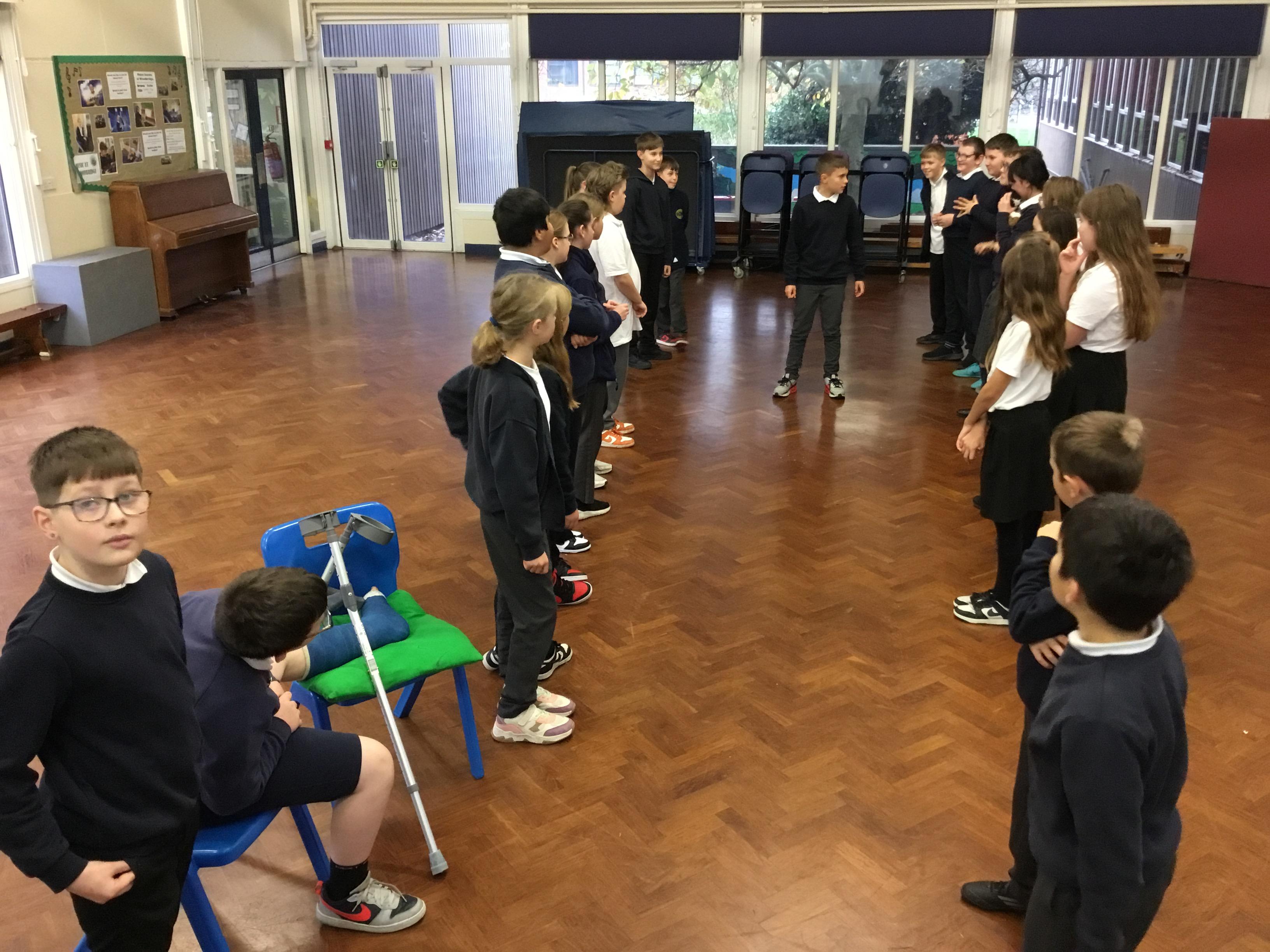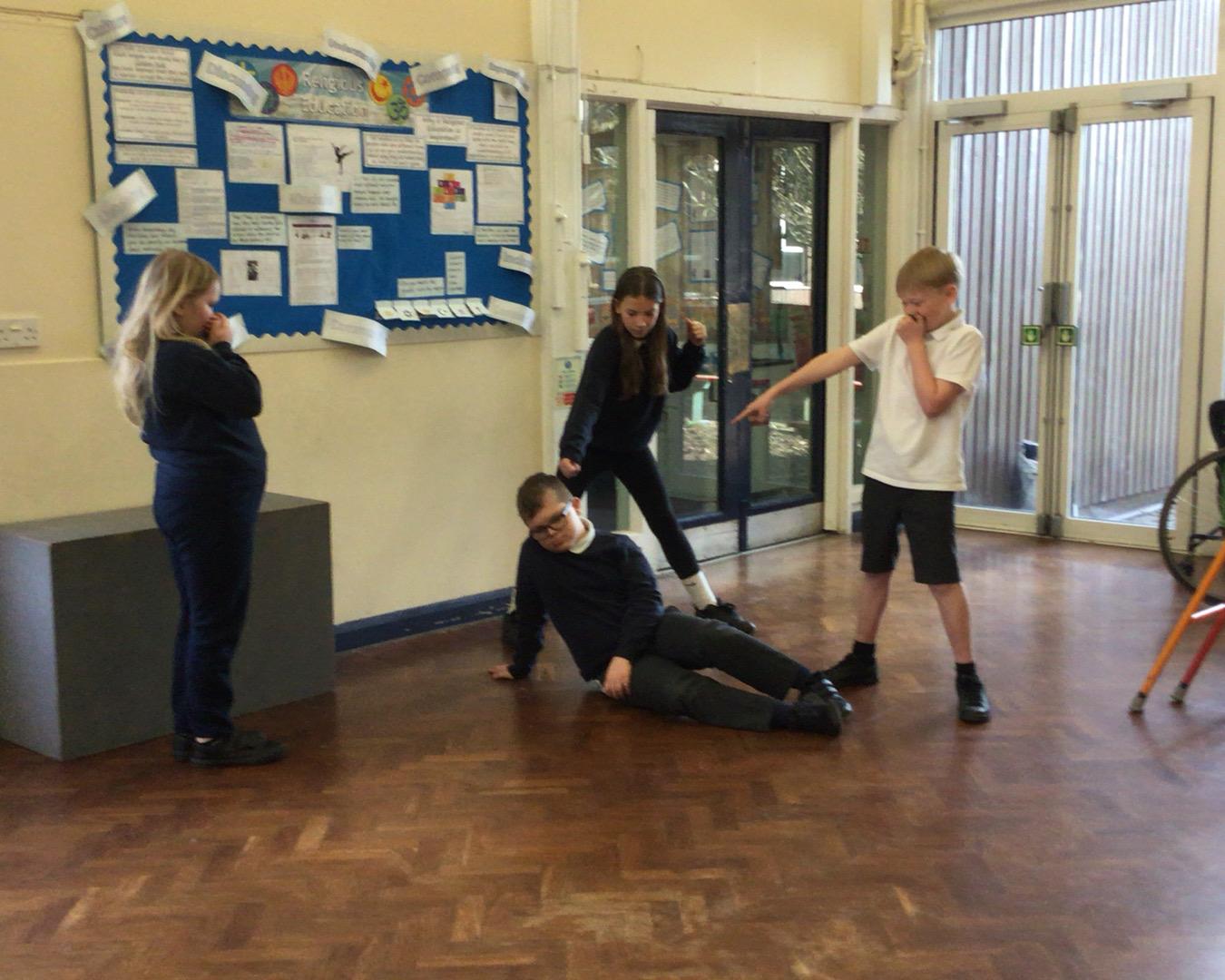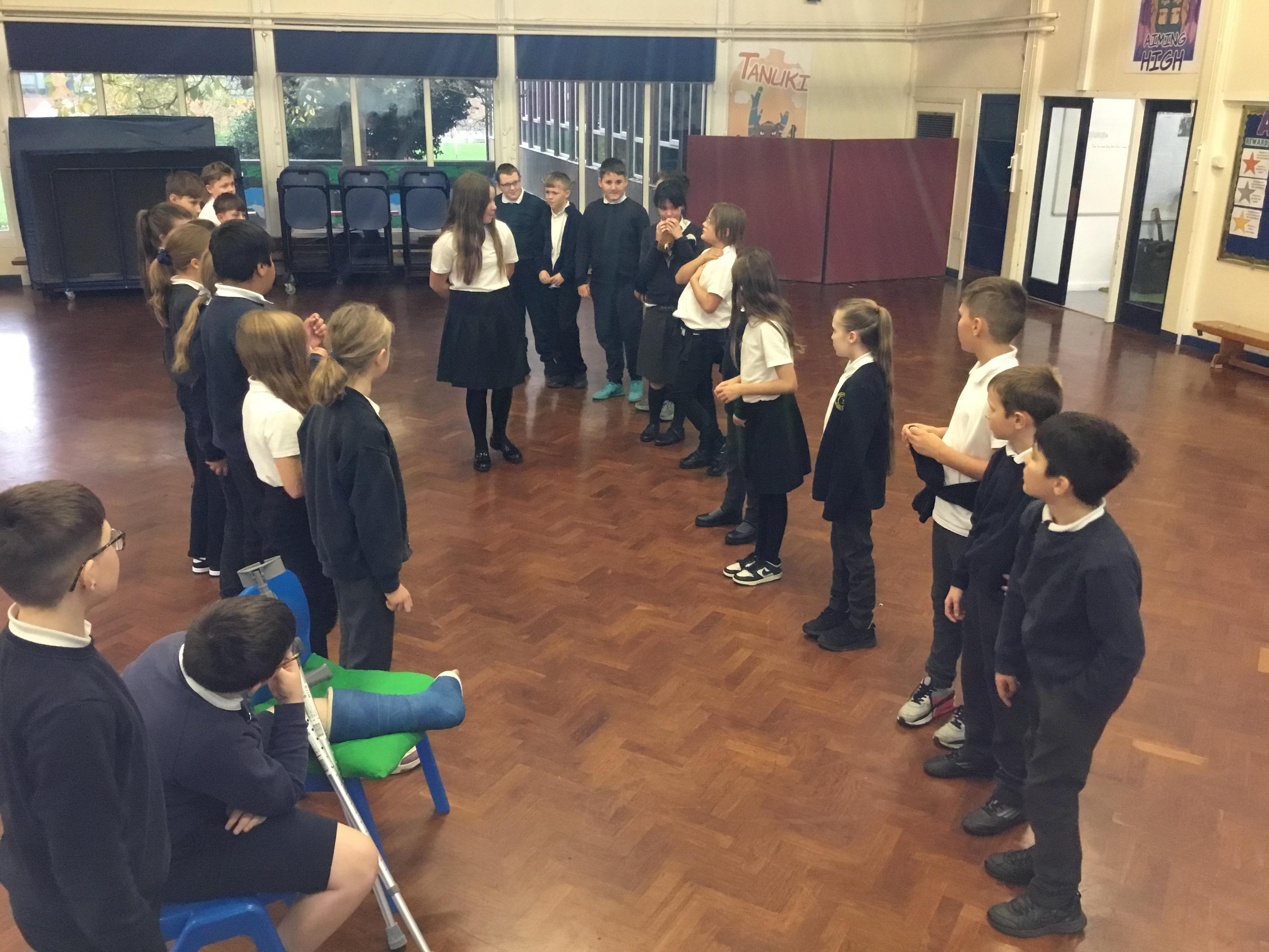 Year 6 enjoying their Drama! We were looking at the characters in our class reader, "Wonder".
