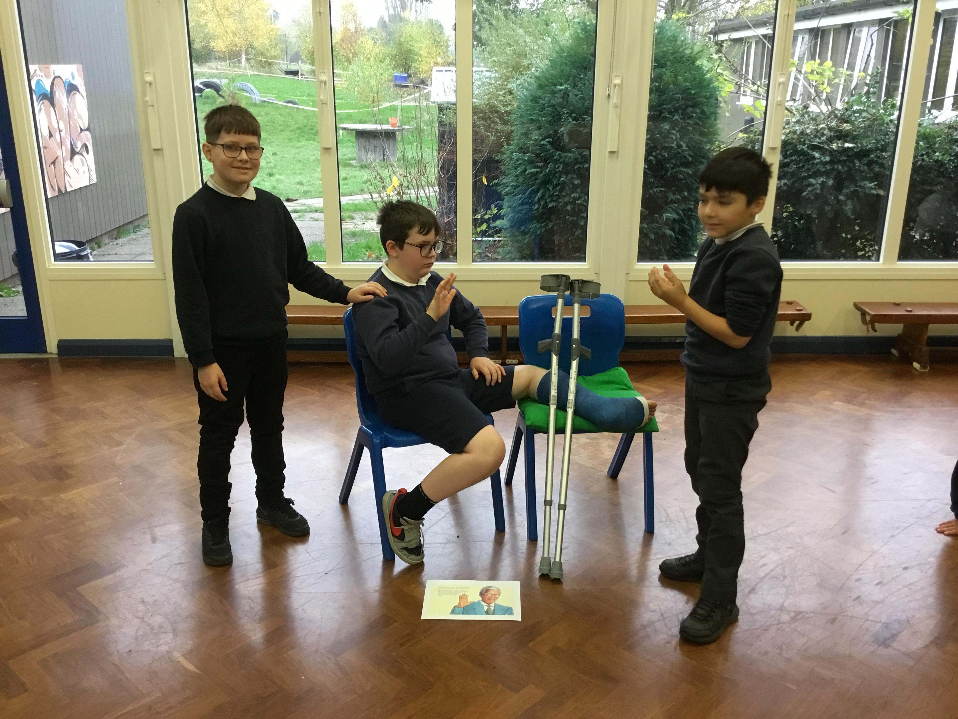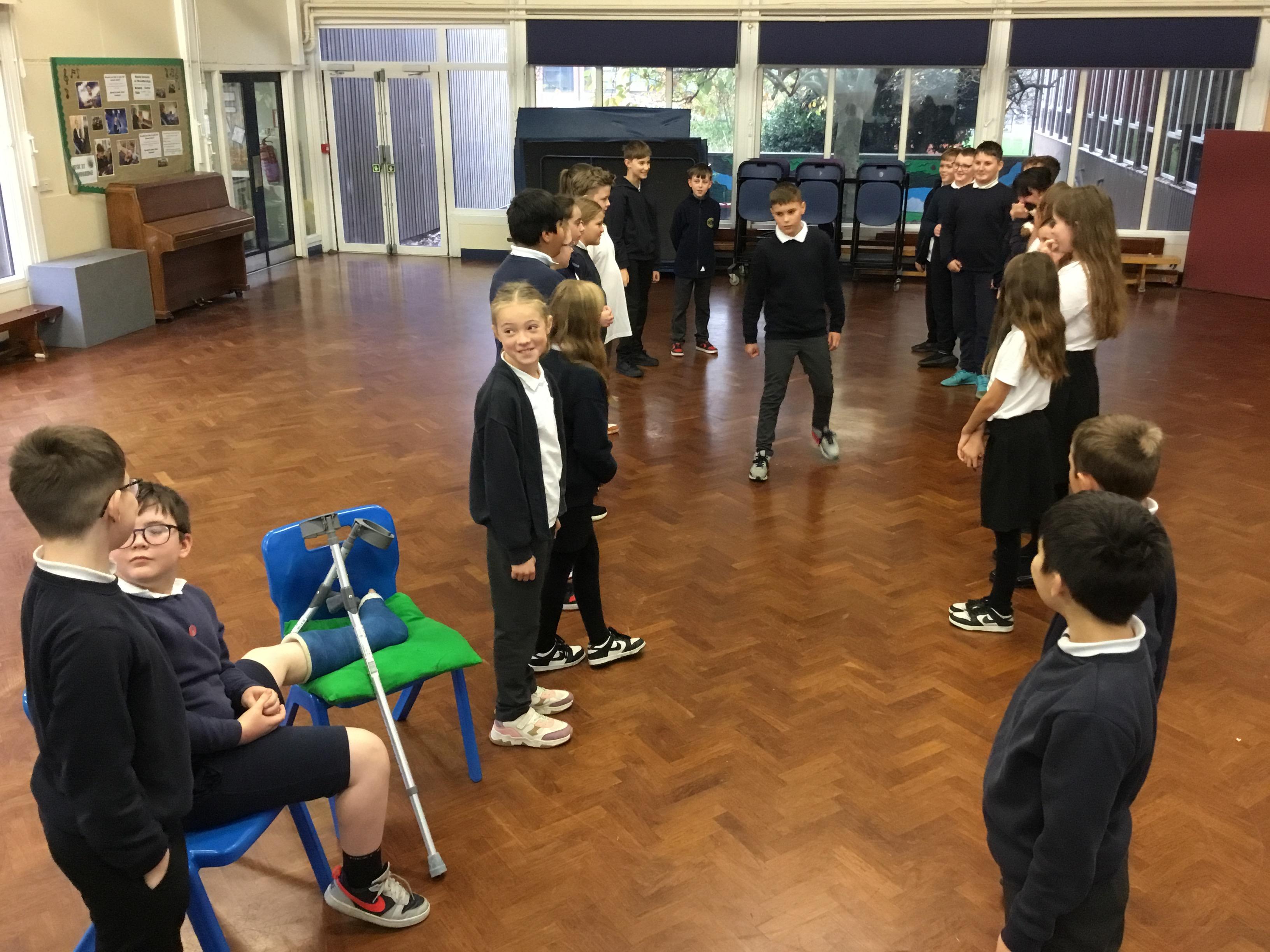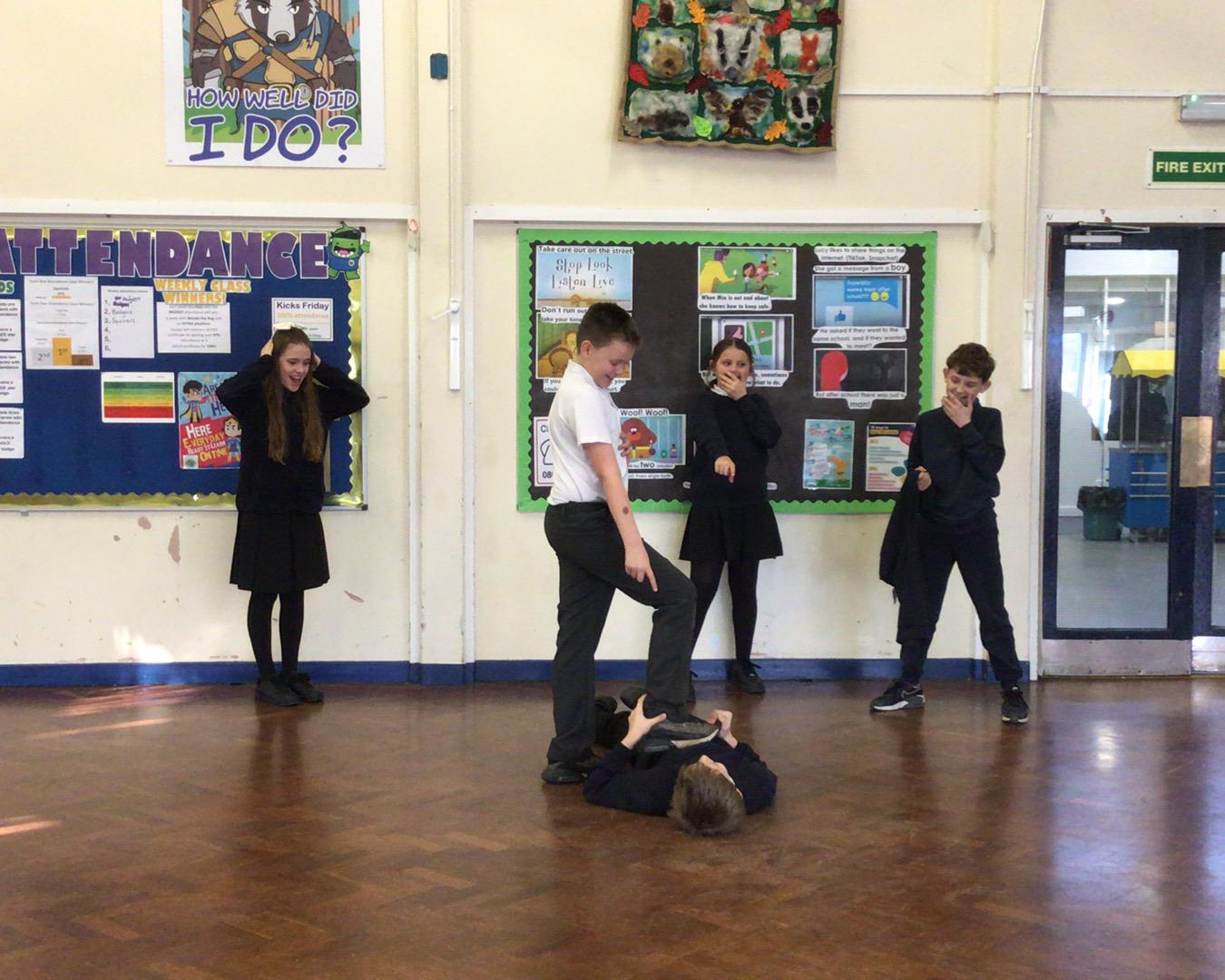 Year 6 enjoying their Drama! We were looking at the characters in our class reader, "Wonder".