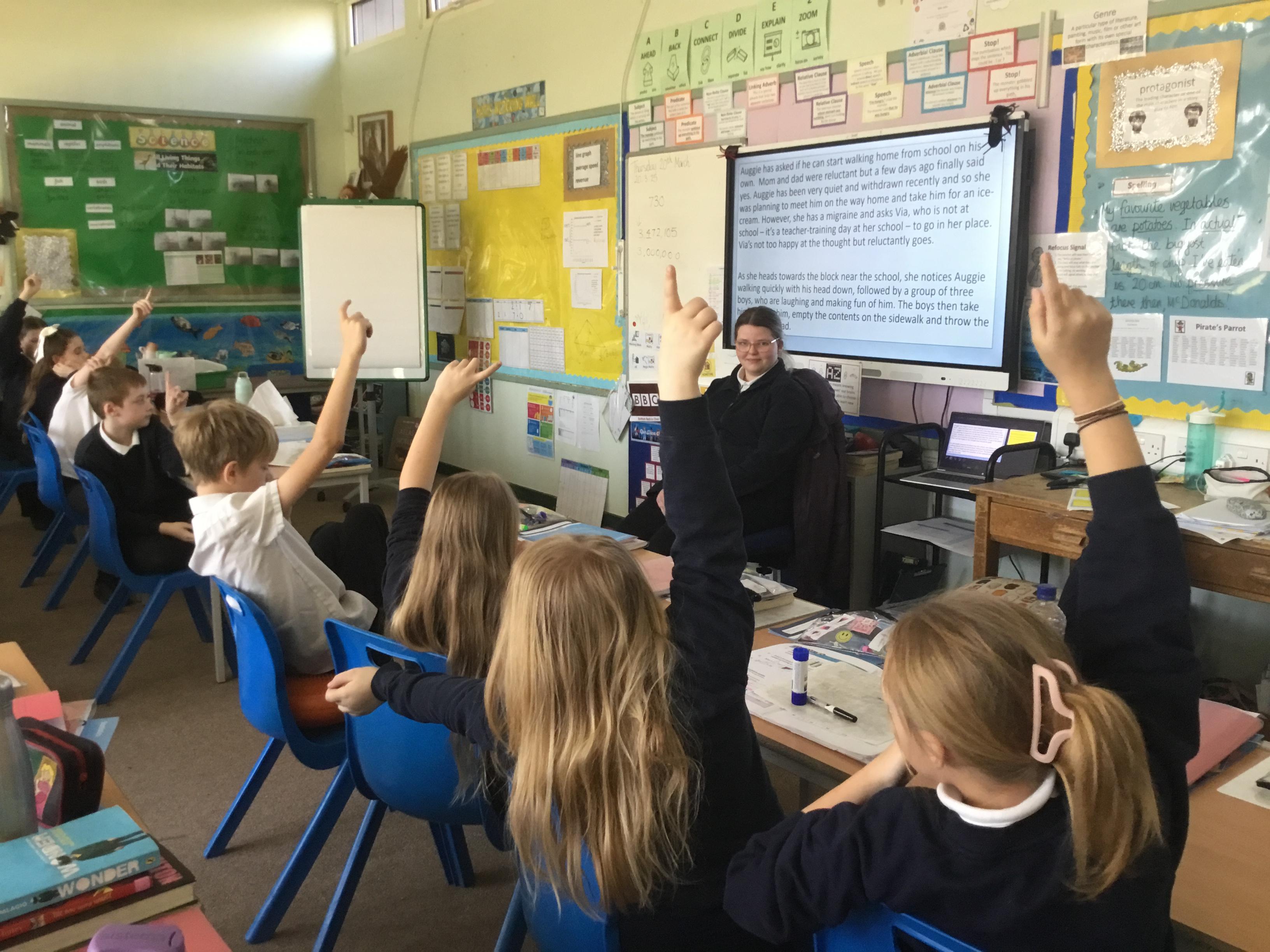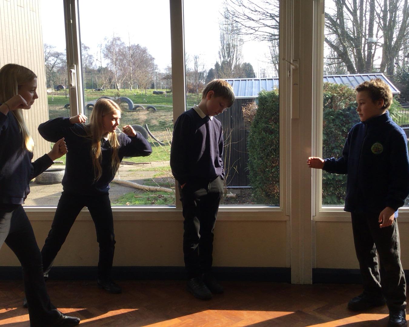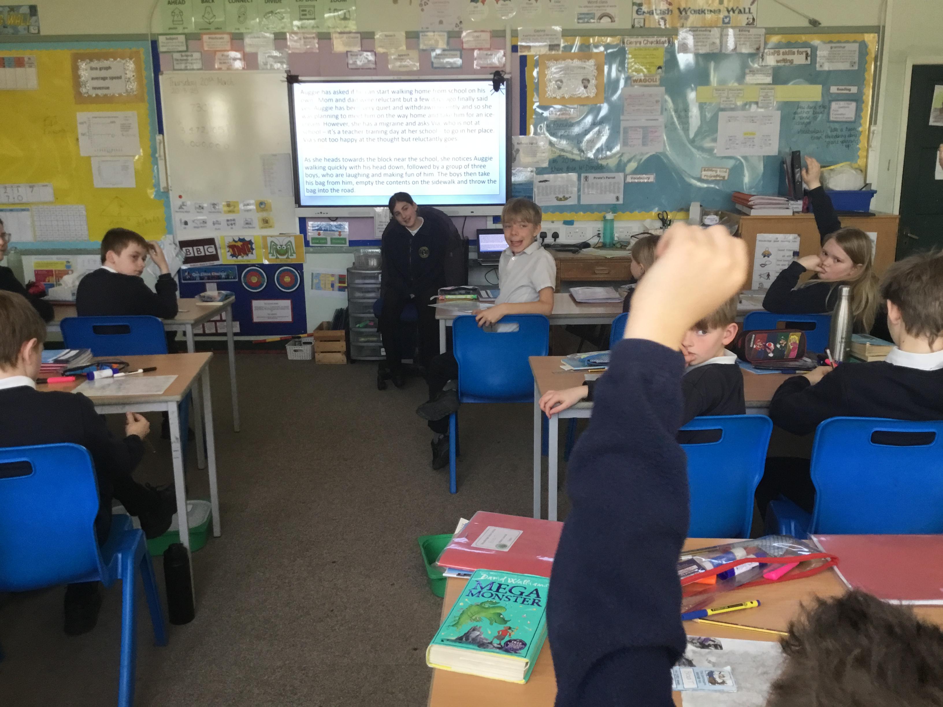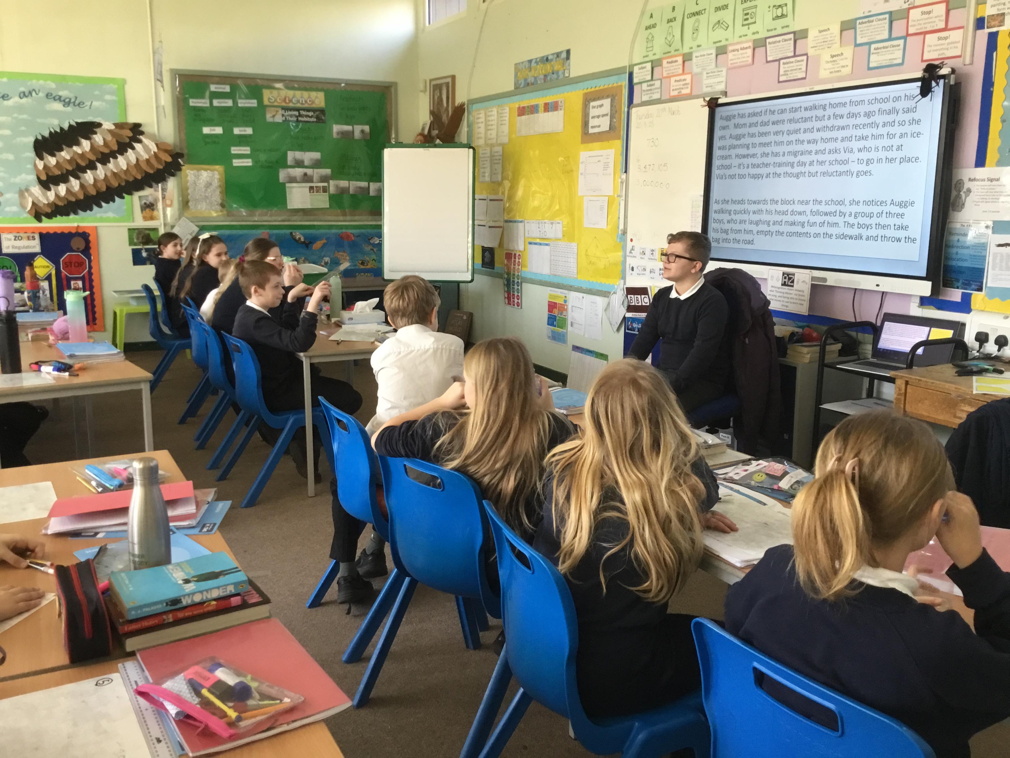 Year 6 enjoying their Drama! We were looking at the characters in our class reader, "Wonder".