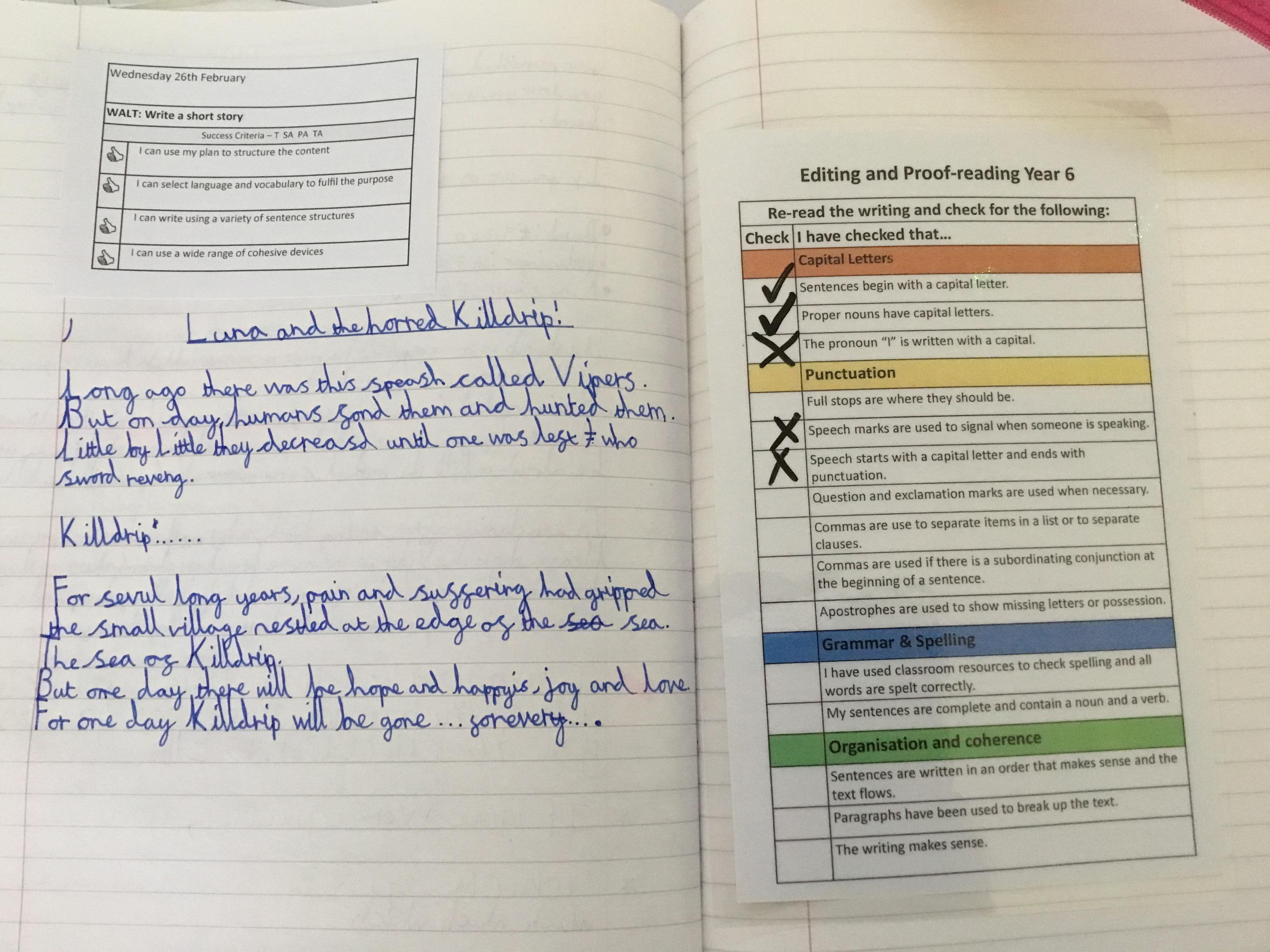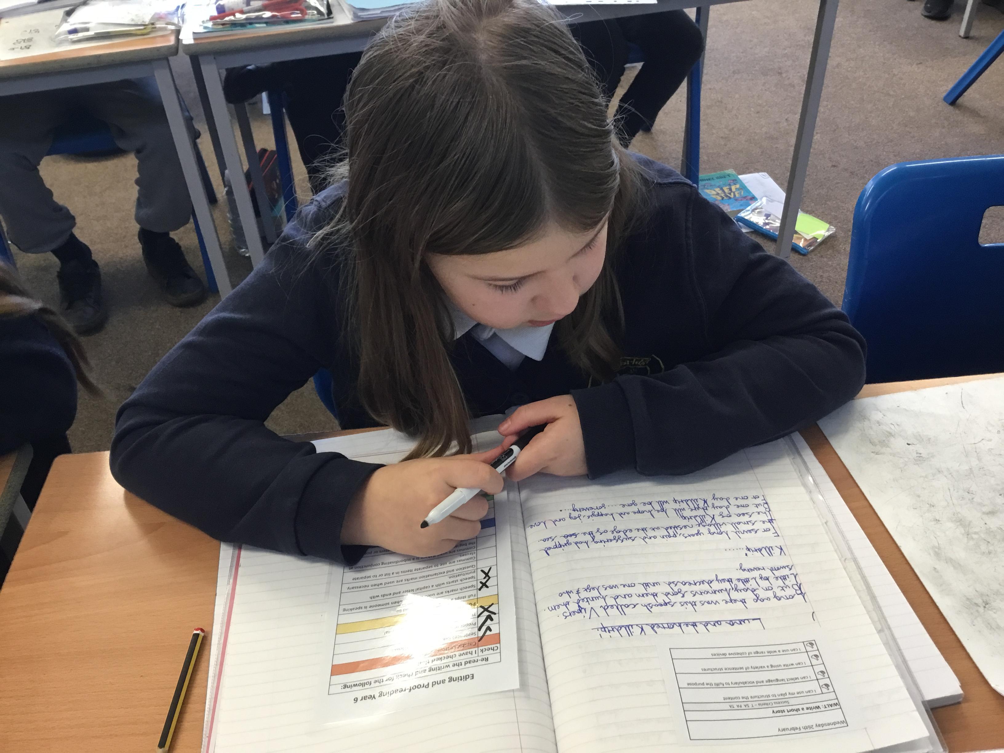 Year. 6 Eagles using their checklist to proof-read and edit their writing.