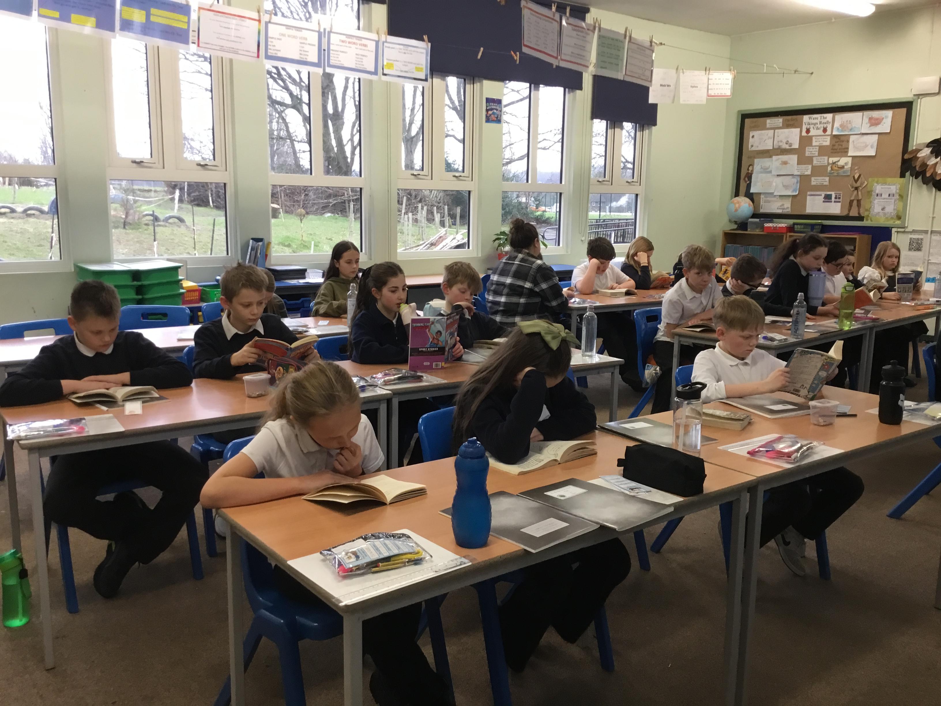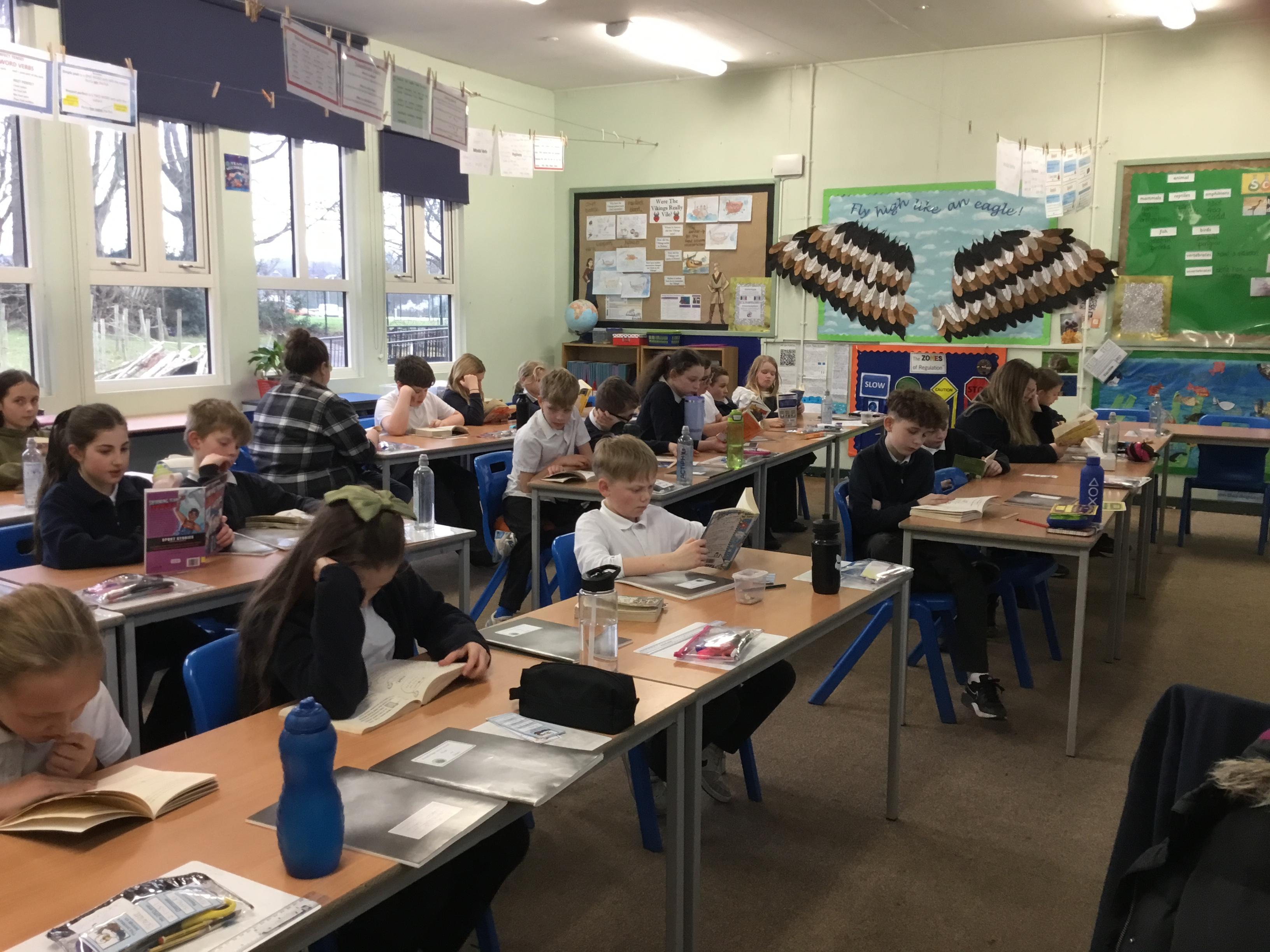 Year 6 enjoying our reading session after lunch. Lucas would recommend this book!
