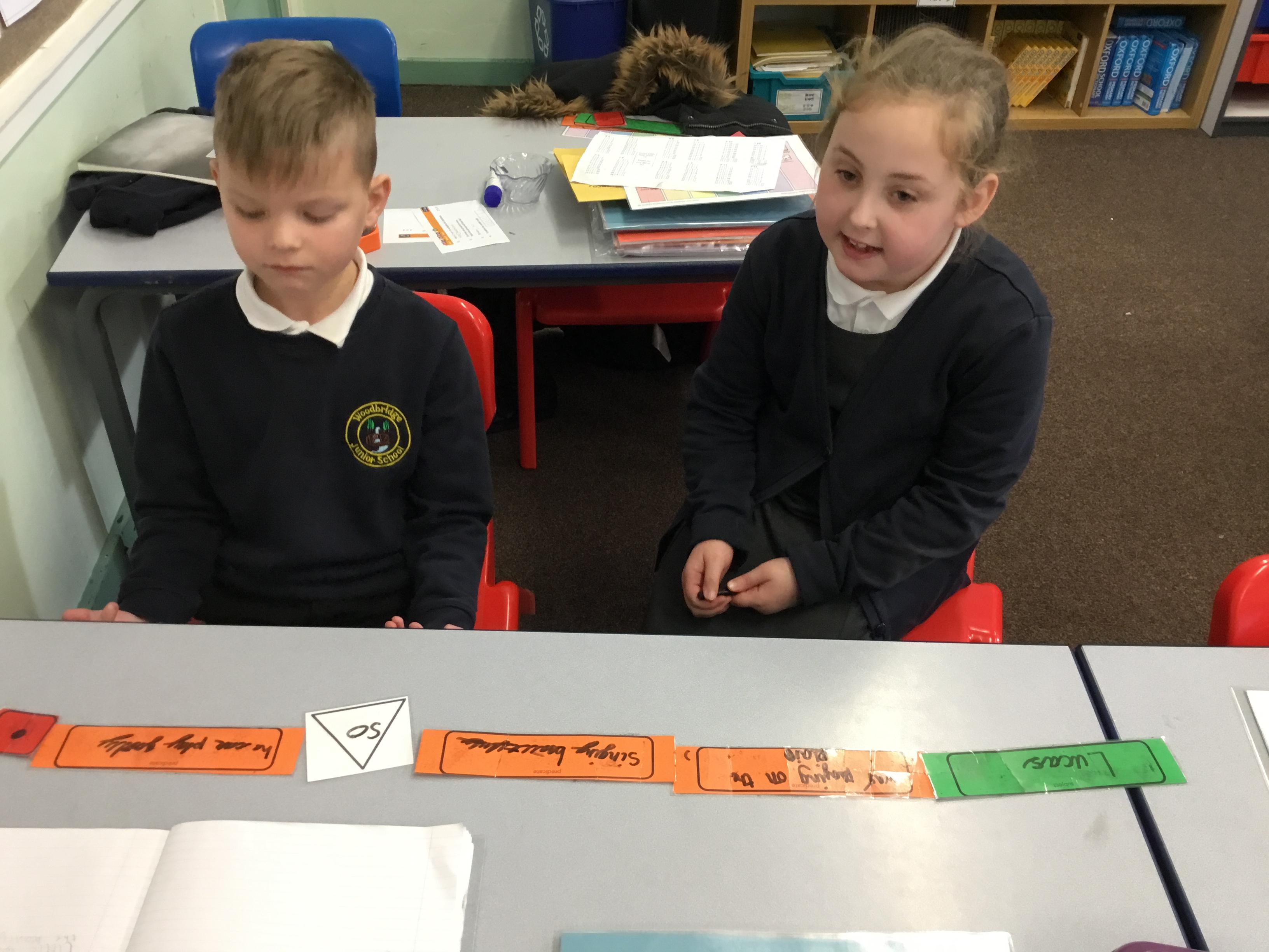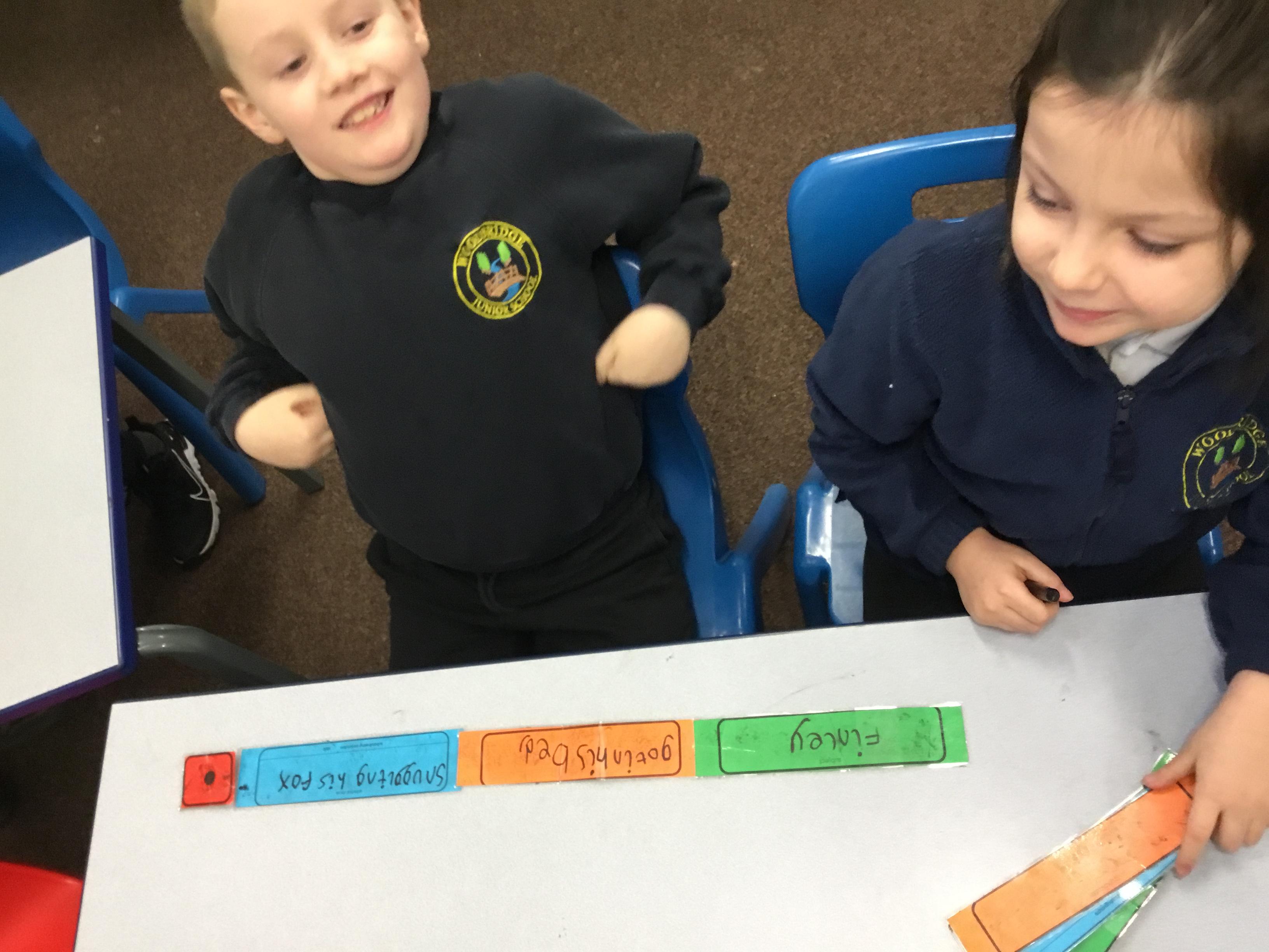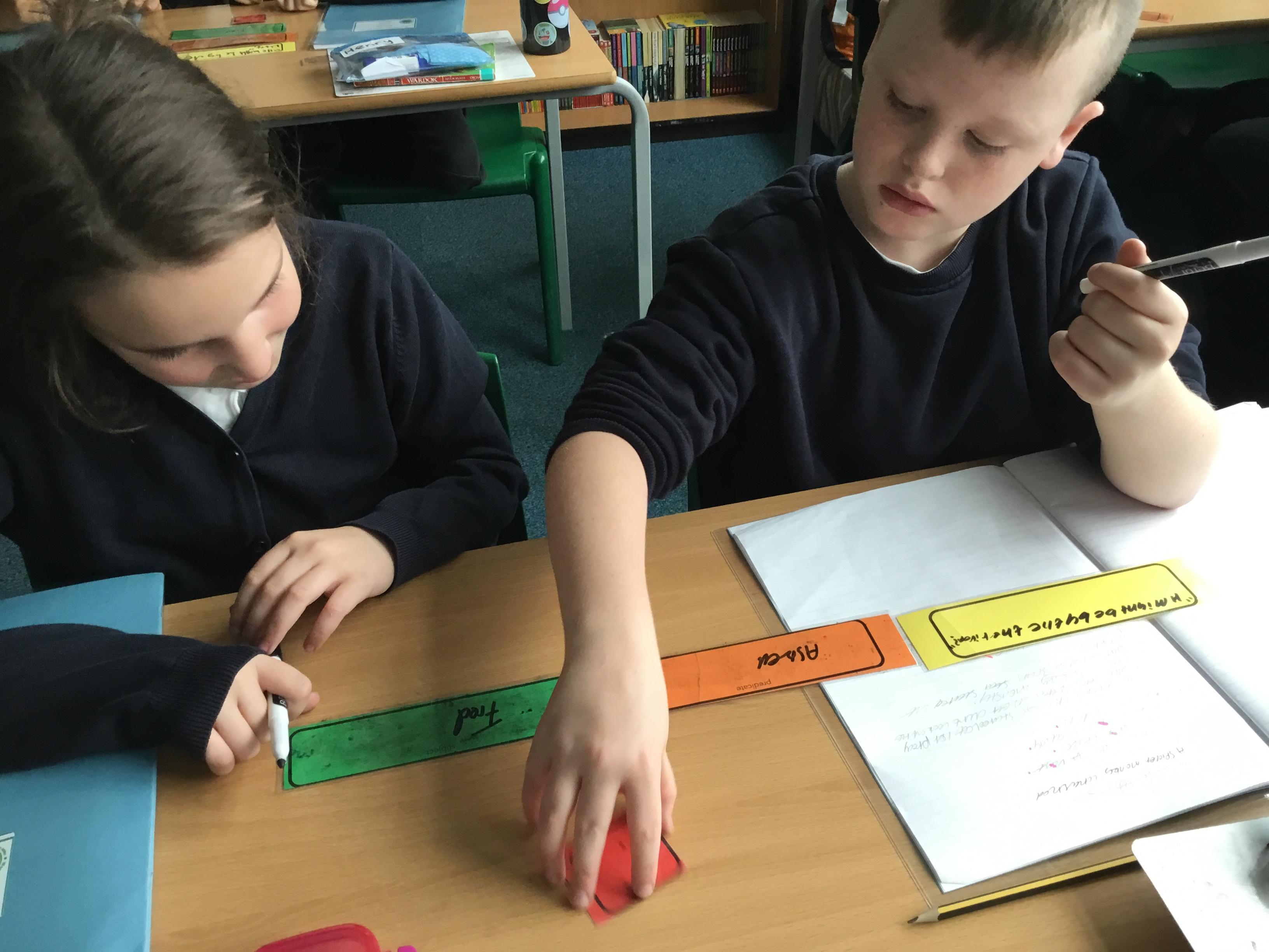 Year 3 practicing non- finite clause with Rainbow Grammar cards.
