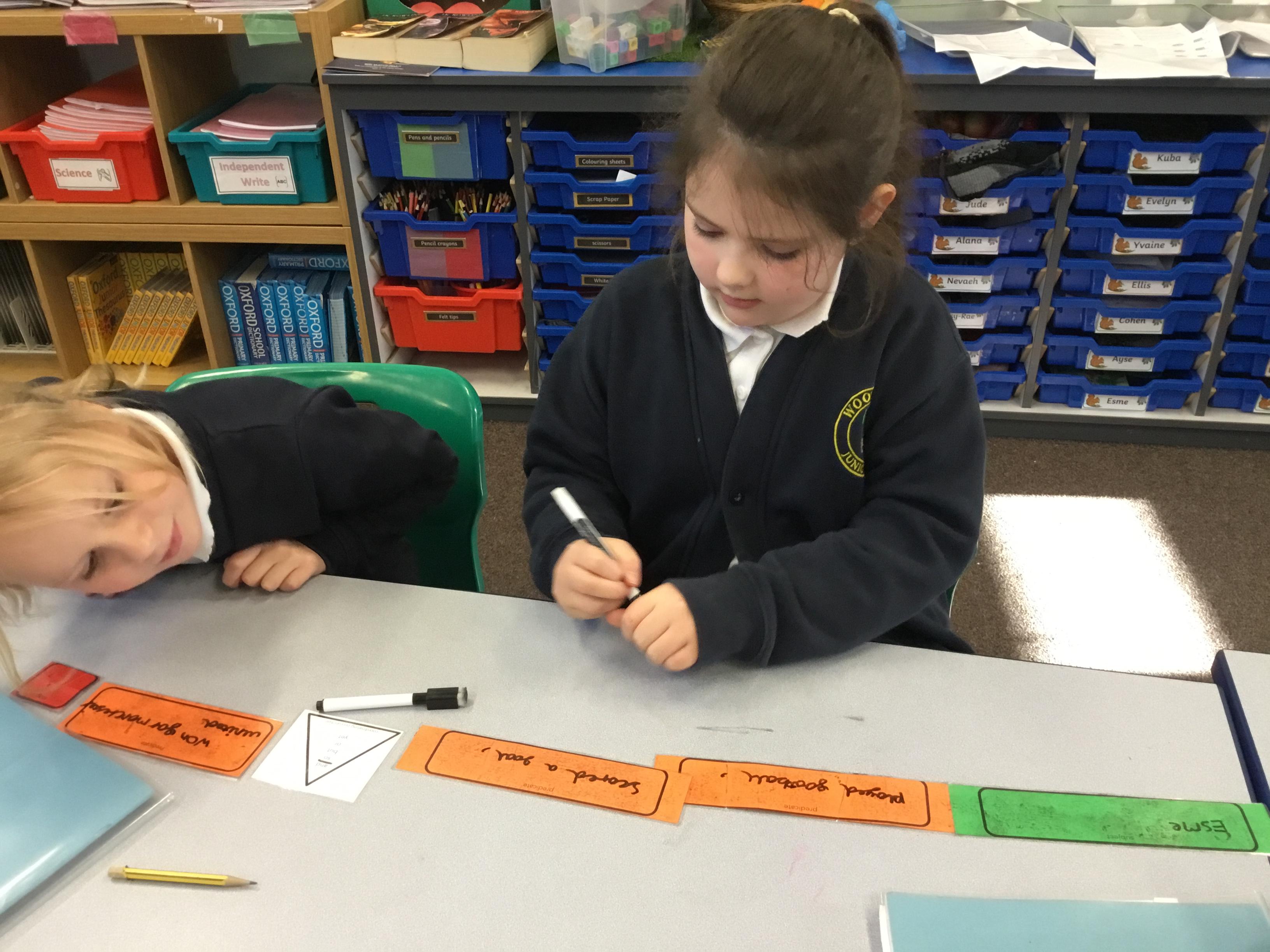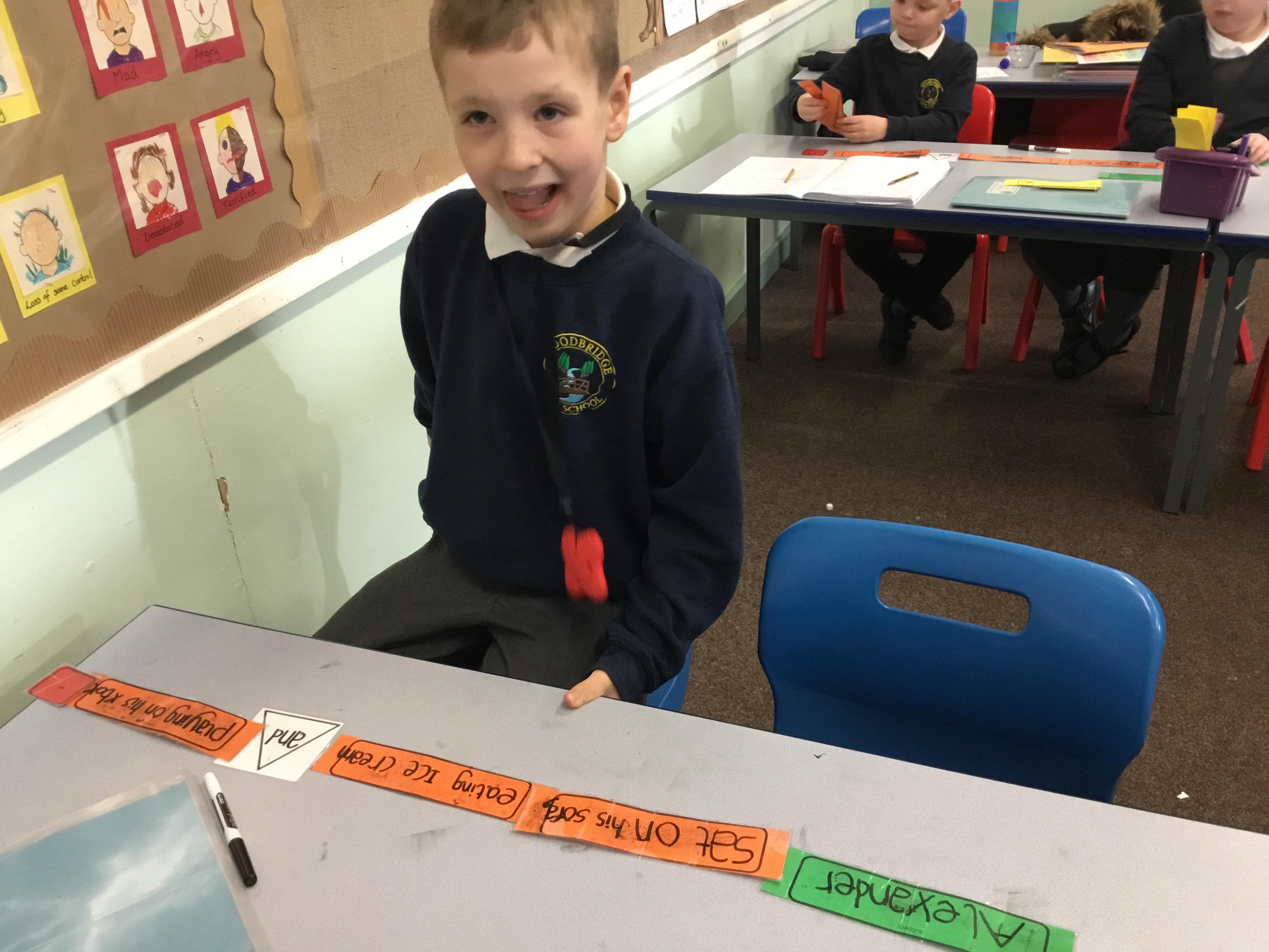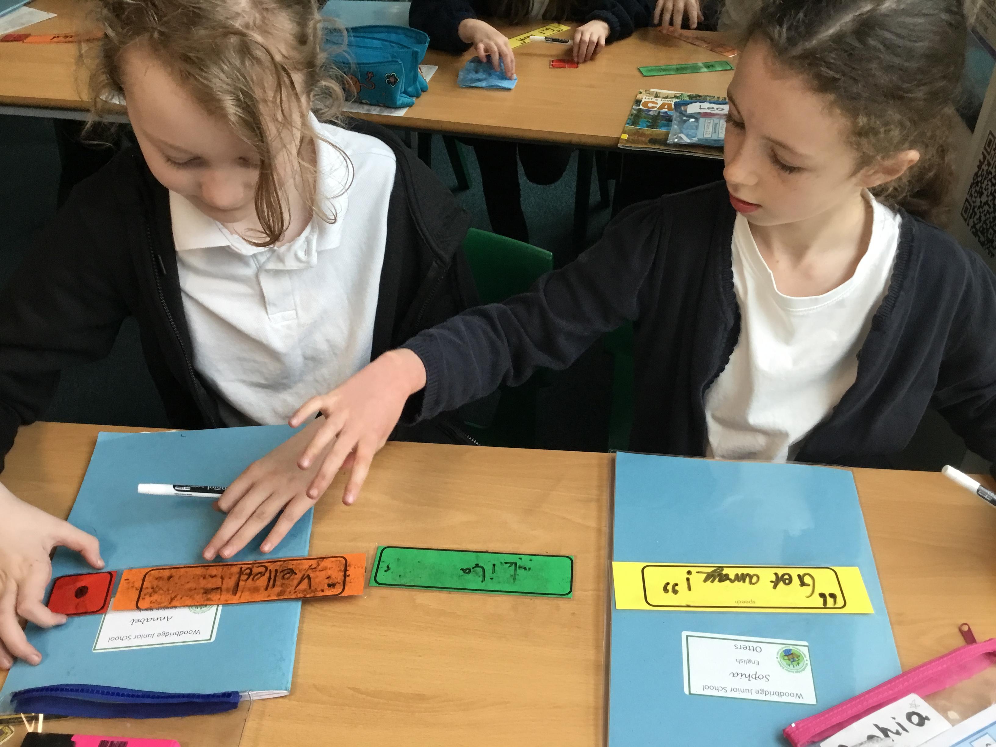 Year 3 practicing non- finite clause with Rainbow Grammar cards.
