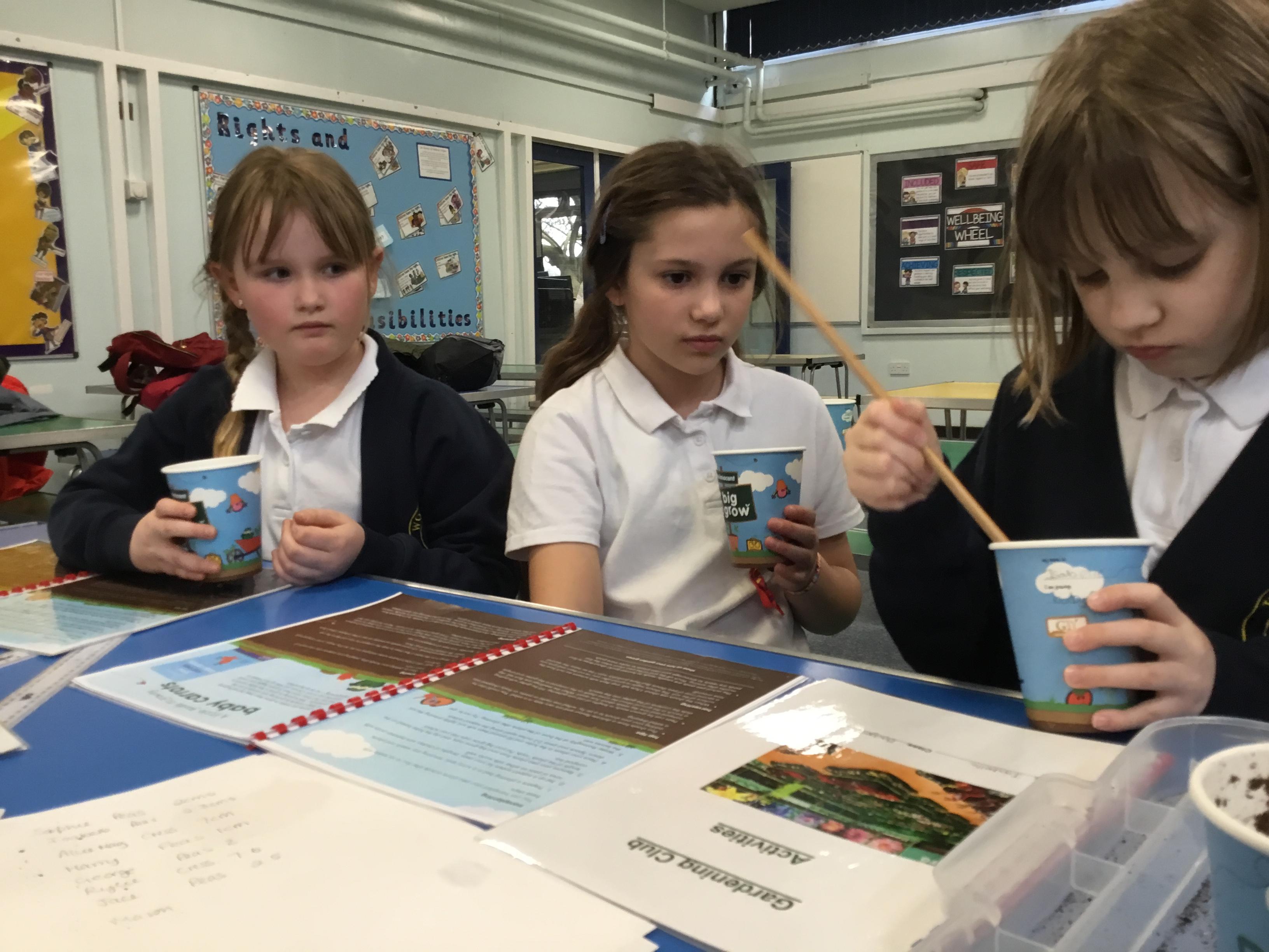 Gardening club Spring term 2 planting cress, peas and carrots.