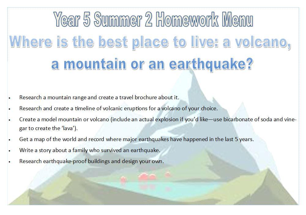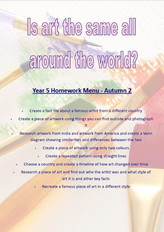 You will find a list of activities below to choose from. These can be completed during the term and brought into class to be shared and celebrated. Children will be rewarded Dojos for their efforts.