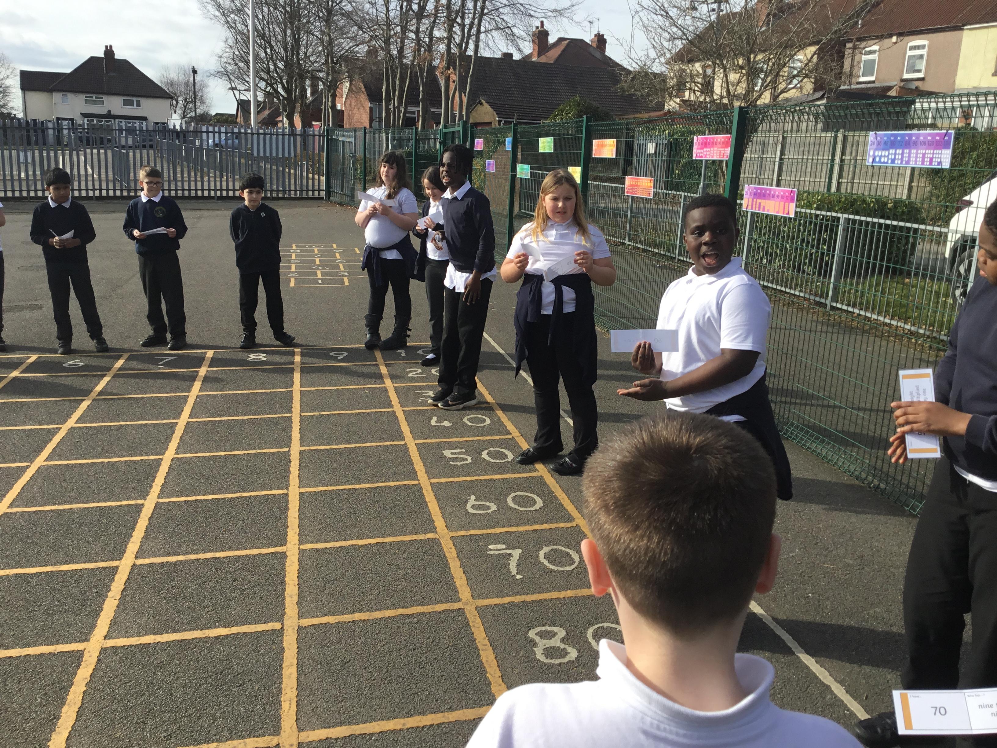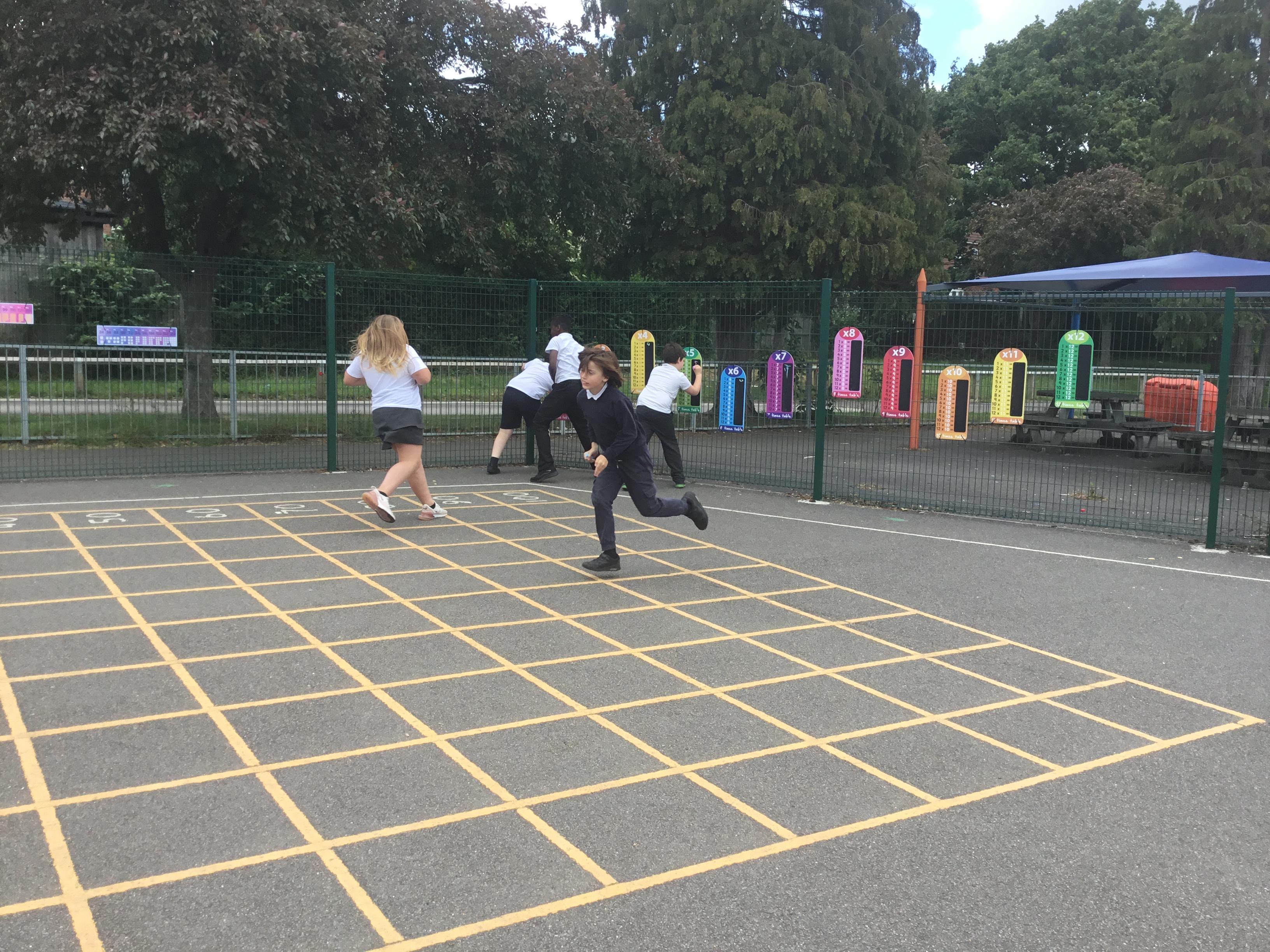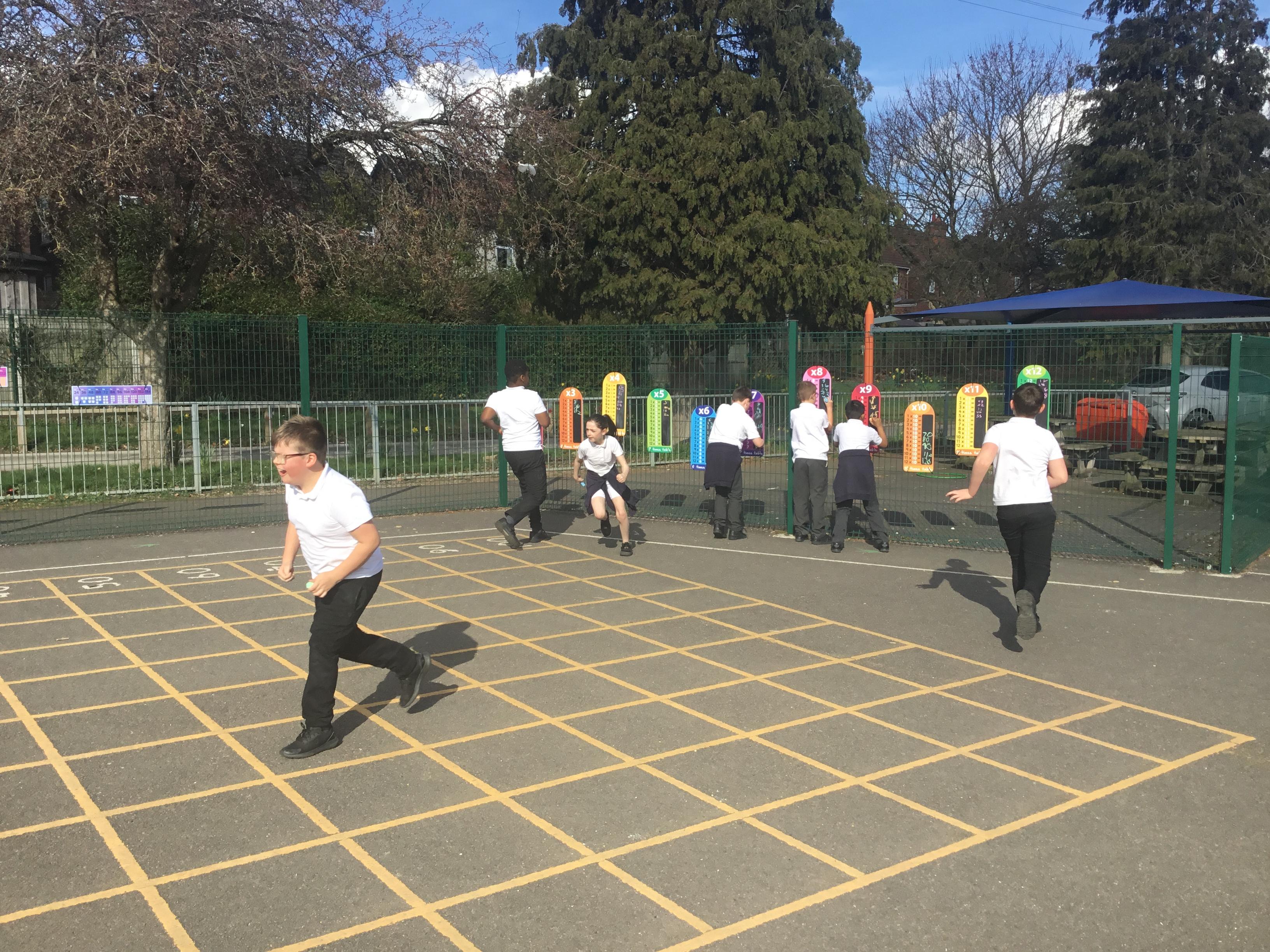 Year 5 - practising our multiplication facts and exercising in the sun! WIN, WIN !