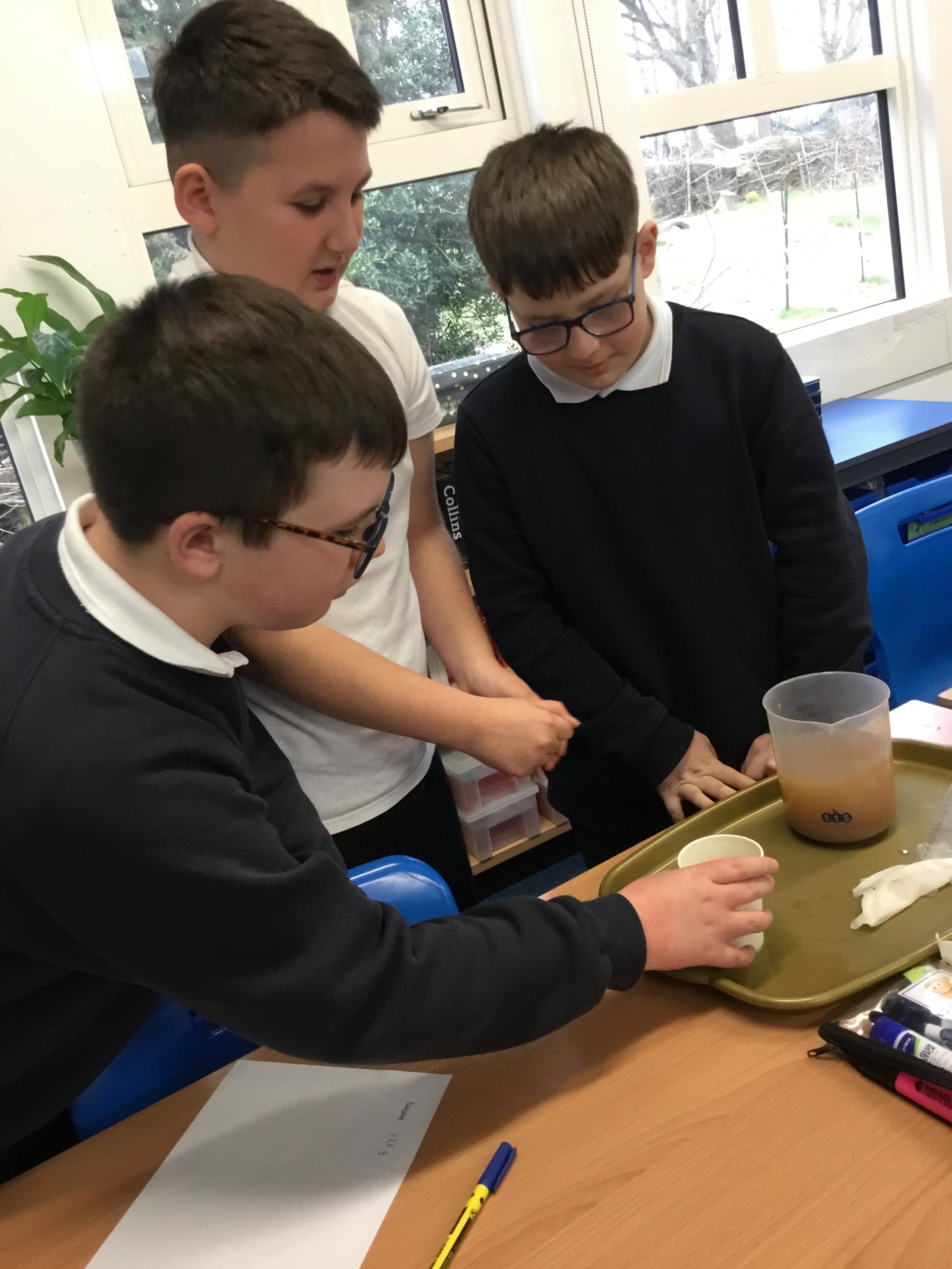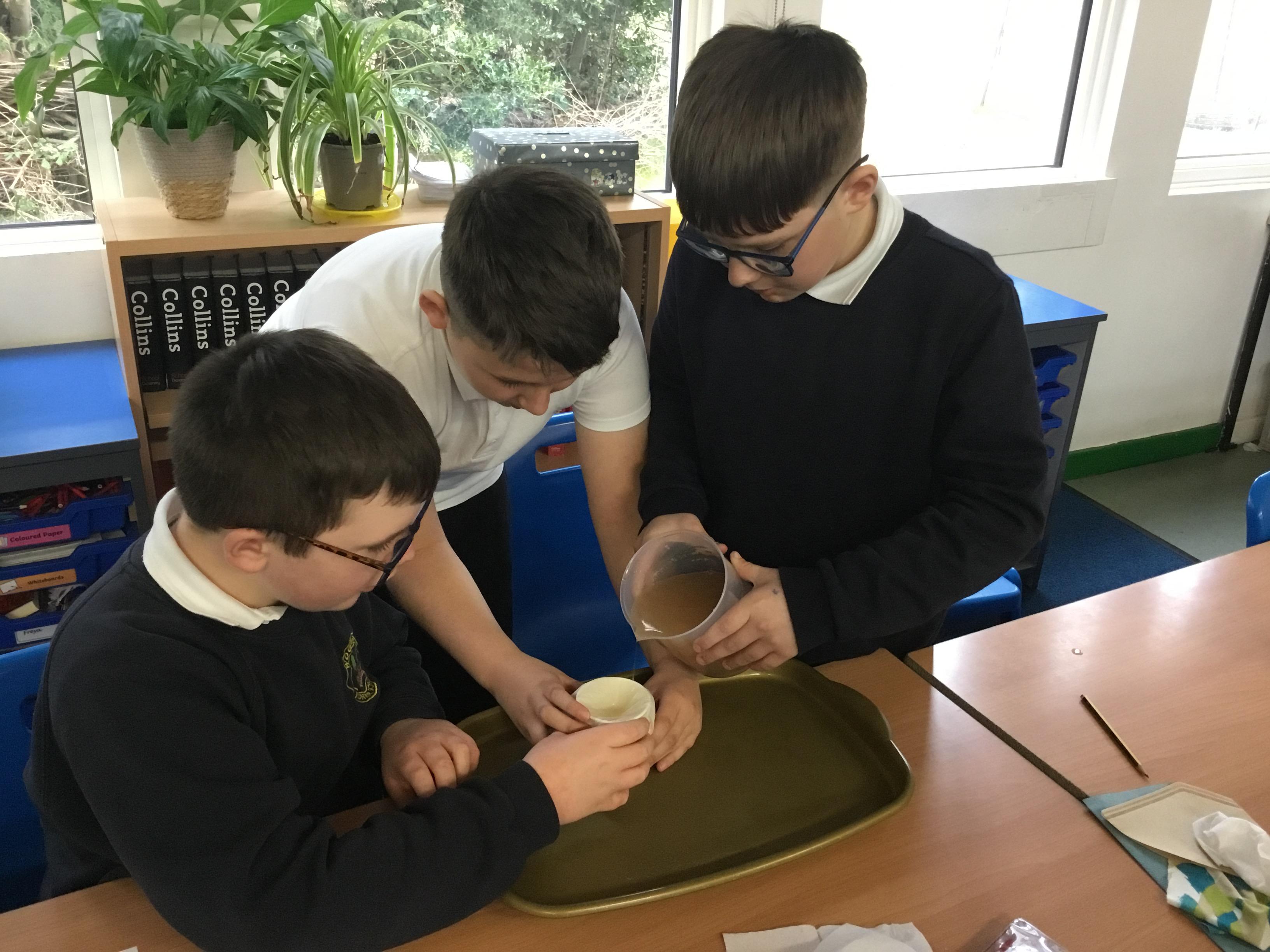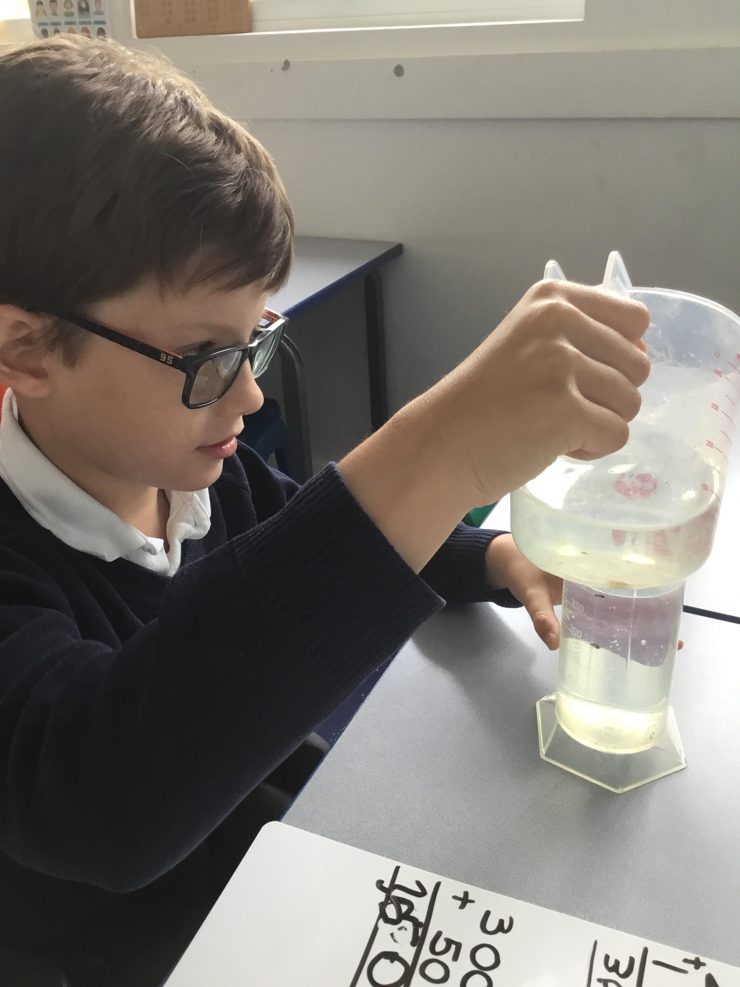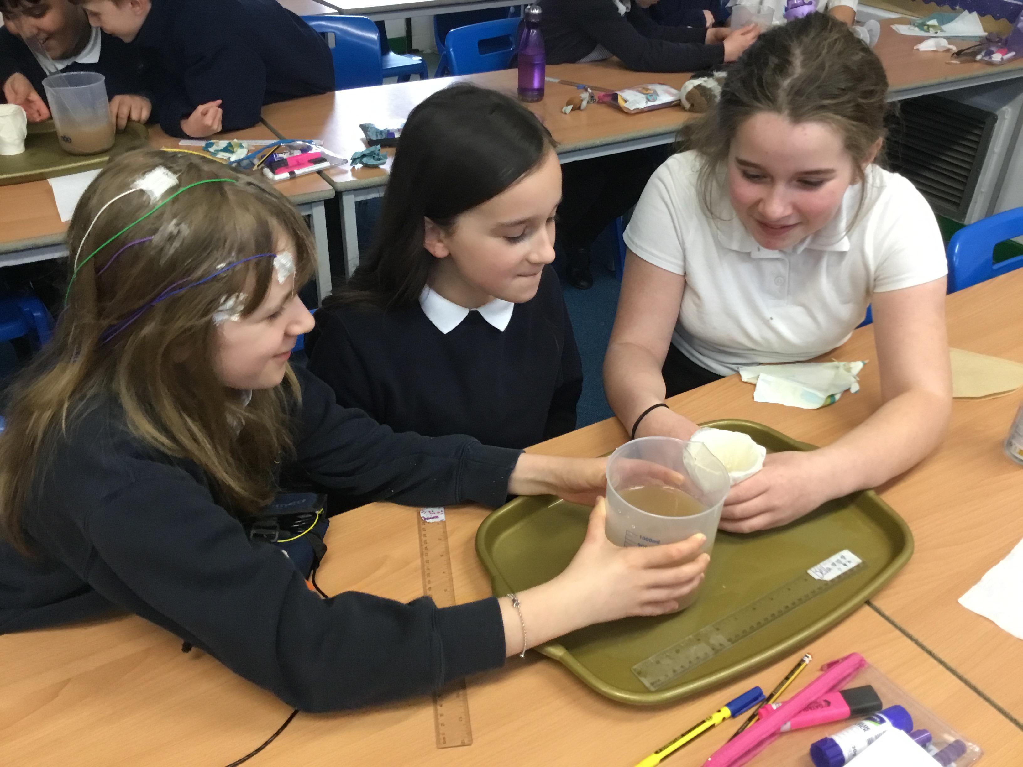 Year 6 - Using our Maths skills to measure. We were investigating which material is the best to filter out microplastics during Science Week.