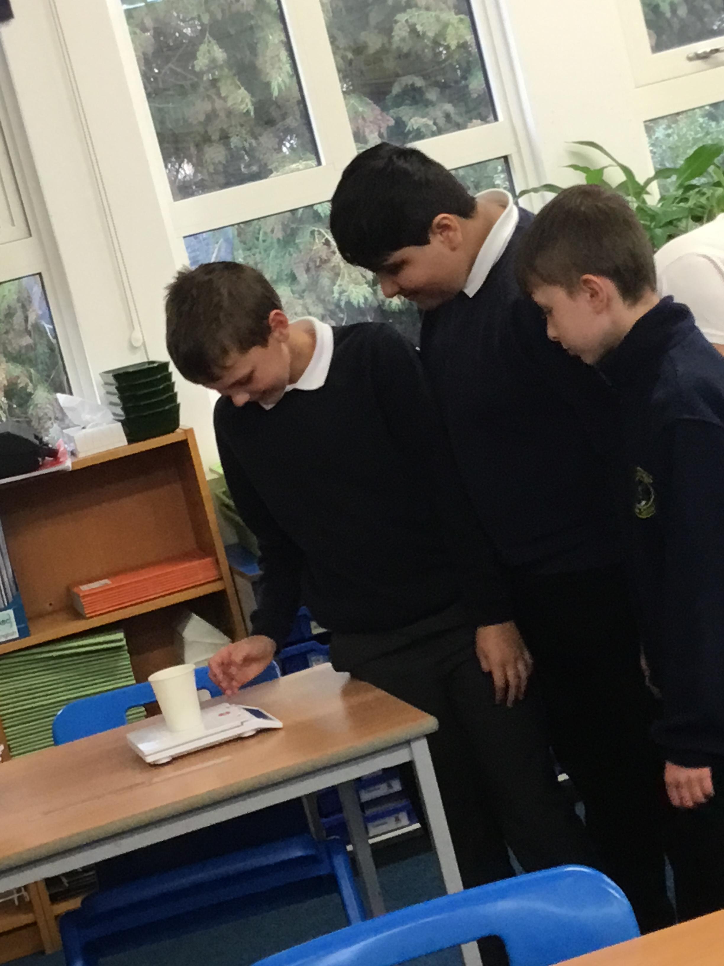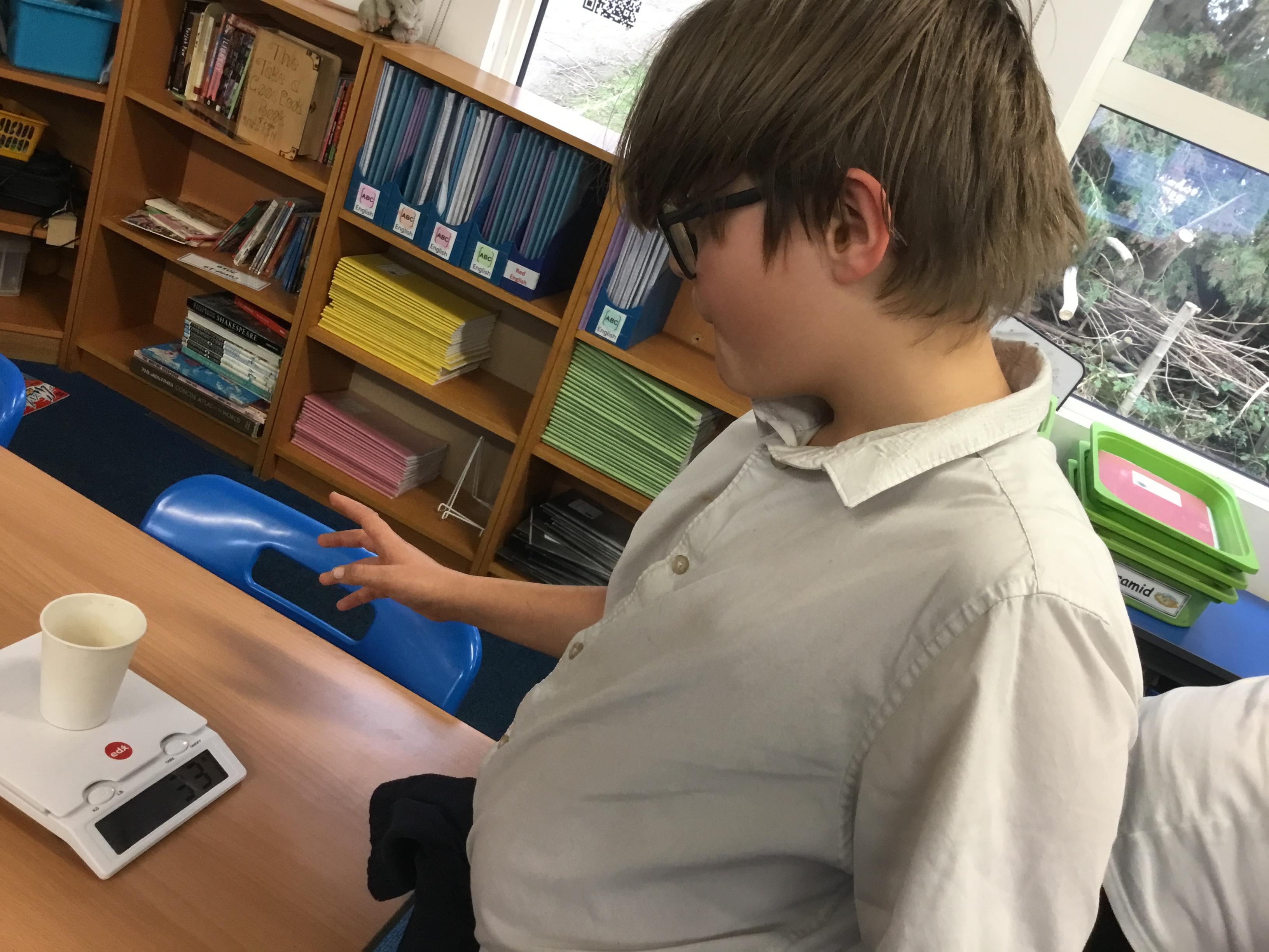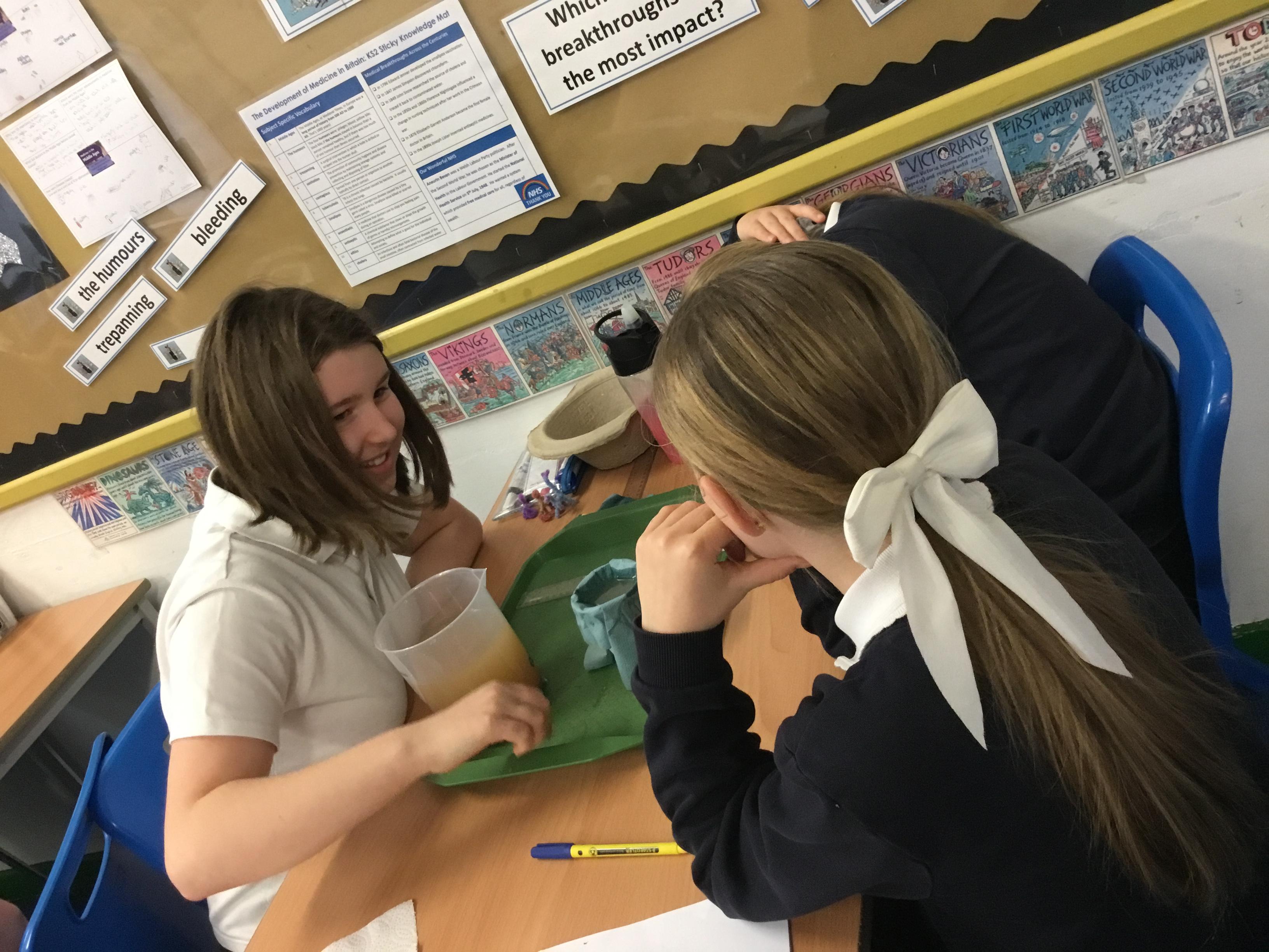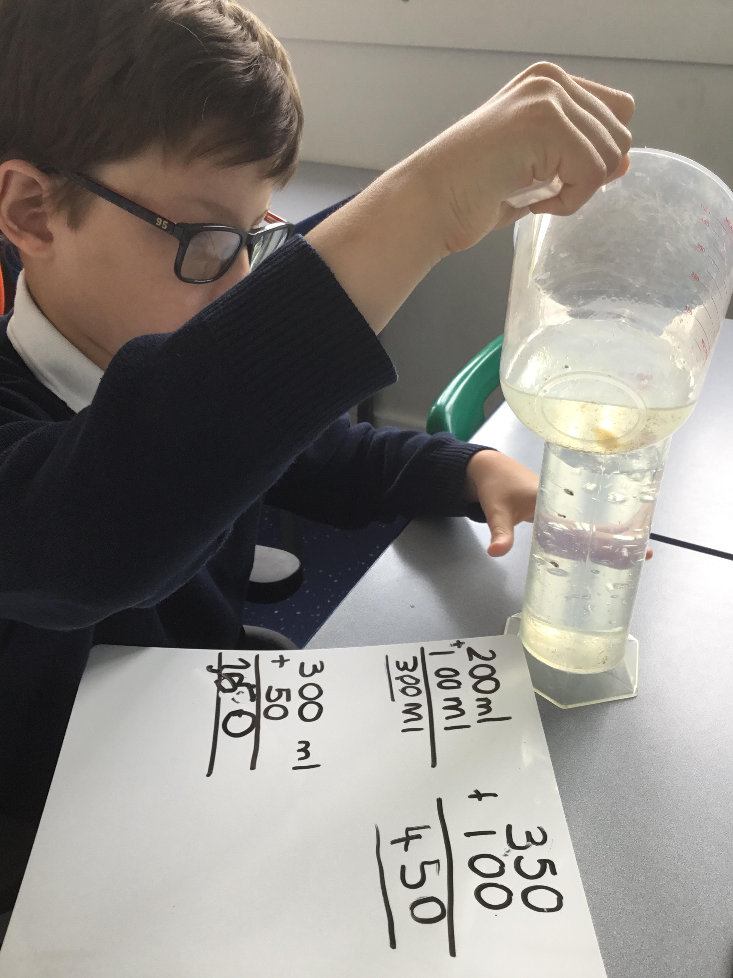 Year 6 - Using our Maths skills to measure. We were investigating which material is the best to filter out microplastics during Science Week.