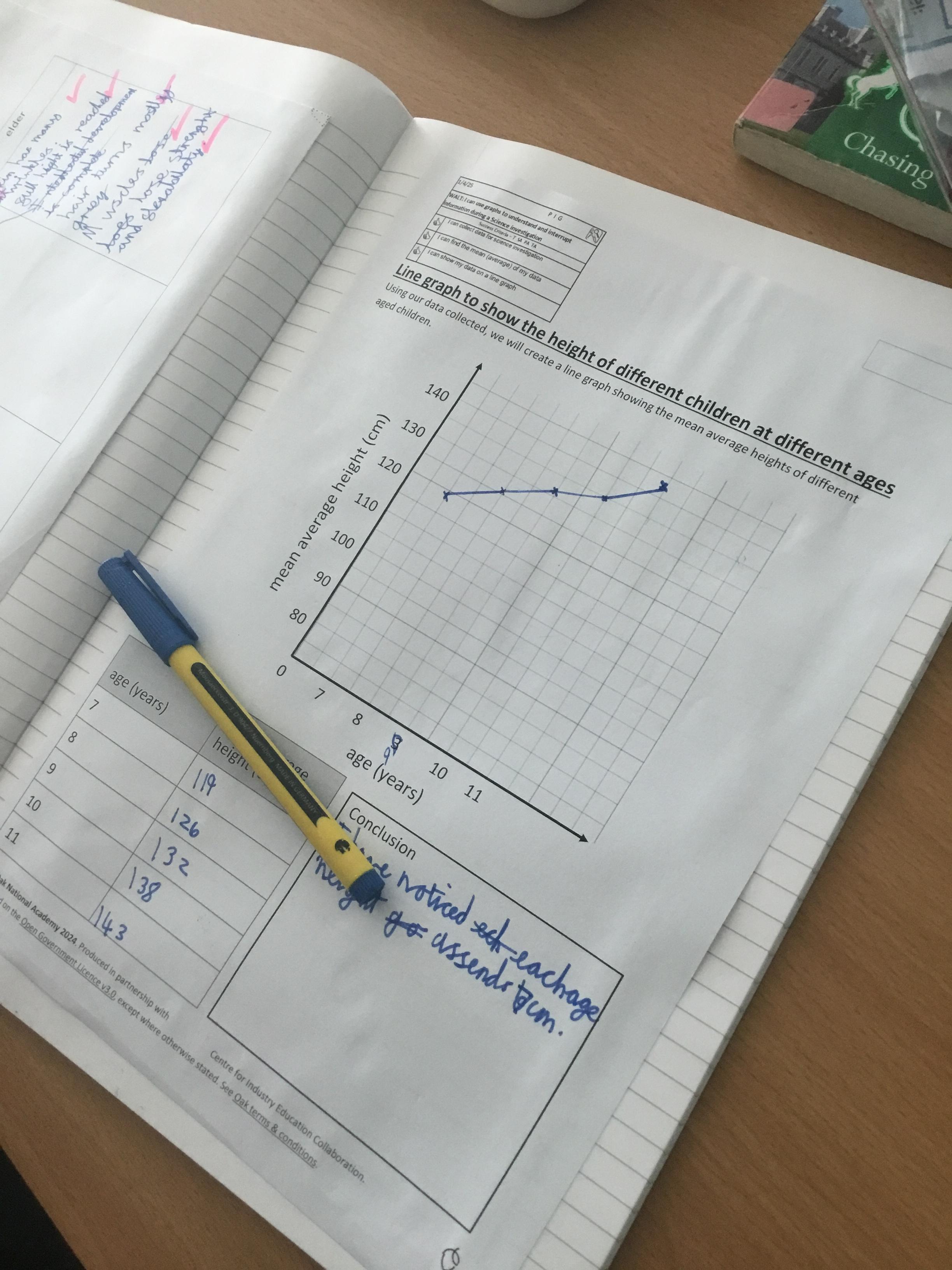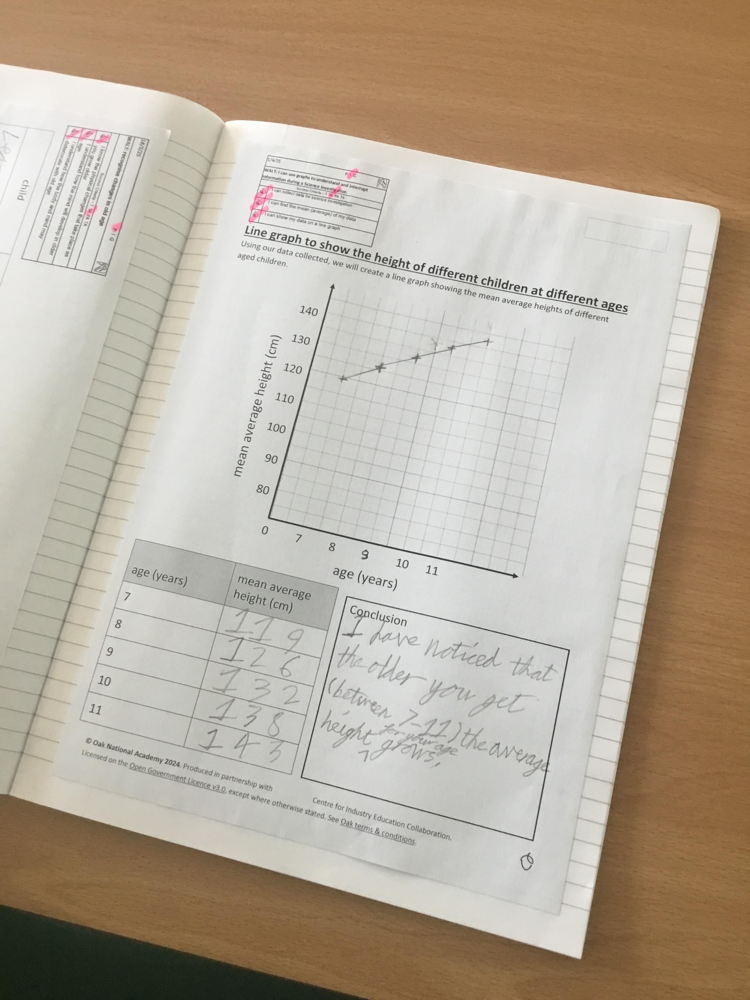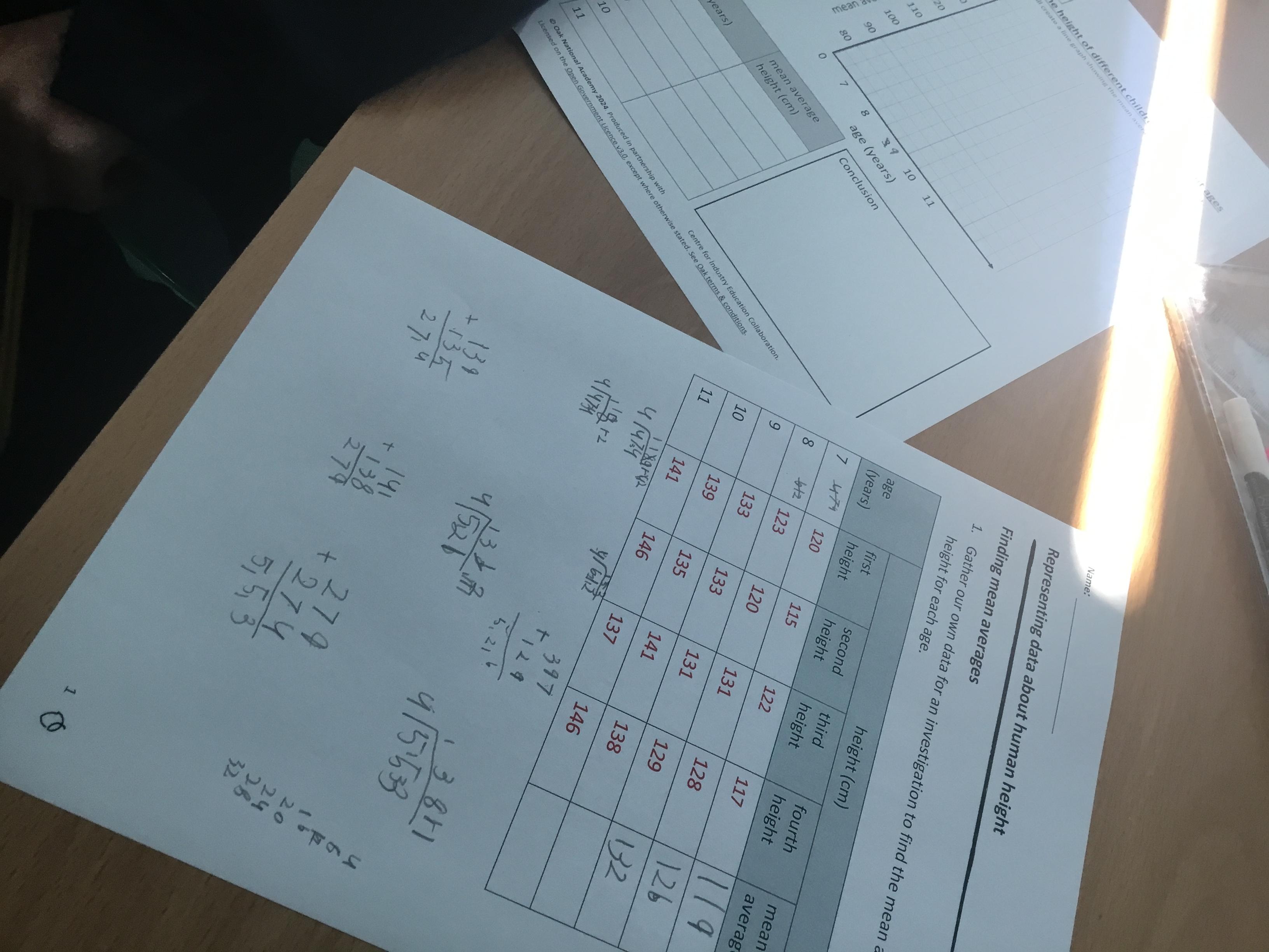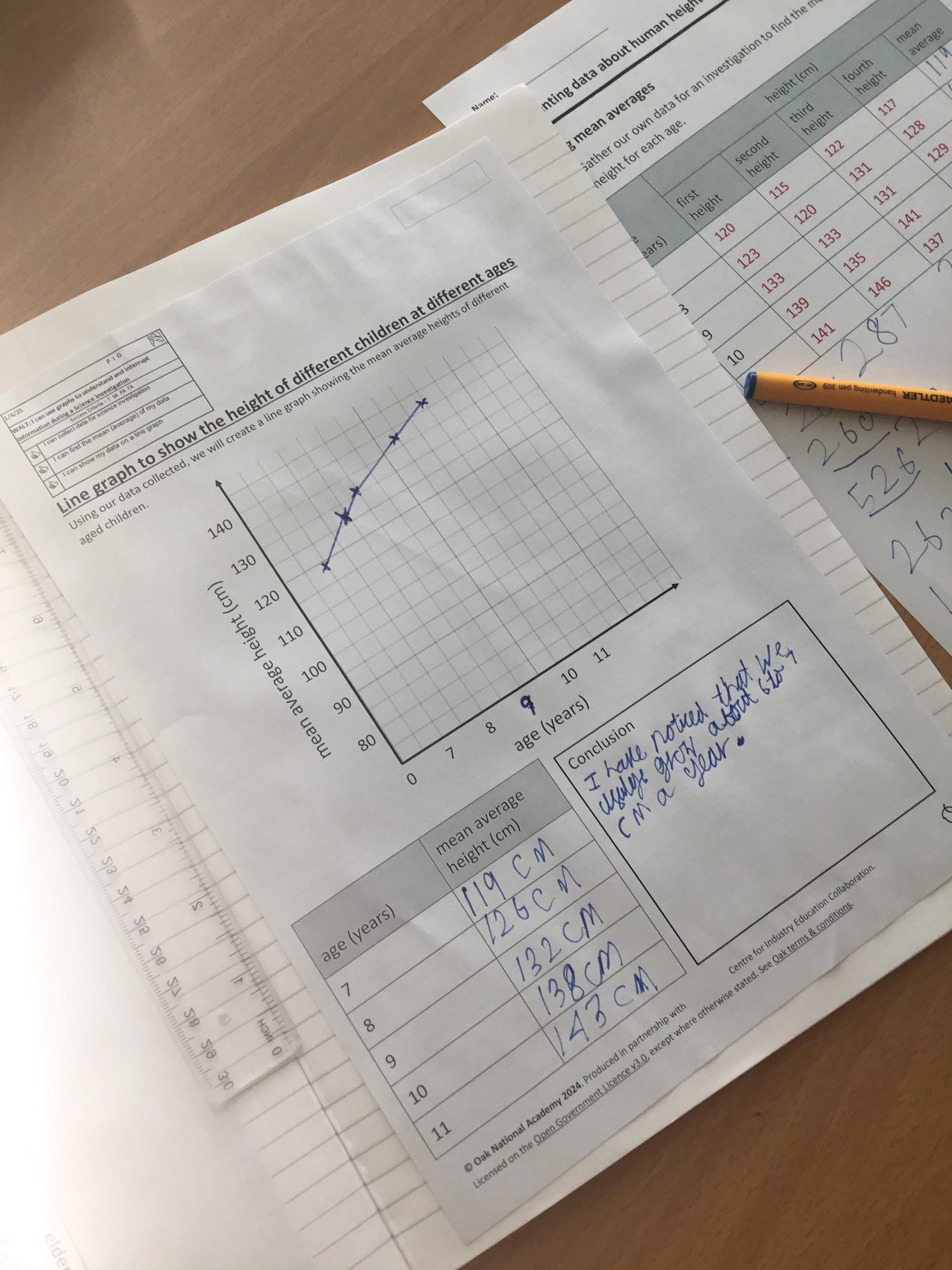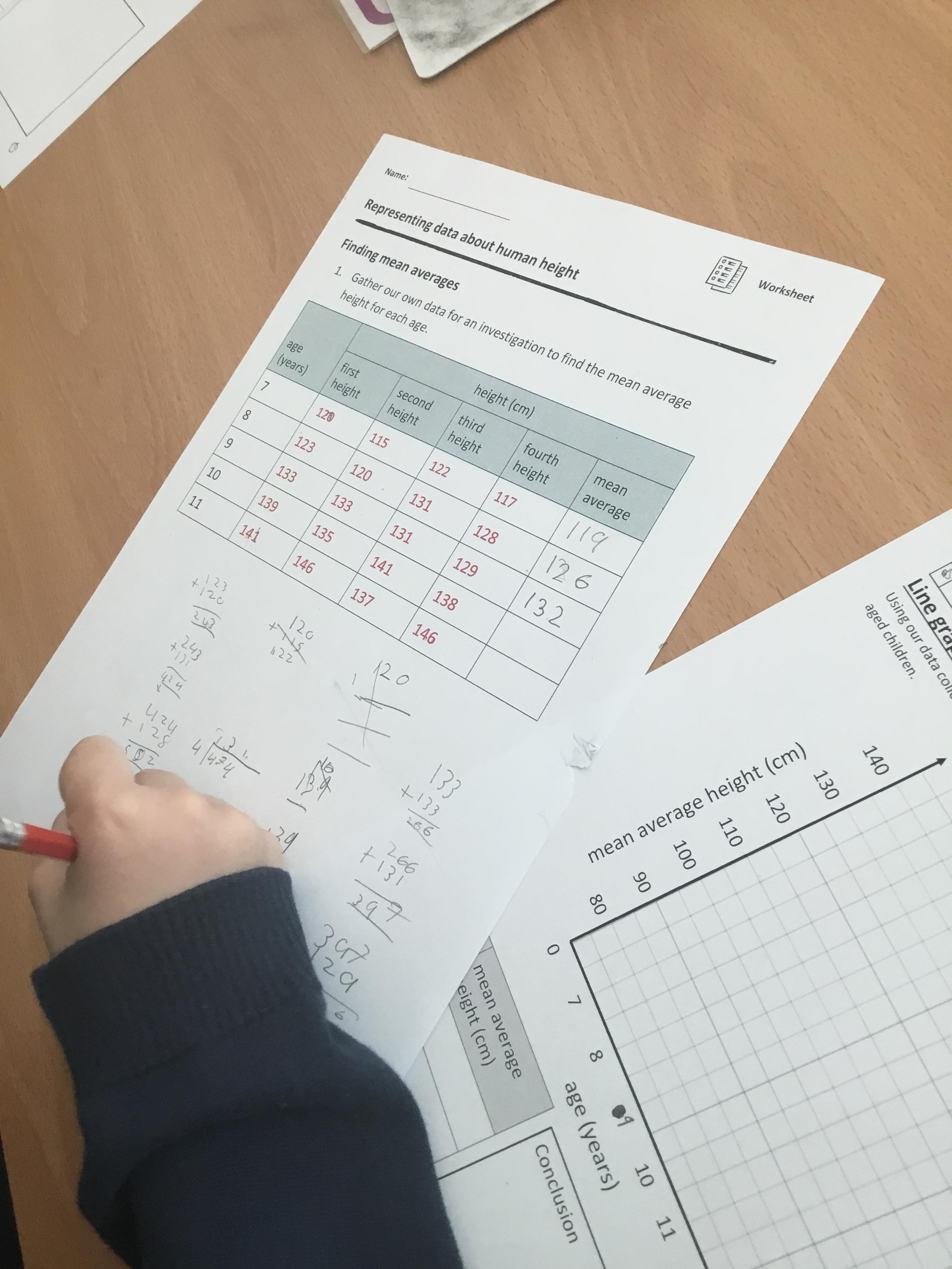 Year 5 Science - using our maths knowledge to work out the mean (average) of height of different aged children, before plotting them on a line-graph