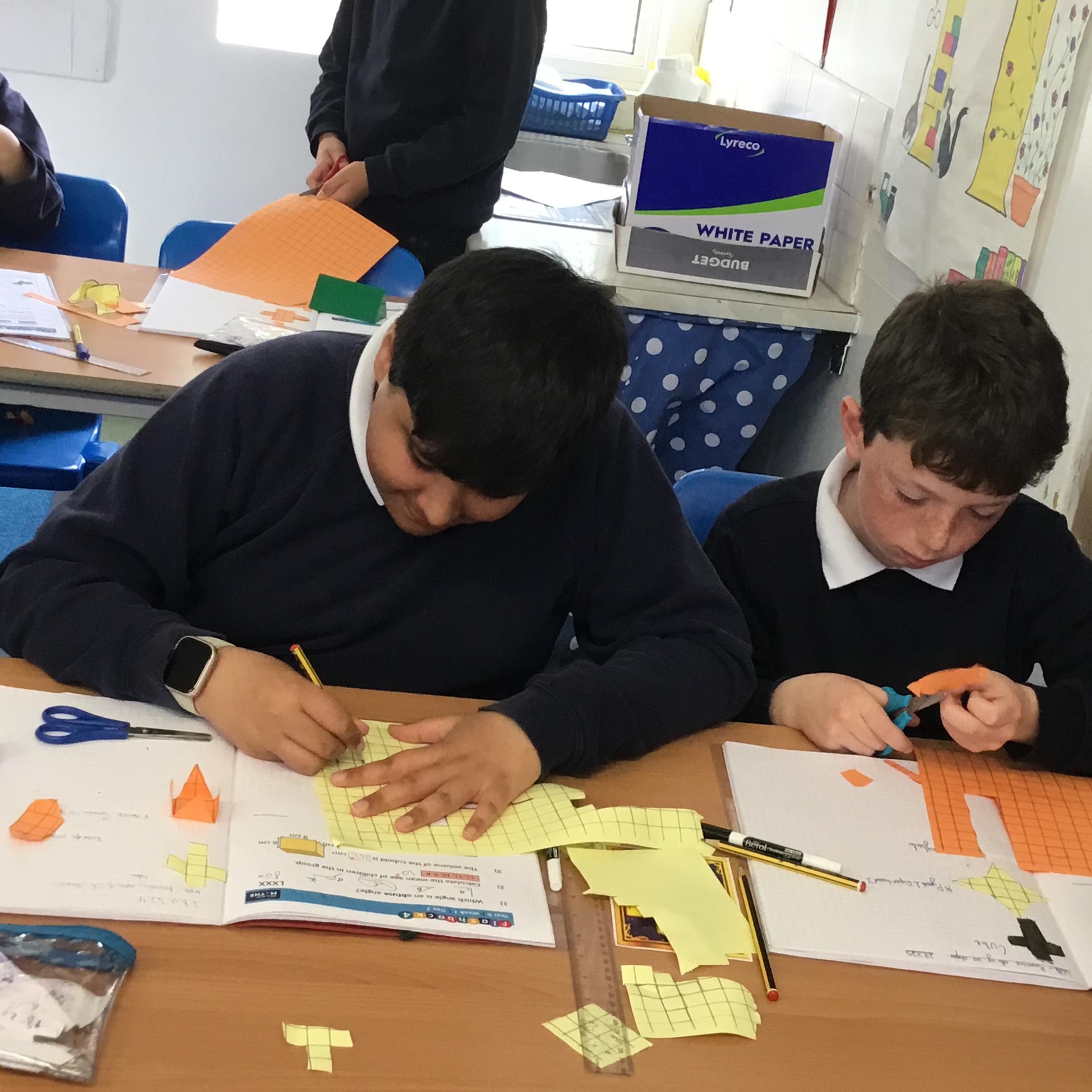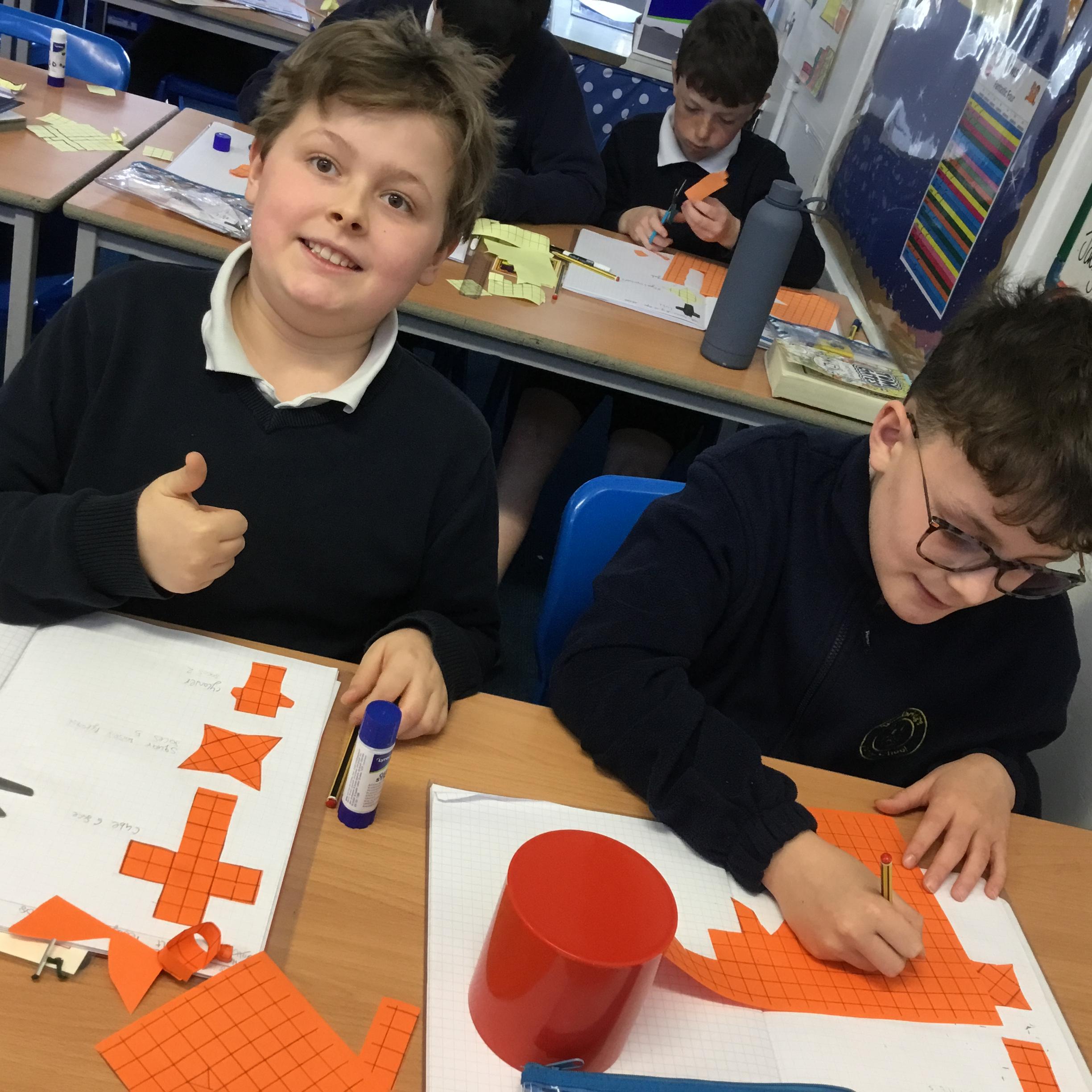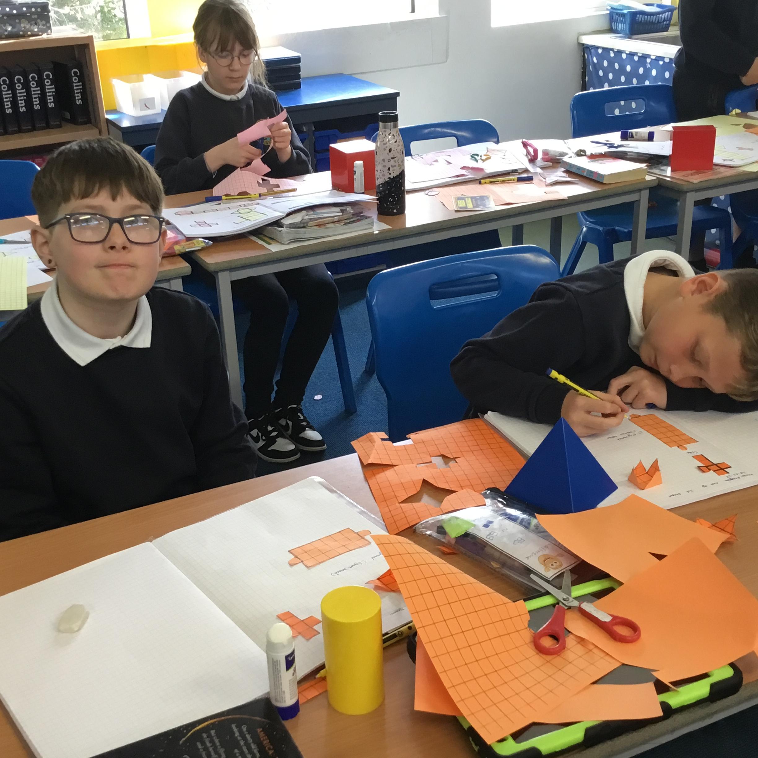 Year 6 - It's been a busy week but here are Year 6 revising their knowledge on 3D shapes. How many nets can they make and label? The answer - more than you think!