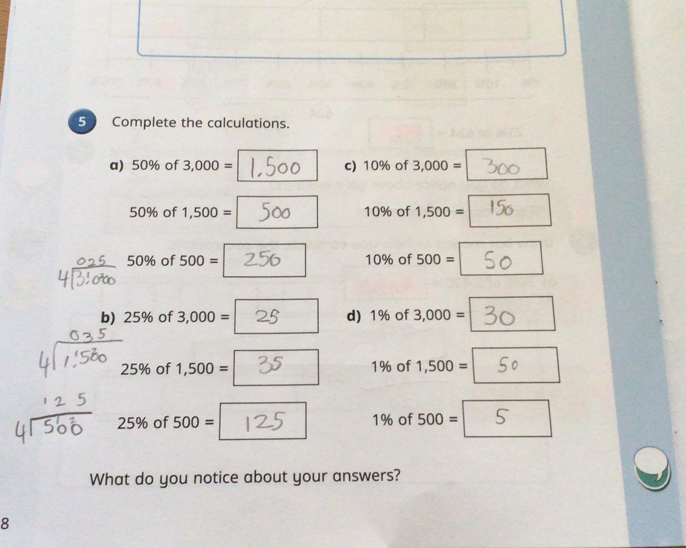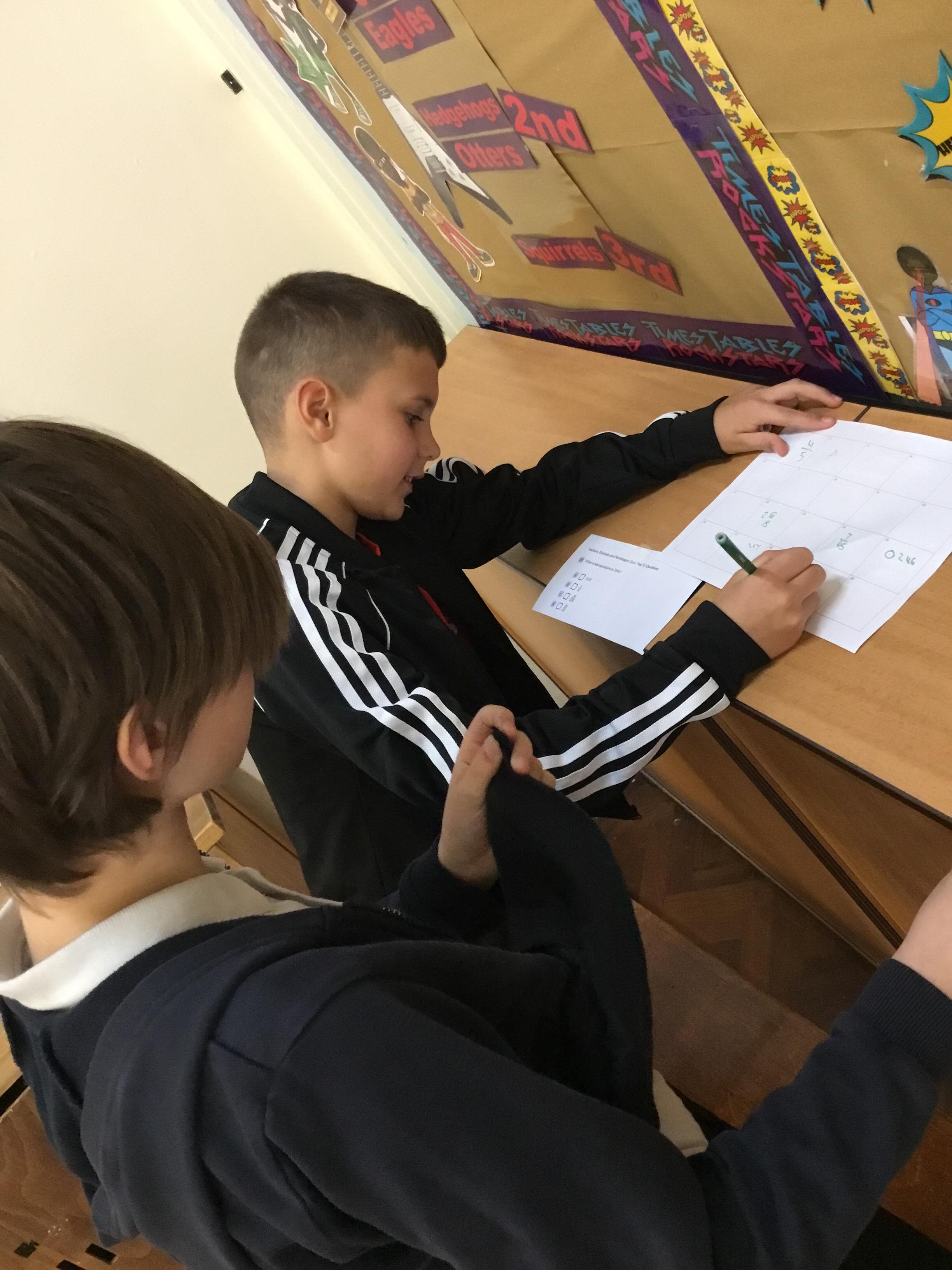 Tuesday 4th March The Eagles finding percentages of numbers.