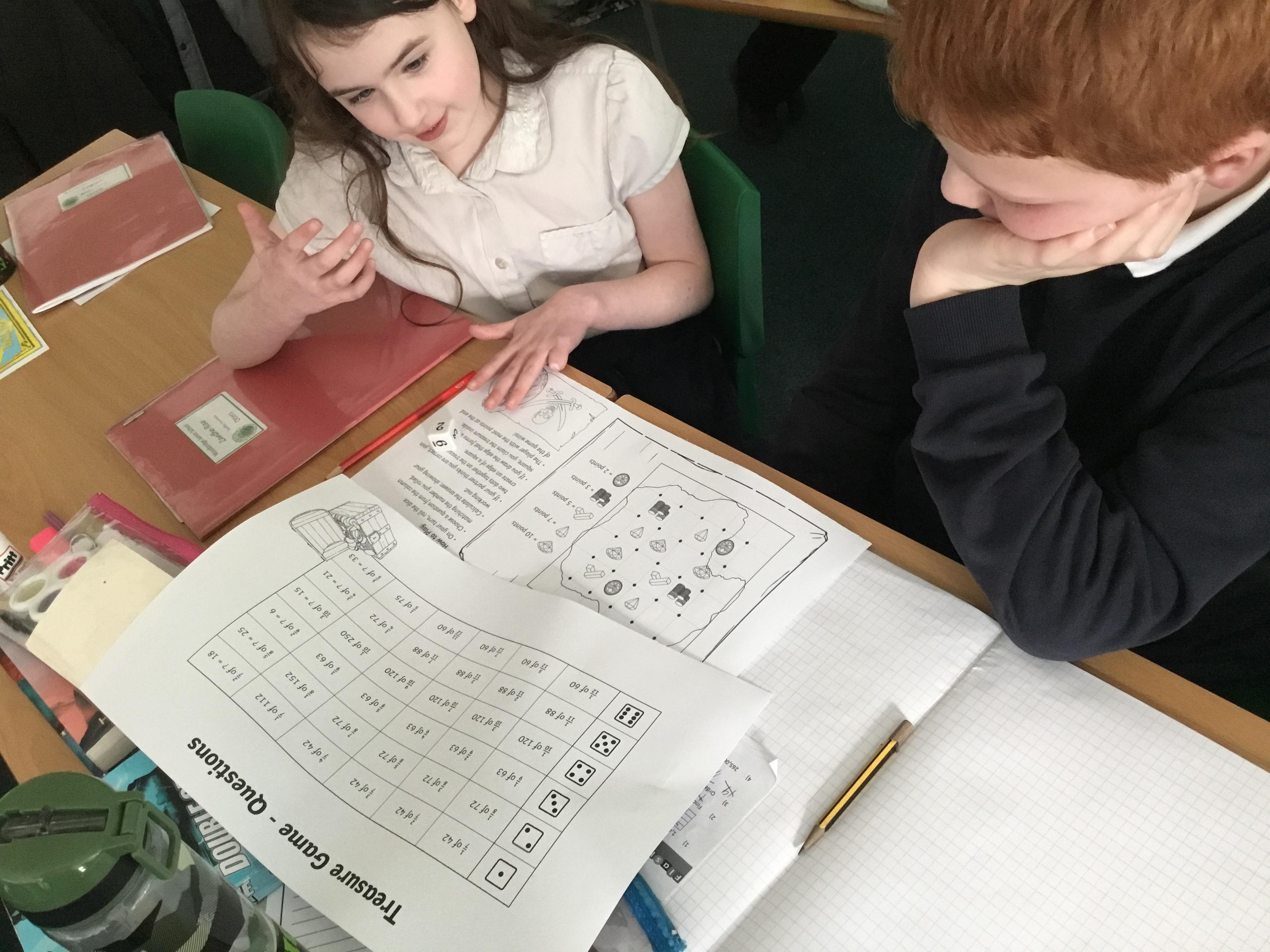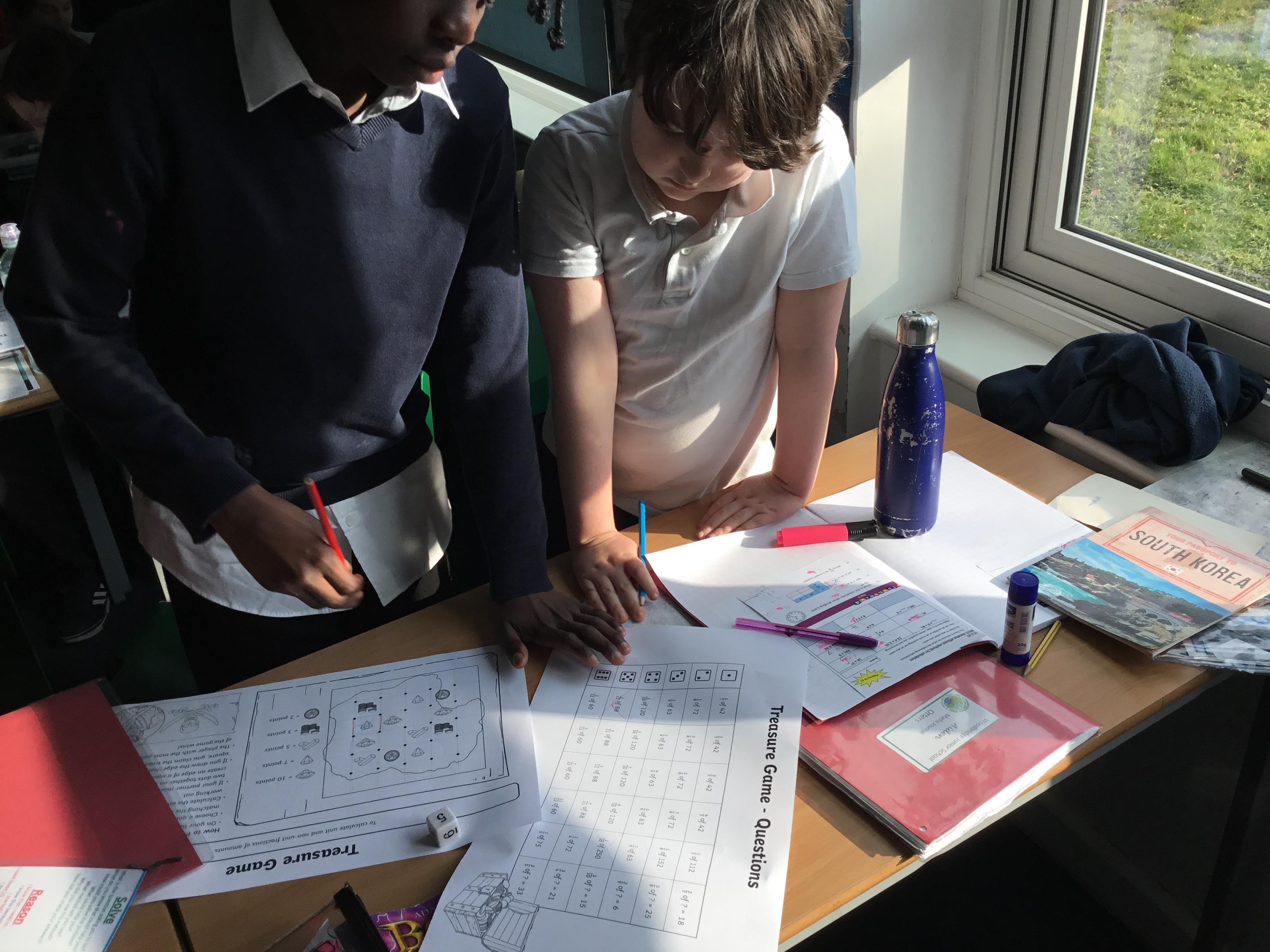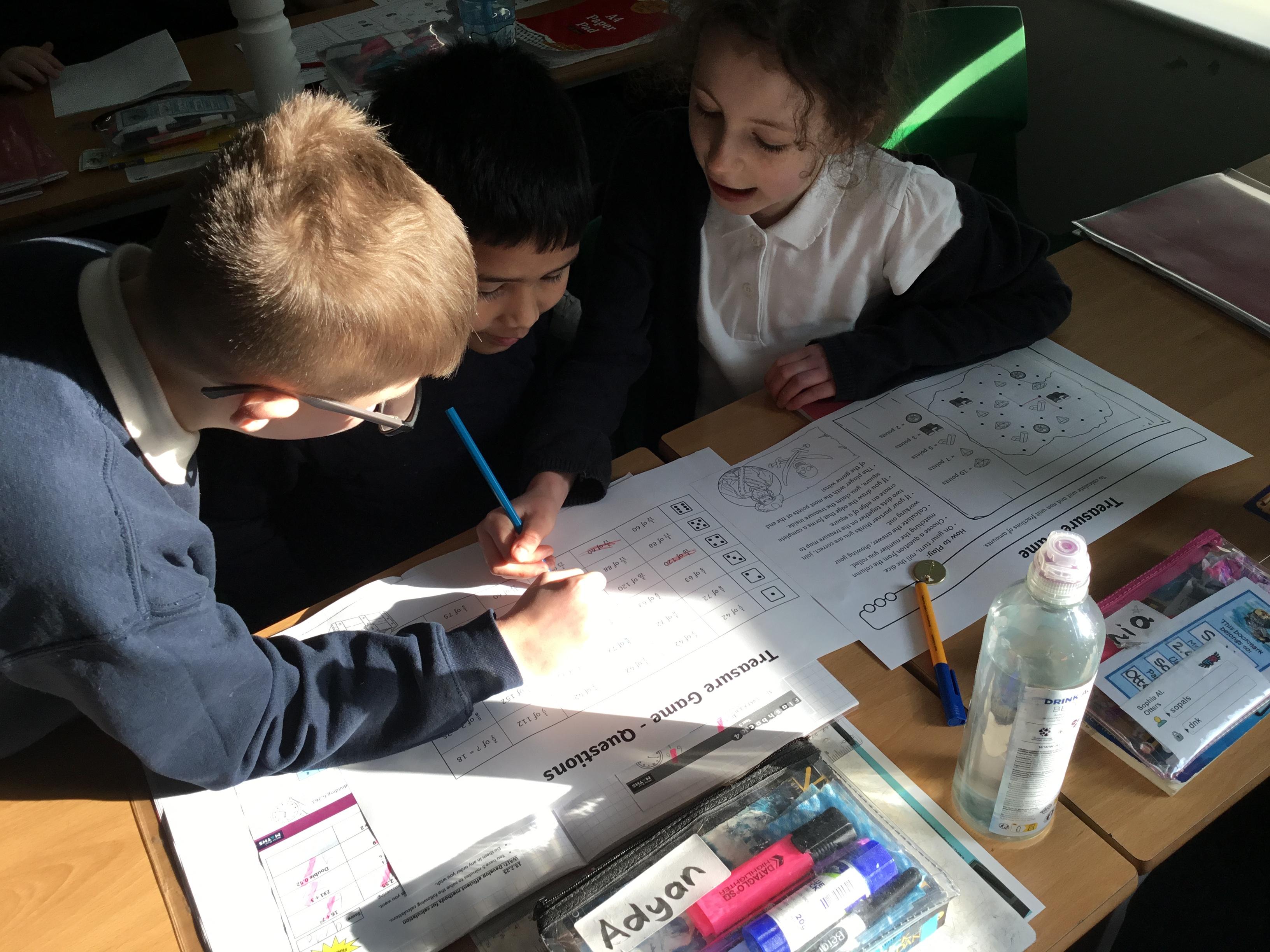 Year 5 - practising our 'fractions of amounts' by playing Treasure Hunt!
