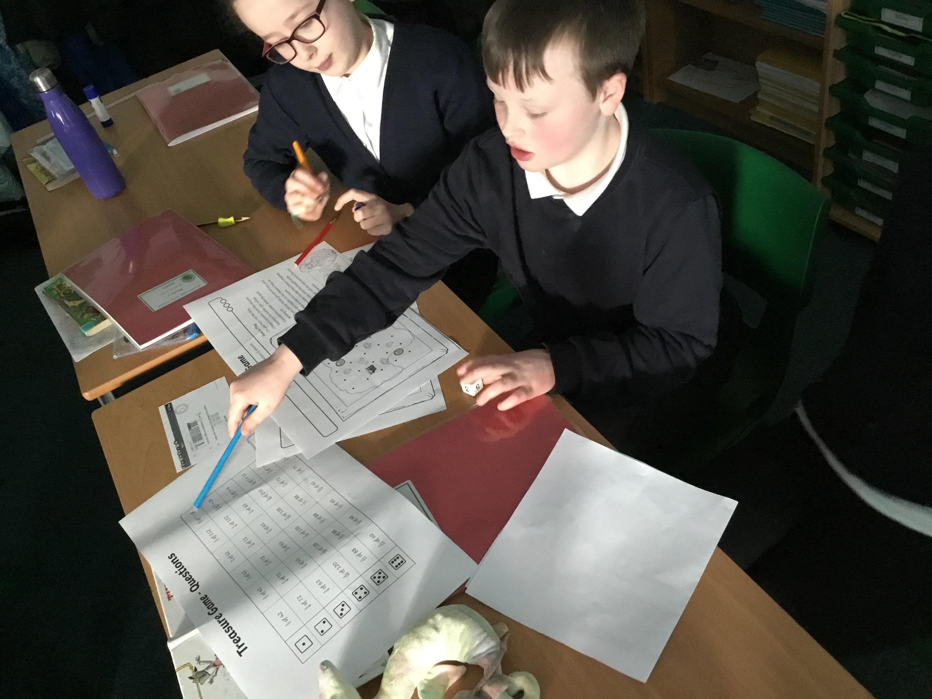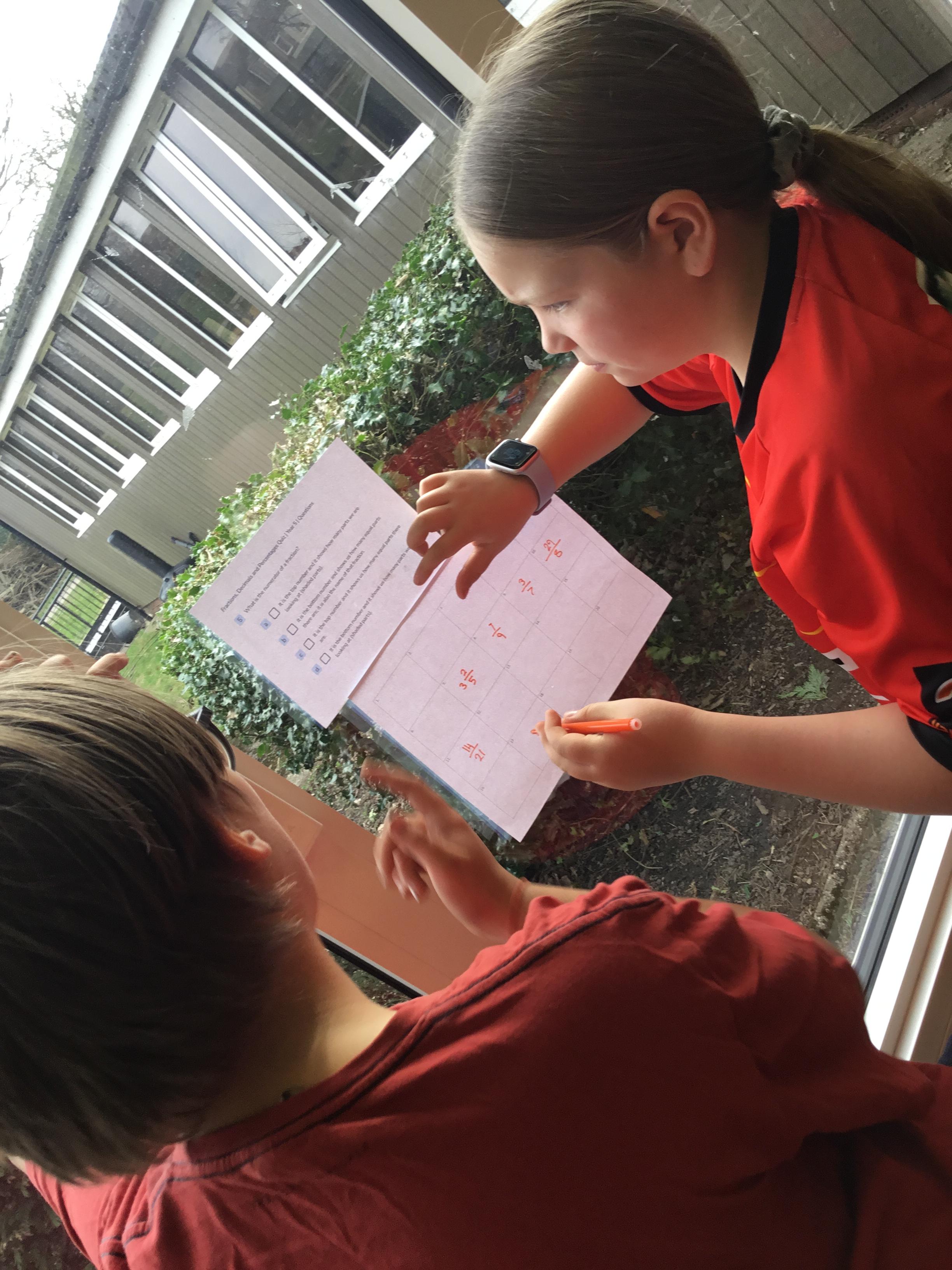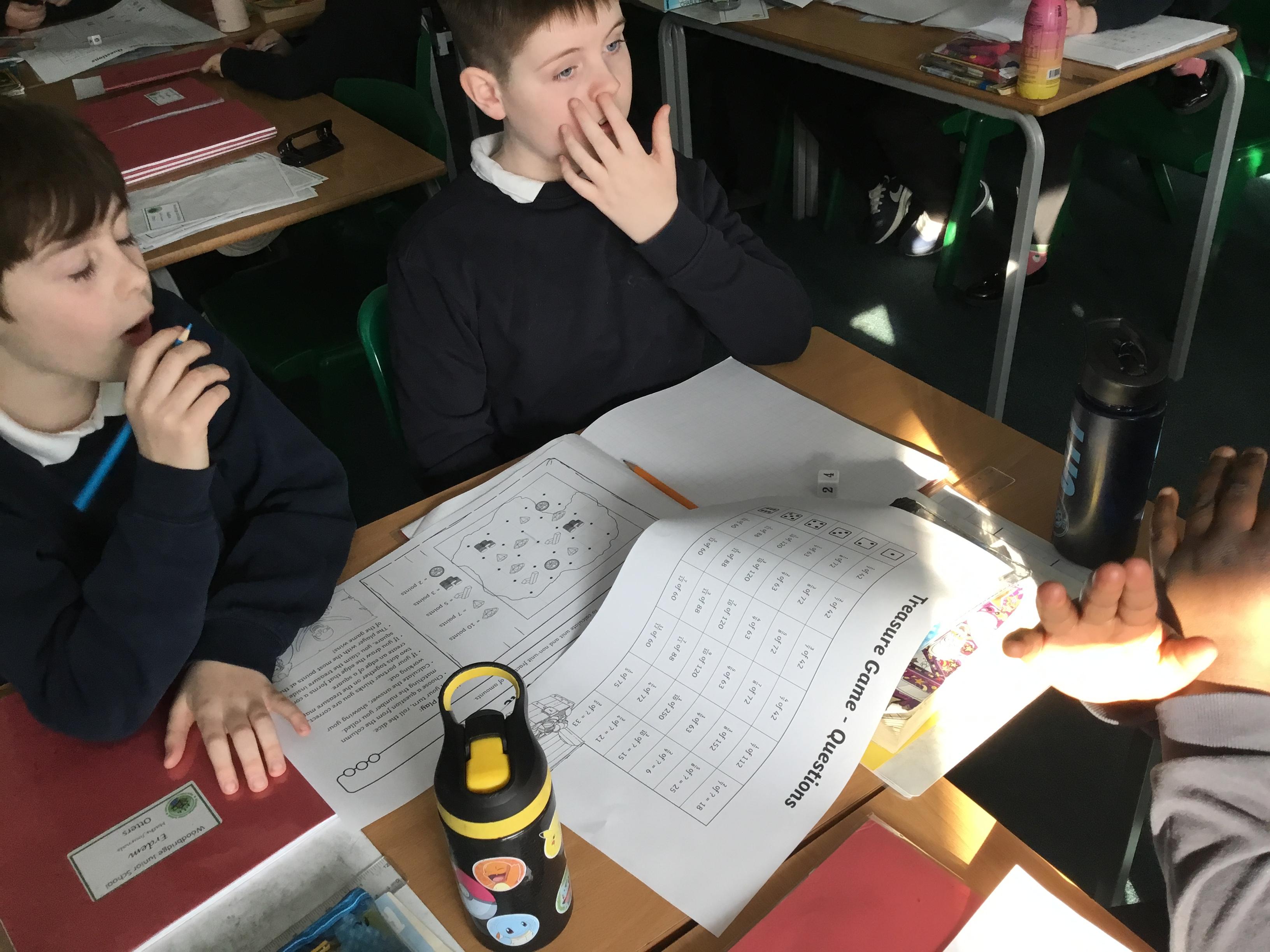 Year 5 - practising our 'fractions of amounts' by playing Treasure Hunt!