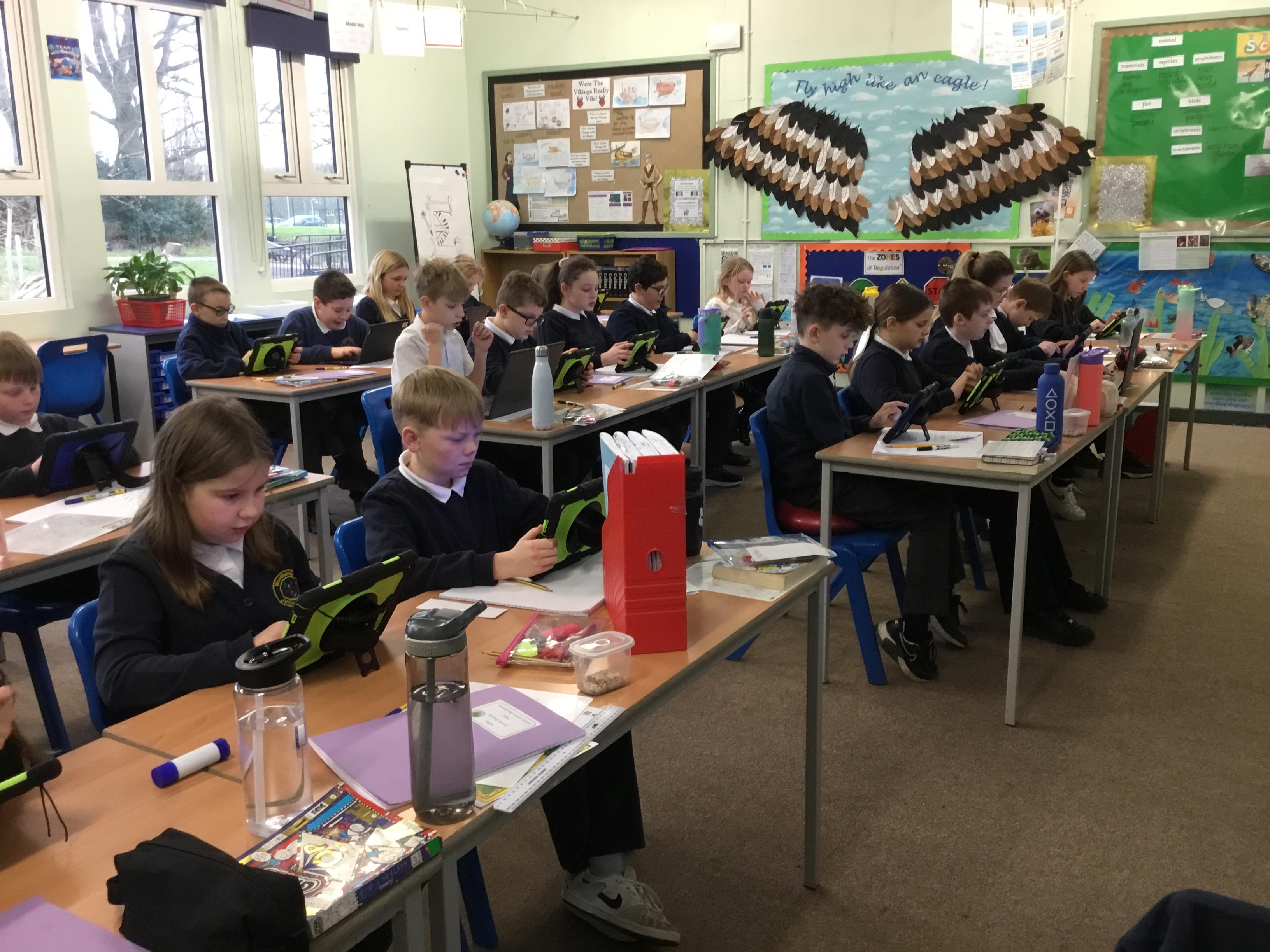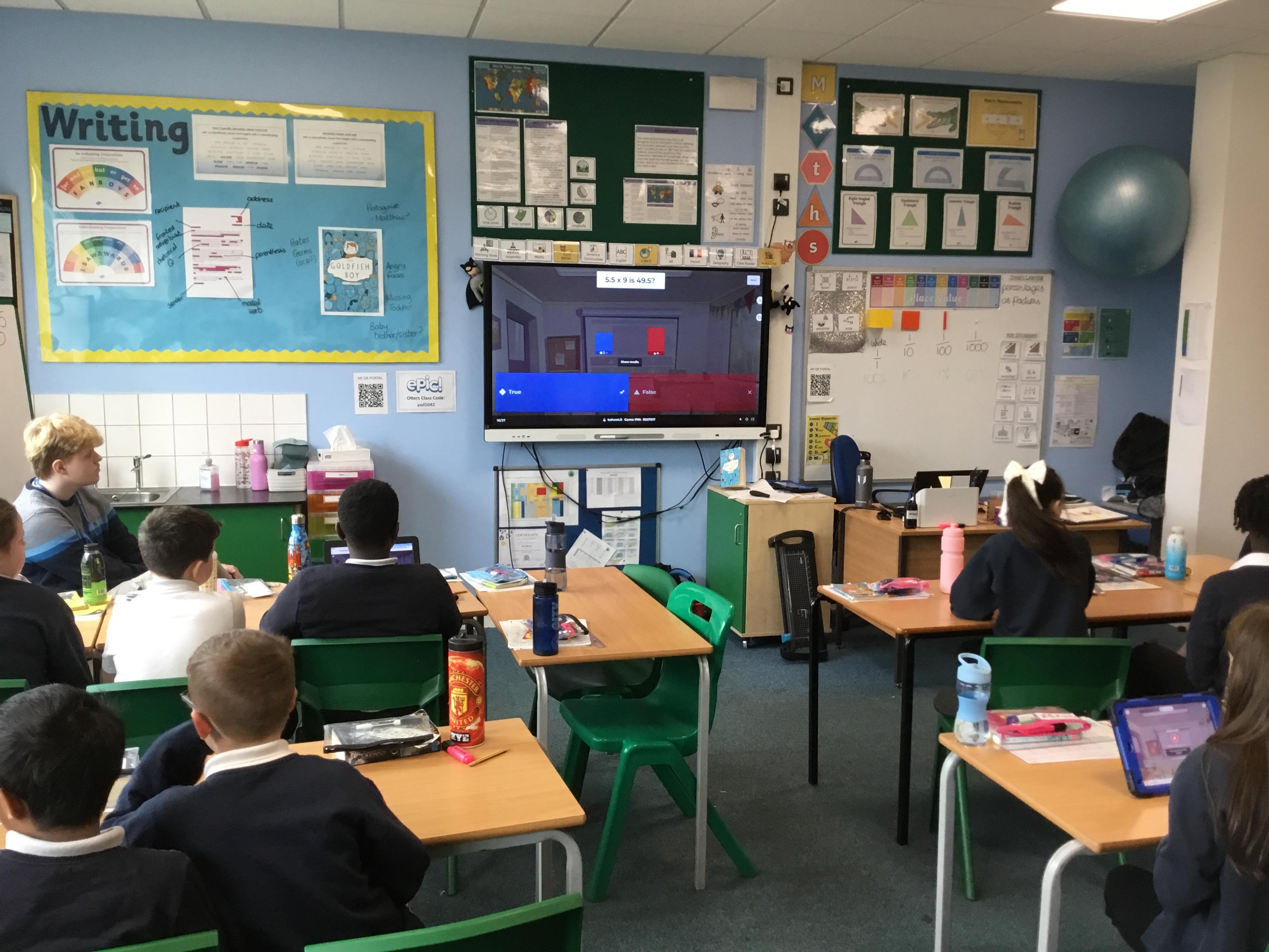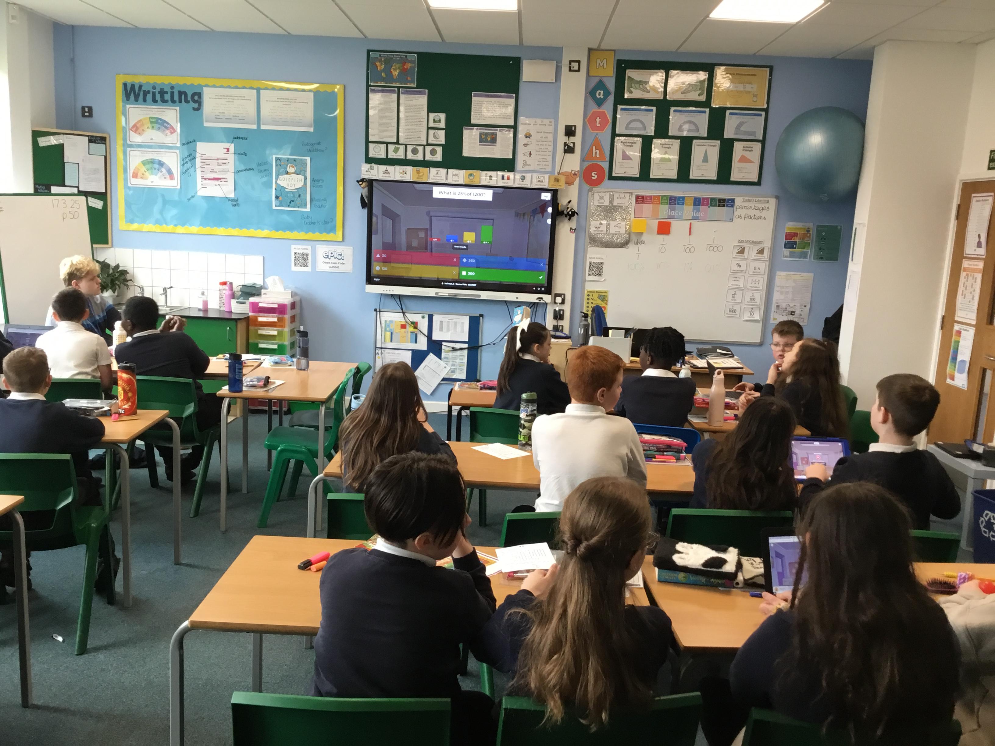 Year 5 Otters, taking part in a Kahoot quiz on decimals, fractions & percentages in preperation for their assessment on Thursday!