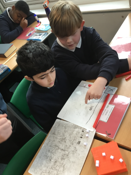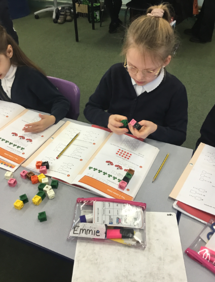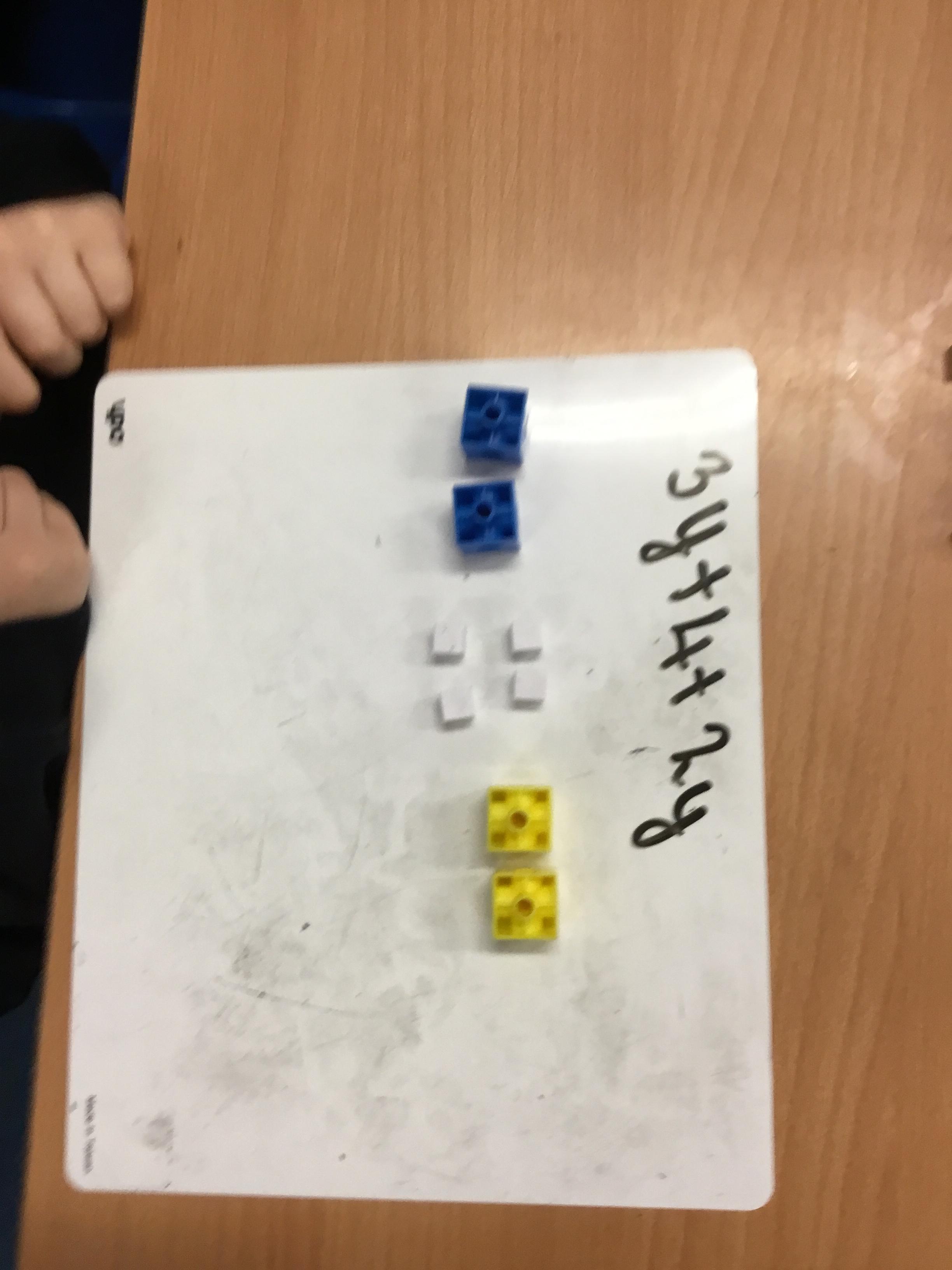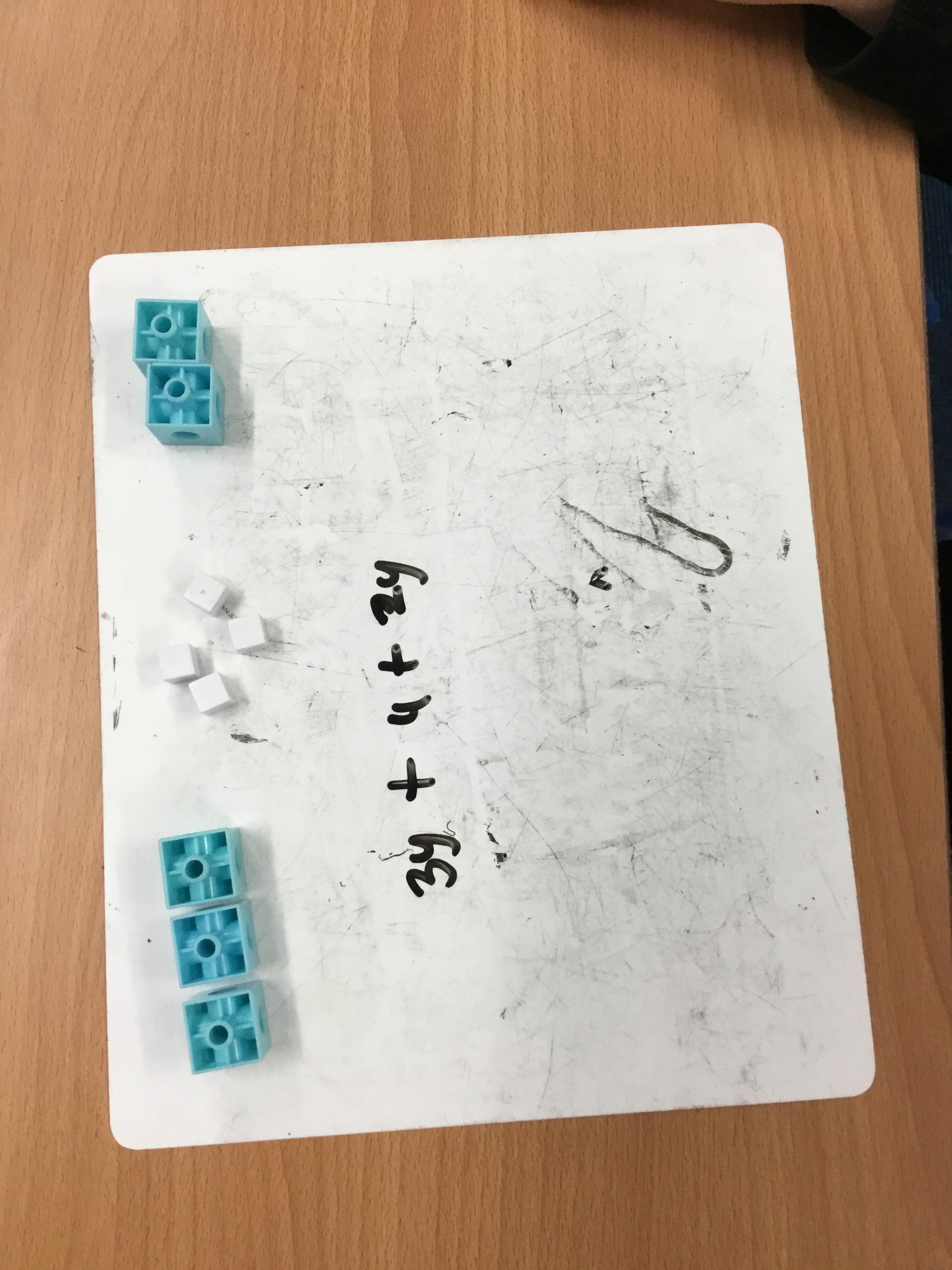 Year 6 Maths - Owls using multi-links and base ten to show algebraic expressions.