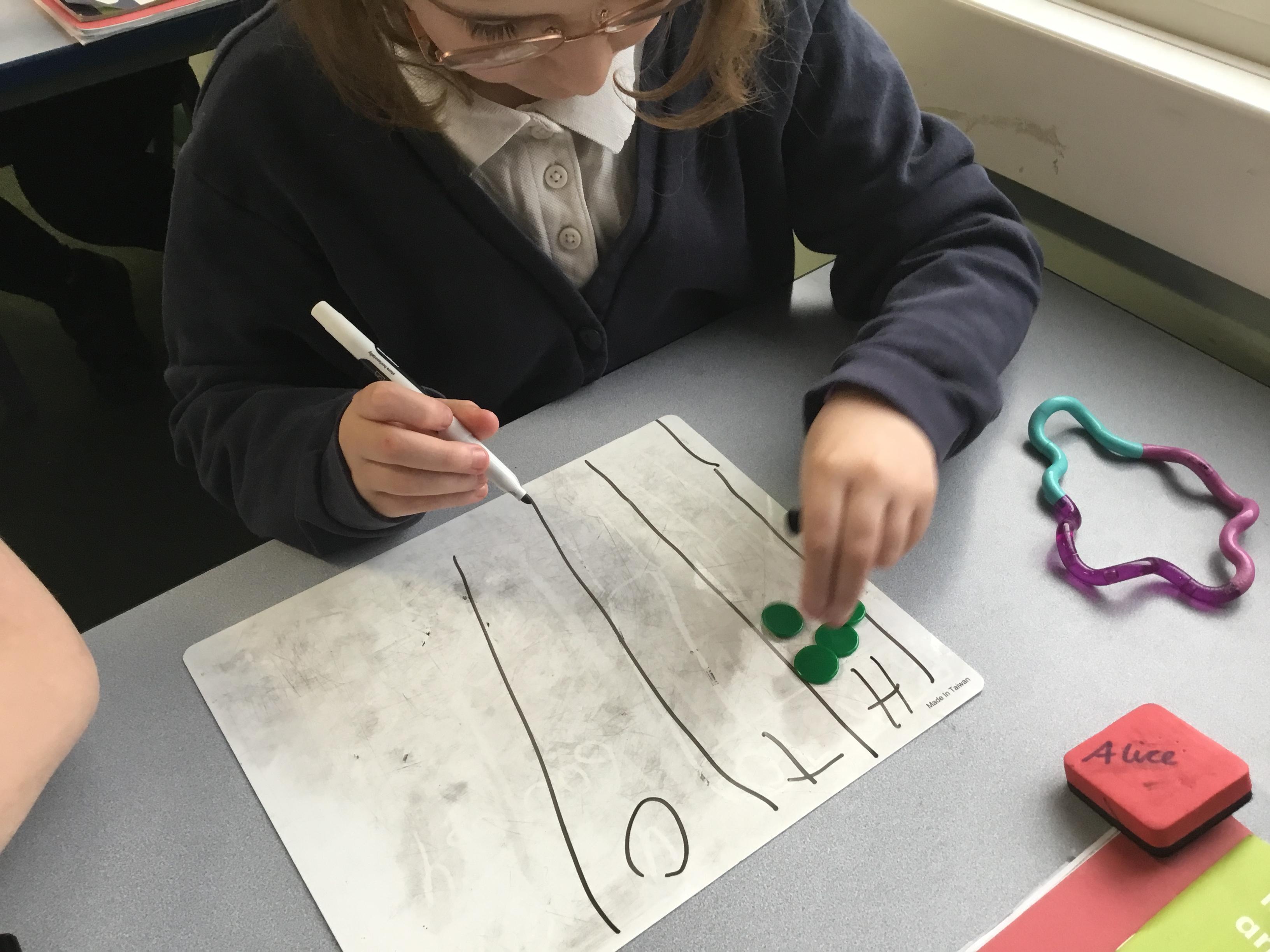 Year 4 - Using counters and our place value chart to help us learn multiplying 3-digit numbers by 1-digit