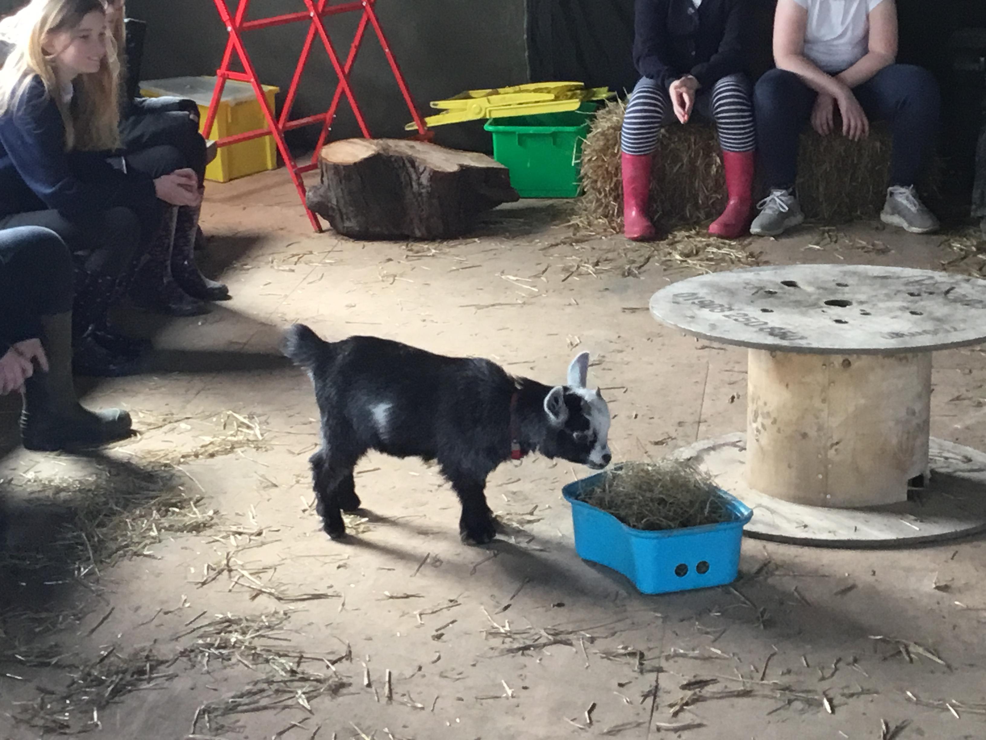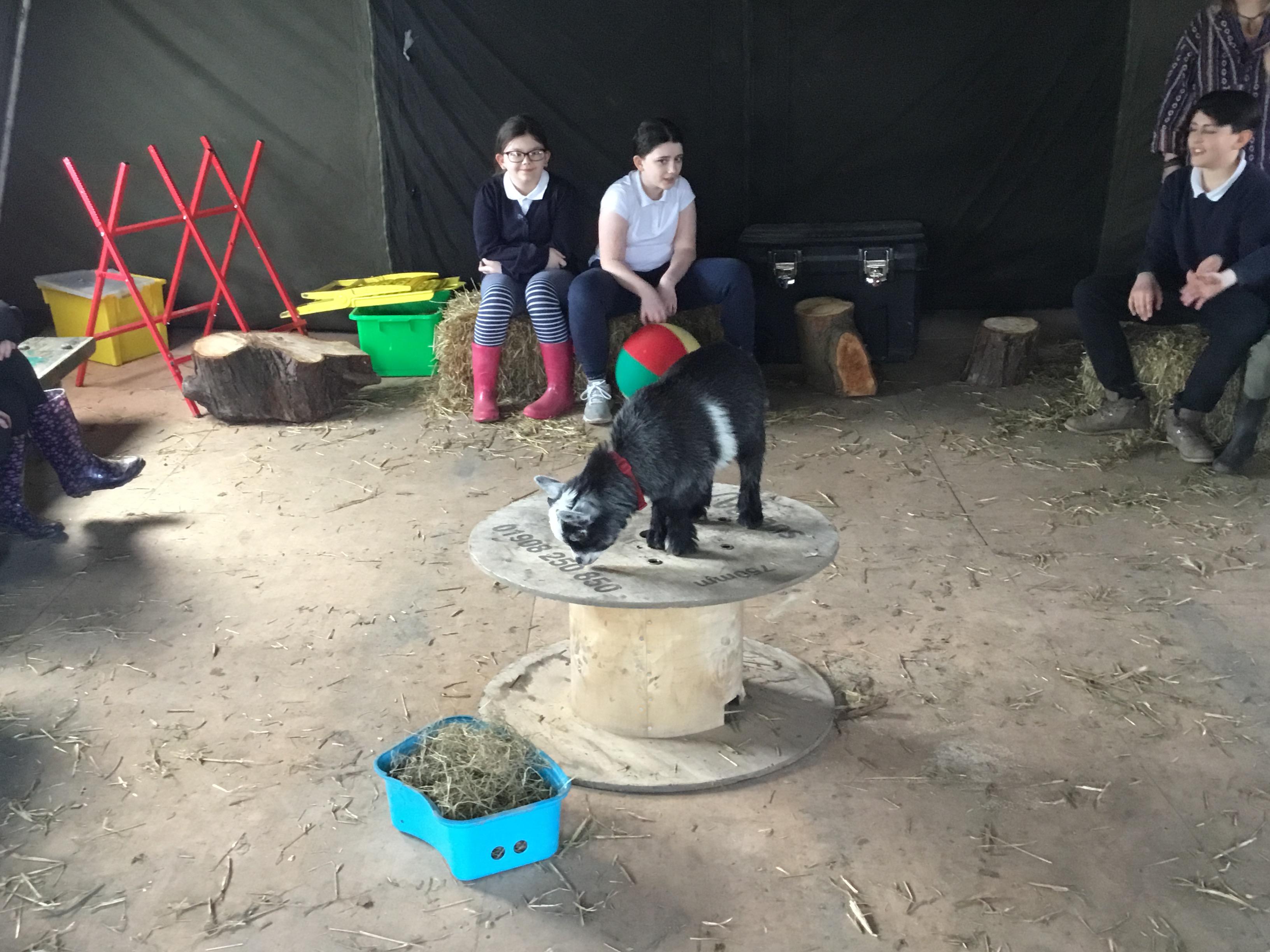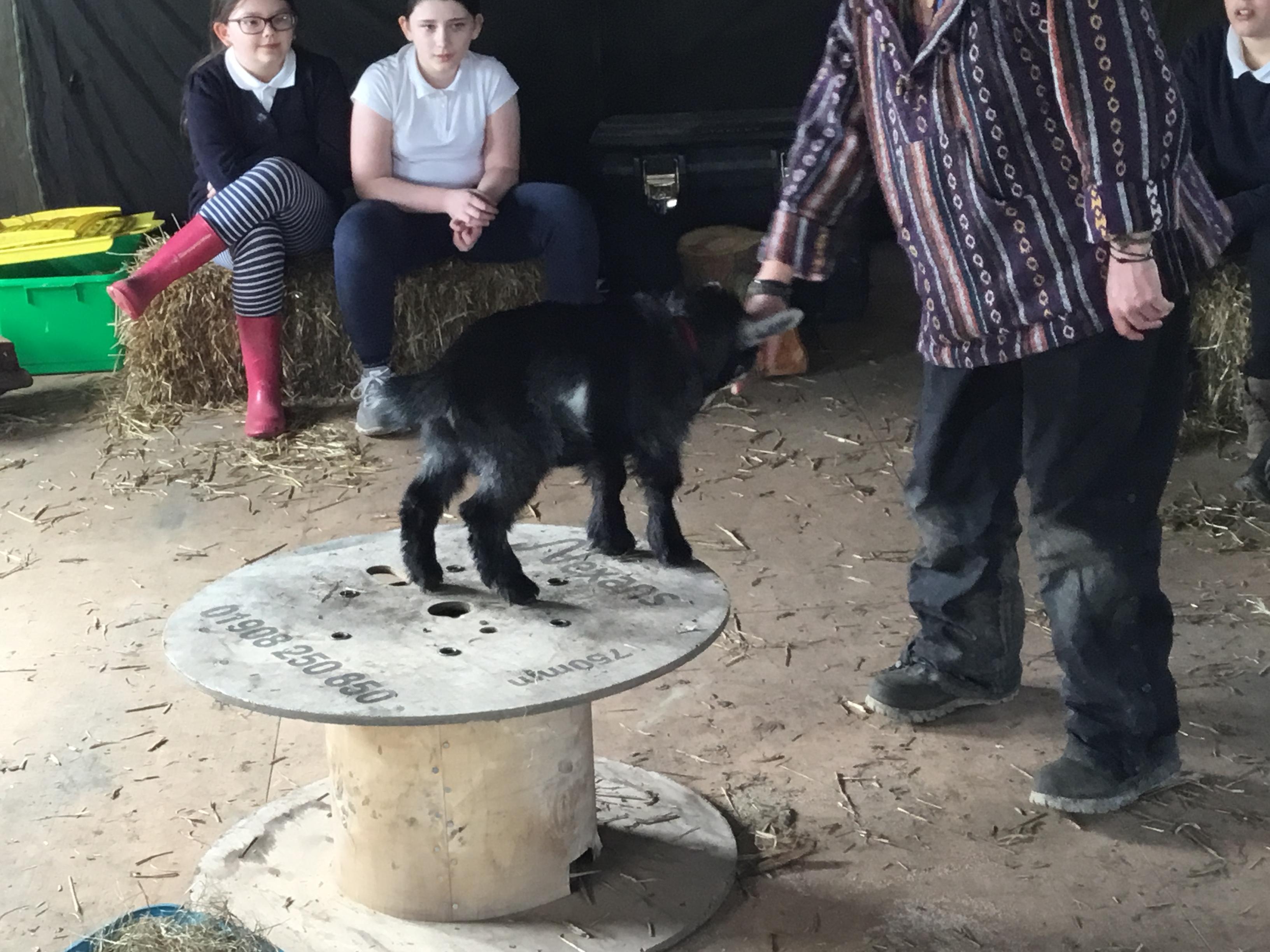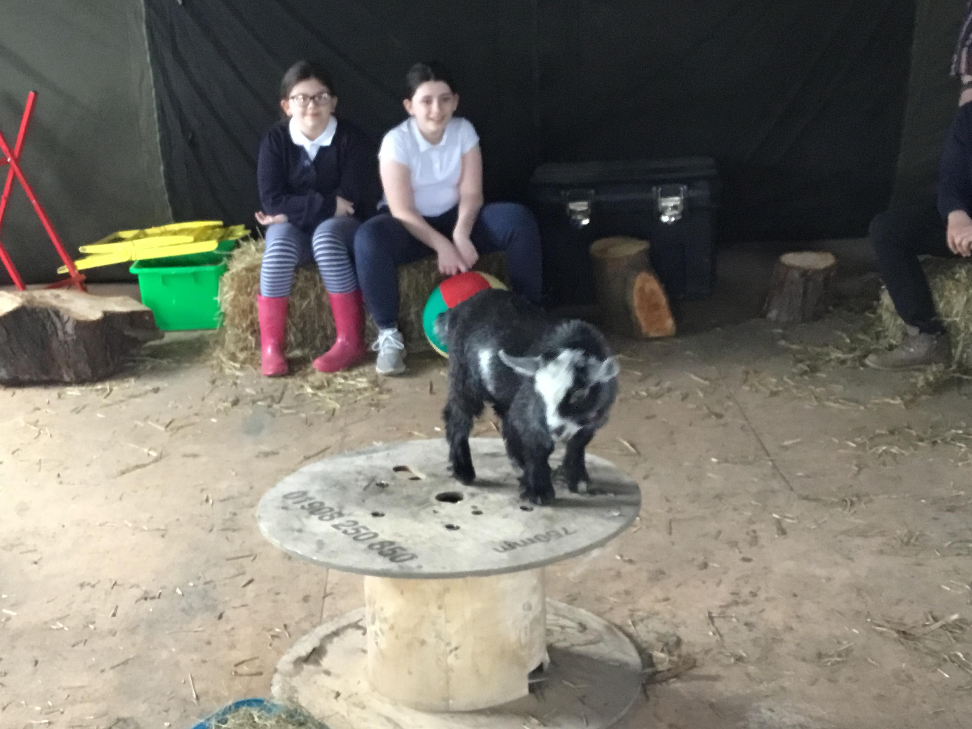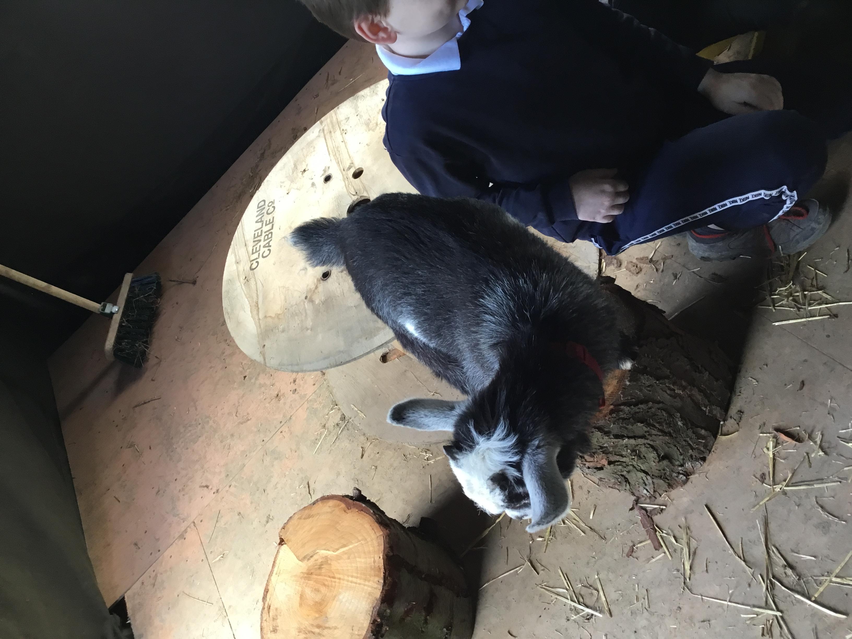 Y6 Forest Schools session, children that have planted saplings and meeting Brian the Billy Goat.