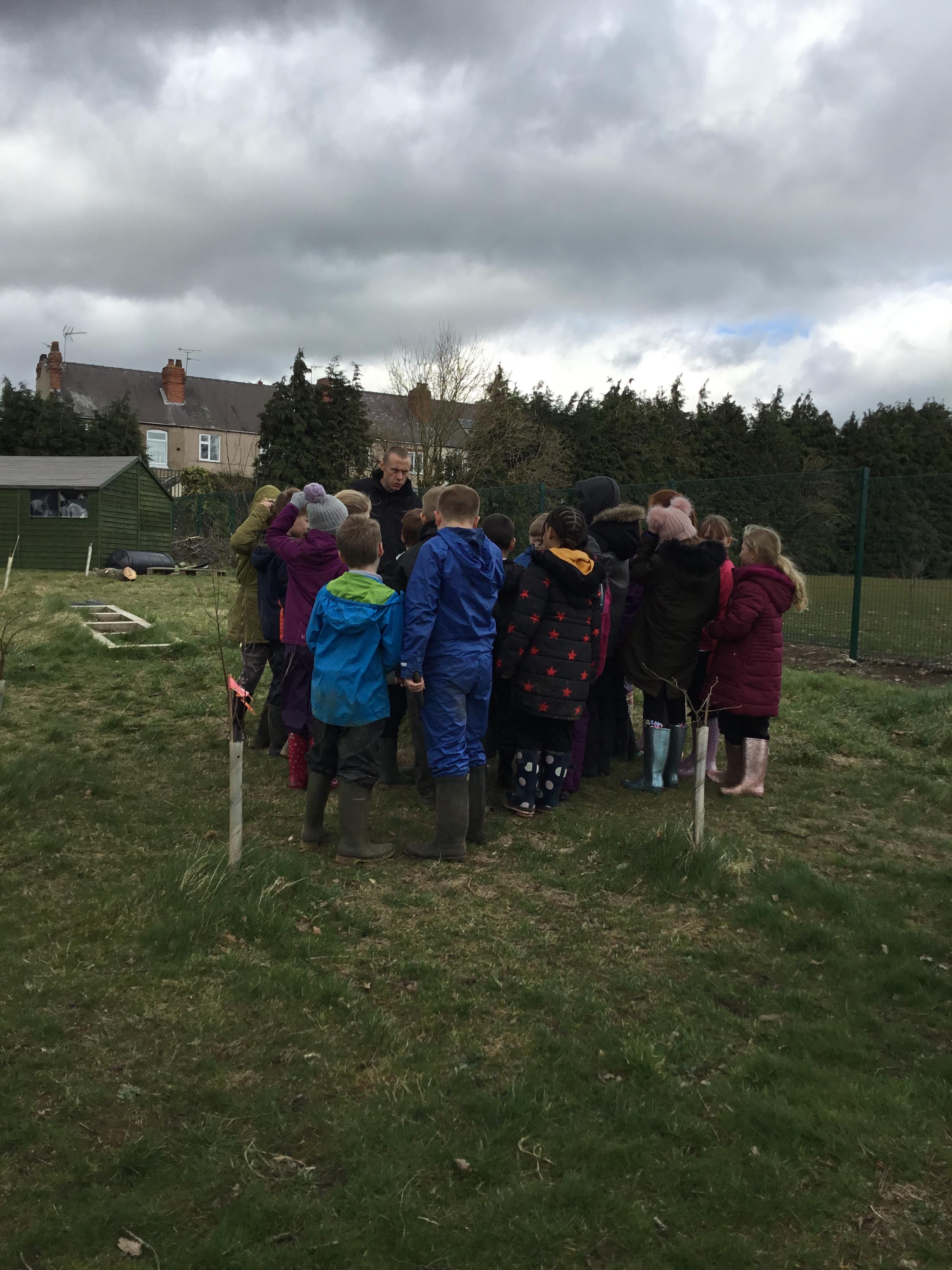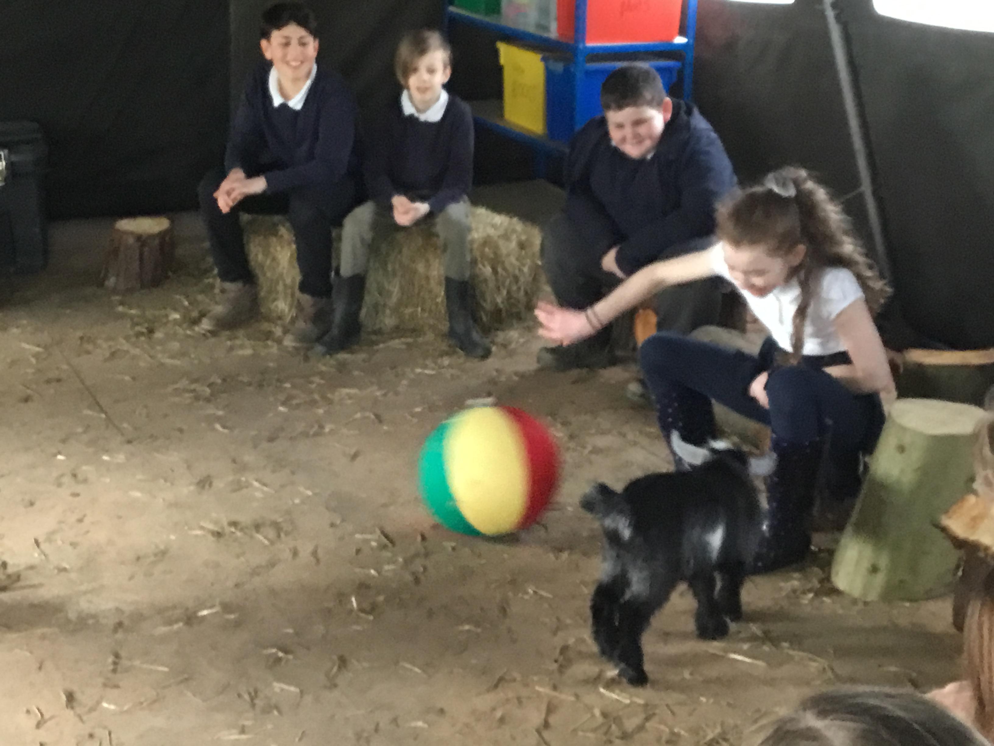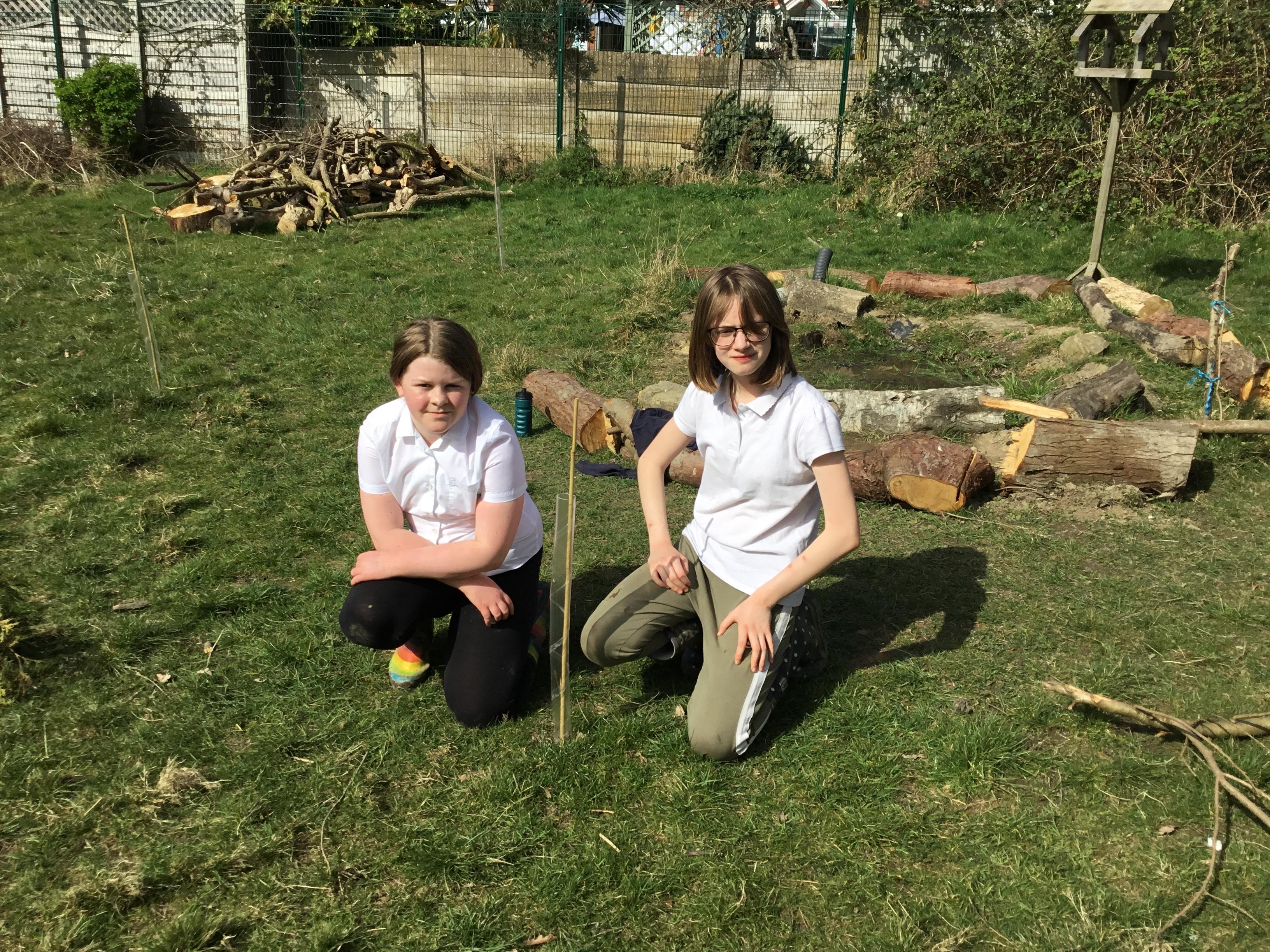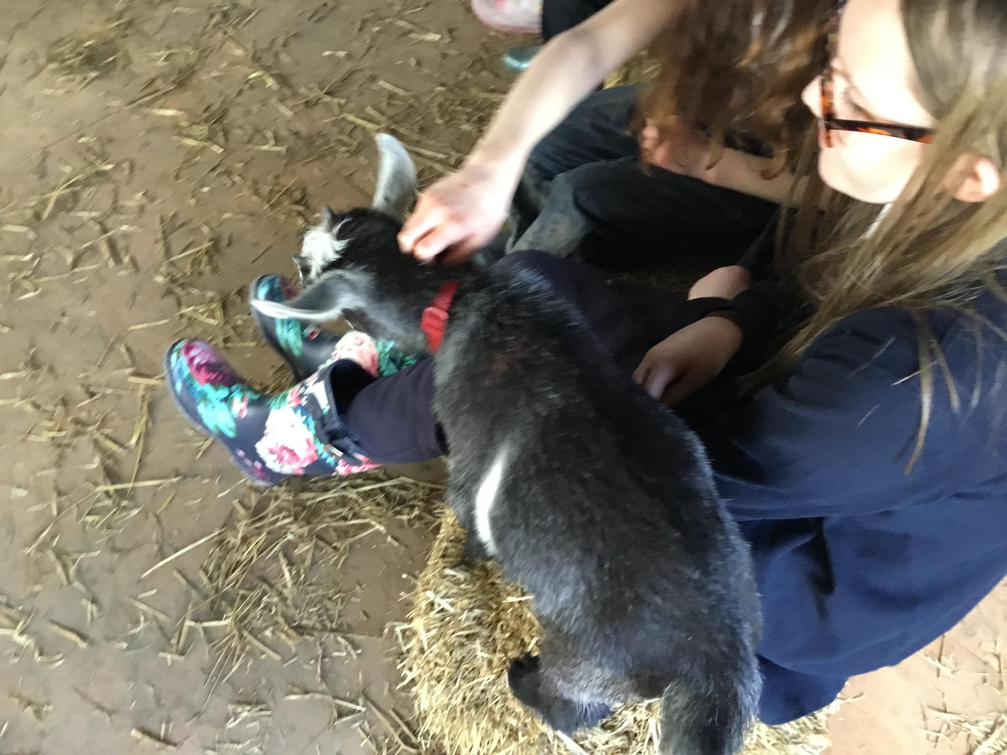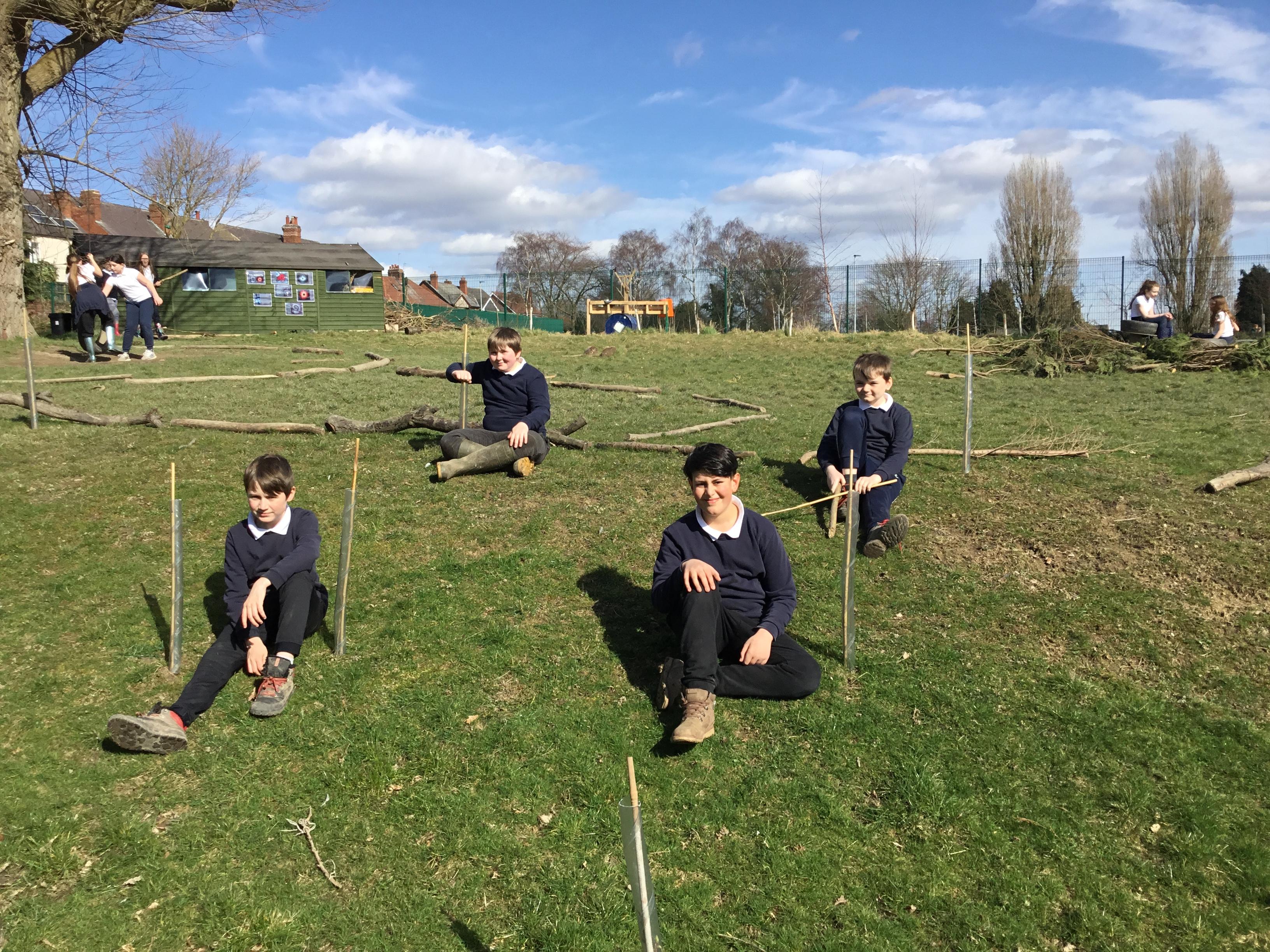 Y6 Forest Schools session, children that have planted saplings and meeting Brian the Billy Goat.