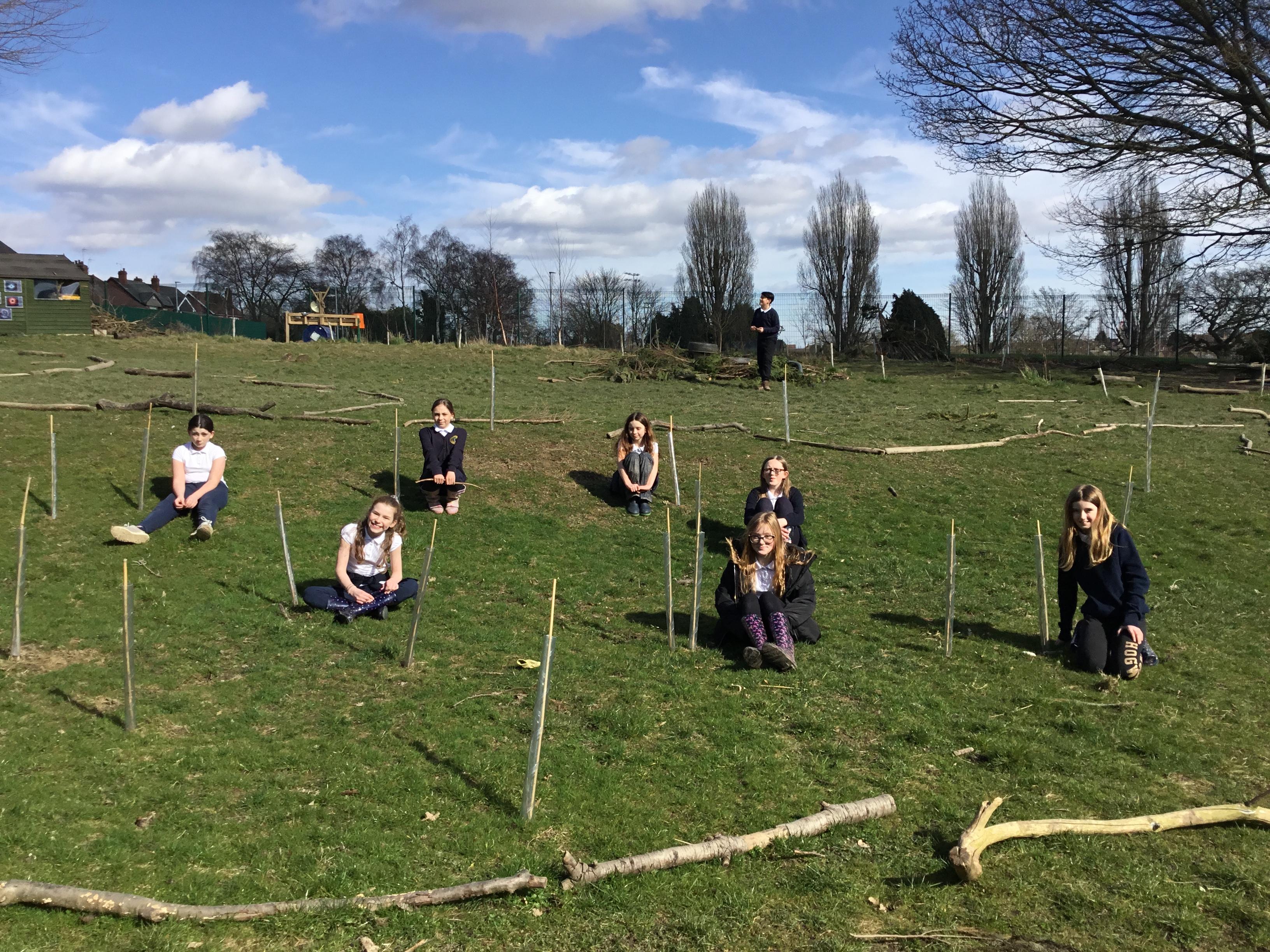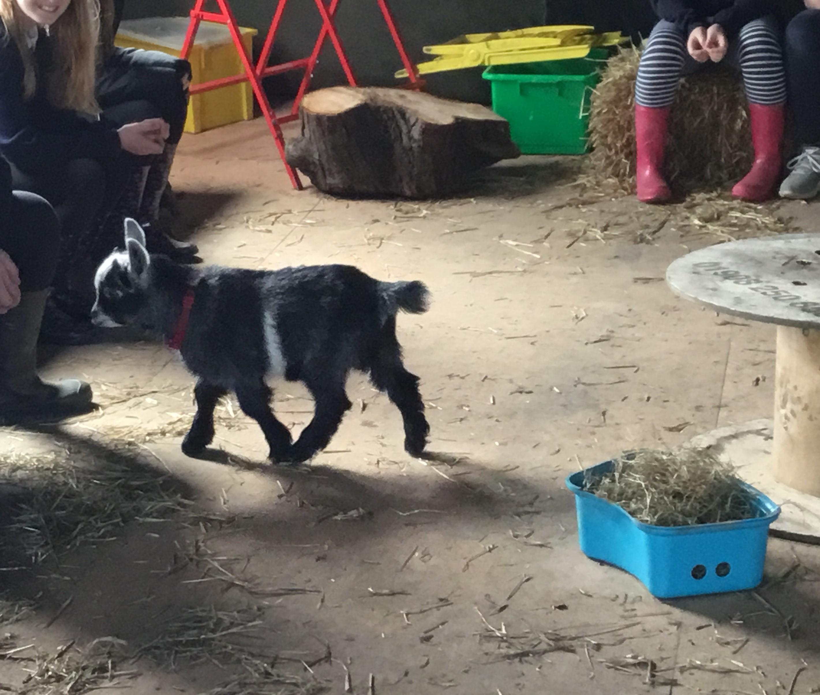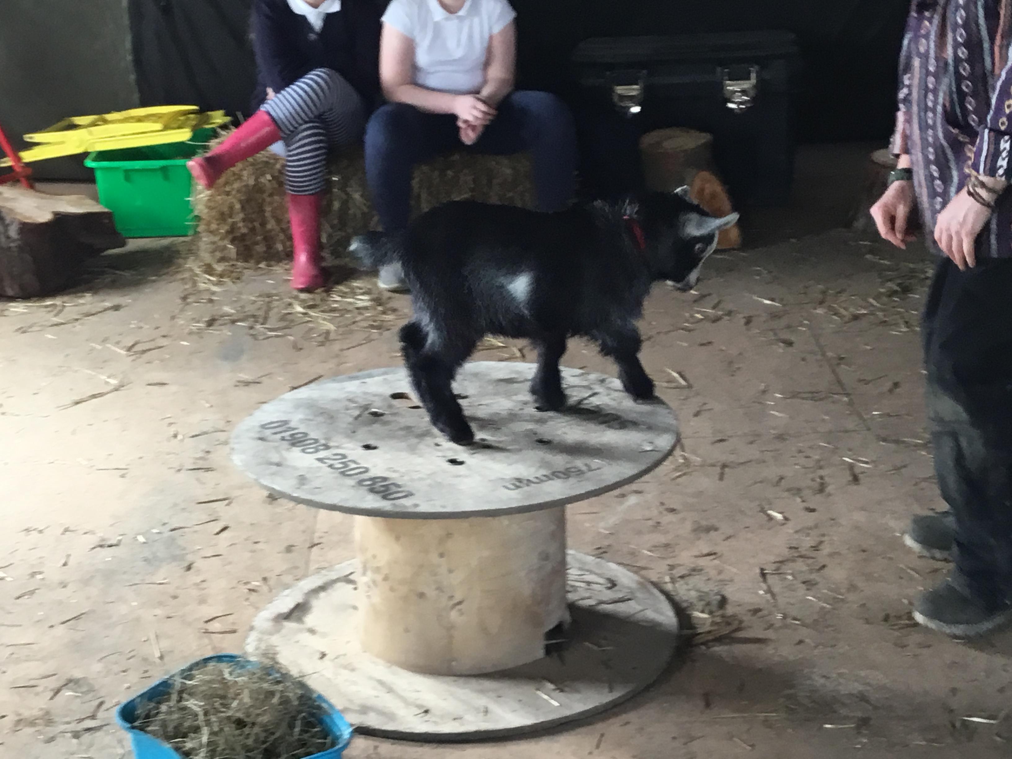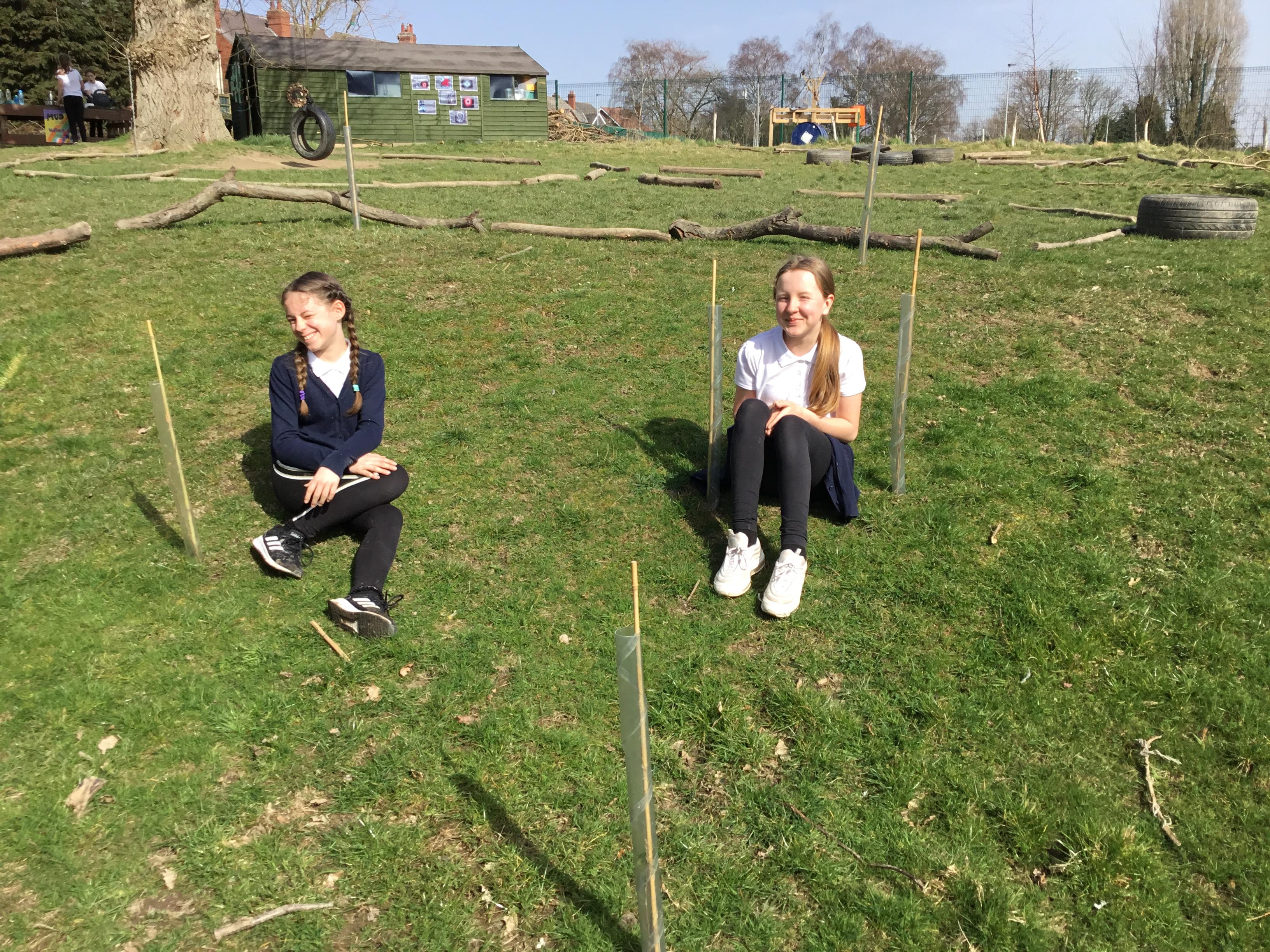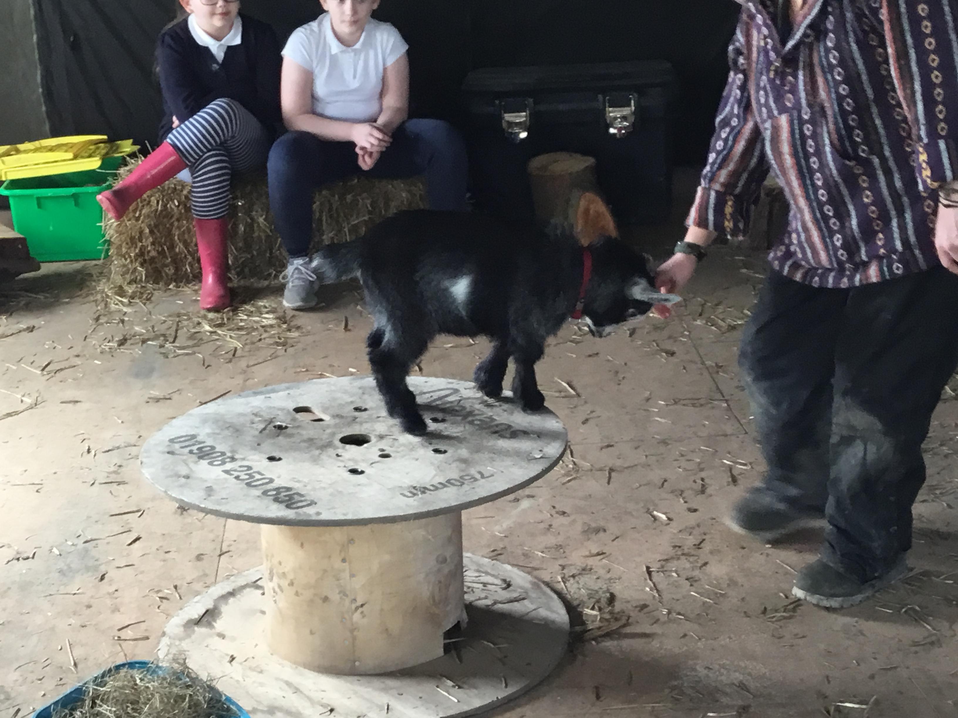 Y6 Forest Schools session, children that have planted saplings and meeting Brian the Billy Goat.