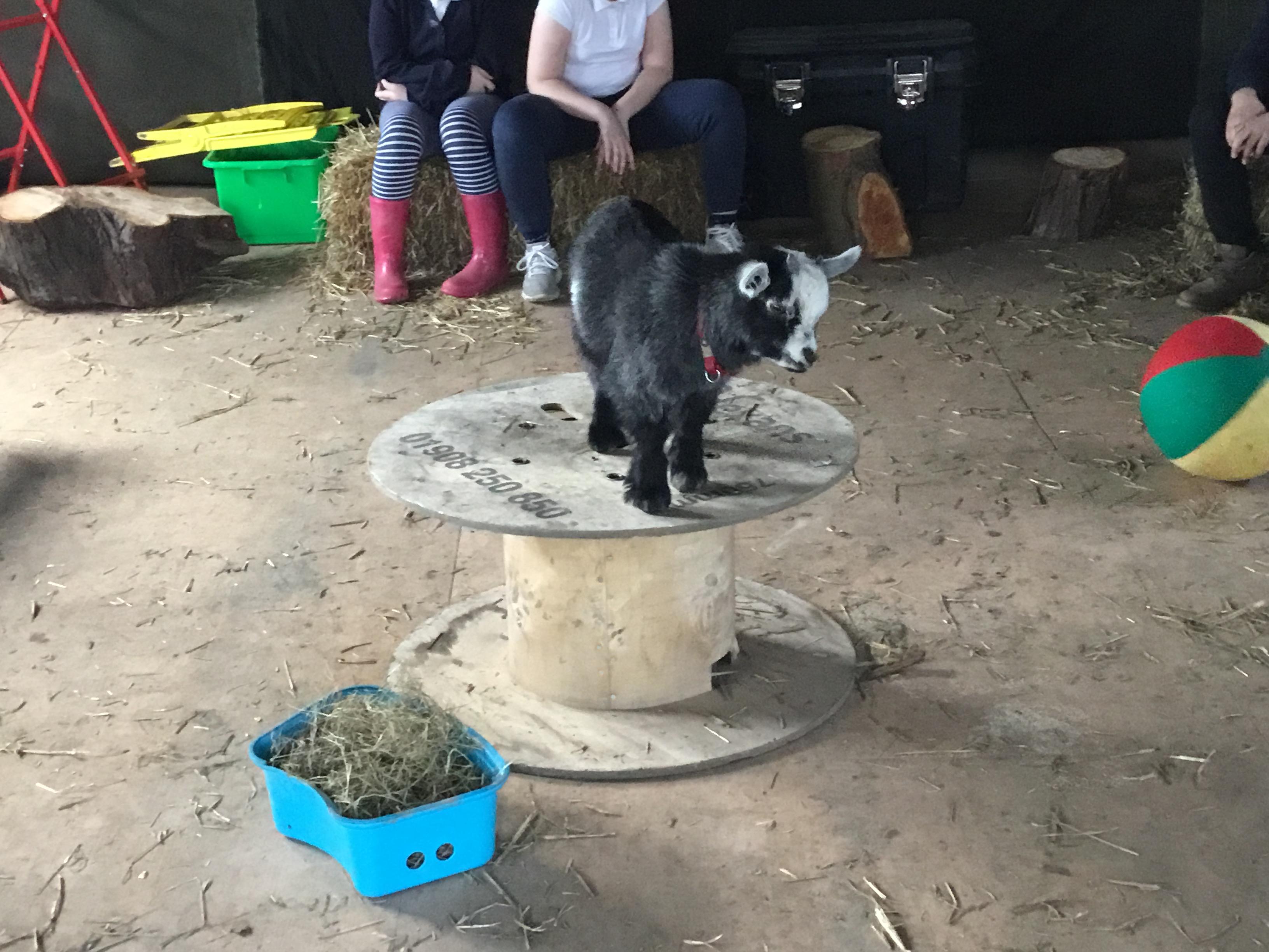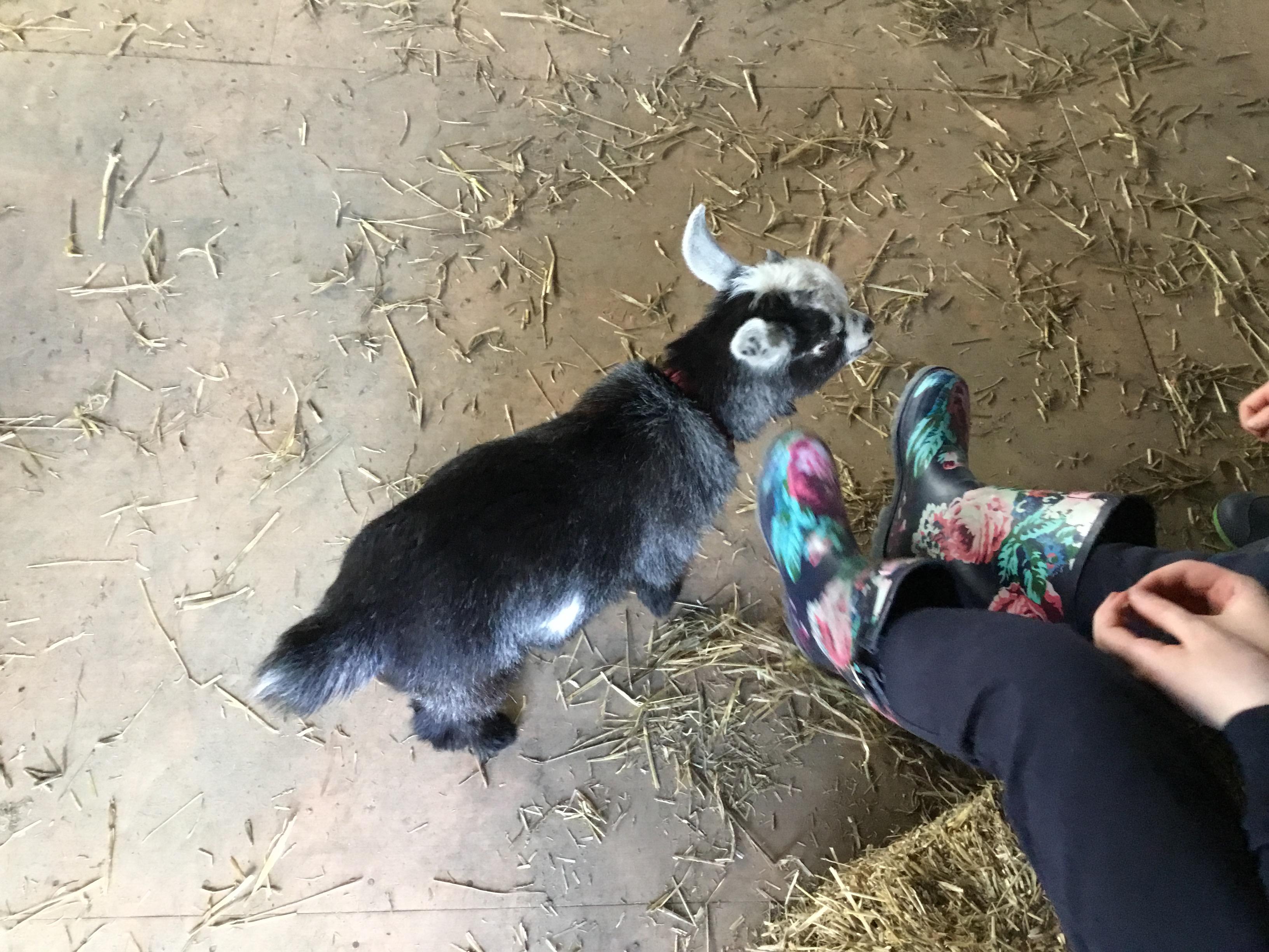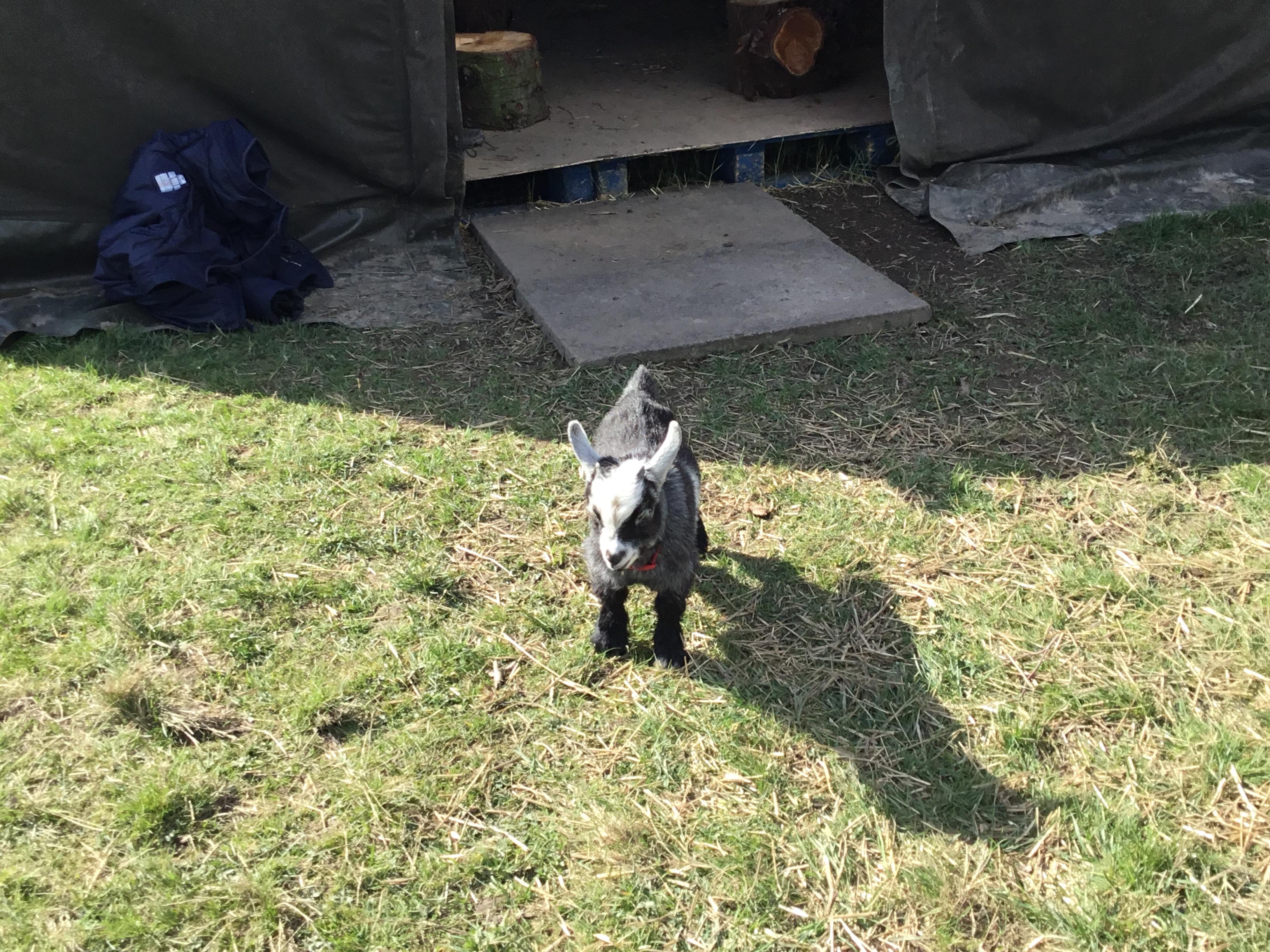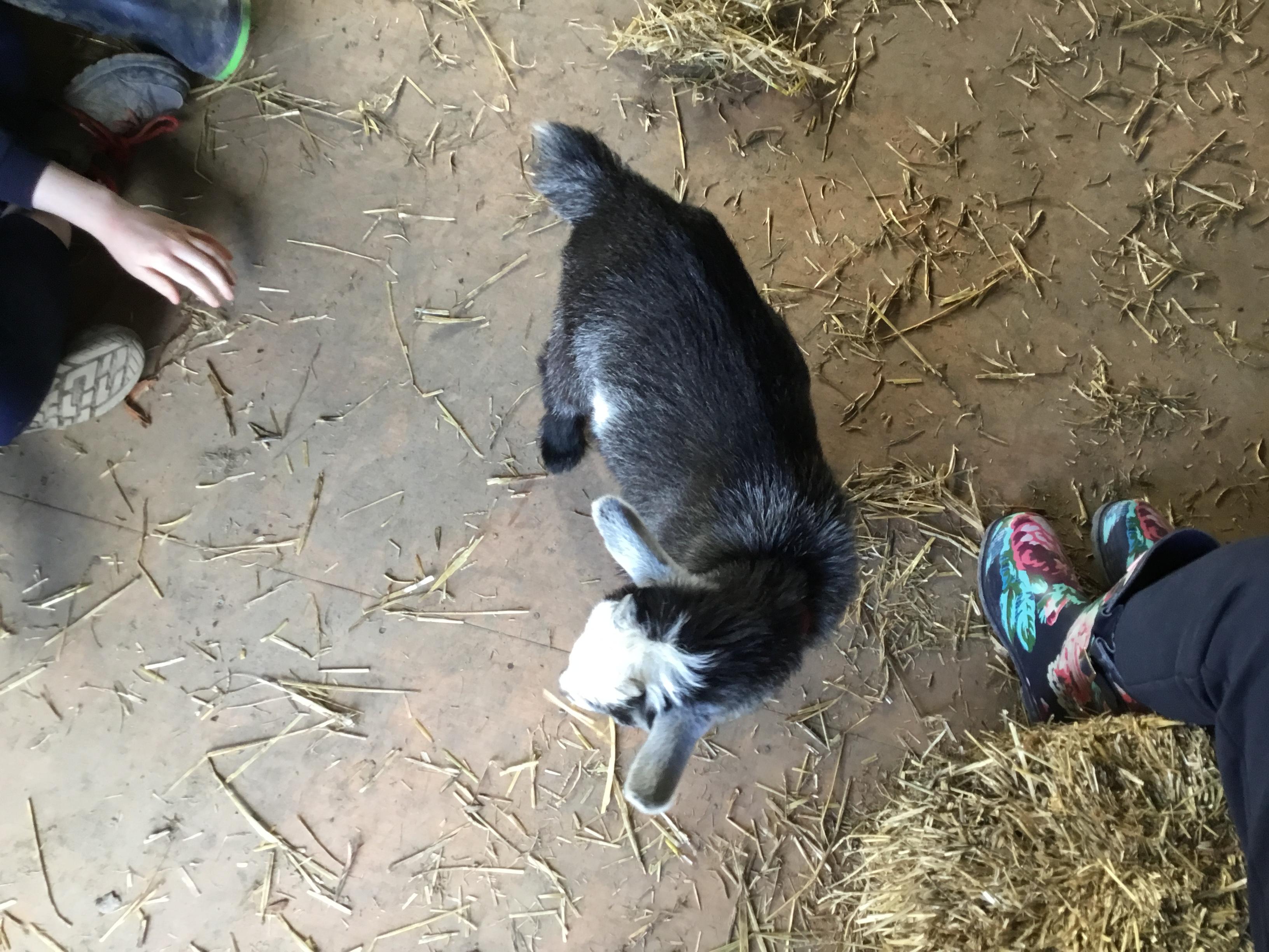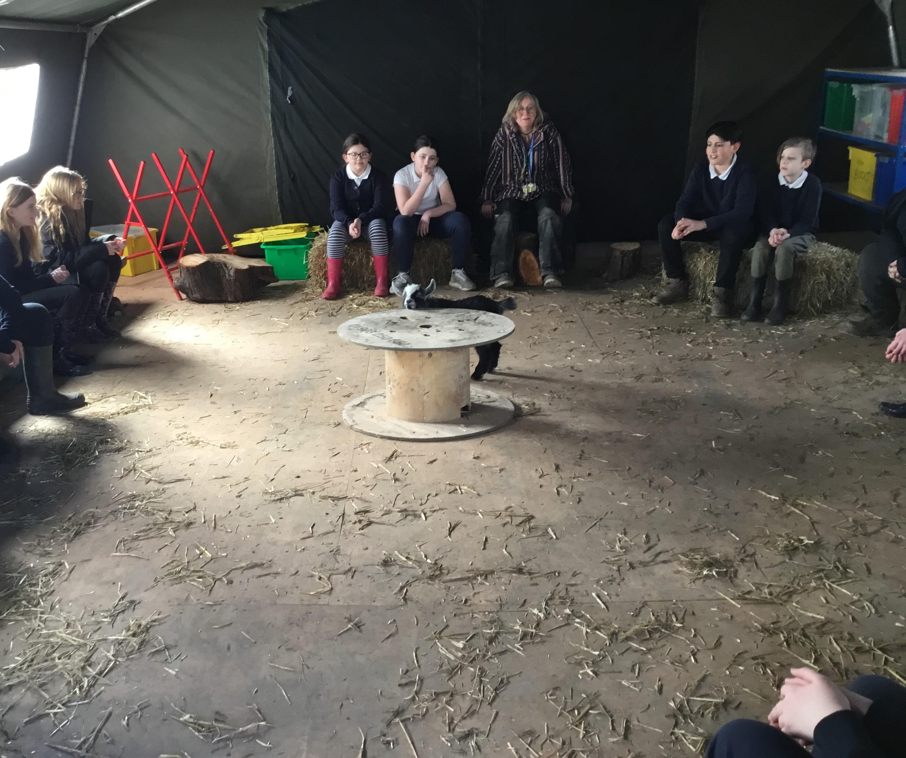 Y6 Forest Schools session, children that have planted saplings and meeting Brian the Billy Goat.