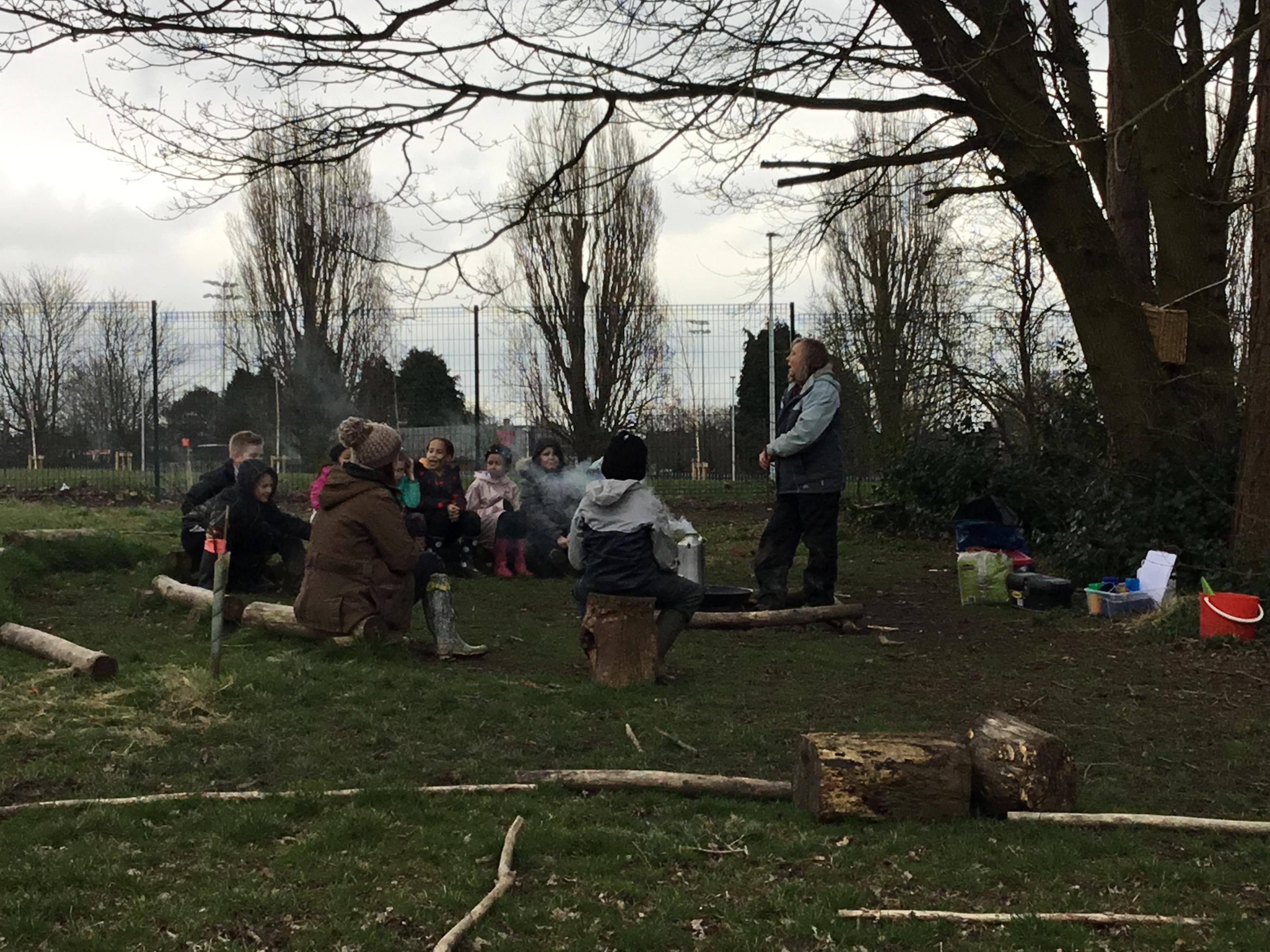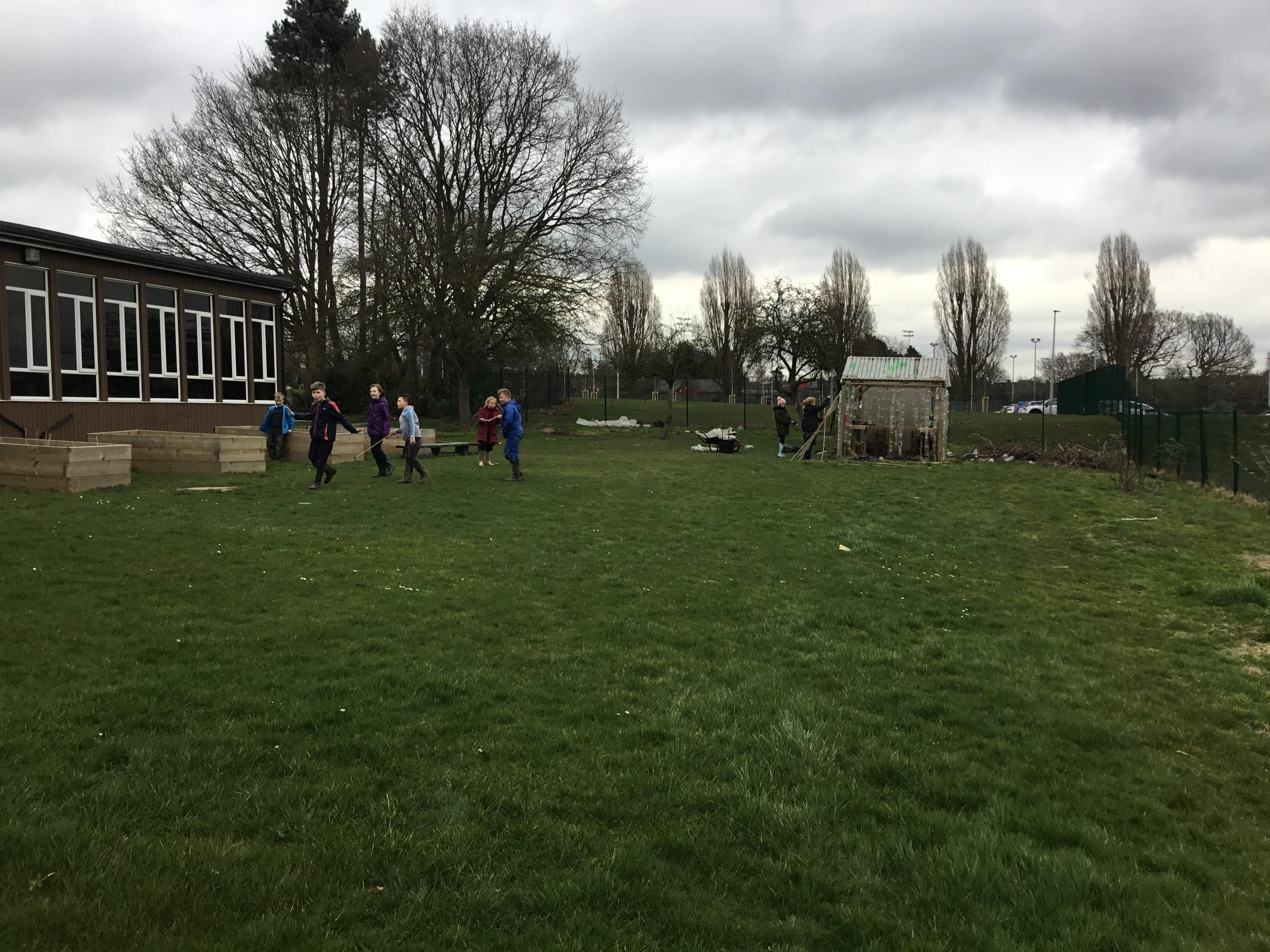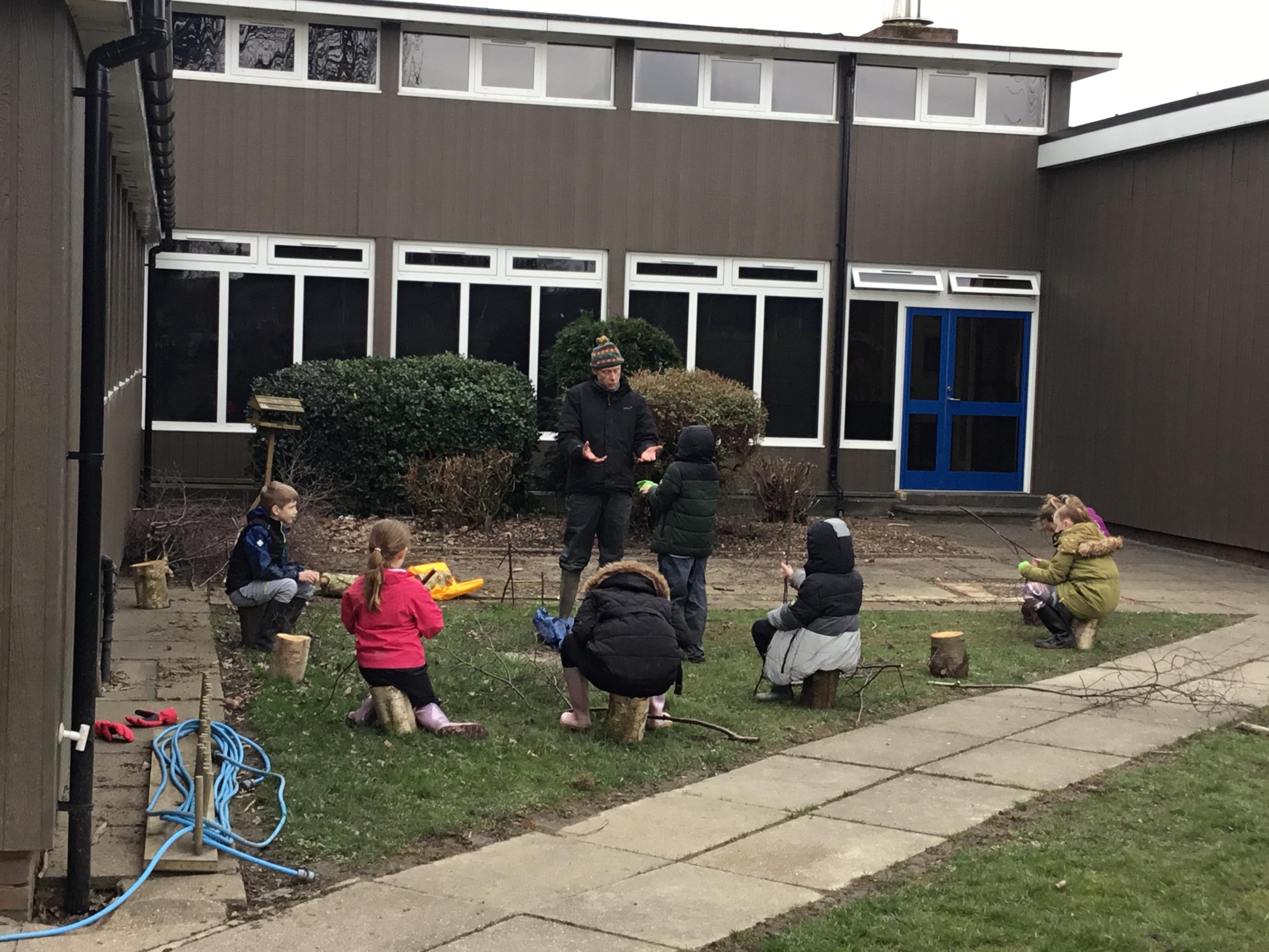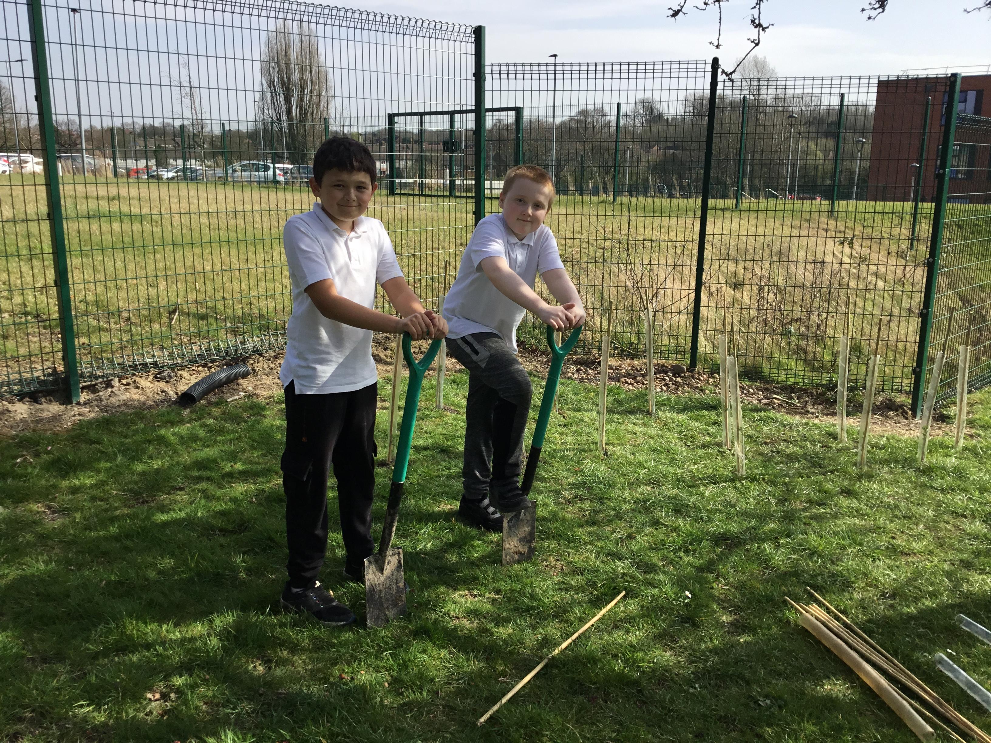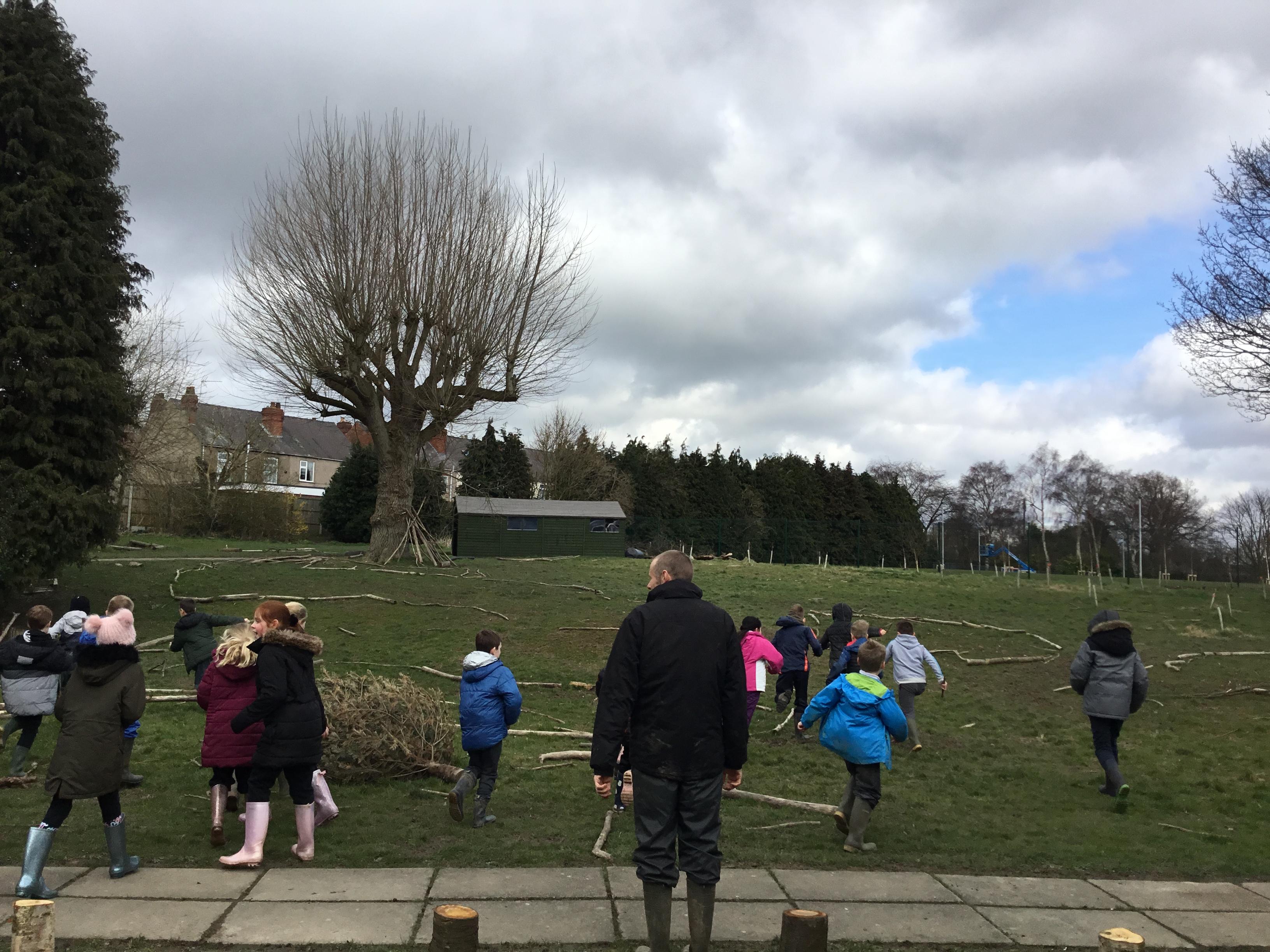 Y6 Forest Schools session, children that have planted saplings and meeting Brian the Billy Goat.