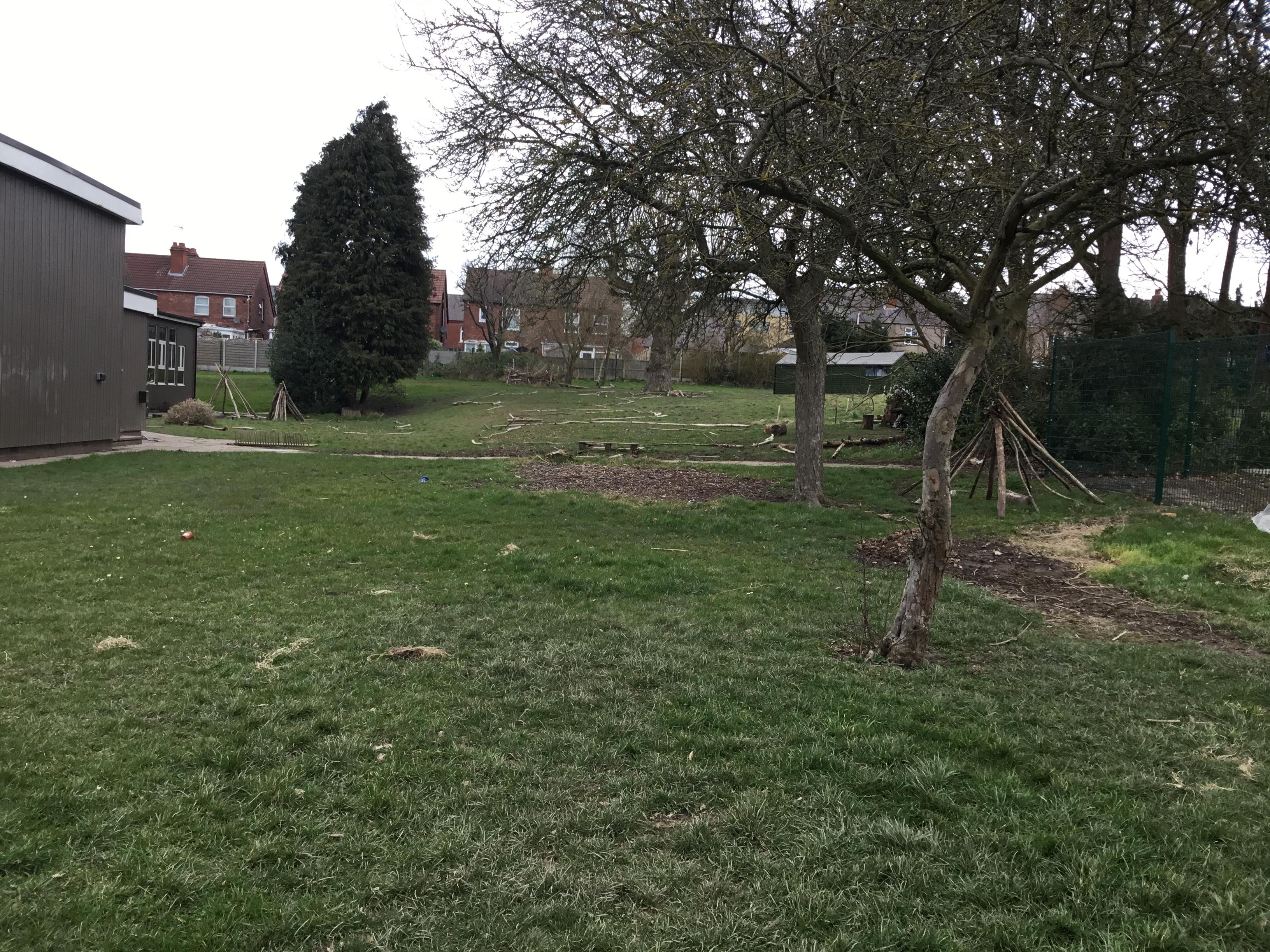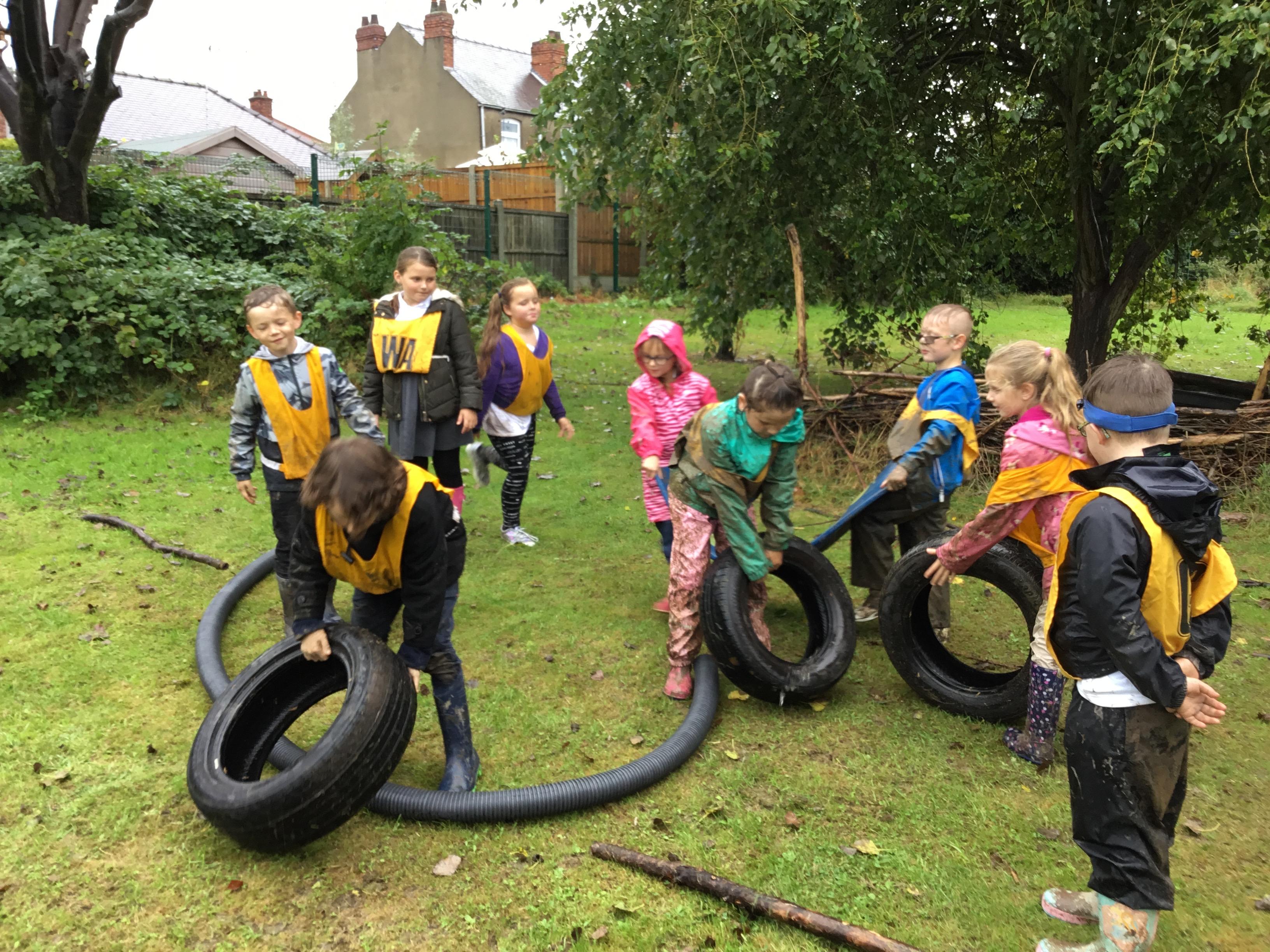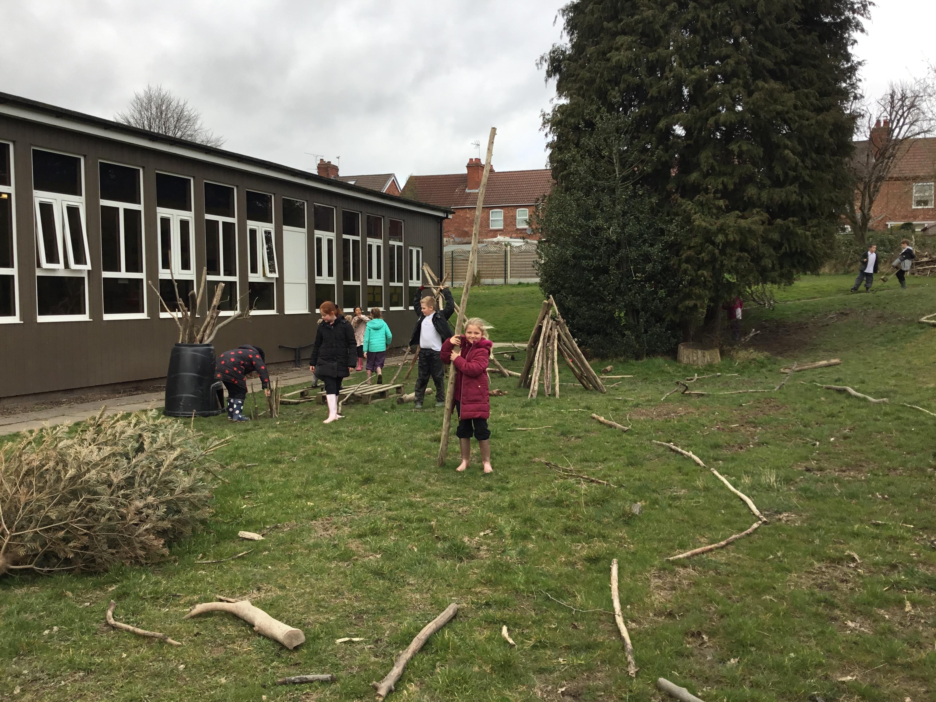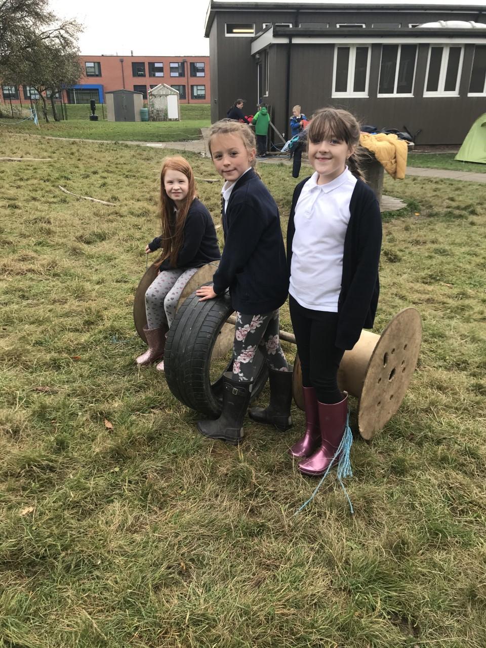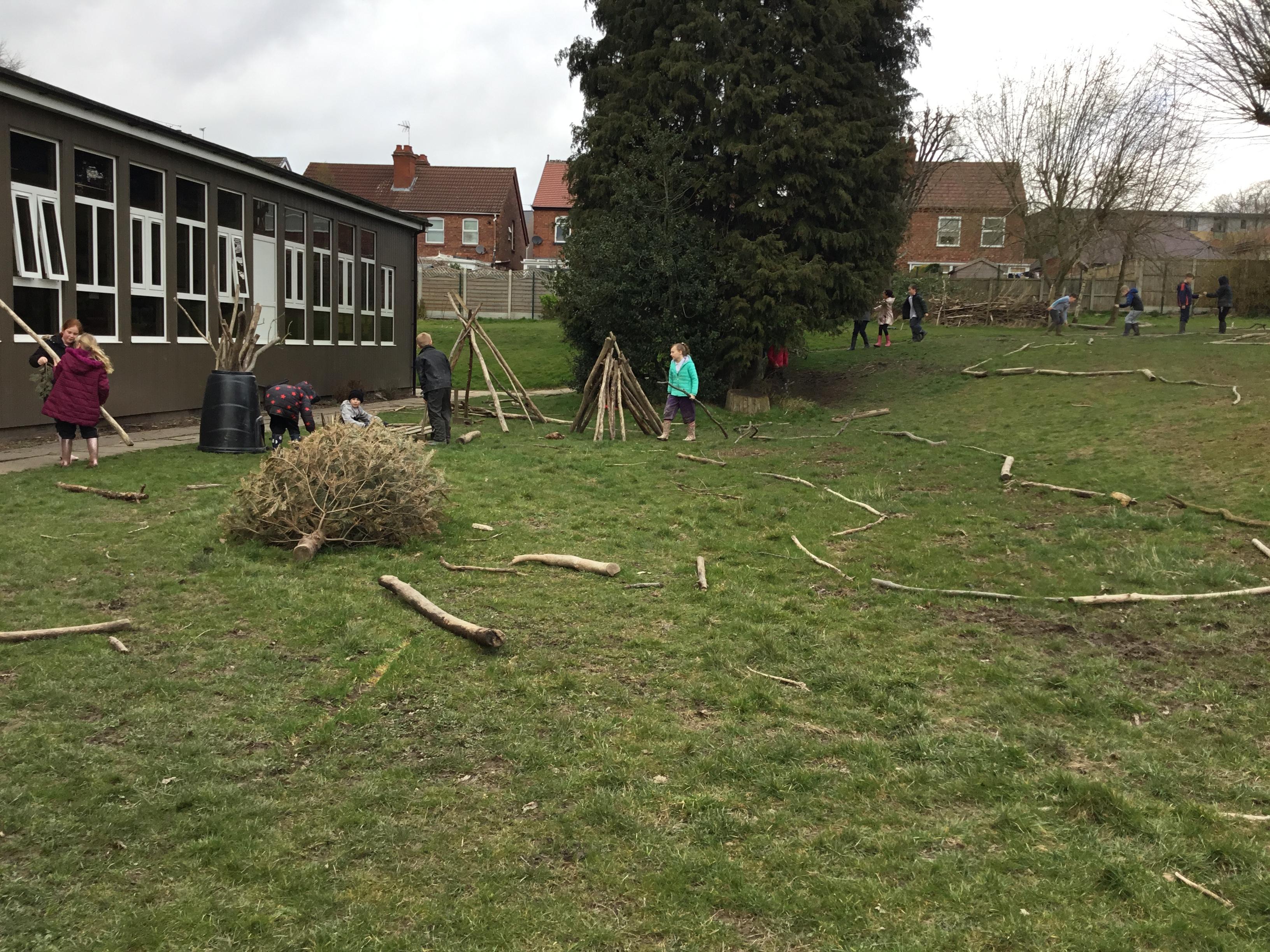 Y6 Forest Schools session, children that have planted saplings and meeting Brian the Billy Goat.