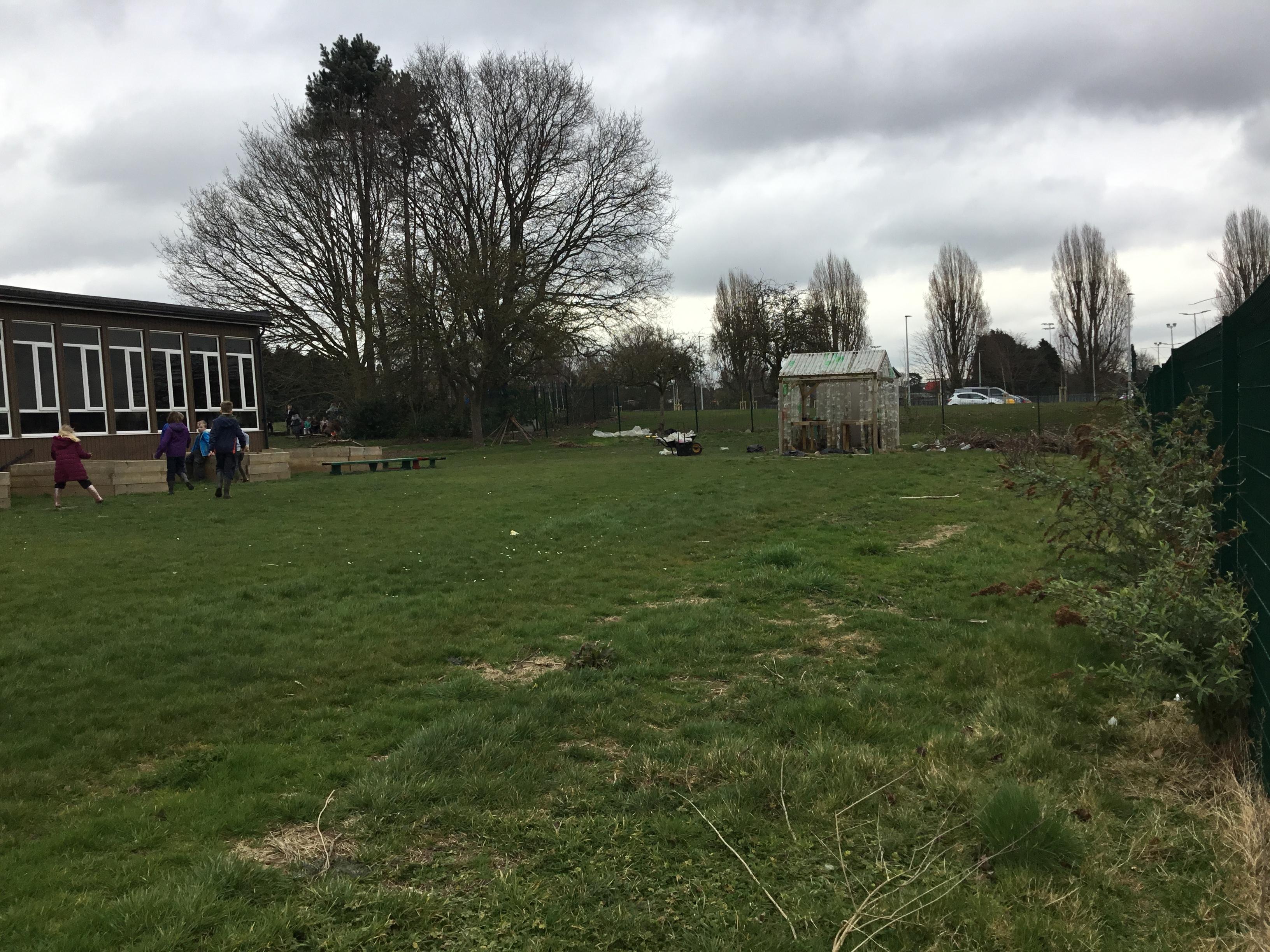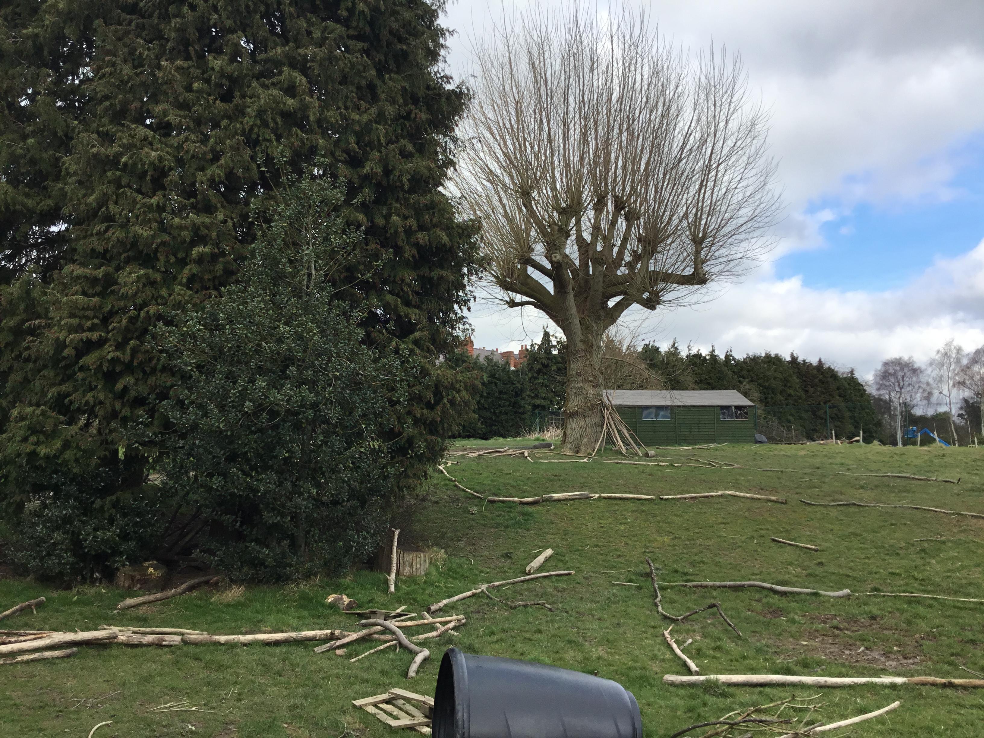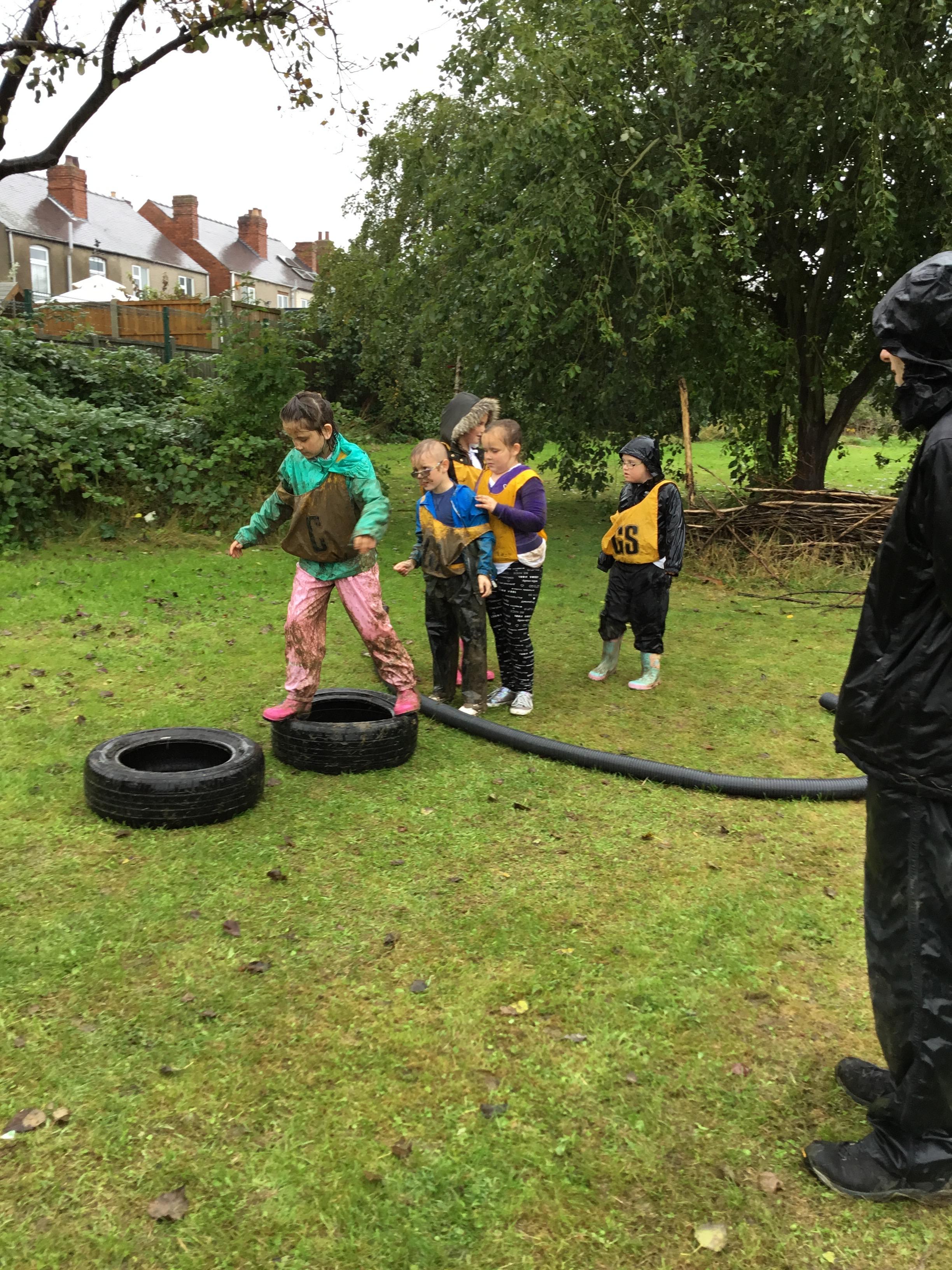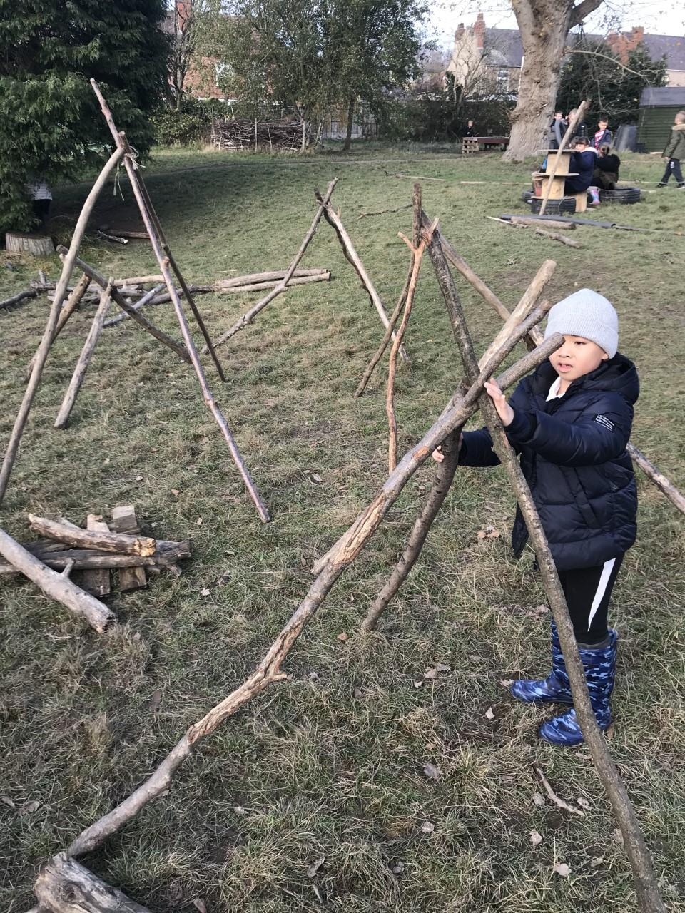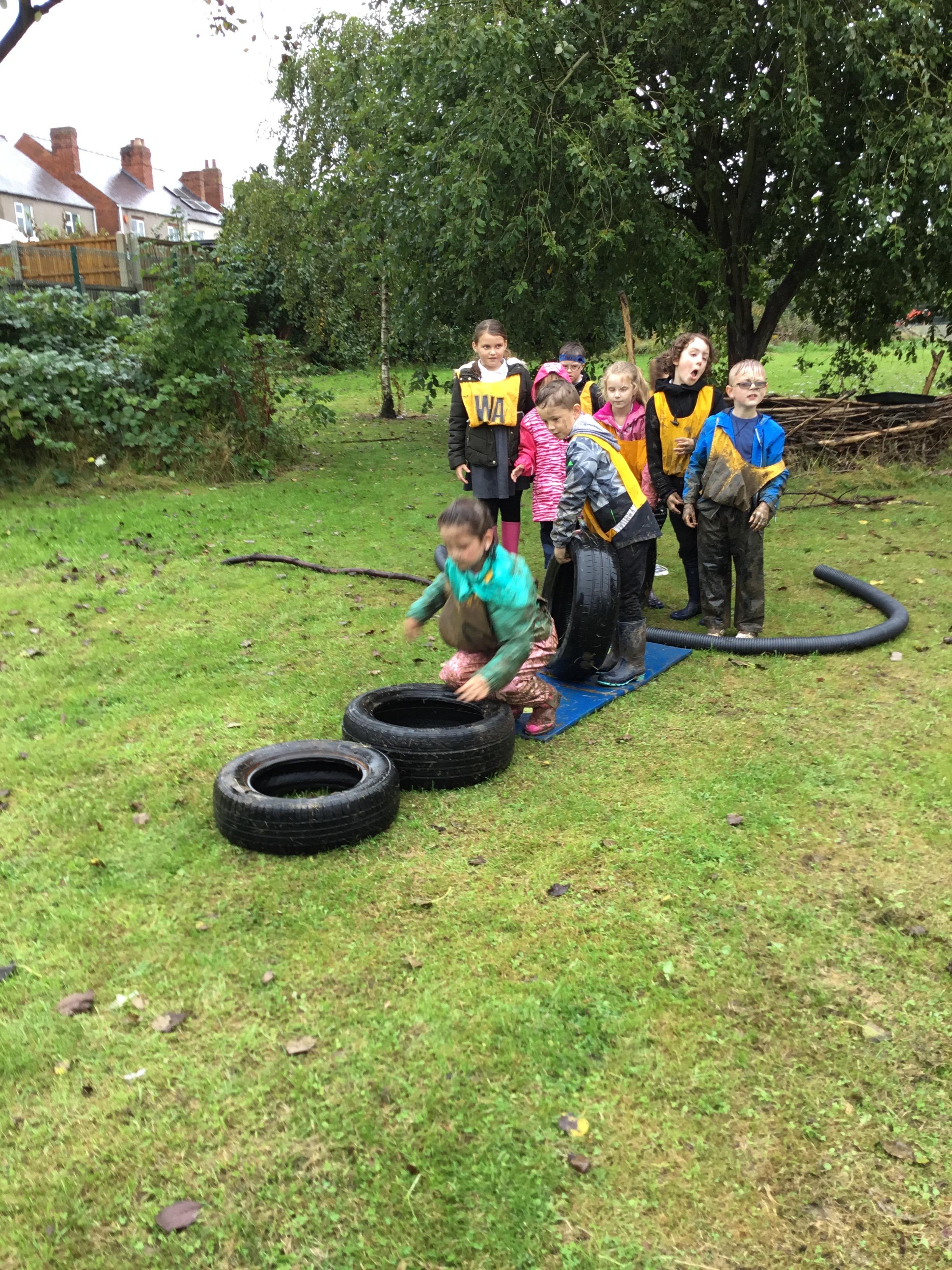 Y6 Forest Schools session, children that have planted saplings and meeting Brian the Billy Goat.