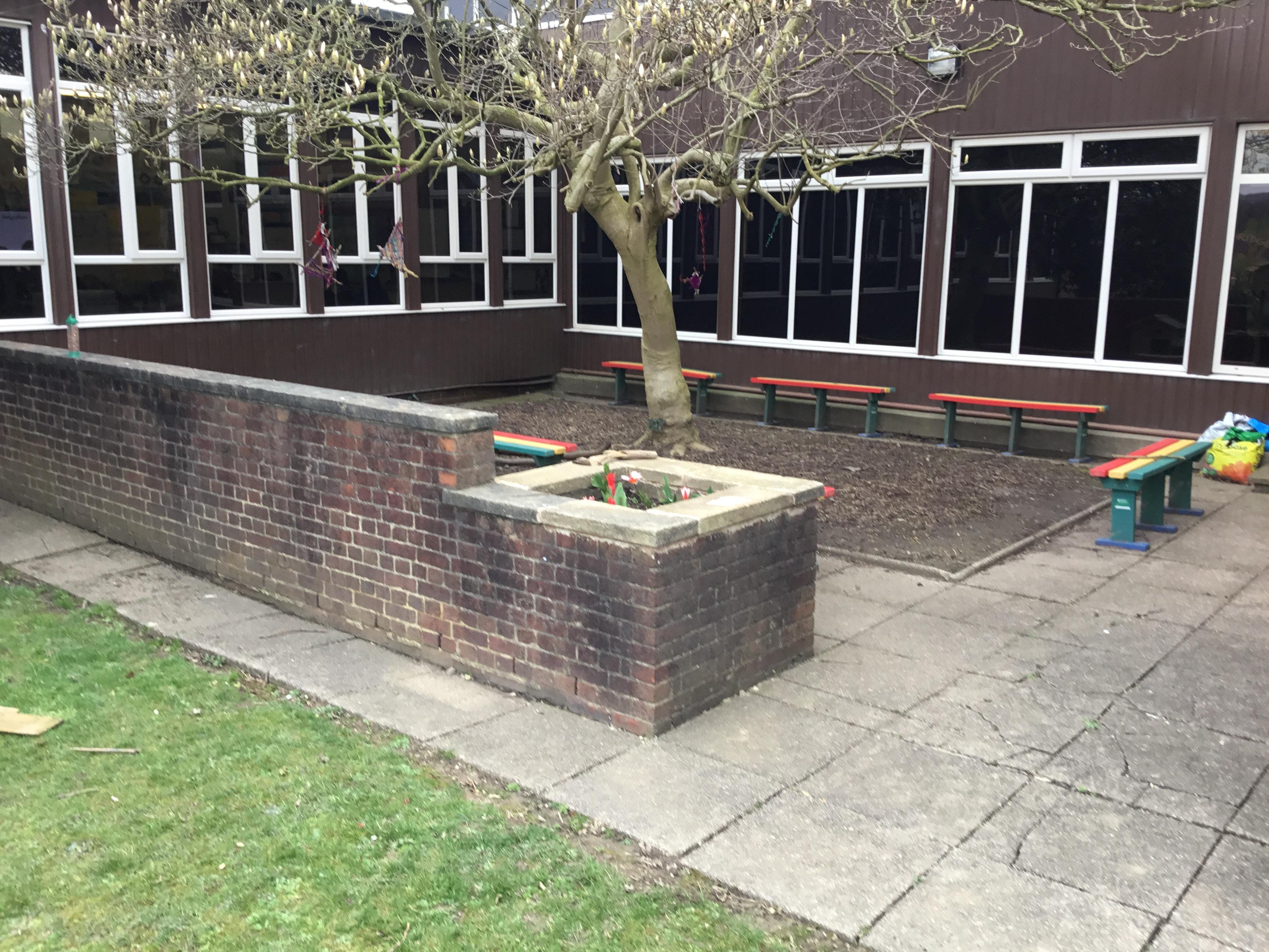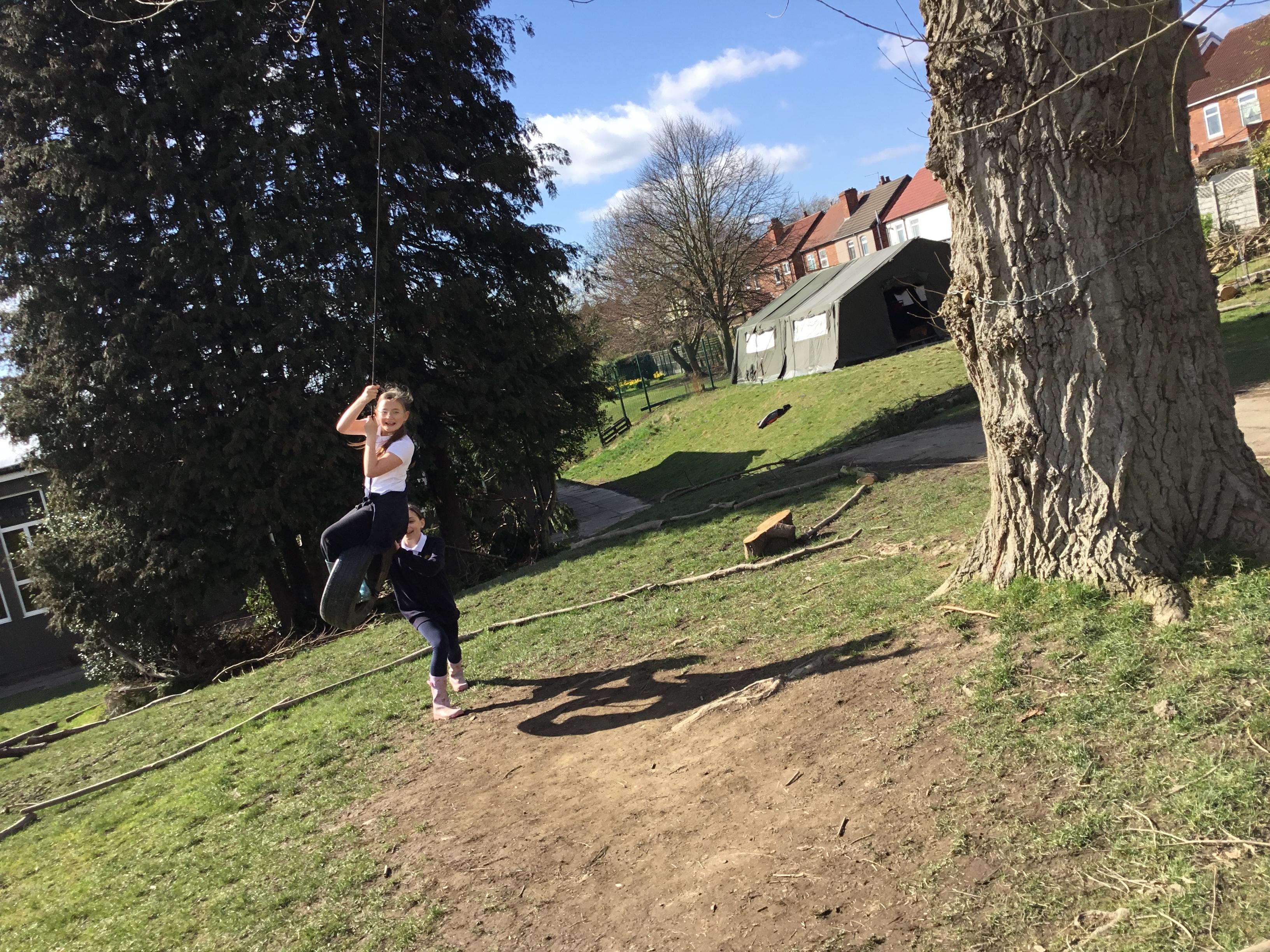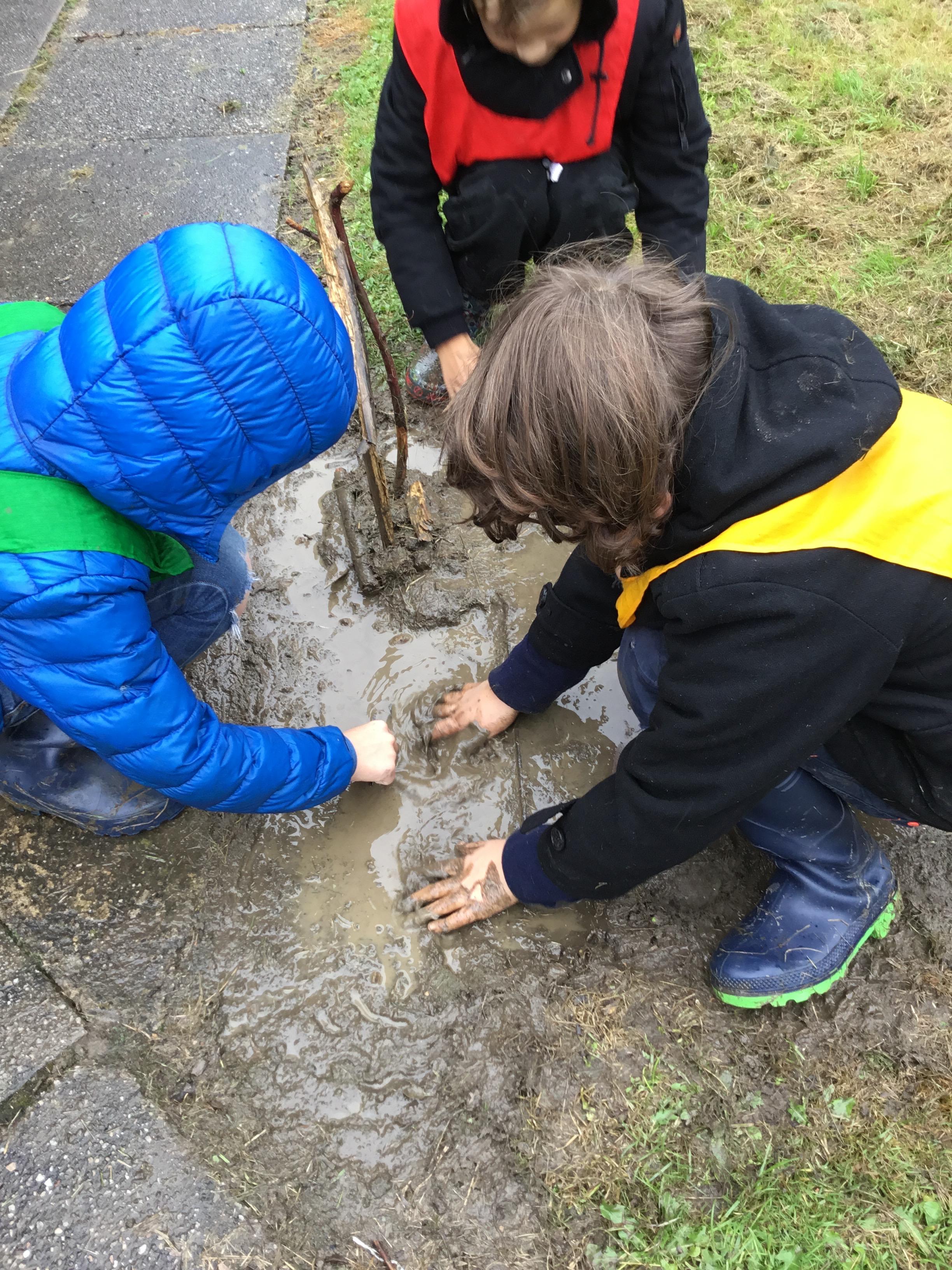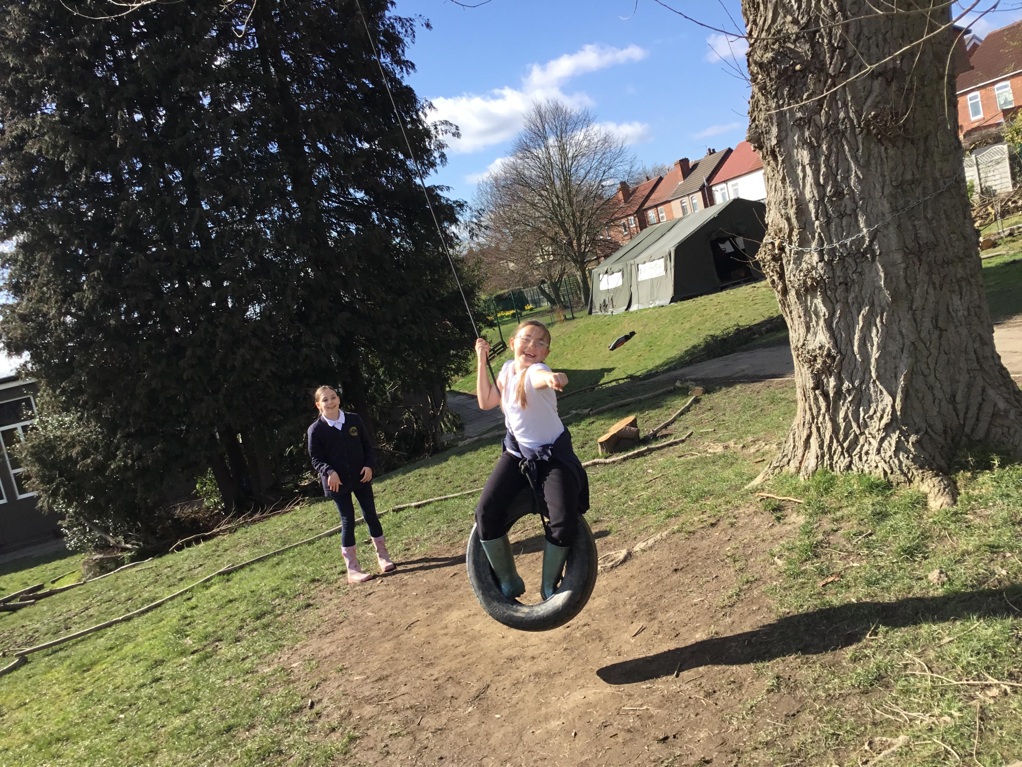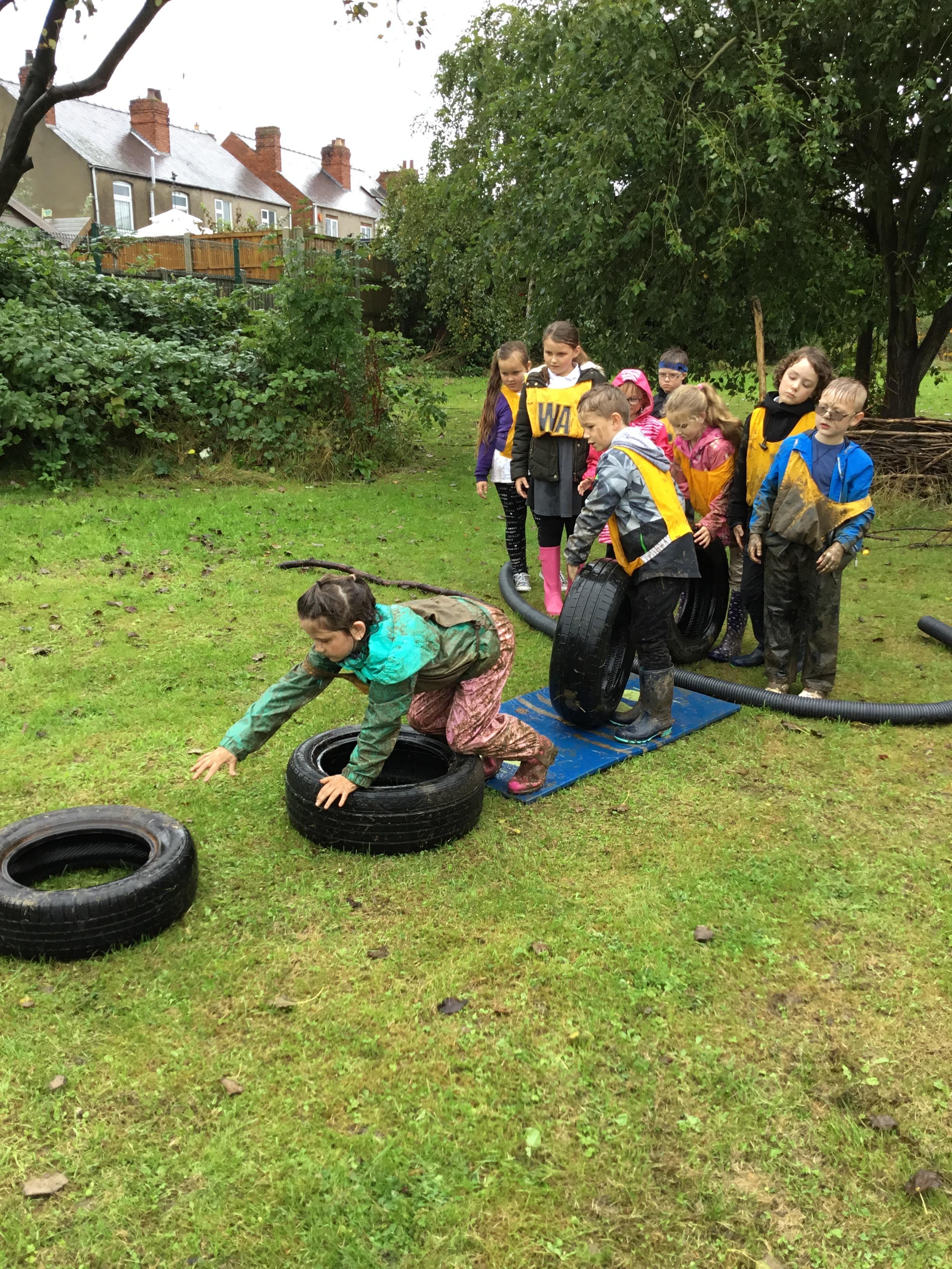 Y6 Forest Schools session, children that have planted saplings and meeting Brian the Billy Goat.