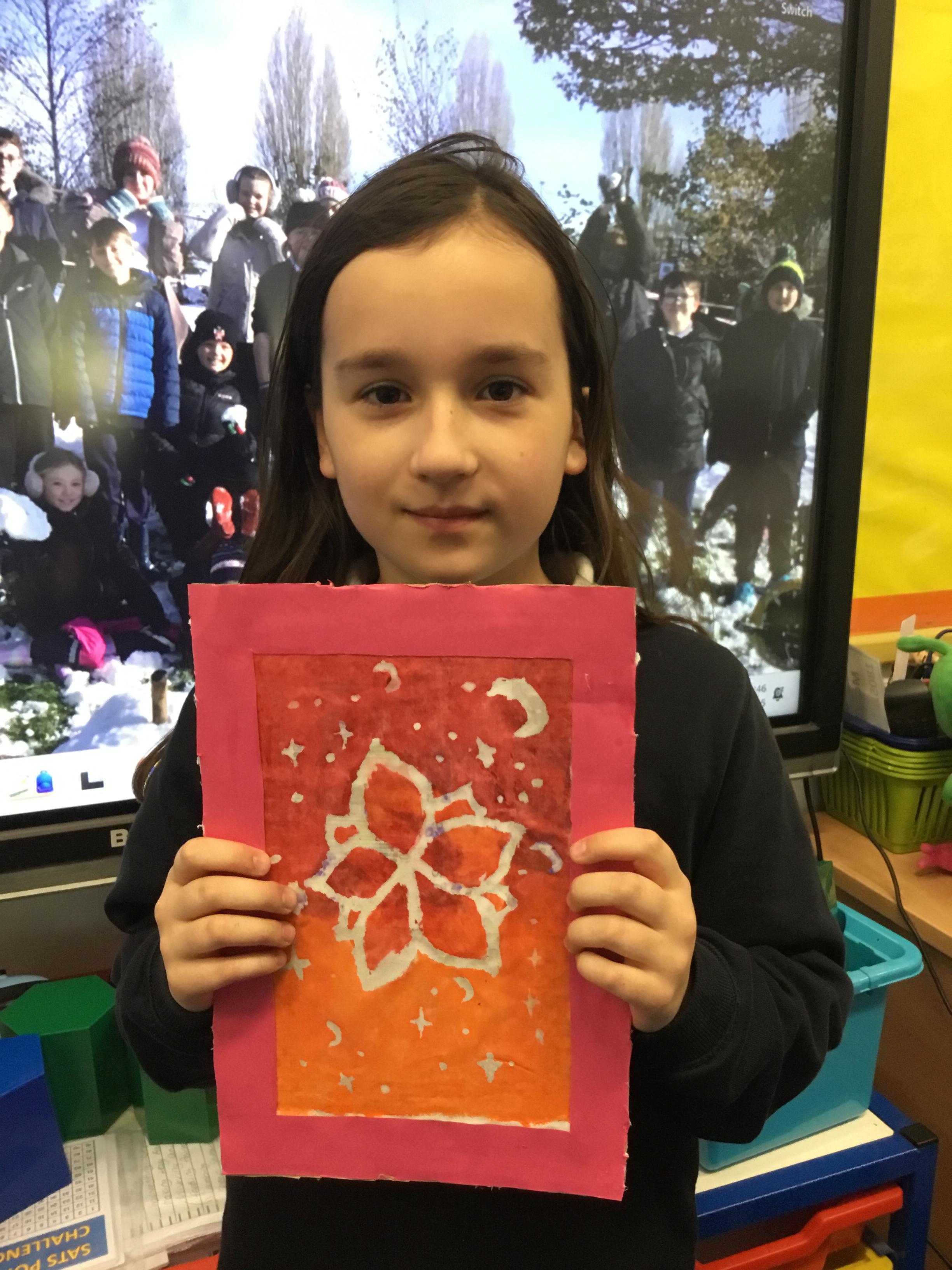 Tuesday 1st April - Art - We've finished our batik and put them in our frames. We're pretty proud of the finished products.