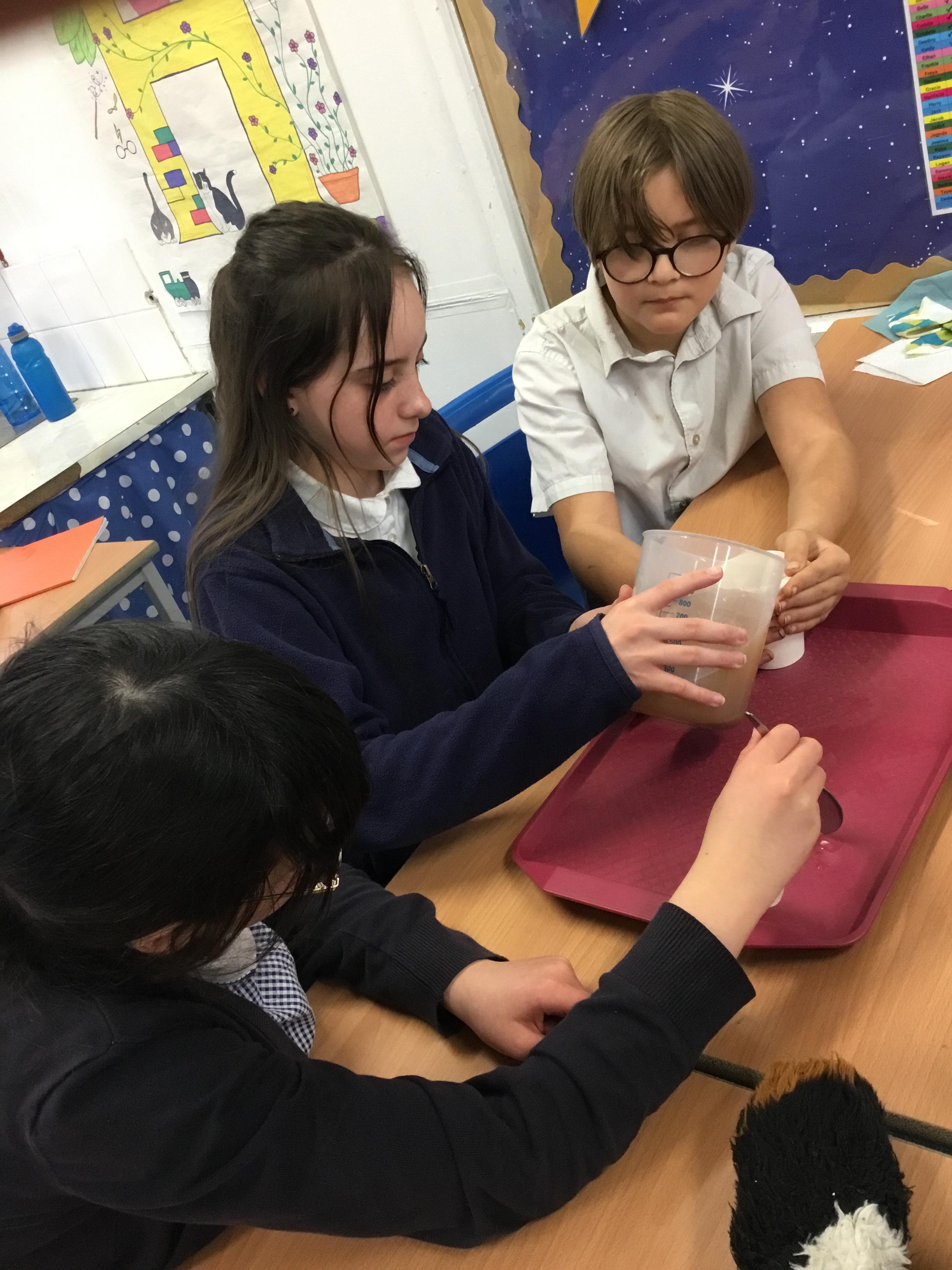 Monday 17th March - Our final experiment to celebrate Science Week. here we are working out the best material to filter out microplastics. Surprisingly, it wasn't filter paper!