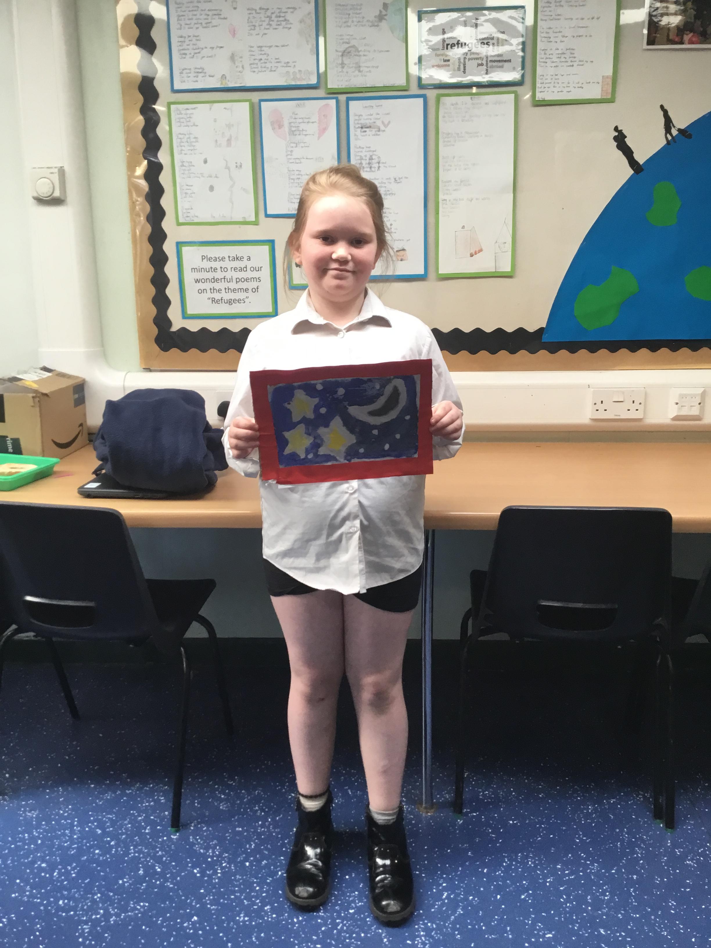 Weds 2nd April - In our Art lessons we created our own batik pictures - using PVA glue instead of wax. We then mounted them and created a frame. Look how fabulous they are.