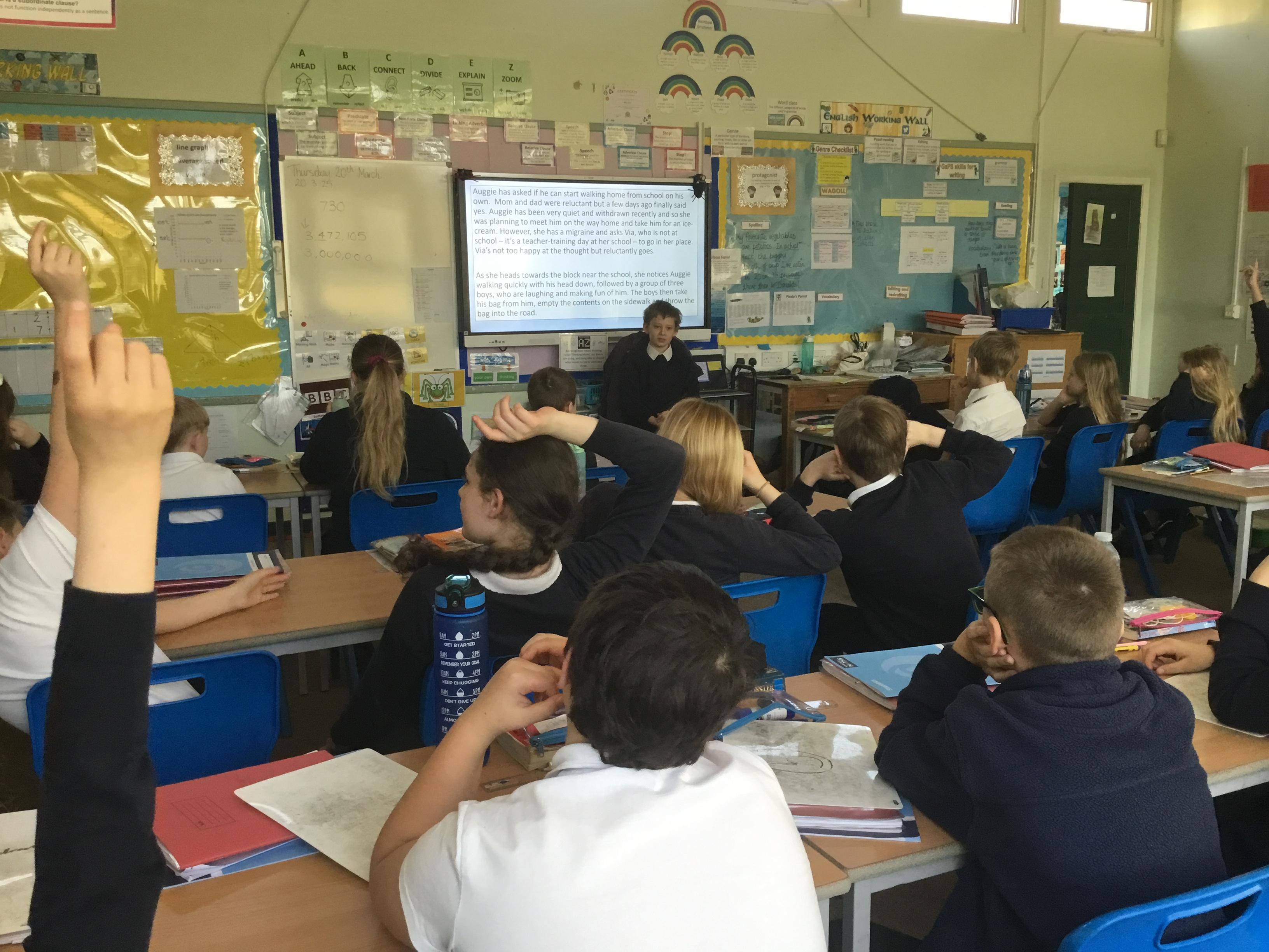 Thursday 20th March - Practising our drama skills. We were looking at the characters in our class reading book "Wonder".