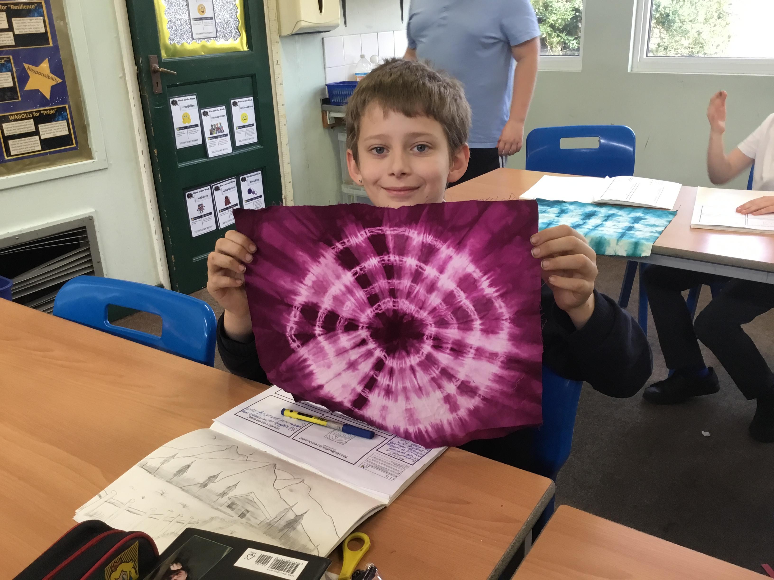Weds 19th March - Look at the beautiful tie-dye patterns we created in Art last week!