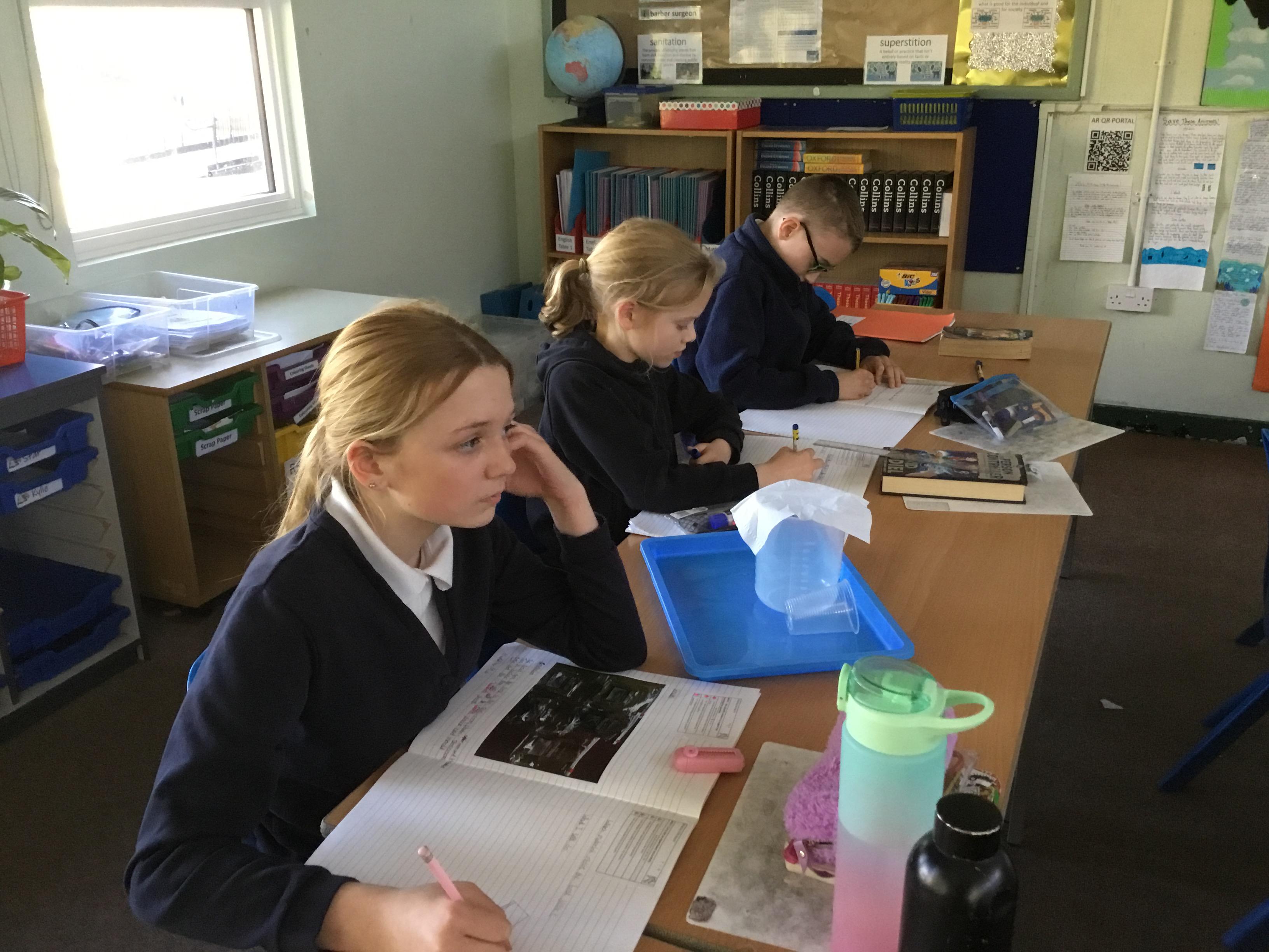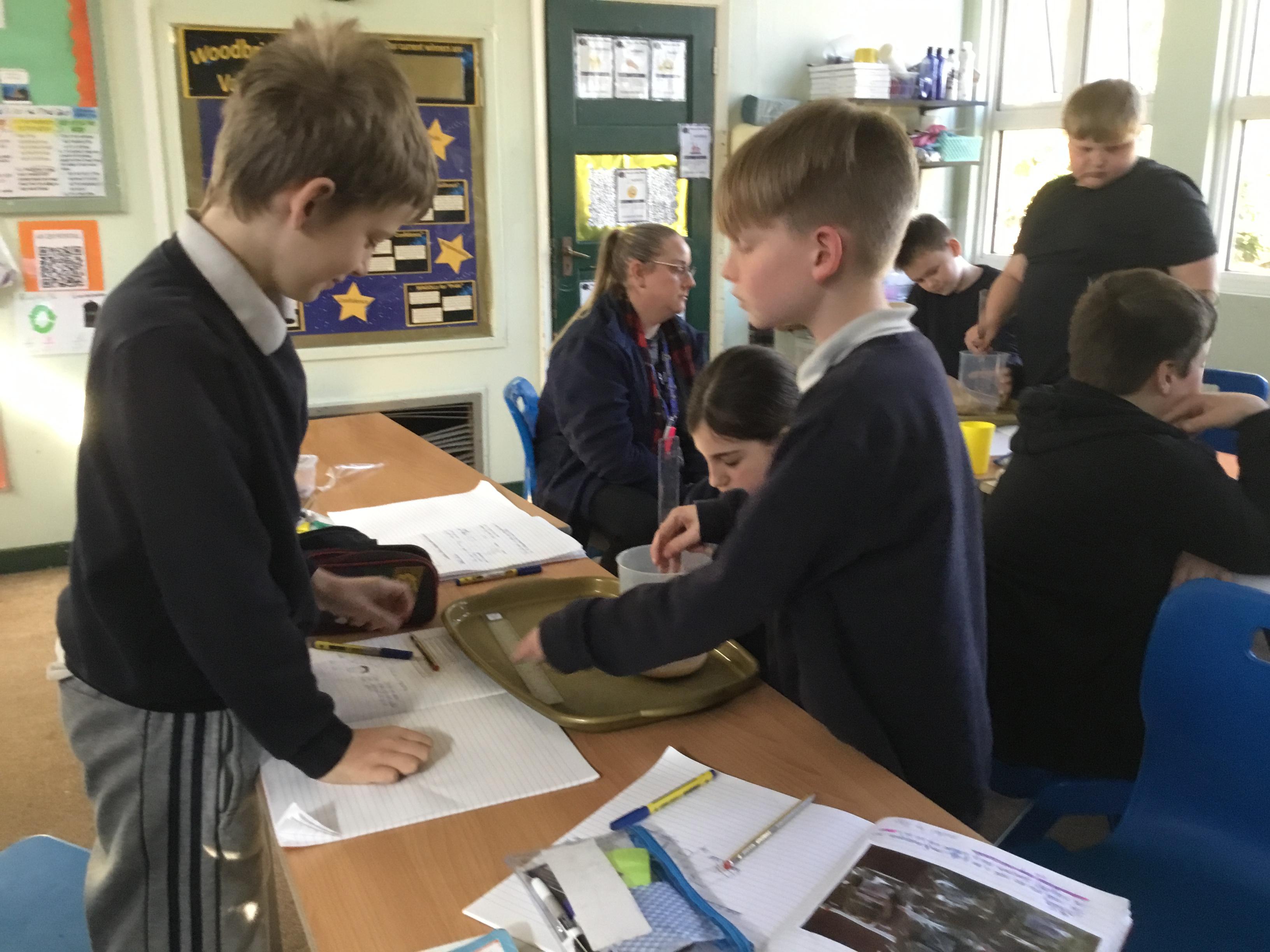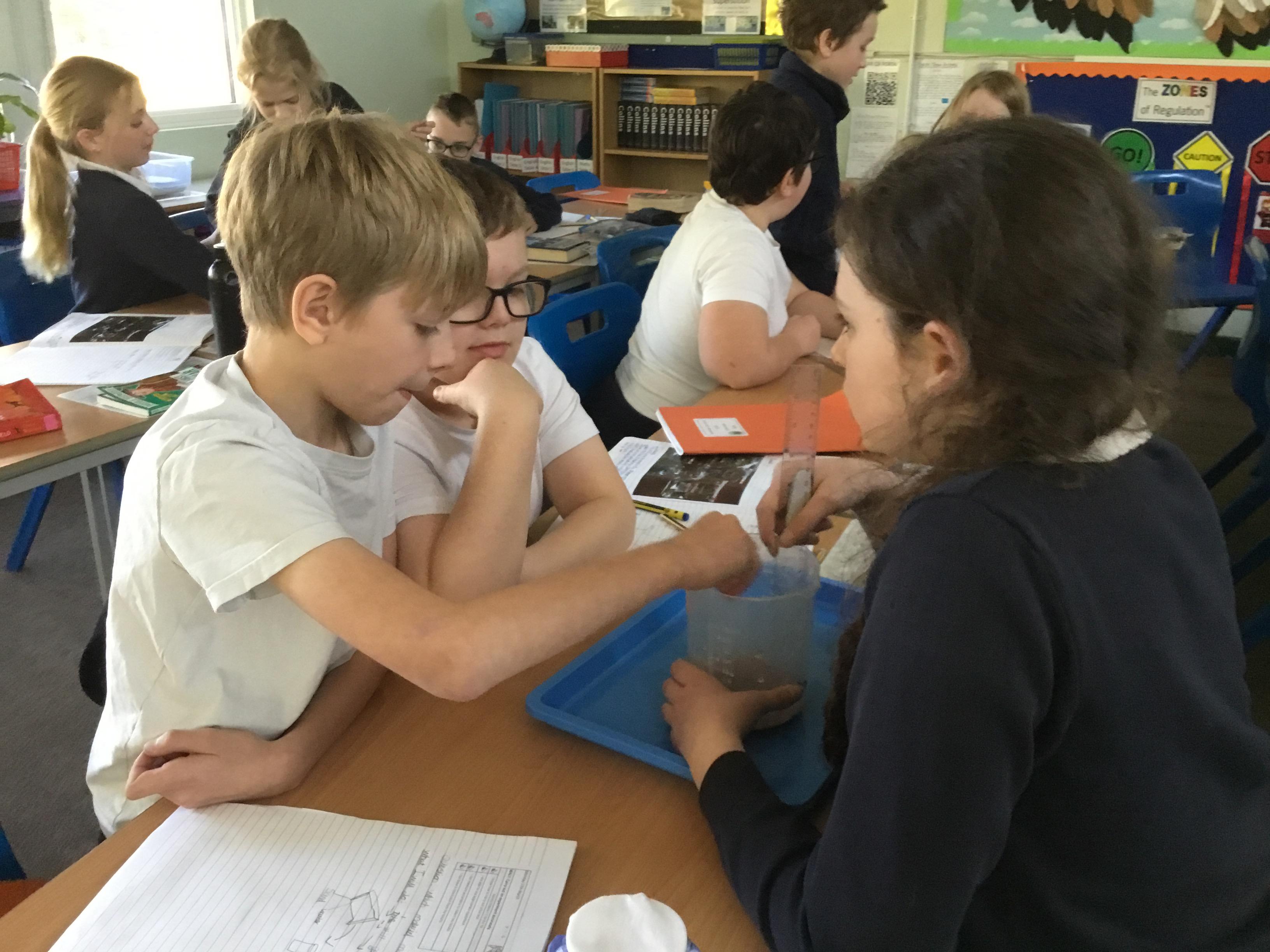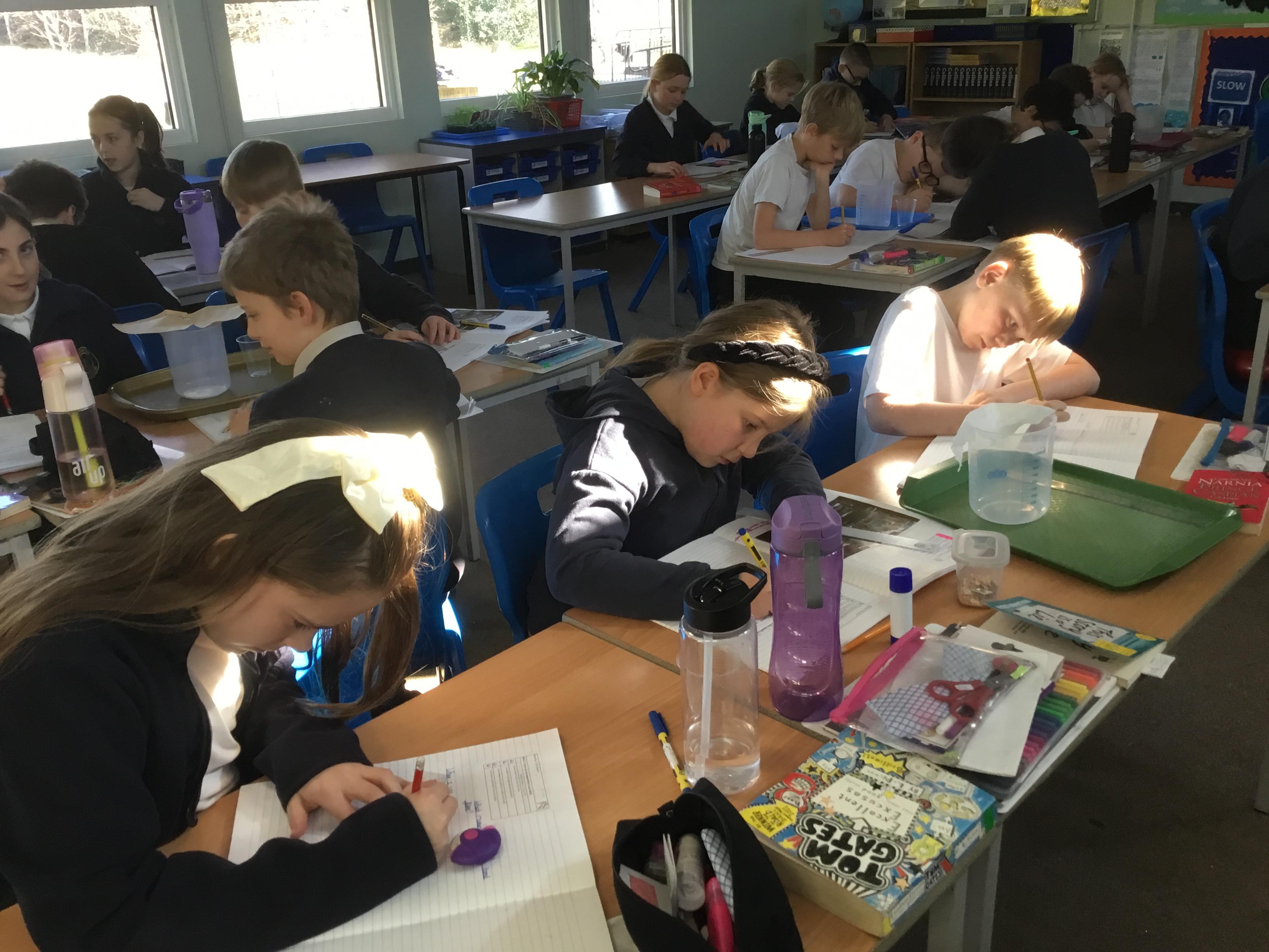 Tuesday 18th March - Enjoying a filtering experiment, finding out which material would be the best to filter micro- plastics in the oceans.
