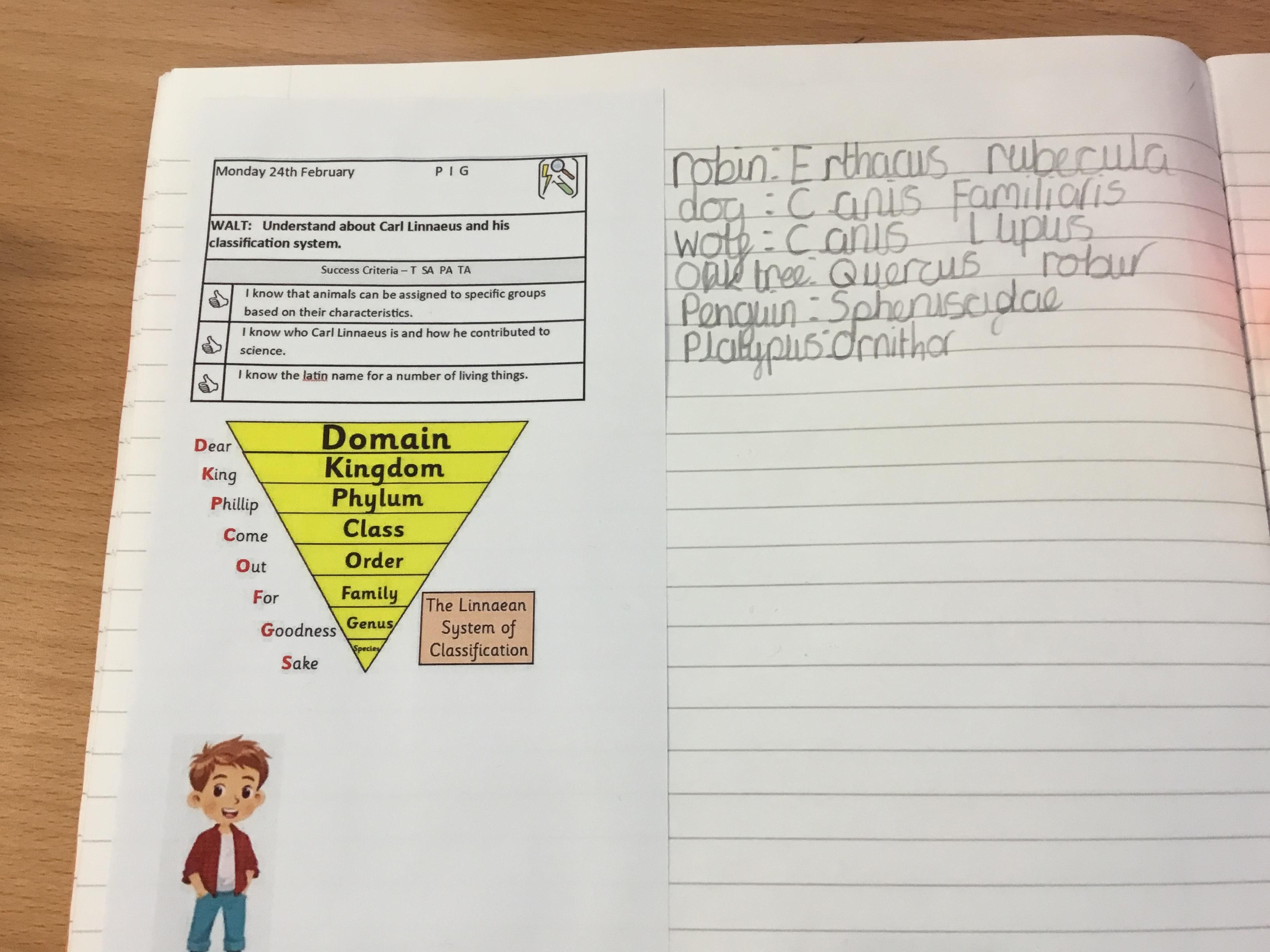 Monday 24th February- In Science we tried to find the Latin names of animals as part of our lesson on Carl Linnaeus and his classification system.