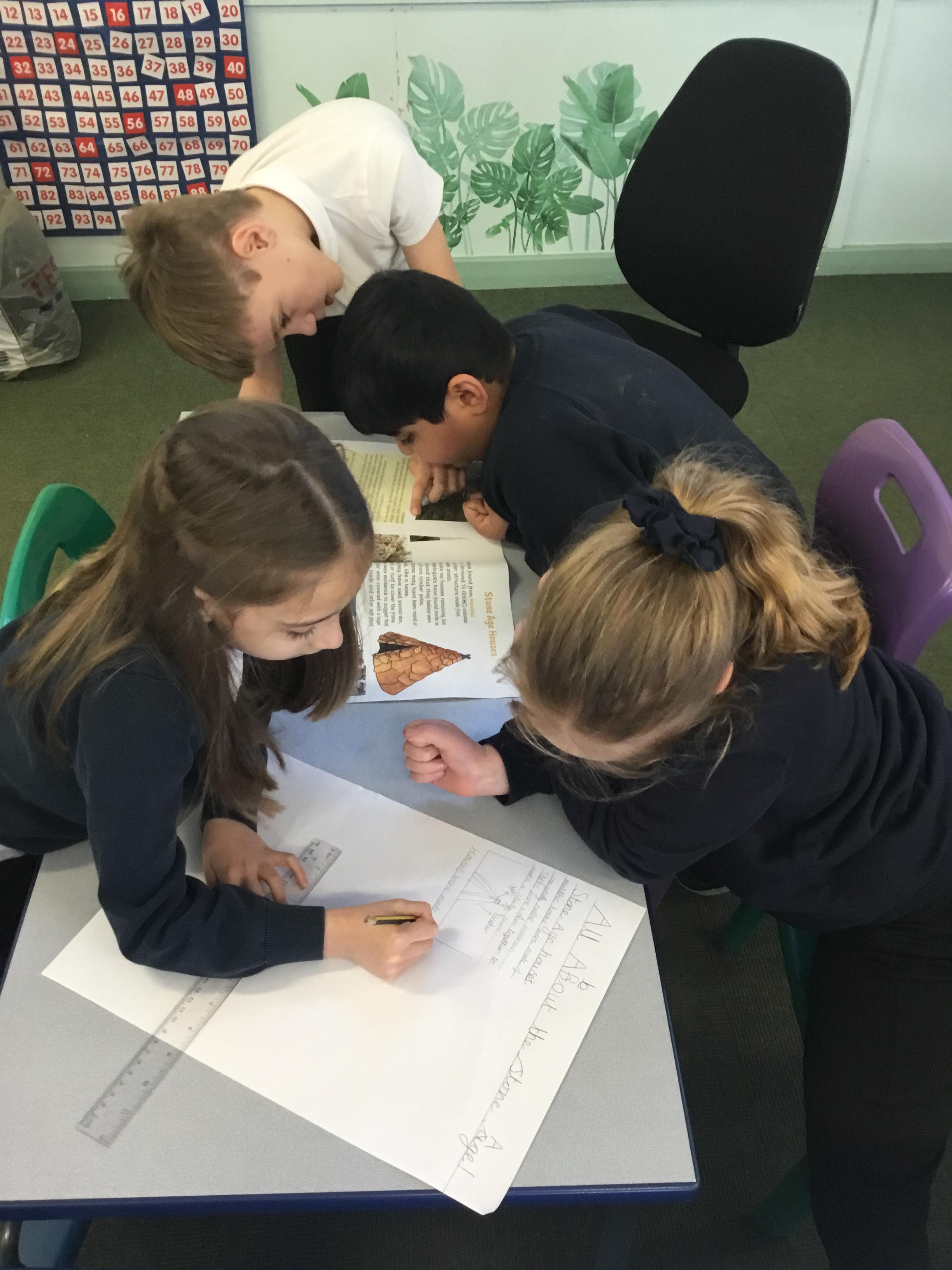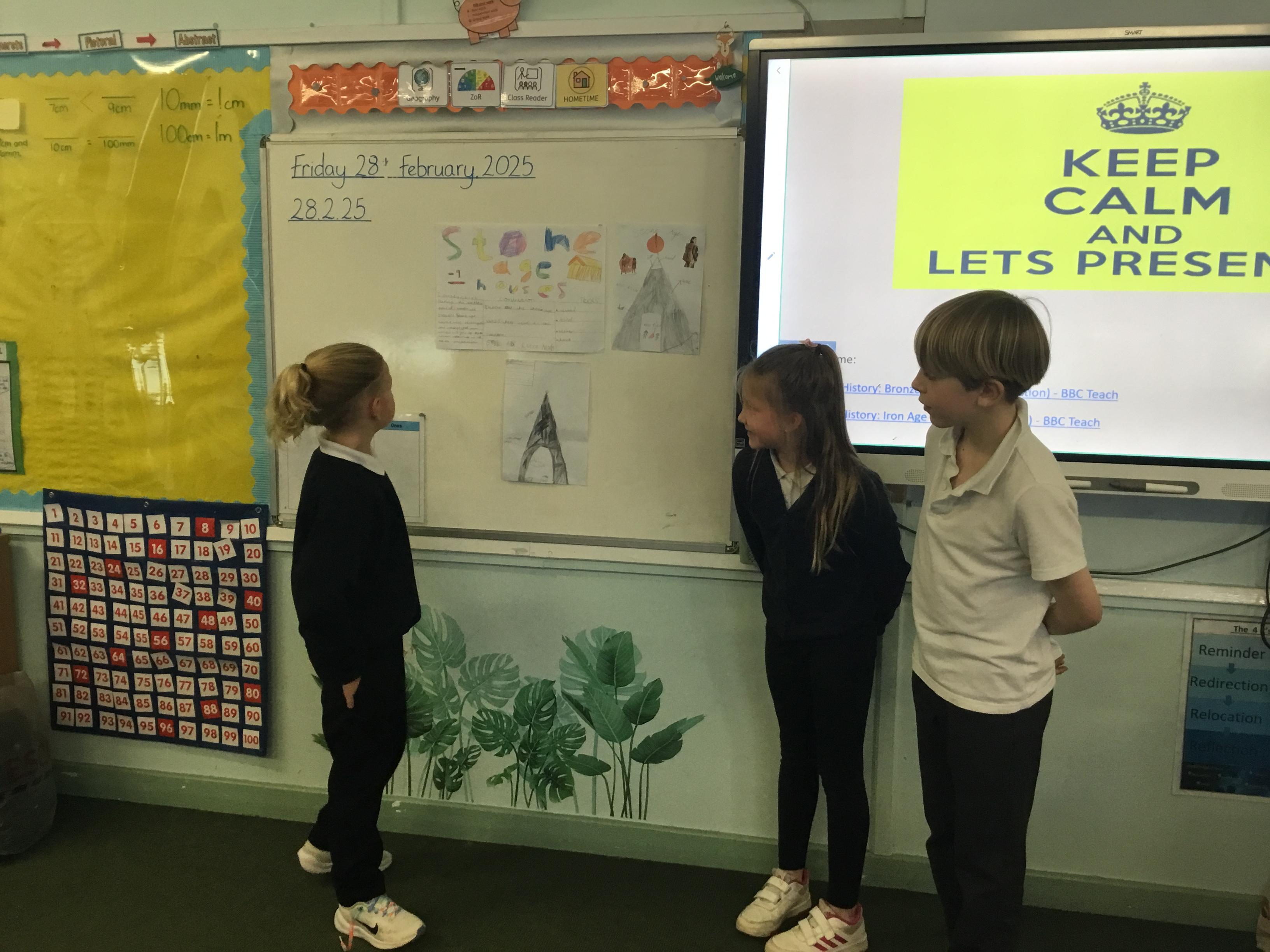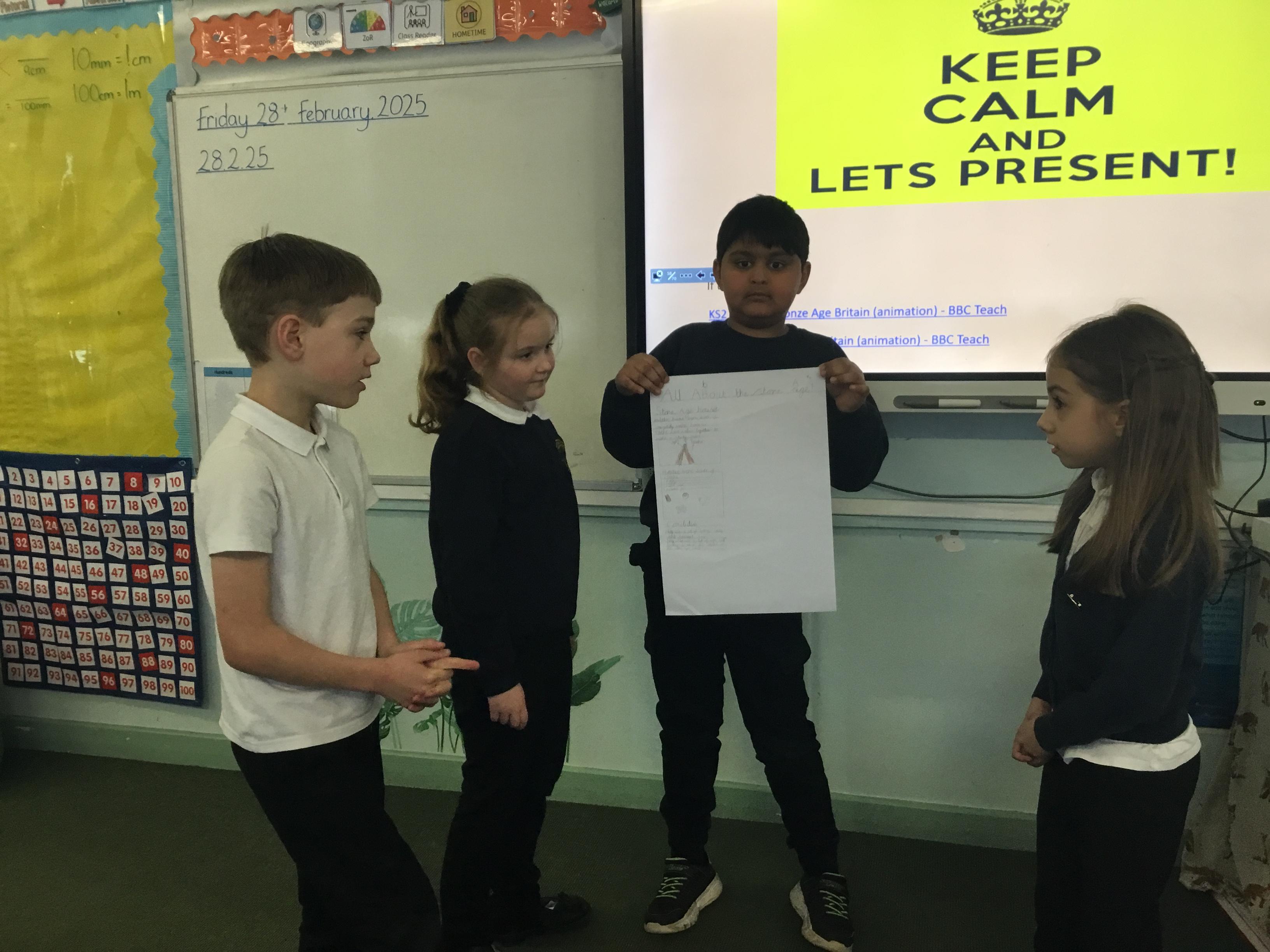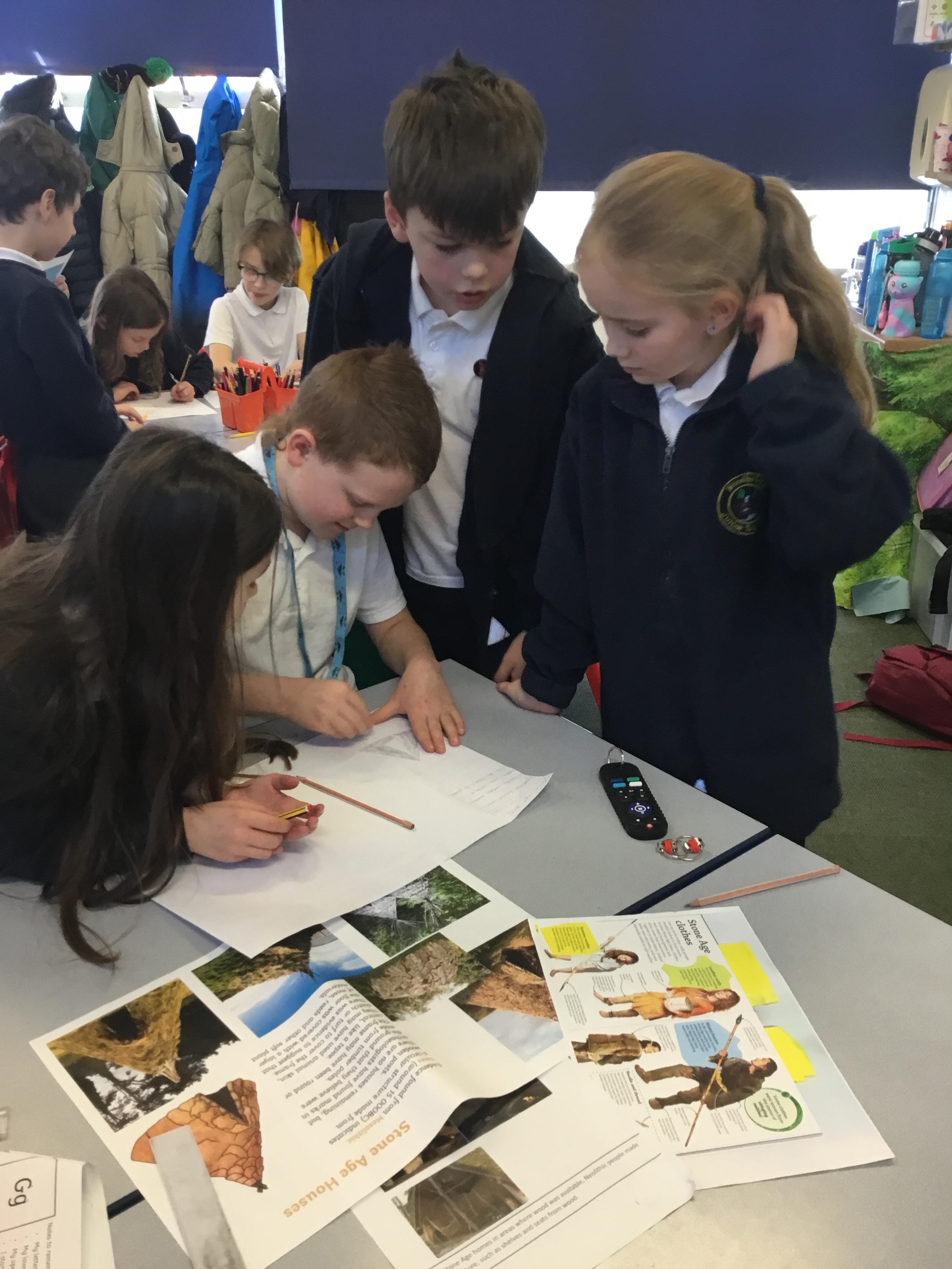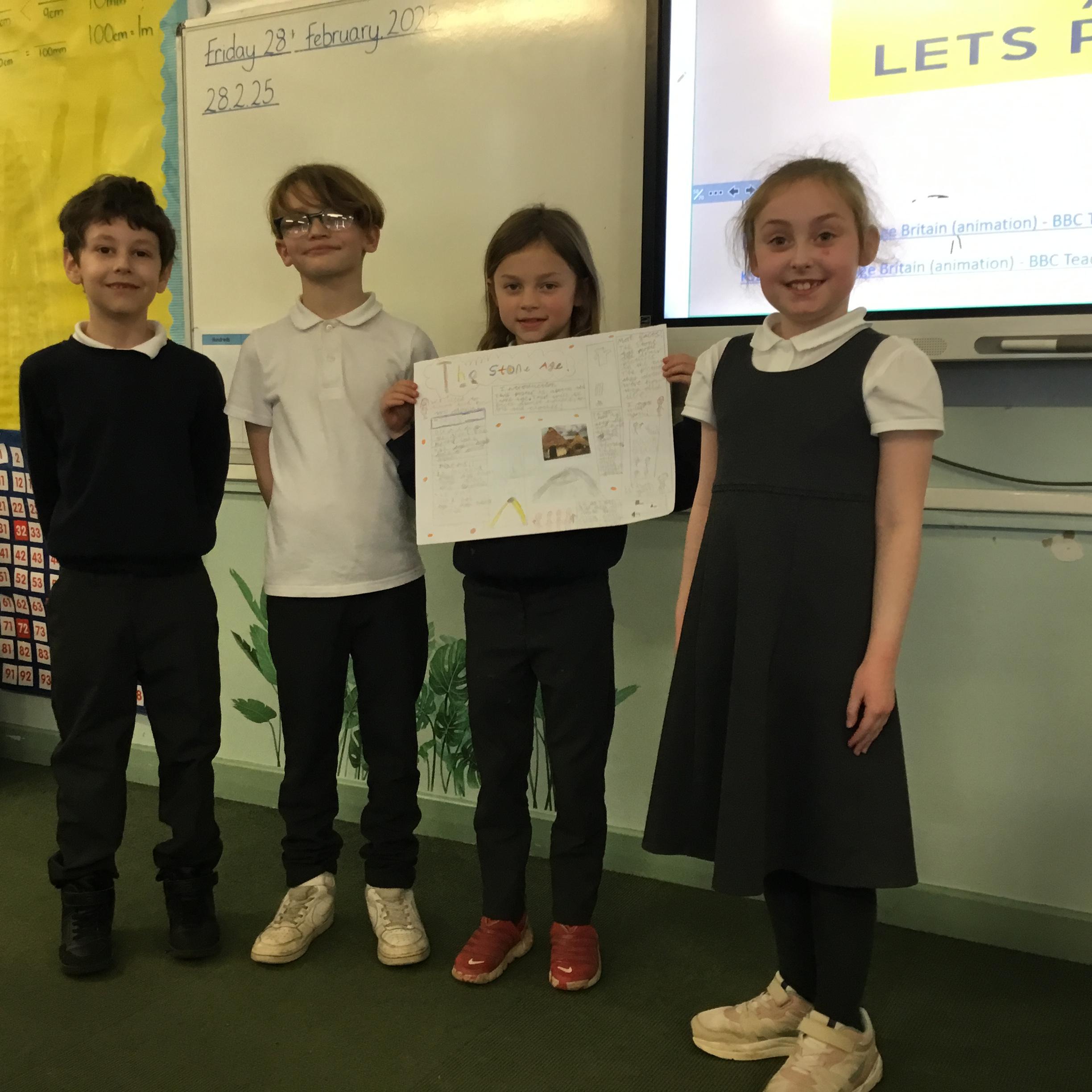 Spring 2, Week 1. Foxes worked in groups to present findings about the Stone Age.