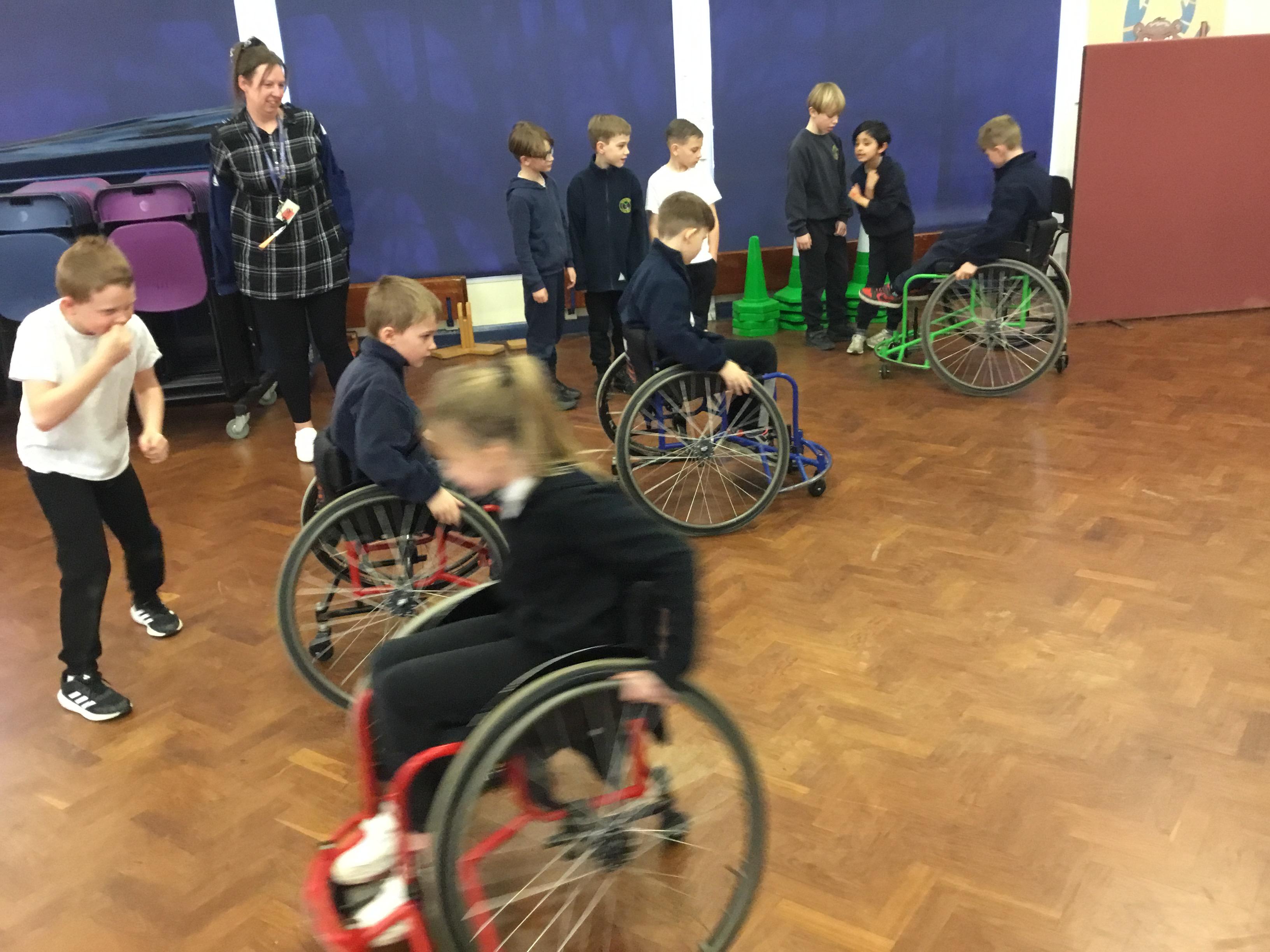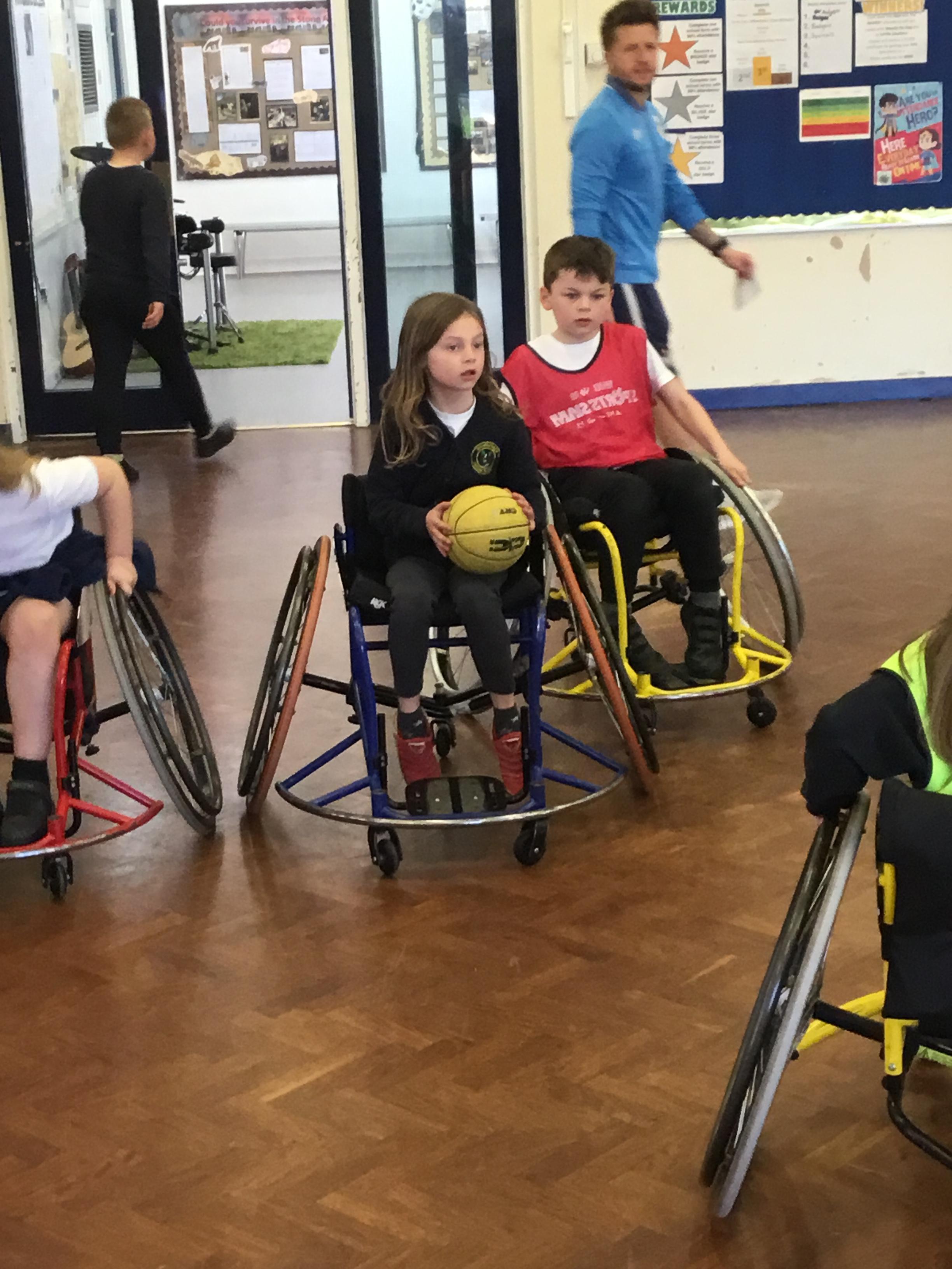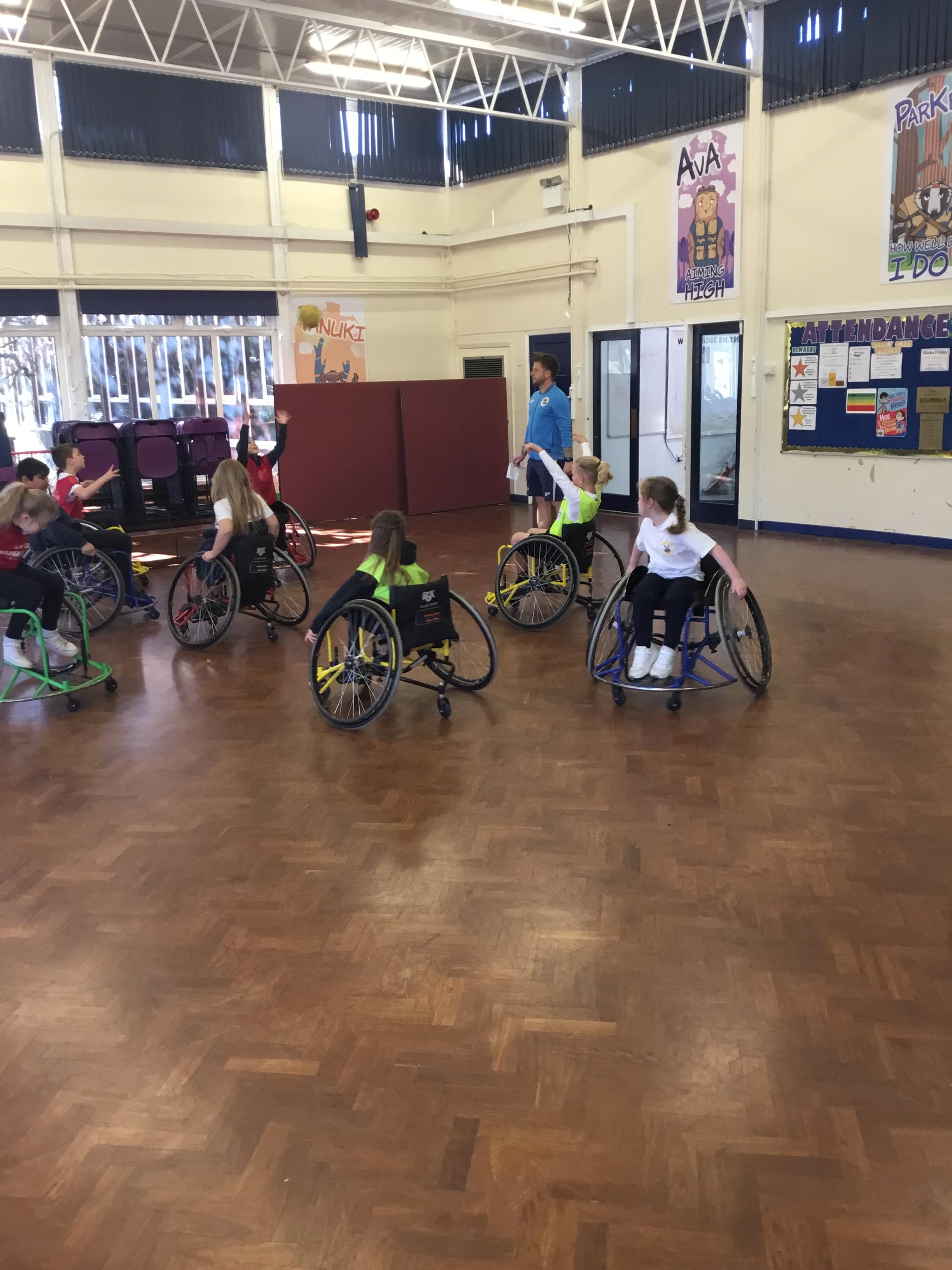Spring 2, Week 6. To finish the term, Foxes used all the skills they have learnt to play a game in wheelchairs.