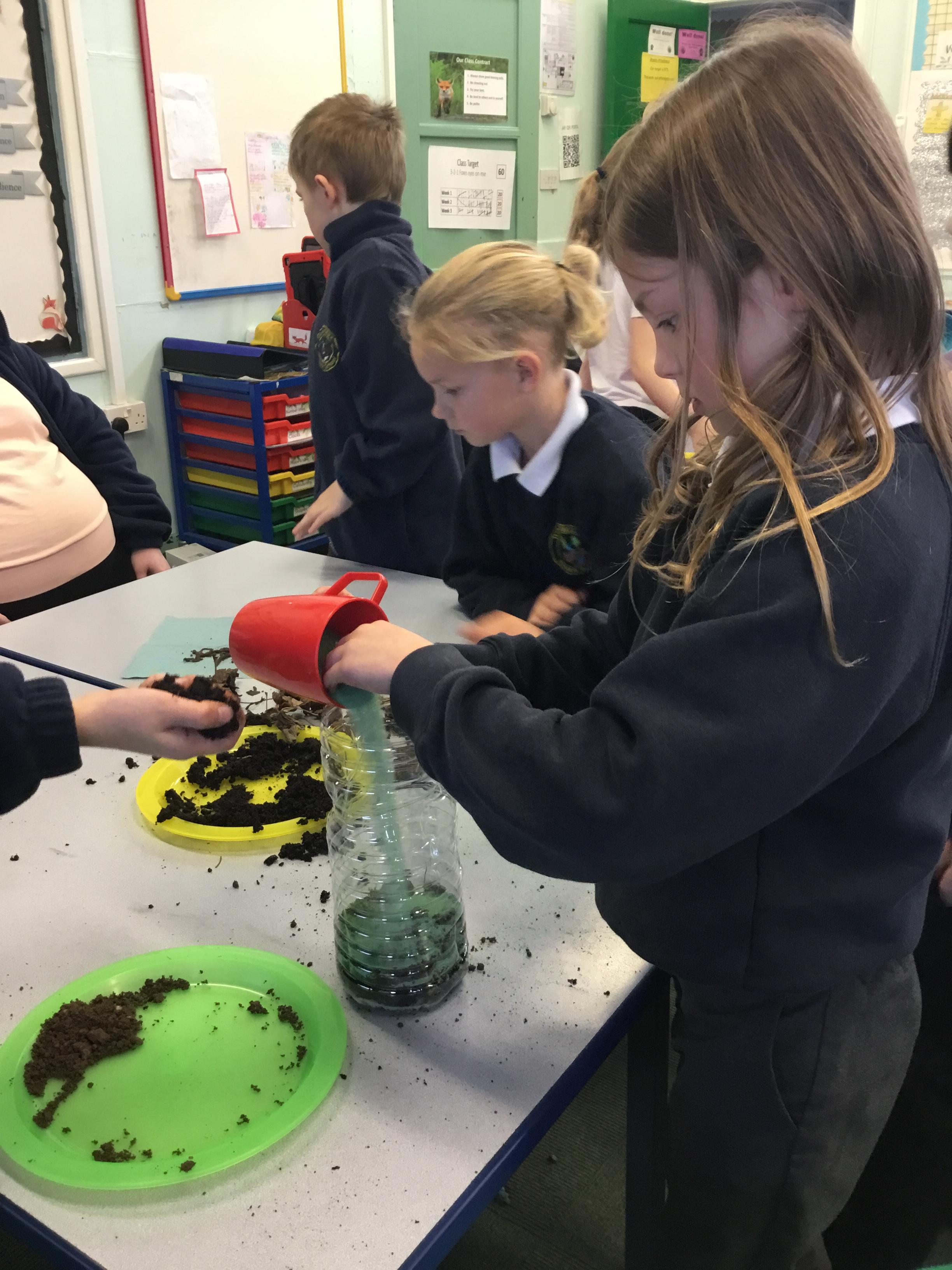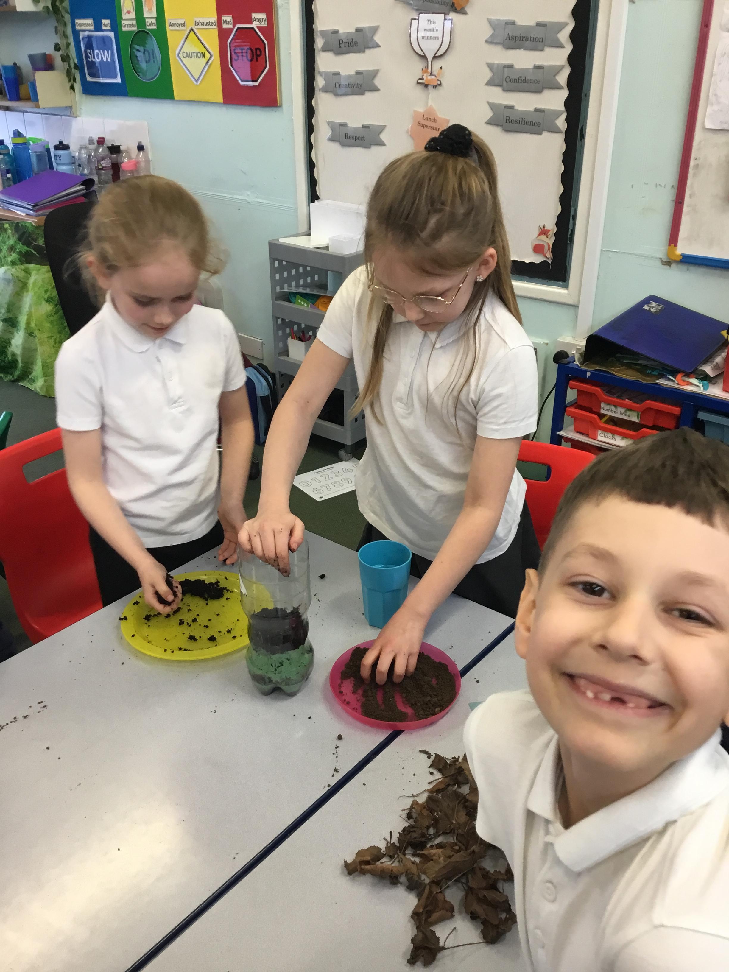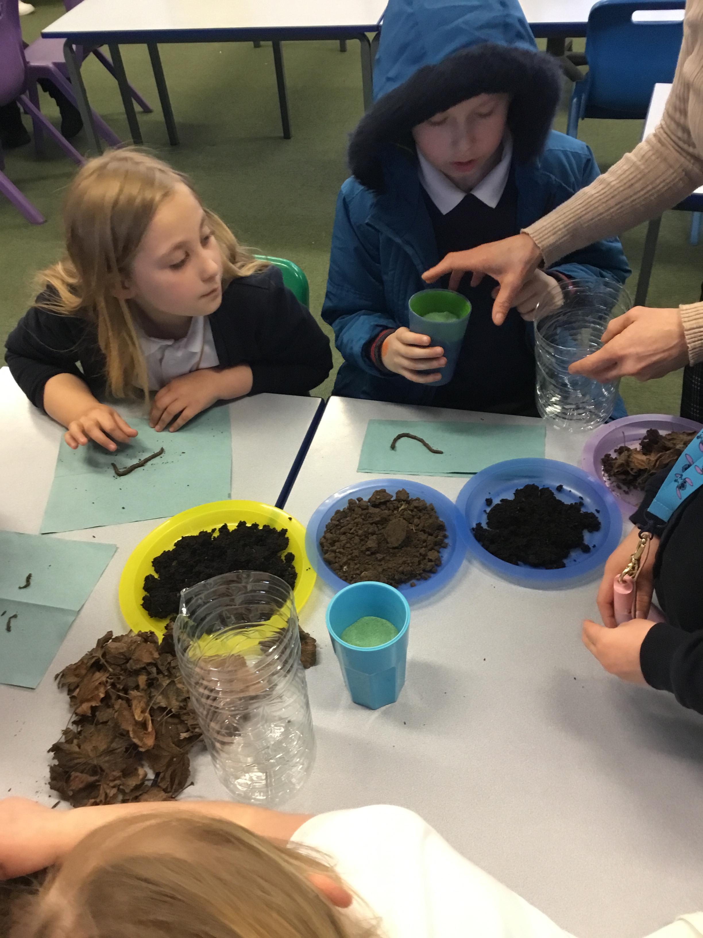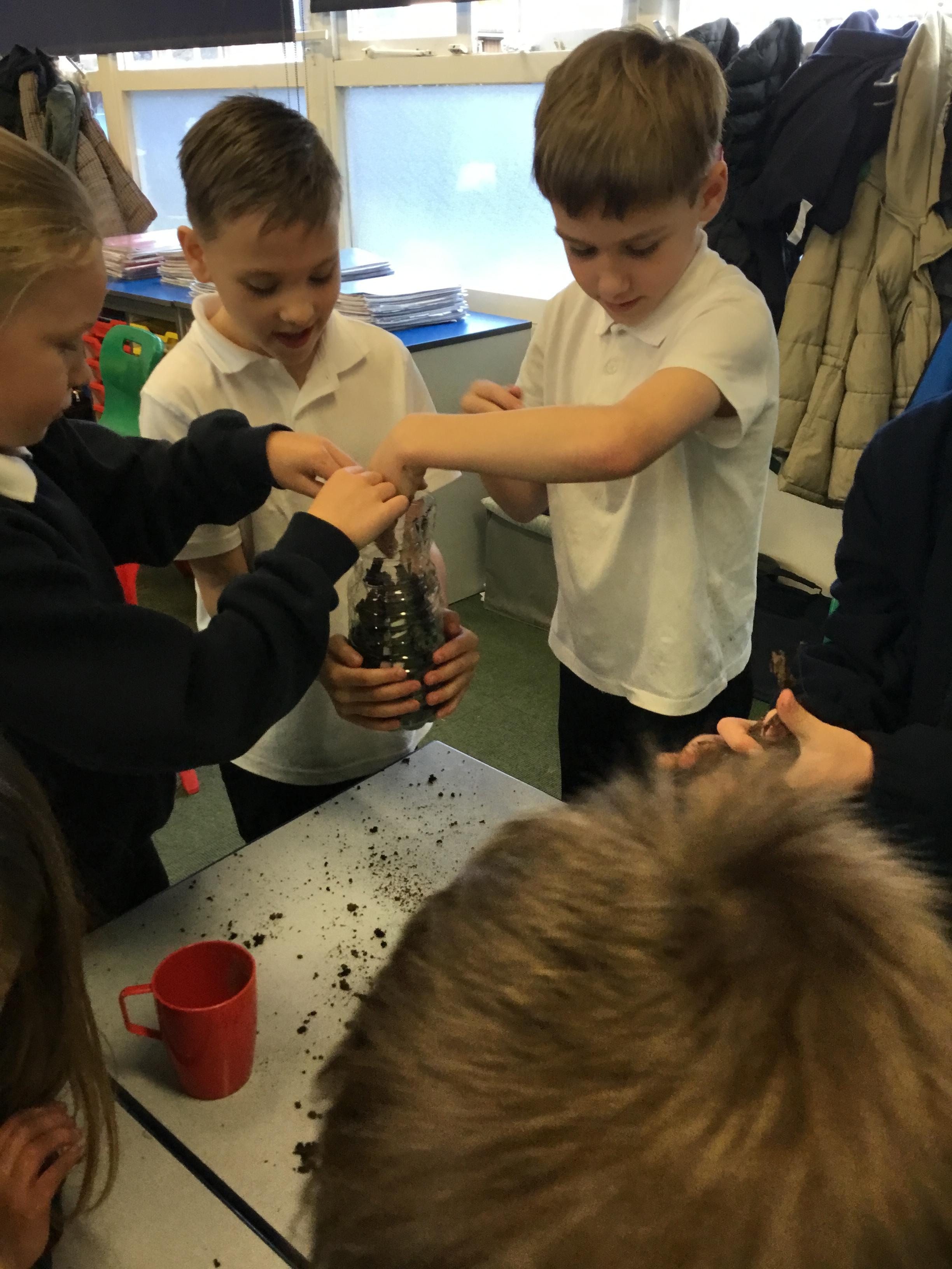 Spring 2, Week 3. Science week was packed with exciting activities where the class used their scientific skills, including making a wormery.