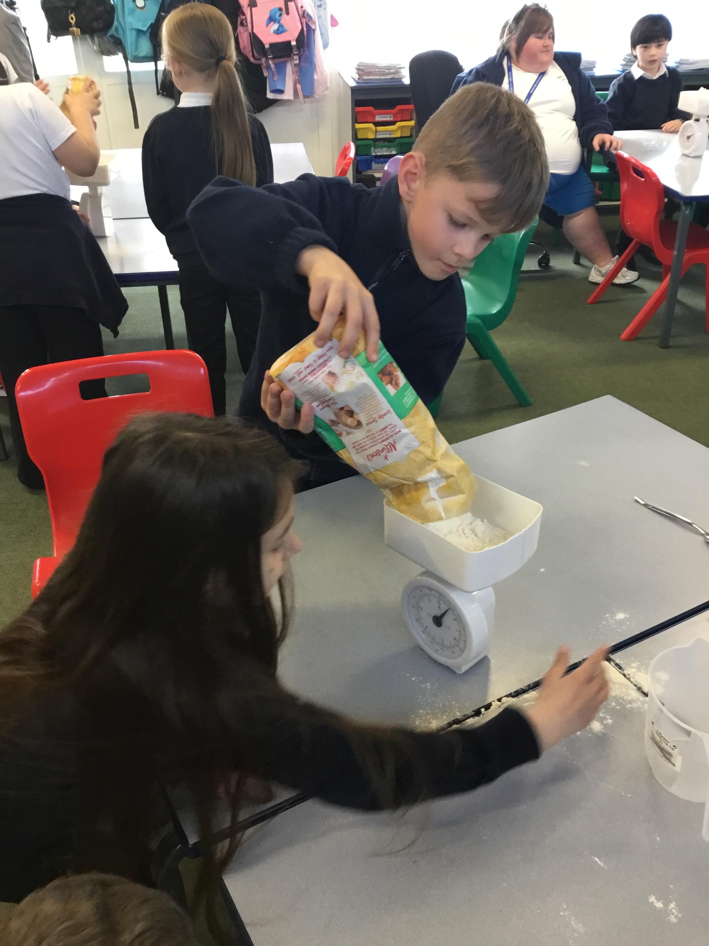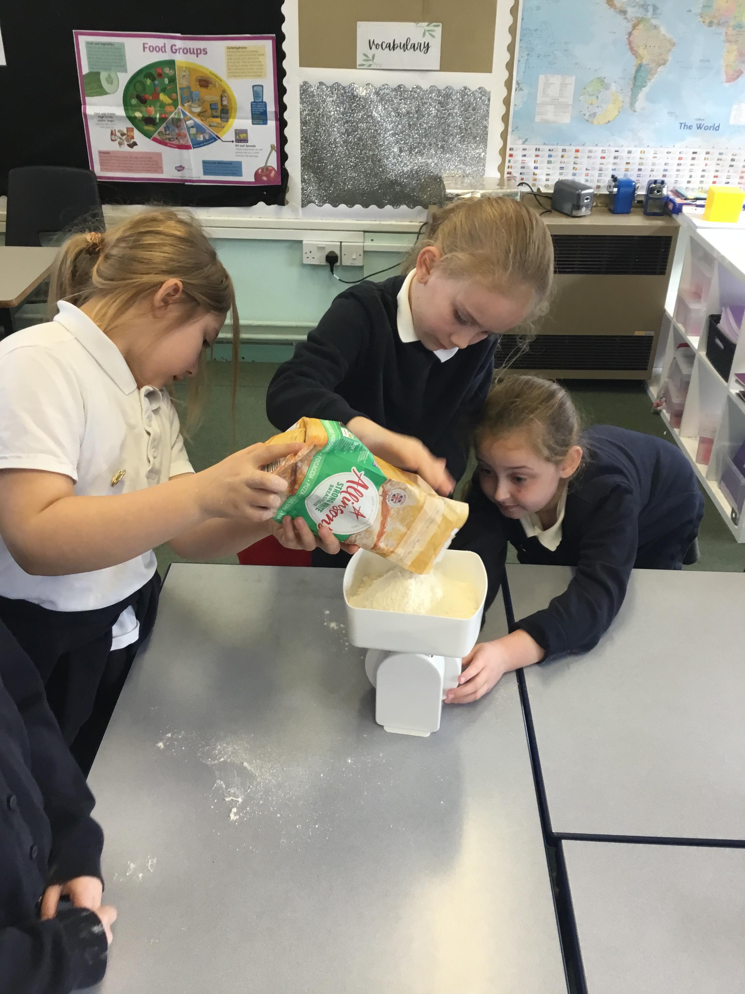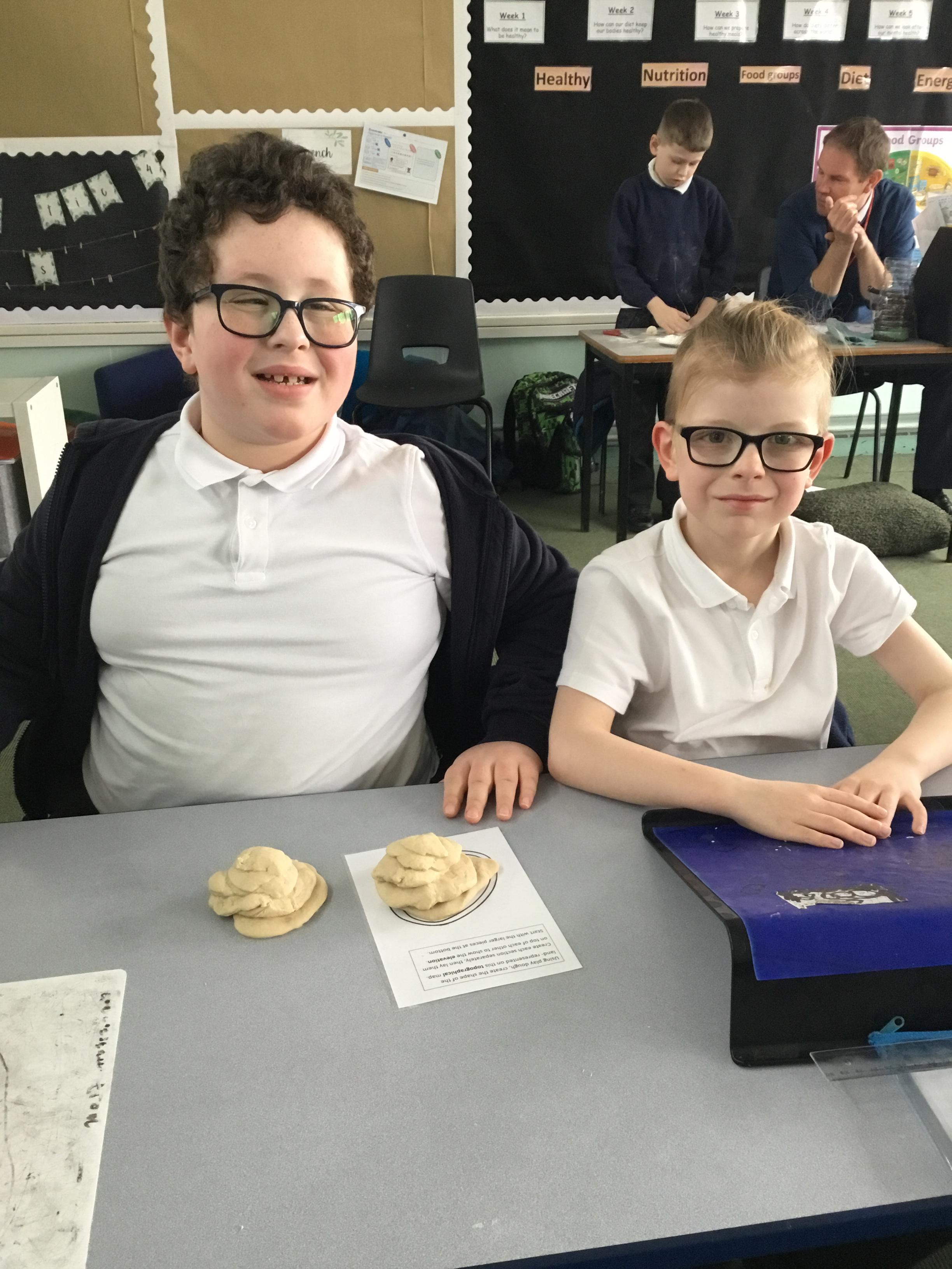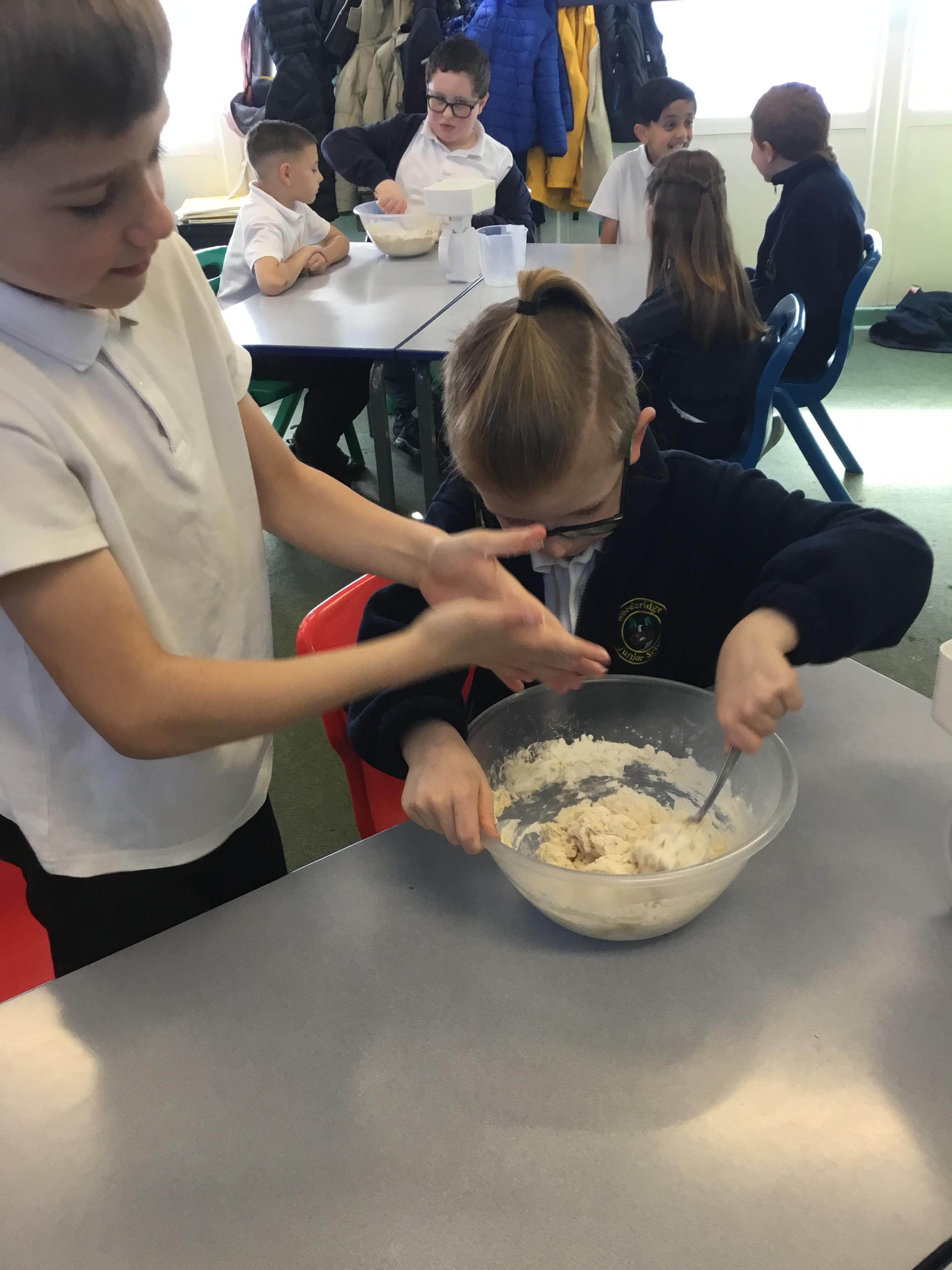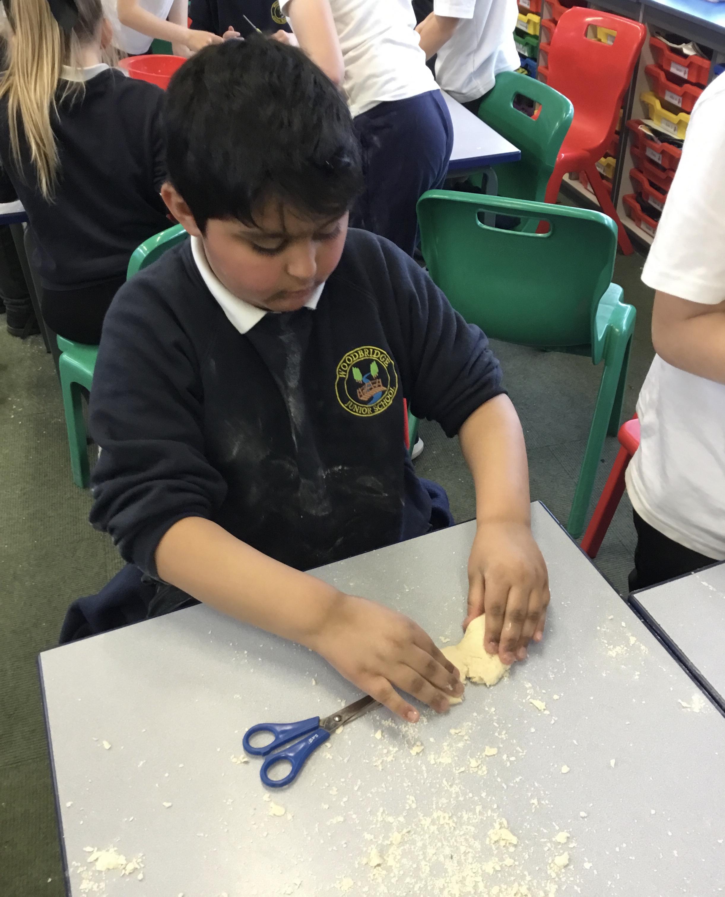 Spring 2, Week 3. The class made play-dough to practise the skills and techniques needed for making bread dough.