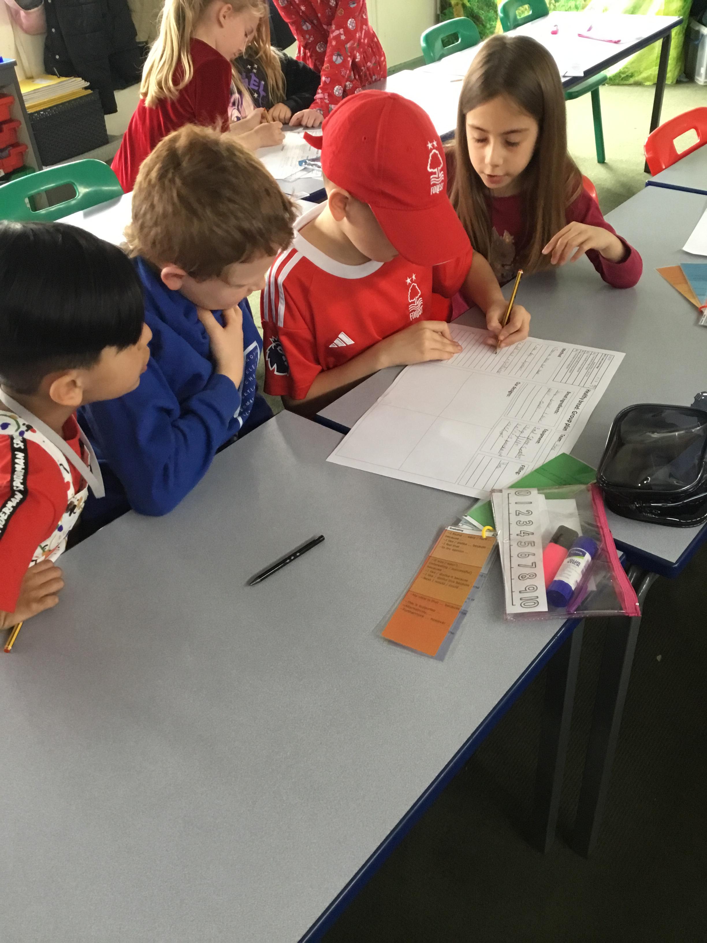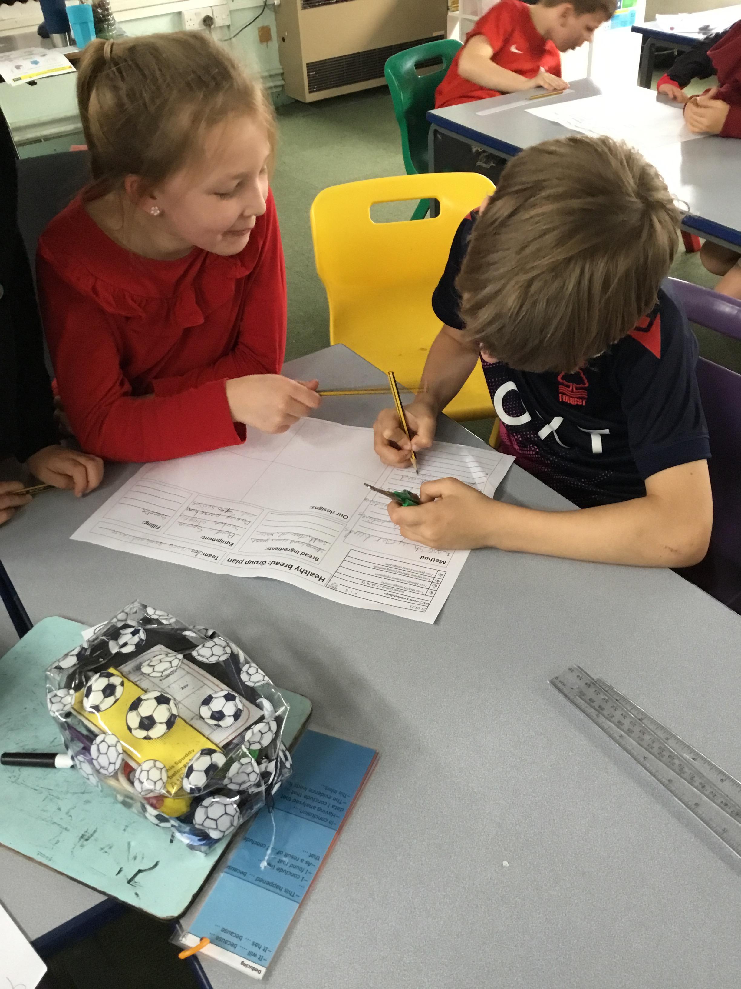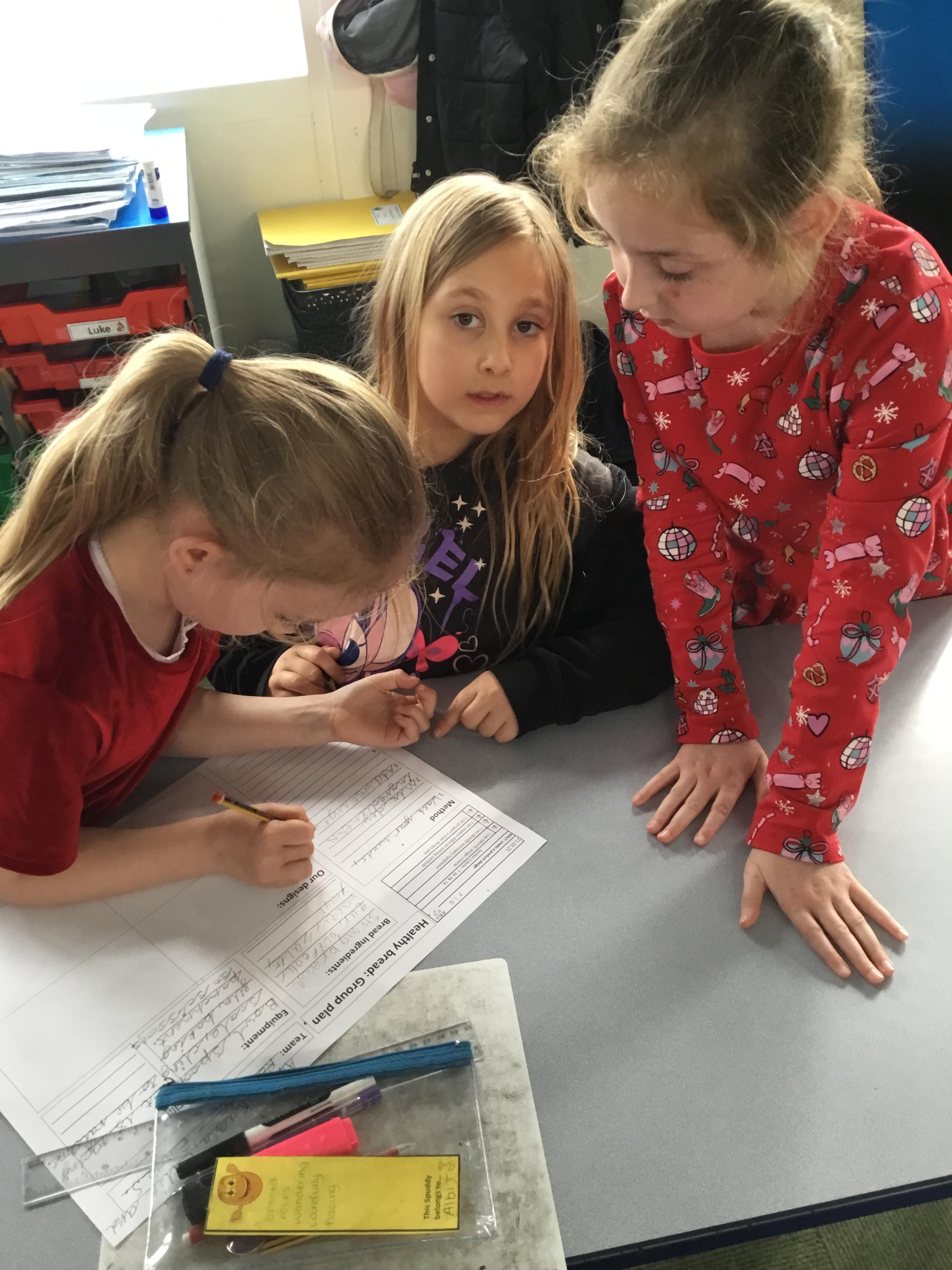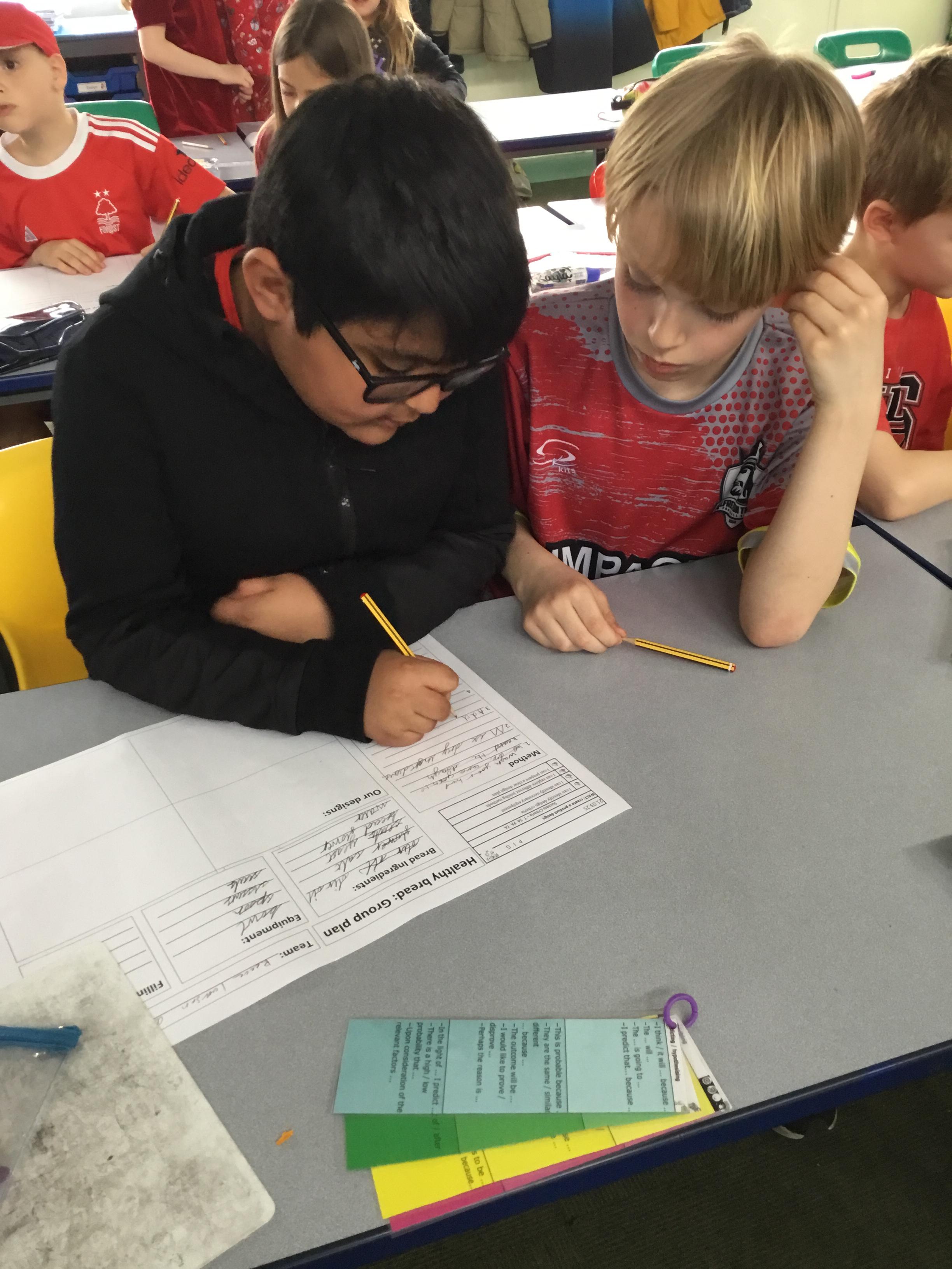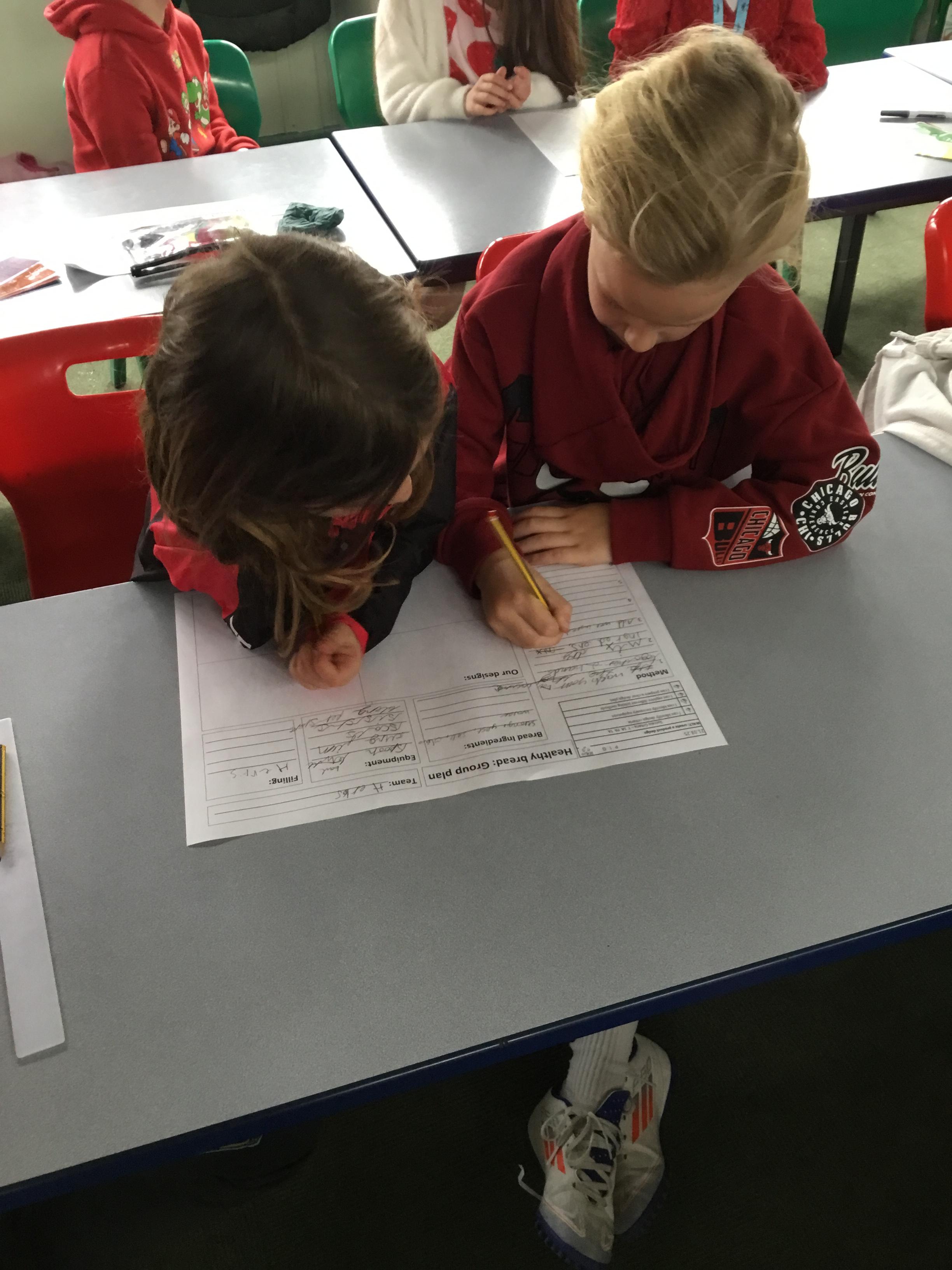 Spring 2, Week 4. The class worked in small groups to plan how they will make bread next week, as part of their learning about healthy eating and a balanced diet.